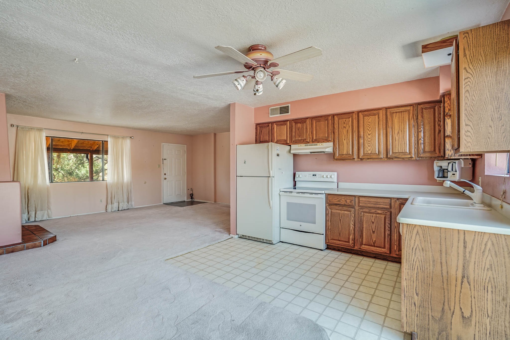 Nestled in Cochiti Lake, this charming 2 bed, 1 bath home offers a blend of comfort and convenience. Enjoy the open living space with a cozy fireplace and an updated kitchen featuring Corian counters. The bathroom boasts a refreshed vanity and counter. Outside, mature landscaping with a Ponderosa Pine and Pinon graces the front, while a fully fenced backyard ensures privacy. A 1-car garage adds practicality. Situated near the town hall yet bordering green space, this home offers both accessibility and tranquility. Don't miss out on this opportunity!