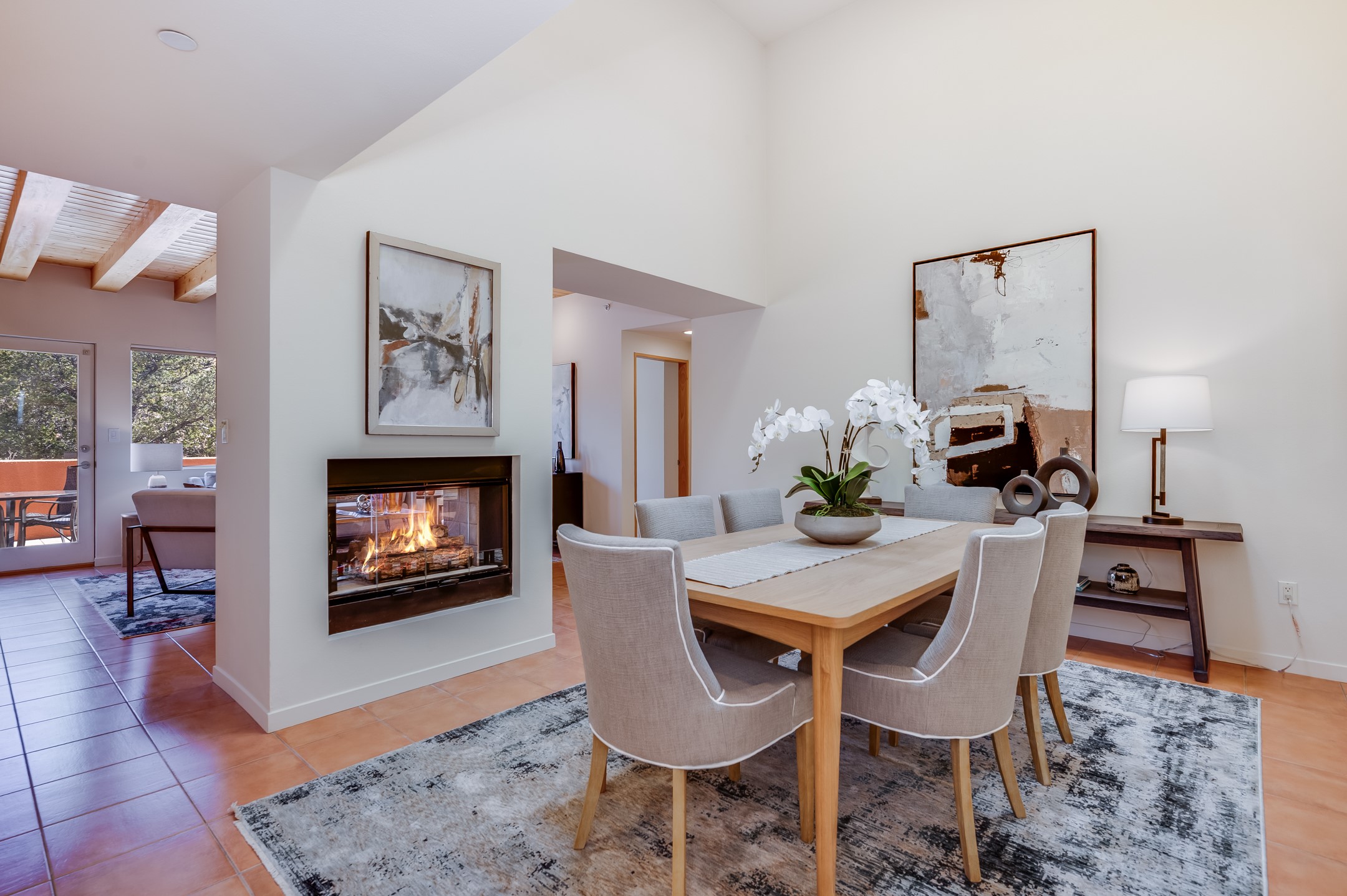 This highly sought after floor plan boasts two thoughtfully separated en-suites both with full baths and walk-in closets. The main suite has a bonus office area as wel as its own private balcony. A double sided gas fireplace separates the dining and living room Located in the beautiful Zocalo Condominium Community located near shopping and just a fewshort minutes to downtown Santa Fe.