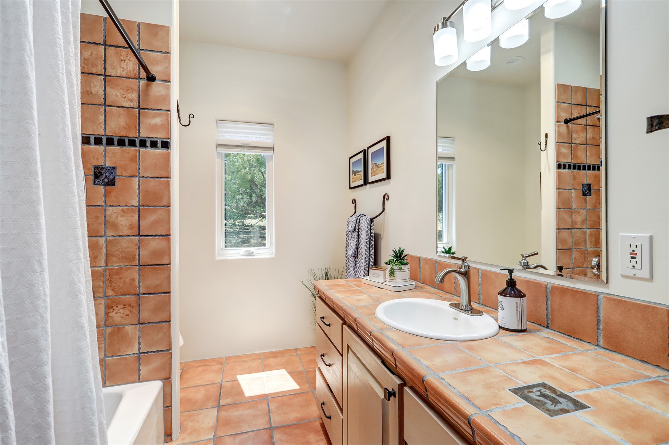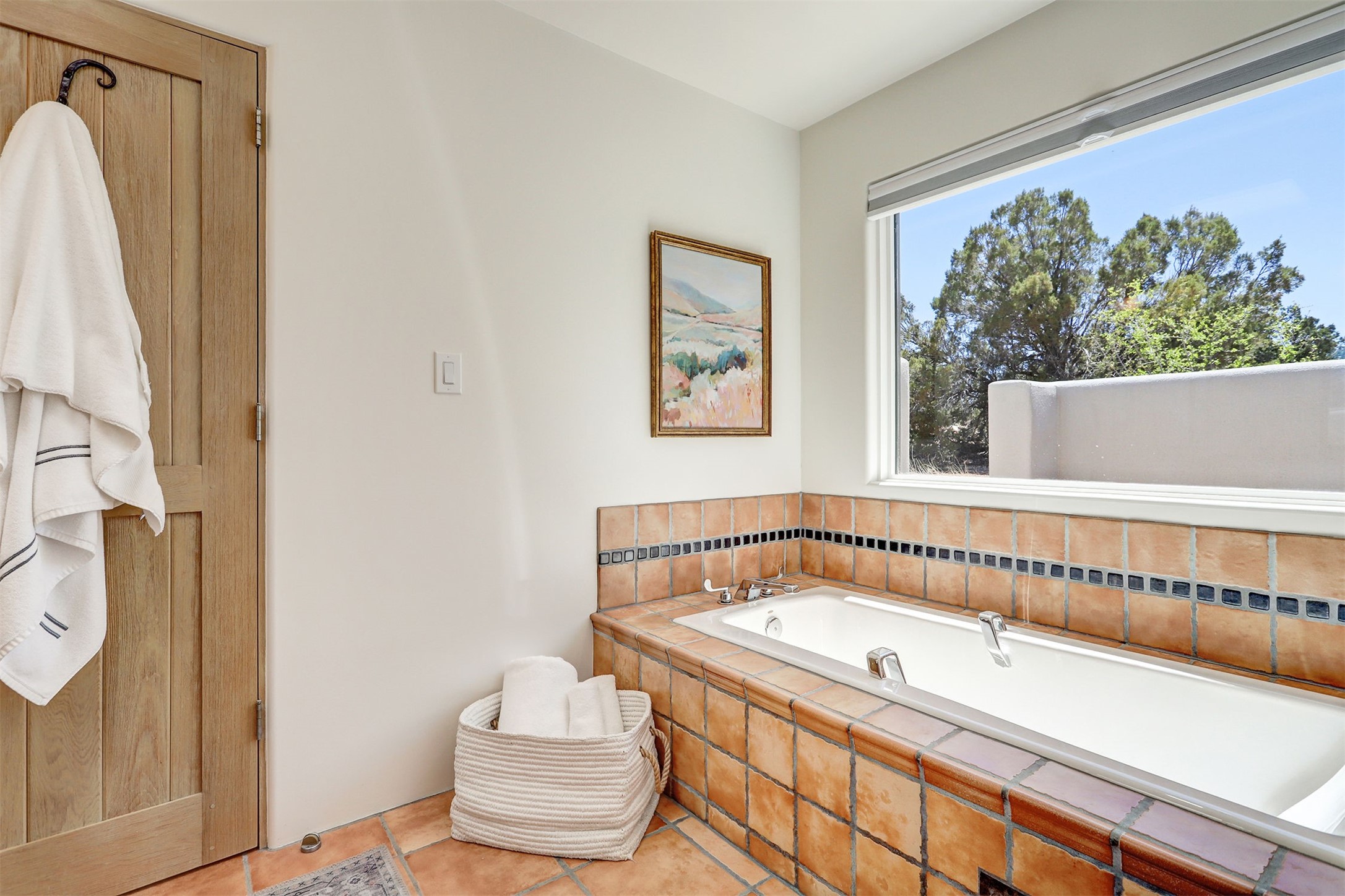 This tastefully remodeled, bright, and move-in-ready 2,879 sq ft, 3-bedroom, 2-bathroom single-level home is nestled within the neighborhood The Ridges, a prestigious and serene enclave just ~20 minutes from the heart of Santa Fe. Offering a seamless blend of classic Santa Fe architecture and modern upgrades, every detail is designed for comfort, style, and function.From the moment you arrive, the fresh new stucco exterior and brand-new garage doors hint at the impeccable updates found throughout.Step inside to discover a spacious and airy open floor plan anchored by a custom-built wood-burning kiva fireplace, framed by dramatic beamed ceilings that gracefully flow throughout the entire home, creating a warm, Santa Fe atmosphere.Natural light fills the living spaces through all-new Windsor windows and enlarged sliding doors, offering captivating picture-framed views of the surrounding landscape. Every window feels like a living canvas, inviting Santa Fe's natural beauty indoors. Custom window treatments add a perfect touch of elegance and privacy. Throughout the home, new light fixtures and fresh paint enhance the refined yet cozy ambiance.The charming kitchen and laundry room shine with sleek new quartz countertops and stainless steel appliances, offering a perfect balance of style and functionality.A standout feature is the inviting private inner courtyard, completely reimagined with premium flagstone pavers and a French drain system, creating a tranquil oasis ideal for al fresco dining, entertaining, or simply relaxing under the starry Santa Fe sky.Set on a quiet and picturesque 4-acre lot, the property welcomes two horses. You'll enjoy the perfect balance of natural serenity and modern convenience, with shopping, dining, medical facilities, and Santa Fe's vibrant cultural scene all within easy reach.