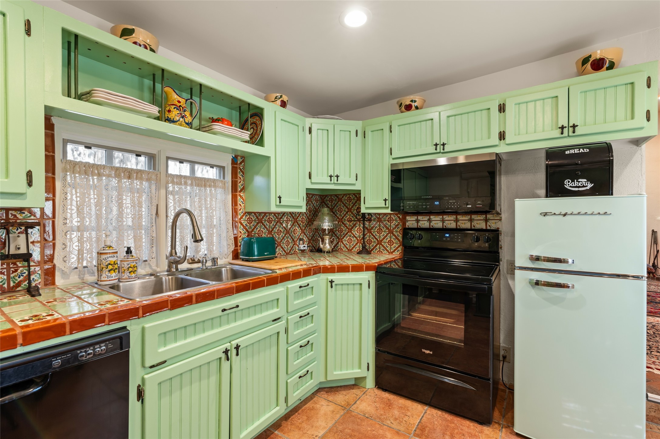 Perfectly redone, perfectly located and perfectly charming, this one bedroom one bath condo is oozing Santa Fe style, while just blocks from the Plaza and steps from Ft. Marcy Park with swimming, walking, playground and pickle ball! One of 3 condos in this little compound on Artist, the casita has had the roof raised with new roof and insulation, not to mention fabulous vigas, beautiful chandeliers and recessed lighting, with upgraded electrical wiring in the house. Most everything has a fresh coat of paint, and the floors are now antique brick except in the kitchen and bath. Both the living room and the bedroom enjoy corner kiva fireplaces, for cozy Santa Fe night ambiance . The kitchen is whimsical and functional, with plenty of storage and a new vintage looking matching fridge, new dishwasher and microwave; and the washer and dryer are also new! There are two outdoor spaces to enjoy - the front entry with it's sunny South face and new 3 ft wall and flower beds, and the shady summer side patio with a new coyote fence and good privacy is the perfect cool summer alfresco dining spot!