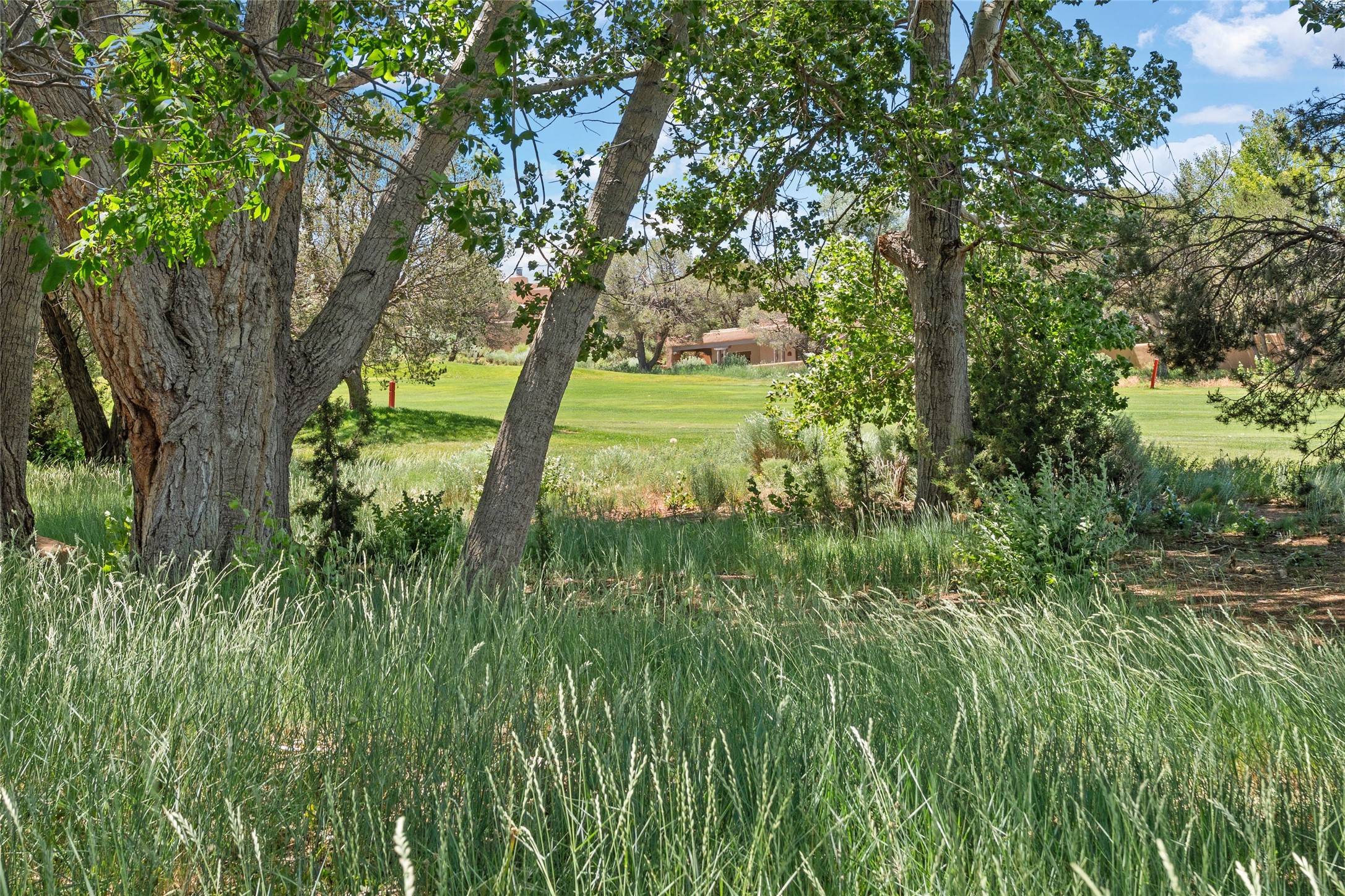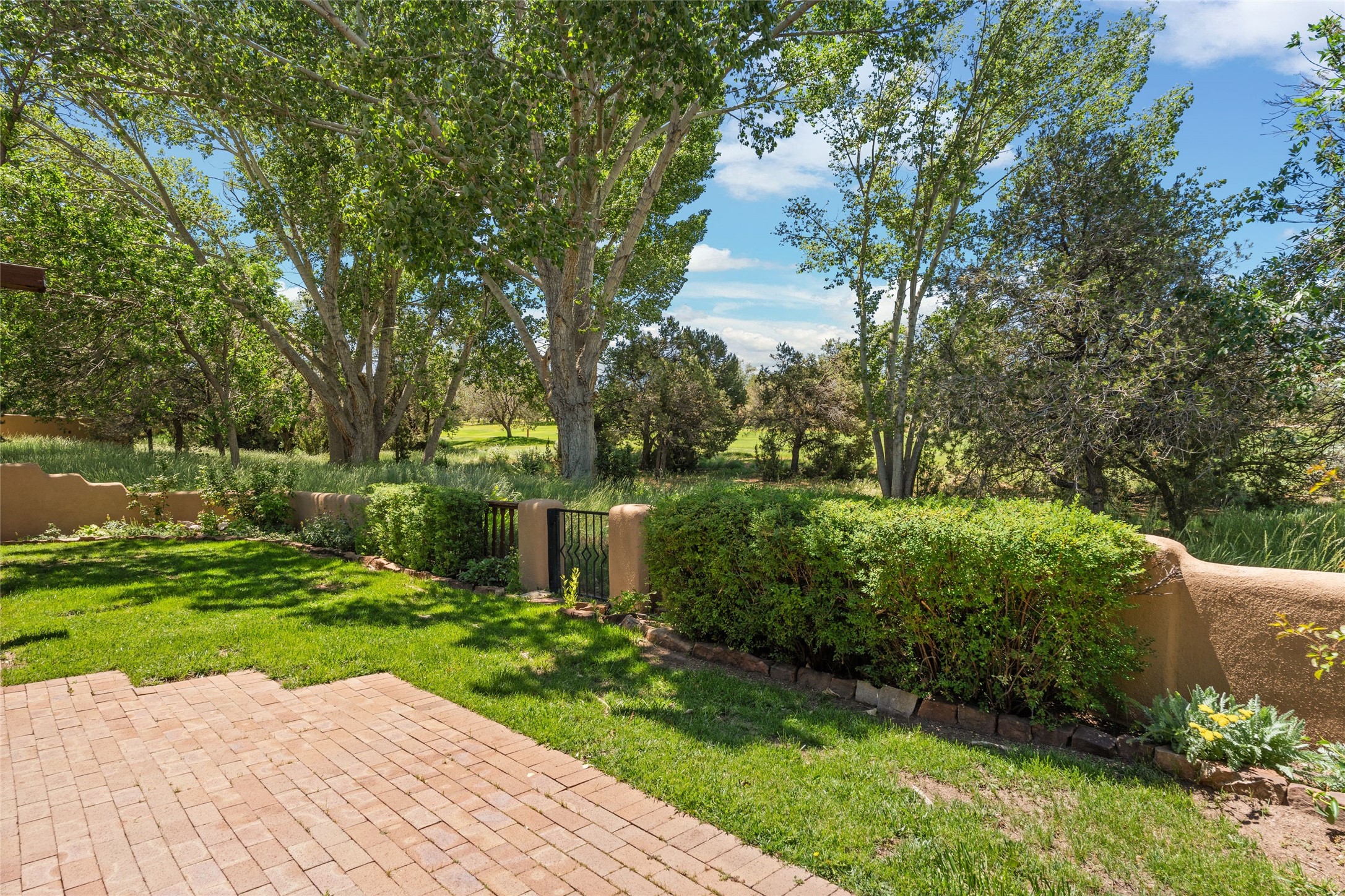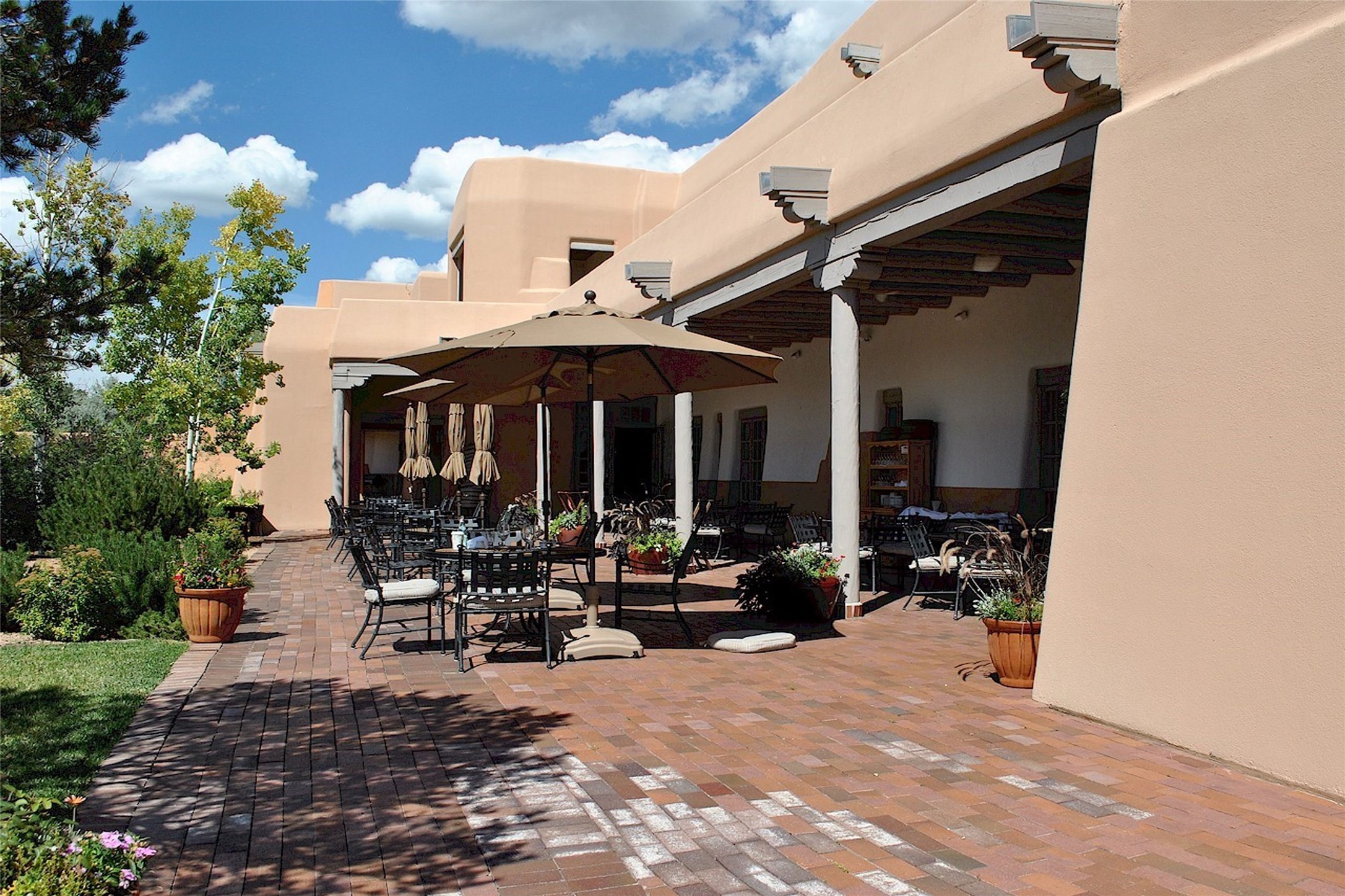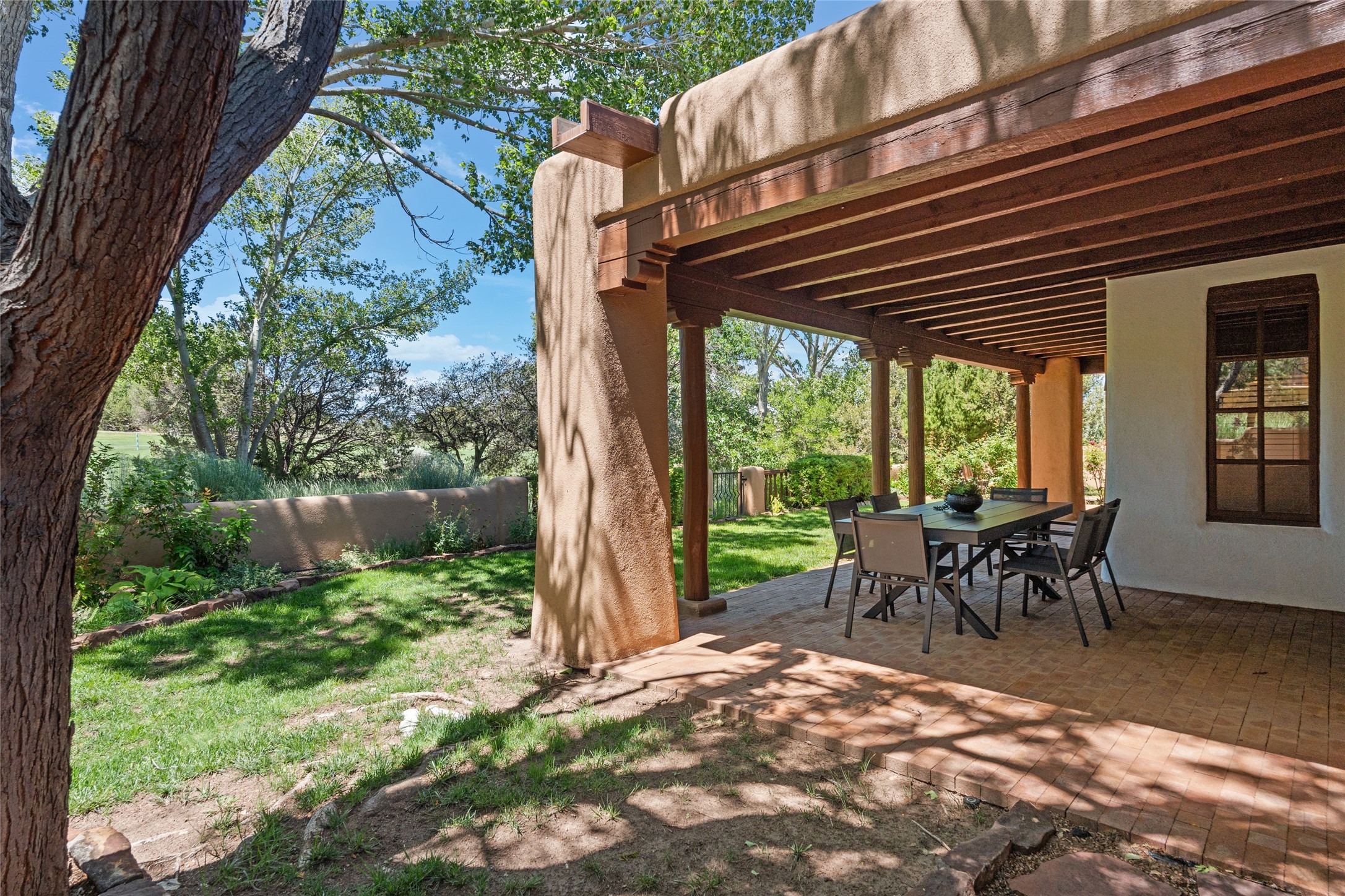 One of Quail Run's most coveted floorplans! The Pinon C is ideal with 2 spacious bedrooms and an office; just the right size to spread out and enjoy but not too much to maintain. This open space has plenty of light and Santa Fe charm with saltillo floors, 2 kiva fireplaces and vigas and beams throughout. Enjoy the lovely open kitchen and dining area which connects to a comfortable living room. Or relax outside in the ample portal with fabulous views of towering trees, the golf course, and those famously beautiful Santa Fe Skies. Abundant enjoyment to be had from this private, view-filled, expansive portal, truly special. Home ownership at Quail Run includes all the fantastic amenities such as 24 hour hosted security, state of the art workout areas and pool, varied fitness classes and social gatherings, pickleball, golf and much more; come and see!