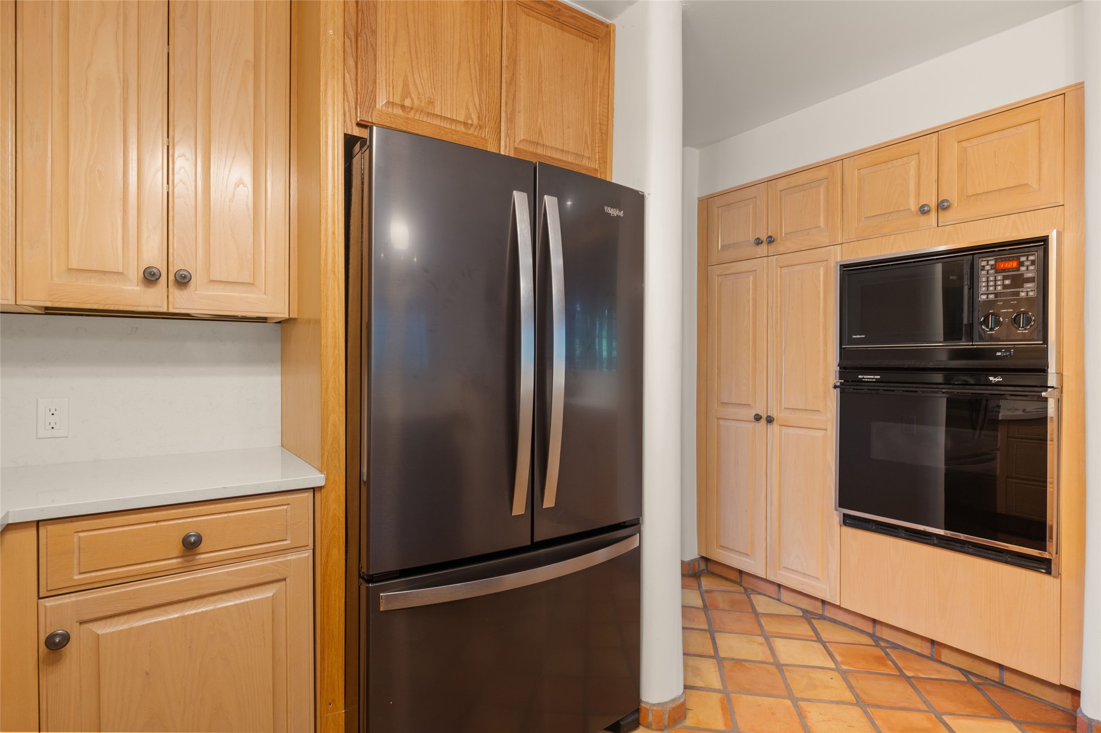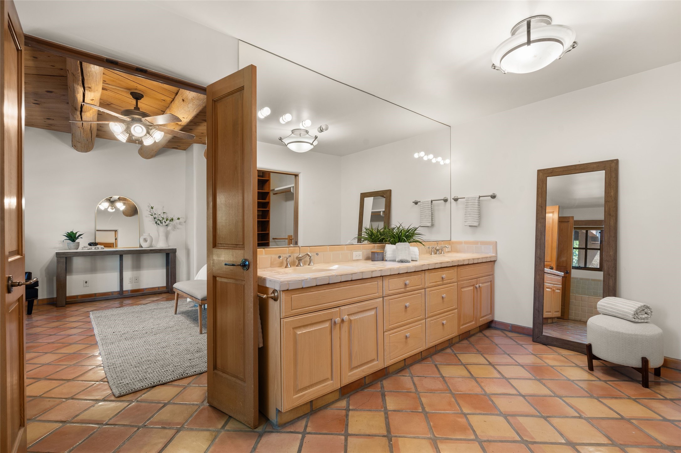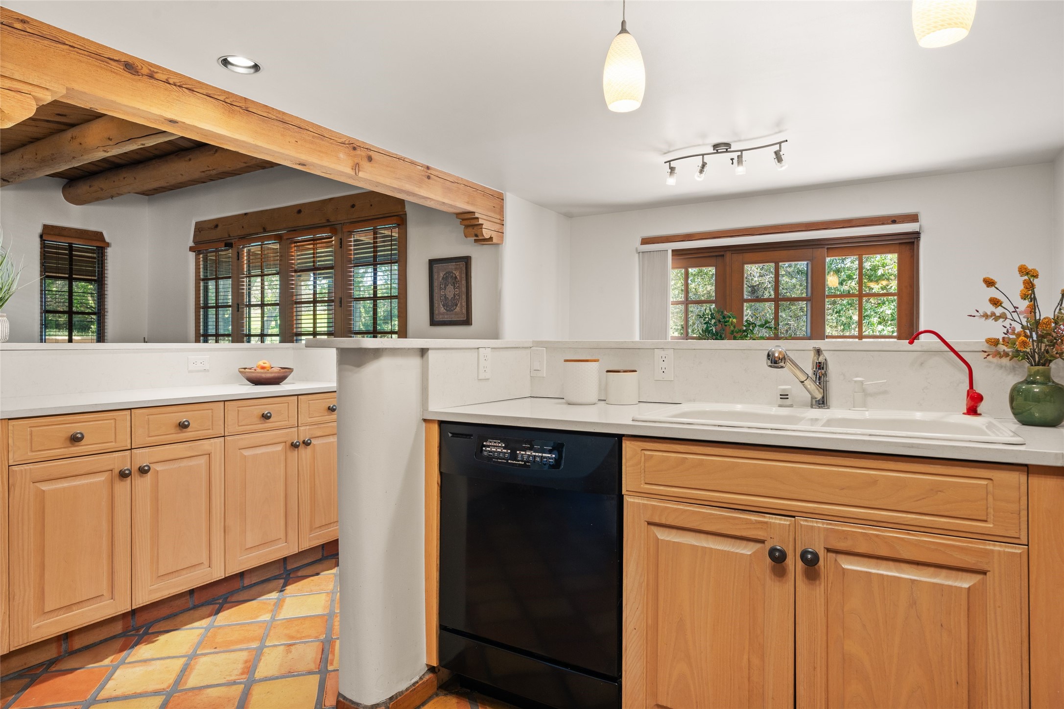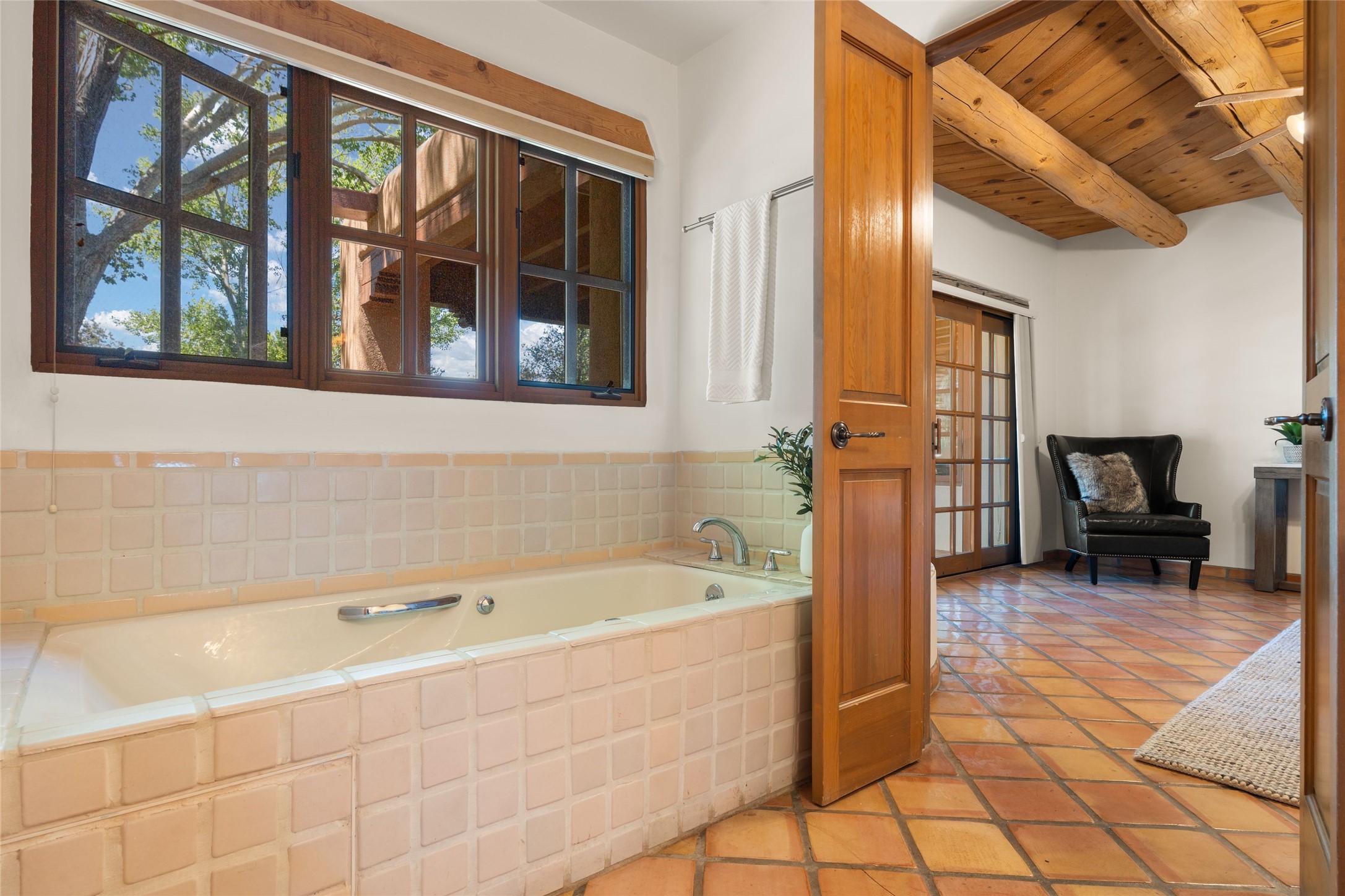 One of Quail Run's most coveted floorplans! The Pinon C is ideal with 2 spacious bedrooms and an office; just the right size to spread out and enjoy but not too much to maintain. This open space has plenty of light and Santa Fe charm with saltillo floors, 2 kiva fireplaces and vigas and beams throughout. Enjoy the lovely open kitchen and dining area which connects to a comfortable living room. Or relax outside in the ample portal with fabulous views of towering trees, the golf course, and those famously beautiful Santa Fe Skies. Abundant enjoyment to be had from this private, view-filled, expansive portal, truly special. Home ownership at Quail Run includes all the fantastic amenities such as 24 hour hosted security, state of the art workout areas and pool, varied fitness classes and social gatherings, pickleball, golf and much more; come and see!