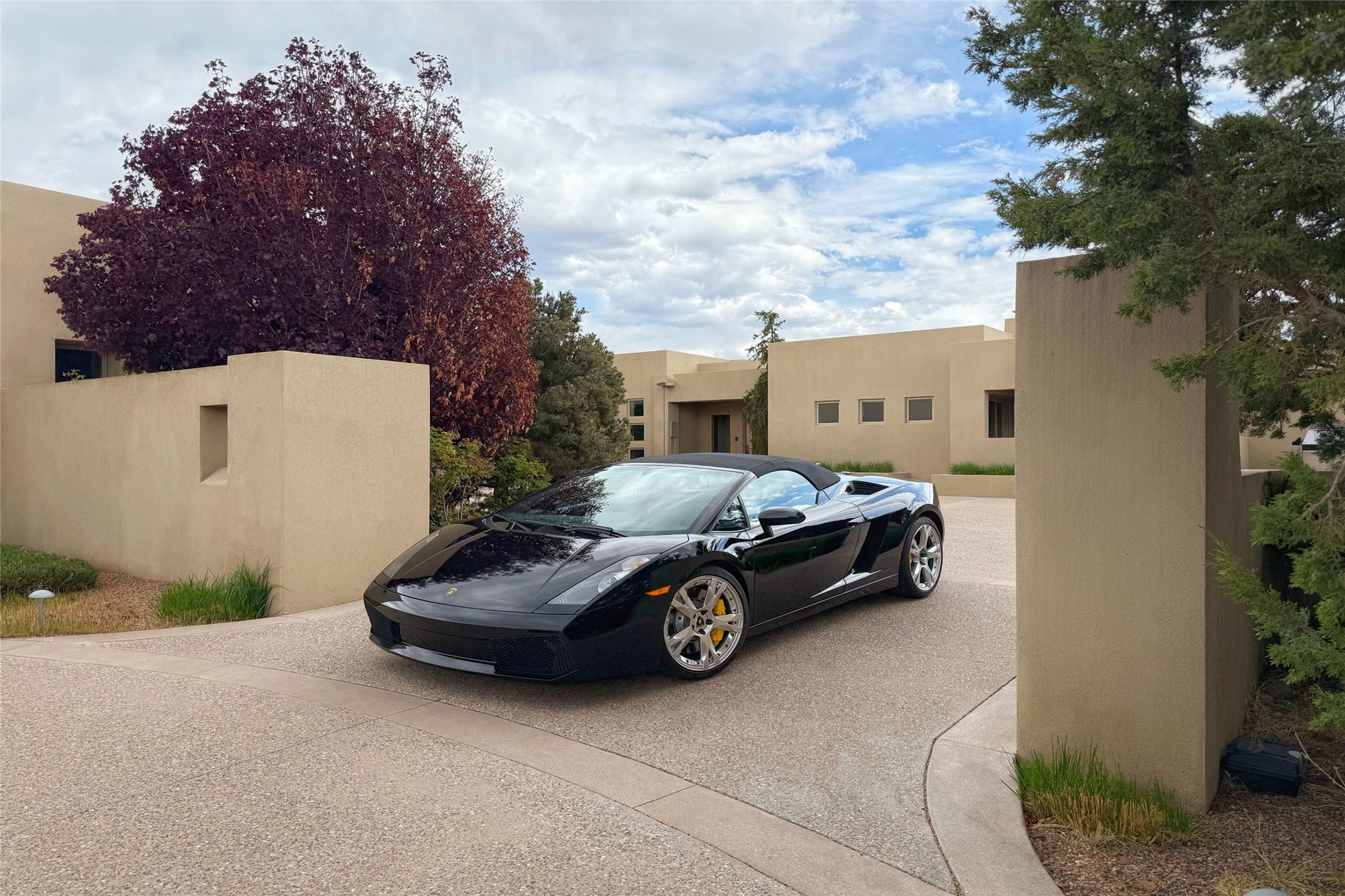 Prestigious Las Campanas Estate. Sophisticated Soft Contemporary on a Double Lot- over 3 acres for privacy.Welcome to an extraordinary estate built by Kim Dressel. Featuring a circular front drive, enclosed zen-like courtyard, and large separate motor court. With sweeping Sangre de Cristo views, this masterpiece blends elegance with tranquility and superb attention to detail. The entire residence is filled with natural light and augmented with custom lighting to showcase the art lover's collection.Interiors are graced with vigas and Desert Indian Sandstone floors. A total of 9 fireplaces (indoor and outdoor) provide warmth and charm. A generous entry hall, framed with alabaster sculptural lighting opens to the Great Room, anchored with a center fireplace and inspired by a bank of floor to ceiling windows that showcase the Sangre de Cristos. This space flaunts soaring ceilings and clerestory windows that flood the space with light. A gourmet kitchen features a large center island with Taj Mahal countertops, Sub-Zero/Wolf appliances, and opens to adjoining formal dining area and a cozy family room. A lavish primary suite offers a fireplace and an east facingportal complete with hot tub, fireplace and mountain views. Primary bath includes dual vanities, steam shower, soaking tub, dry sauna and custom closet. Adjacent home gym for convenience. Transition to the second wing through an impressive Gallery Hall designed for private art collections, exhibits and concert entertaining. A dedicated wine tasting space and sculpture garden complete the gallery.The secondary residence area includes large media room,office, two ensuite bedrooms with fireplaces and patios.Multiple outdoor spaces for indoor/outdoor living and entertaining including a deep covered portal with skylights, water feature, built-in grill and banco seating.Sparing no expense, this architectural gem delivers high-end fit and finishes throughout. The ultimate in style and serene luxury.