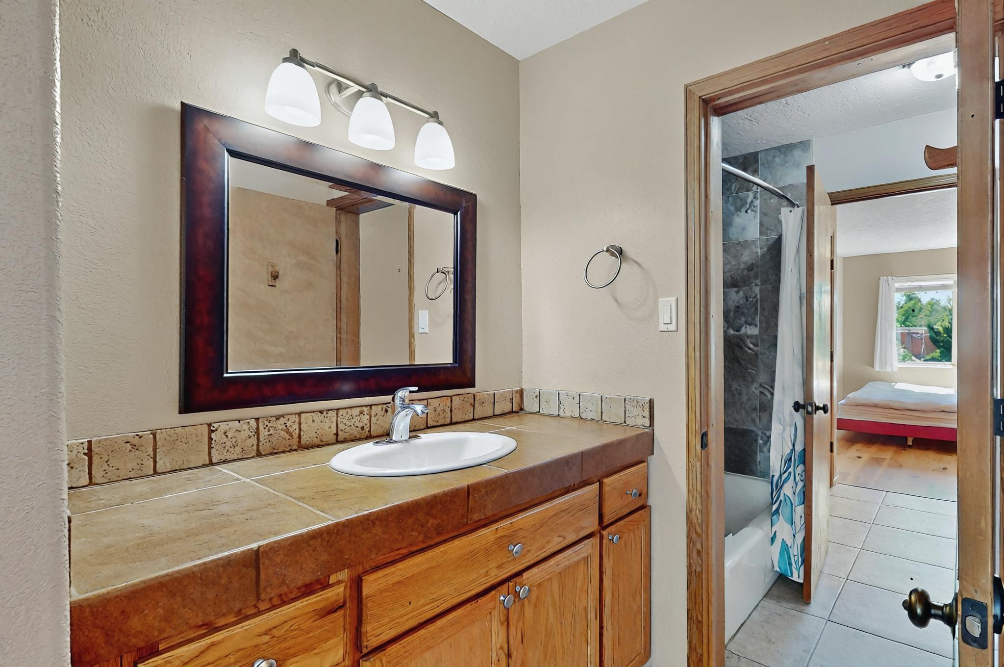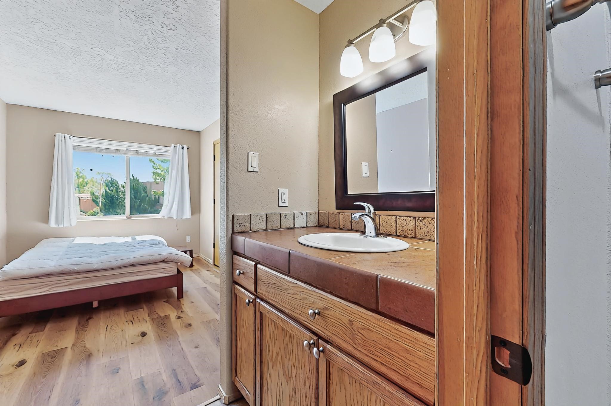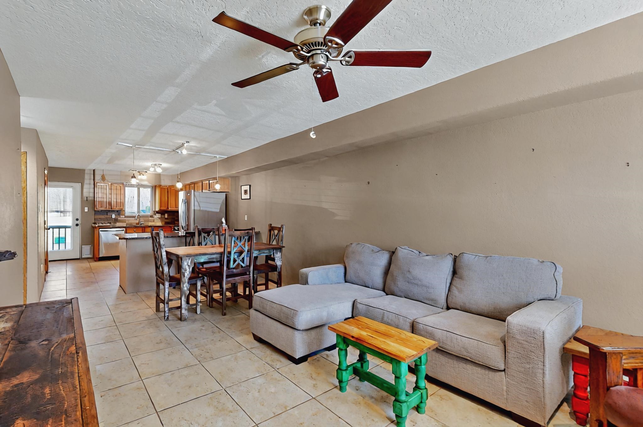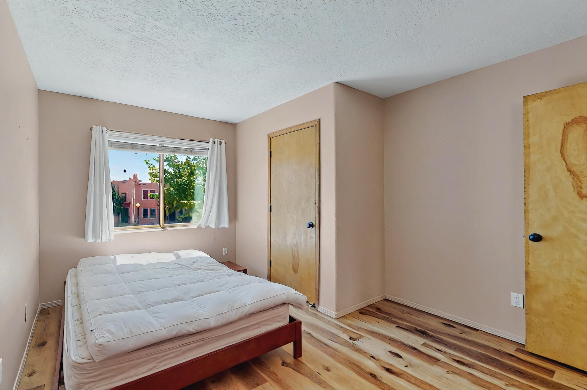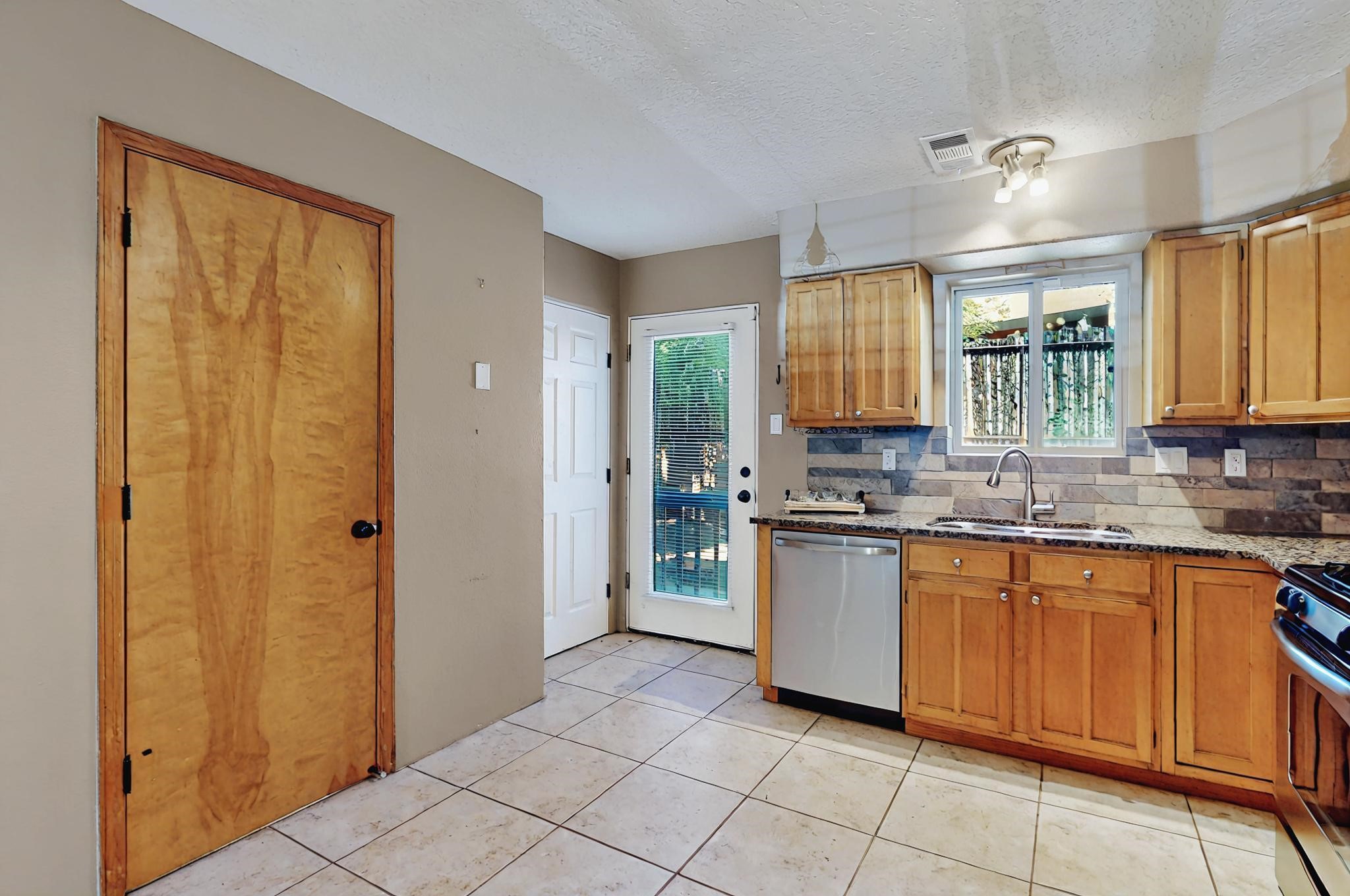 This is a charming townhome on an end lot. The convenient open floorplan includes a living room with a kiva fireplace leading to the dining area and kitchen with counter space for eating. Out the backdoor is a lovely sitting area with a small storage shed. There is also a 1/2 bath and a stacked washer/dryer downstairs. Upstairs are 2 bedrooms with views and a jack-&-jill bathroom. Central air was added; new hot water heater 2023; new laminate flooring upstairs, carpet on stairs, tile downstairs 2023; ADT security system 2023; fireplace cleaned and maintenance performed yearly; window added downstairs; additional over-head light added in the living room. Roof needs to be replaced and price has been adjusted accordingly. This is an estate.