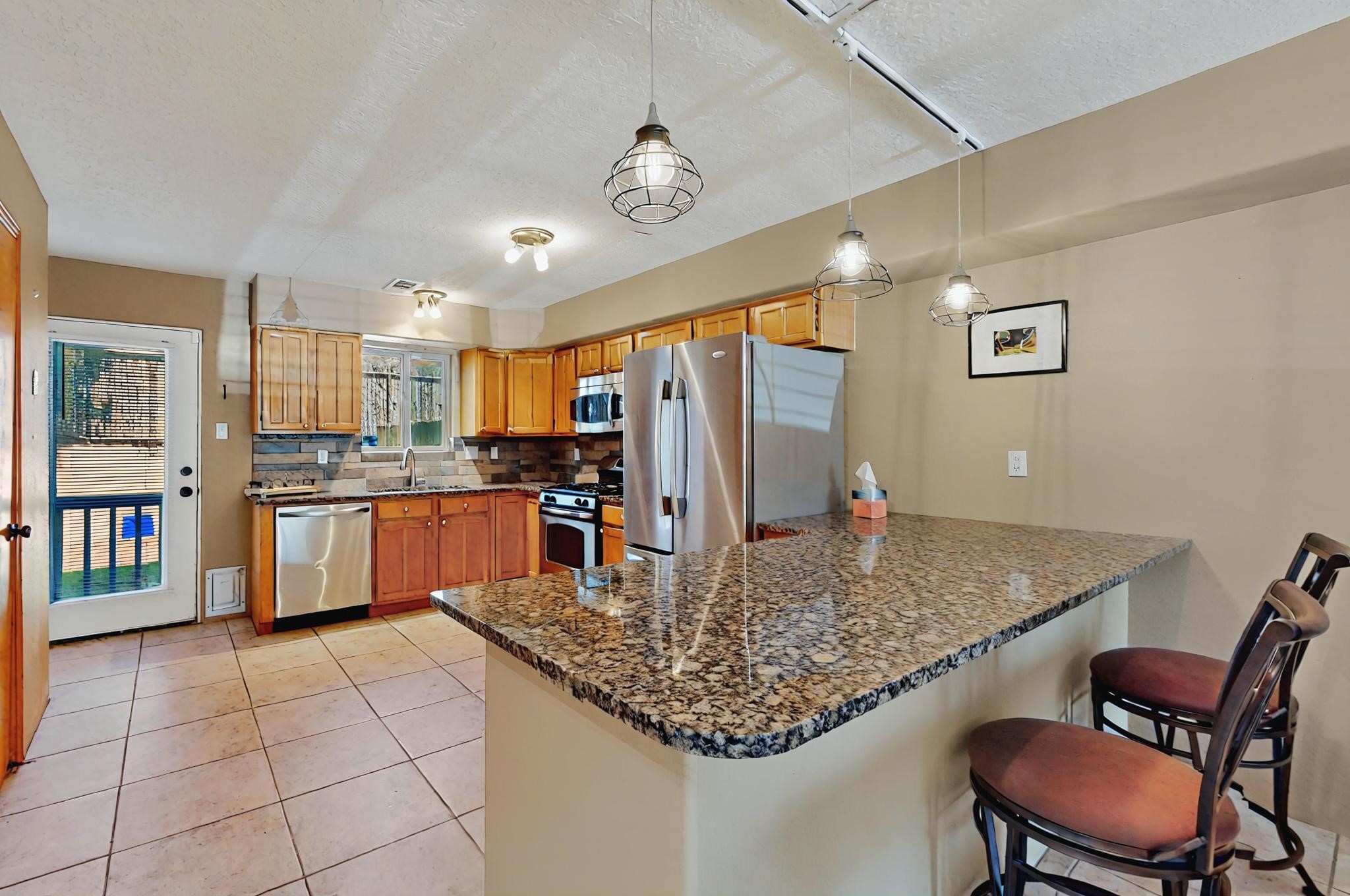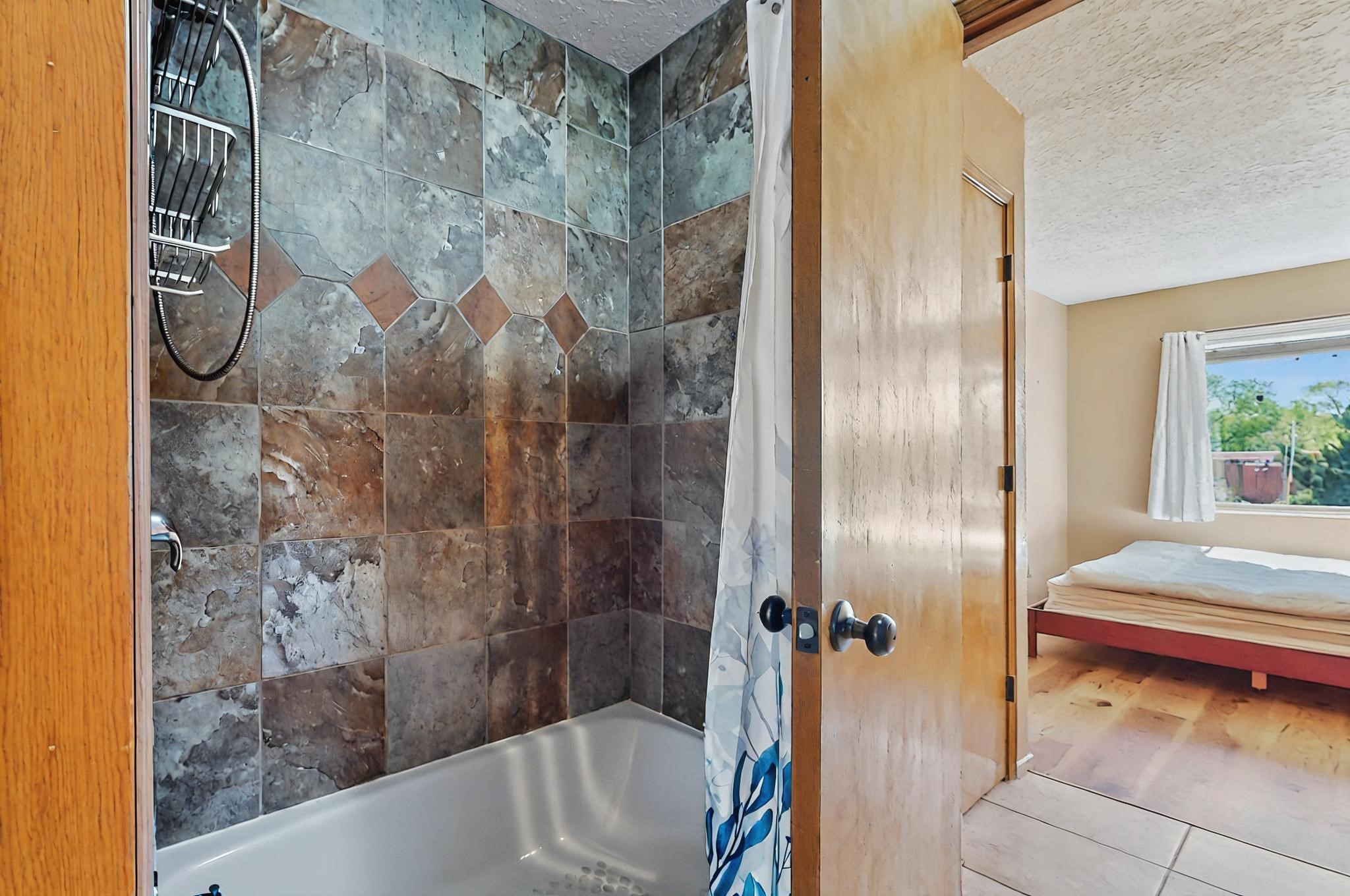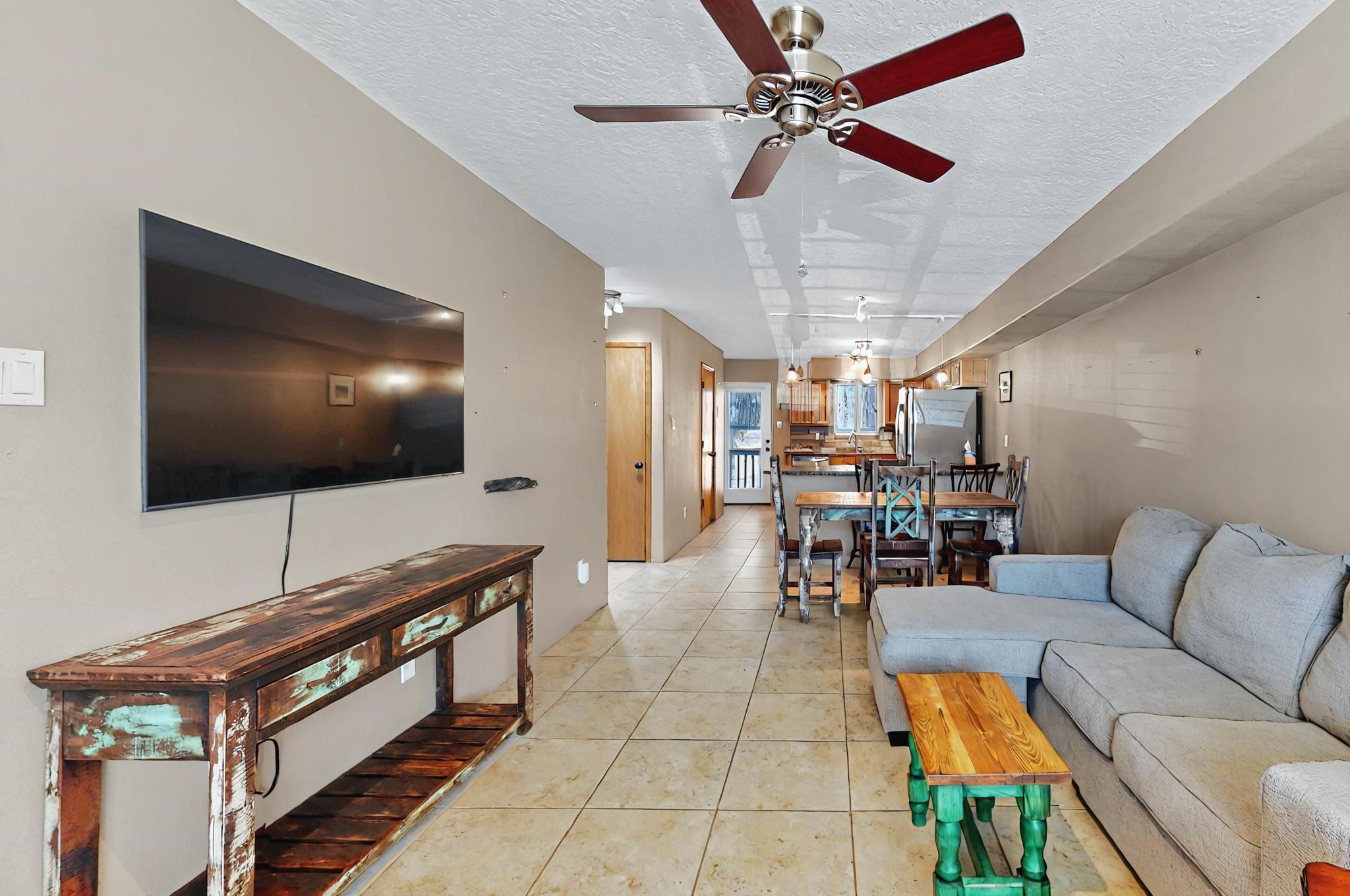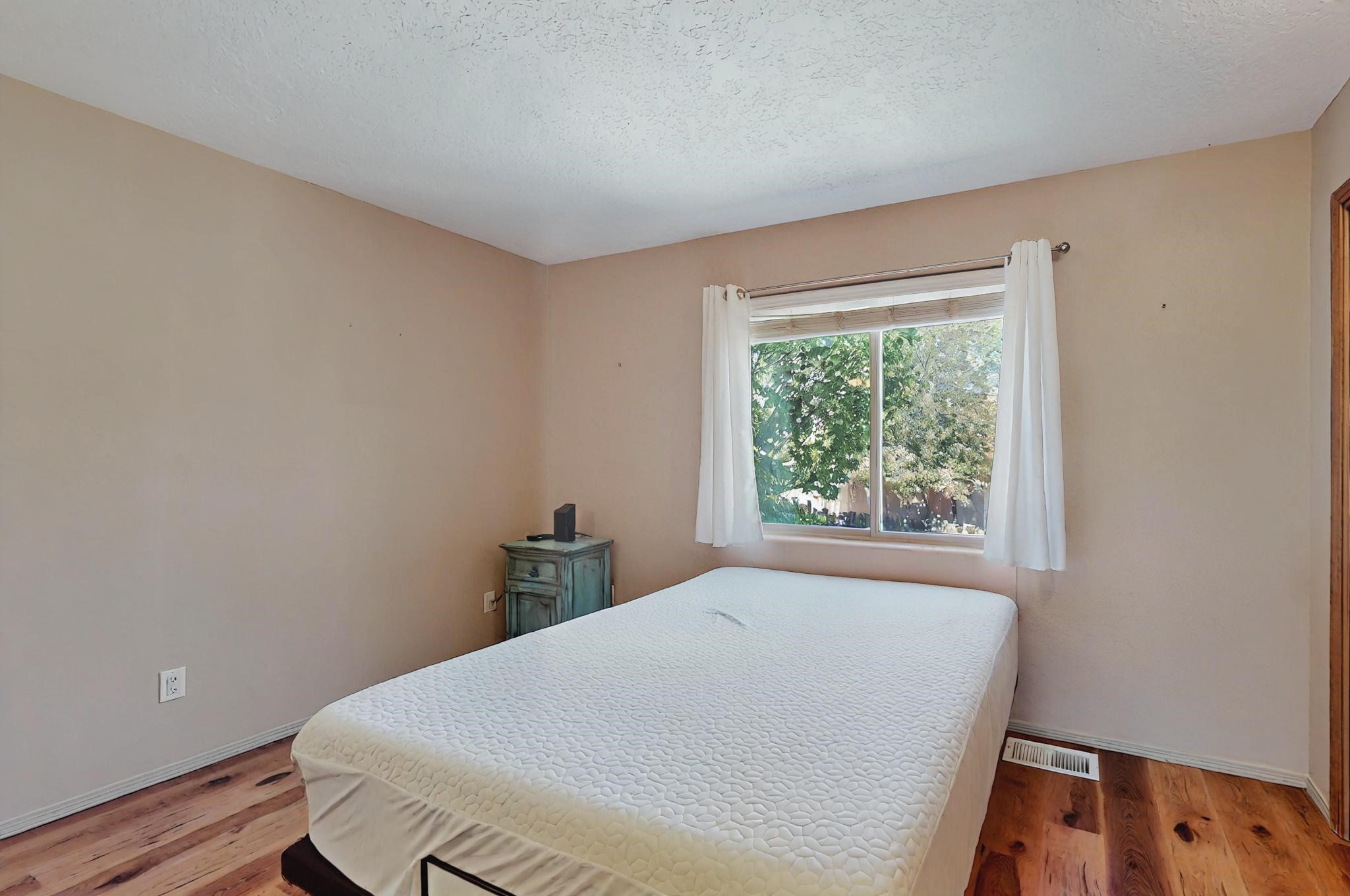 This is a charming townhome on an end lot. The convenient open floorplan includes a living room with a kiva fireplace leading to the dining area and kitchen with counter space for eating. Out the backdoor is a lovely sitting area with a small storage shed. There is also a 1/2 bath and a stacked washer/dryer downstairs. Upstairs are 2 bedrooms with views and a jack-&-jill bathroom. Central air was added; new hot water heater 2023; new laminate flooring upstairs, carpet on stairs, tile downstairs 2023; ADT security system 2023; fireplace cleaned and maintenance performed yearly; window added downstairs; additional over-head light added in the living room. Roof needs to be replaced and price has been adjusted accordingly. This is an estate.