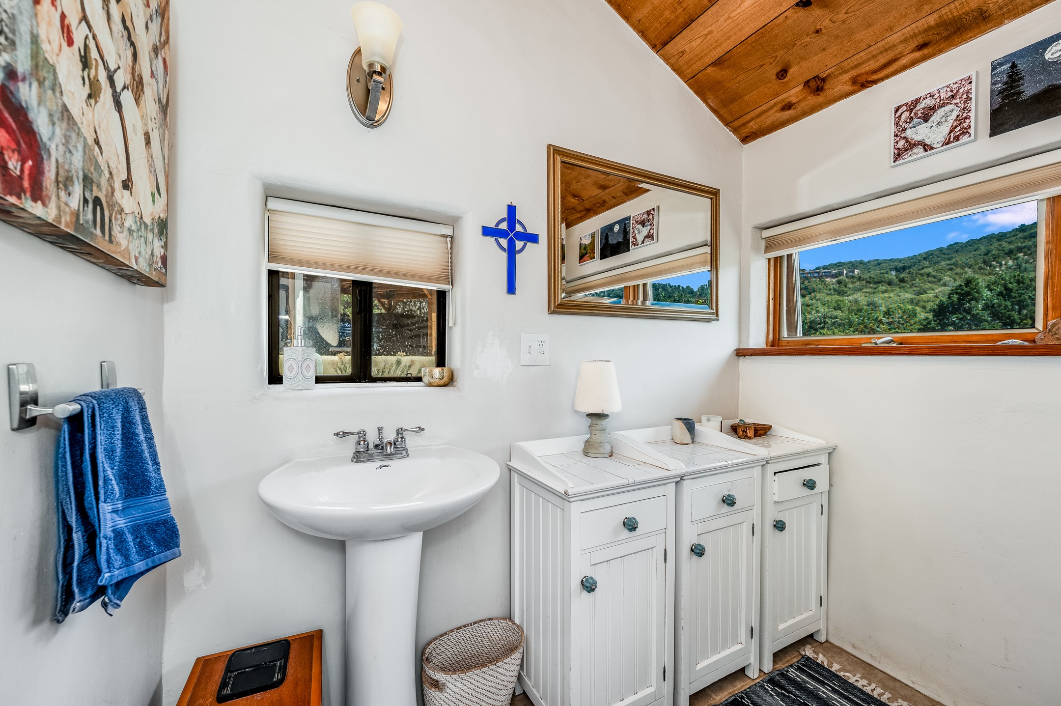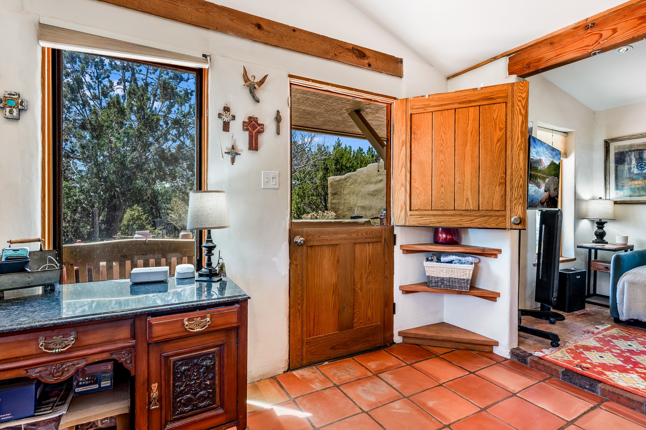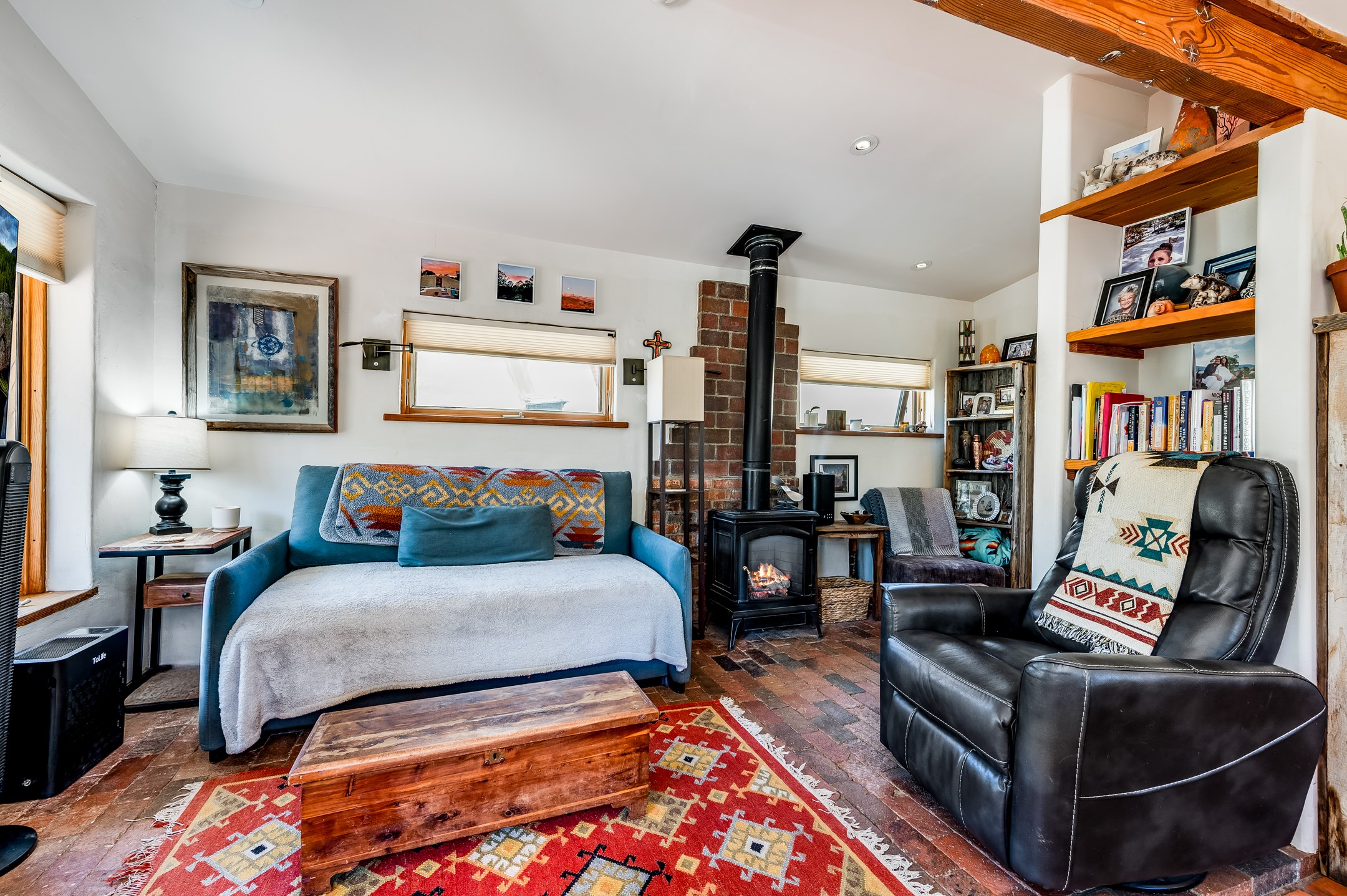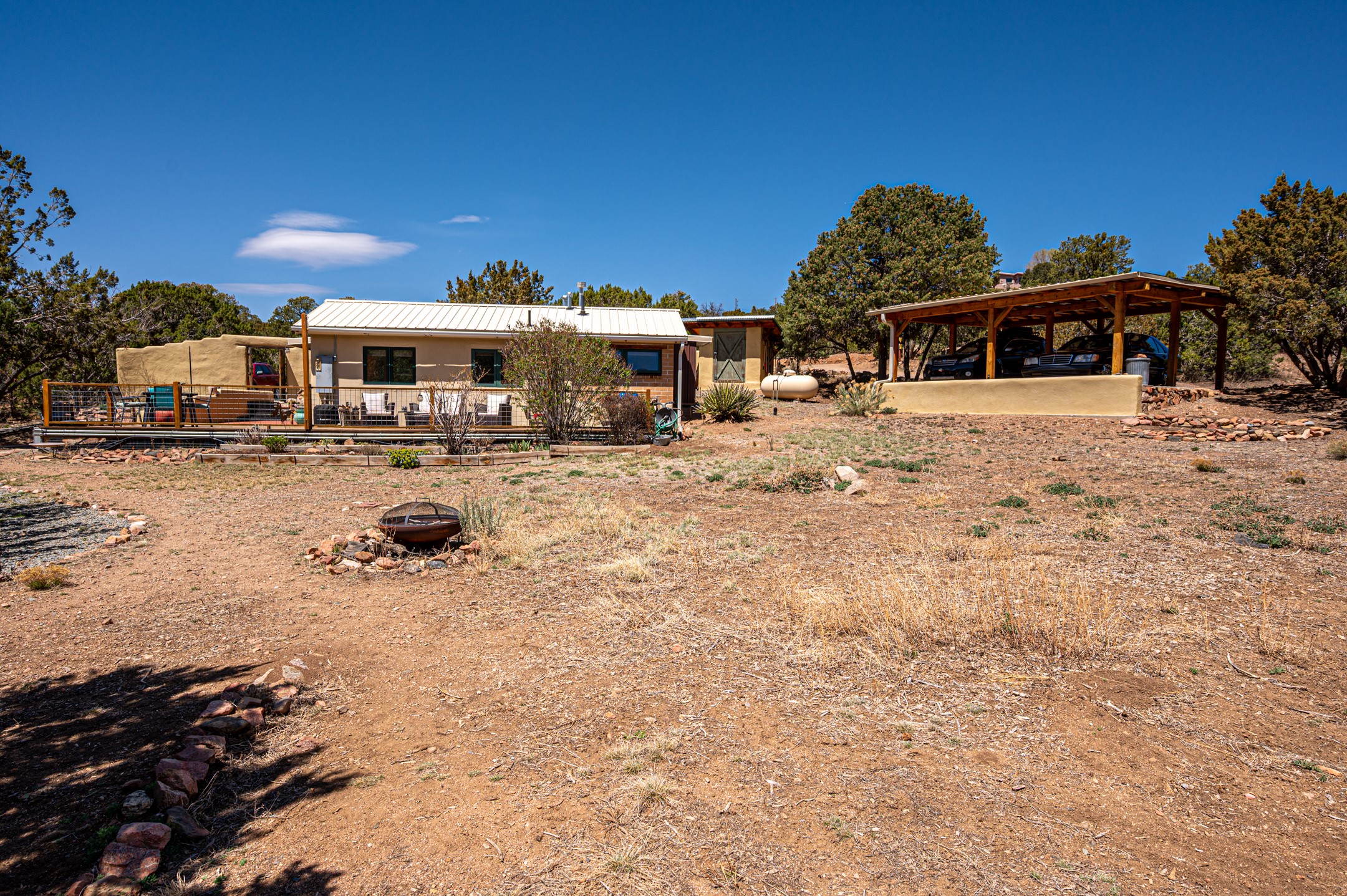 Discover this one-of-a-kind retreat nestled into the foothills of the Sangre de Cristo Mountains. Sited on 5 acres of idyllic high desert terrain off Old Santa Fe Trail, the ber-private property will make you forget the hustle and bustle and embrace open spaces, cool breezes, and endless starry skies. Featuring a +/- 600 sqft main house with gas fireplace in addition to a +/-315 sqft yurt with wood-burning stove, there is abundant space for creative endeavors and guests alike. The open concept kitchen is fully equipped with stainless steel appliances, the living area doubles as a bedroom with en suite walk-in closet and bathroom with a stackable washer and dryer. A spacious wrap-around deck will be the perfect perch for morning coffee and Al-fresco dining. The inclusion of photovoltaic solar panels, a shared well, and cistern for rain water harvesting will appeal to your environmental consciousness. Amenities are a moment away, with Harry's Roadhouse, The Agora Center in Eldorado, athletic facilities at El Gancho, and downtown Santa Fe, just to name a few. Prime for relaxation, enjoying hiking trails from your doorstep, homesteading with bountiful fruit trees, and more, this home is more than just a place to stay--it's a place to recharge, refresh, and reignite your spirit. **See broker remarks for more information. Details as provided by Sellers.