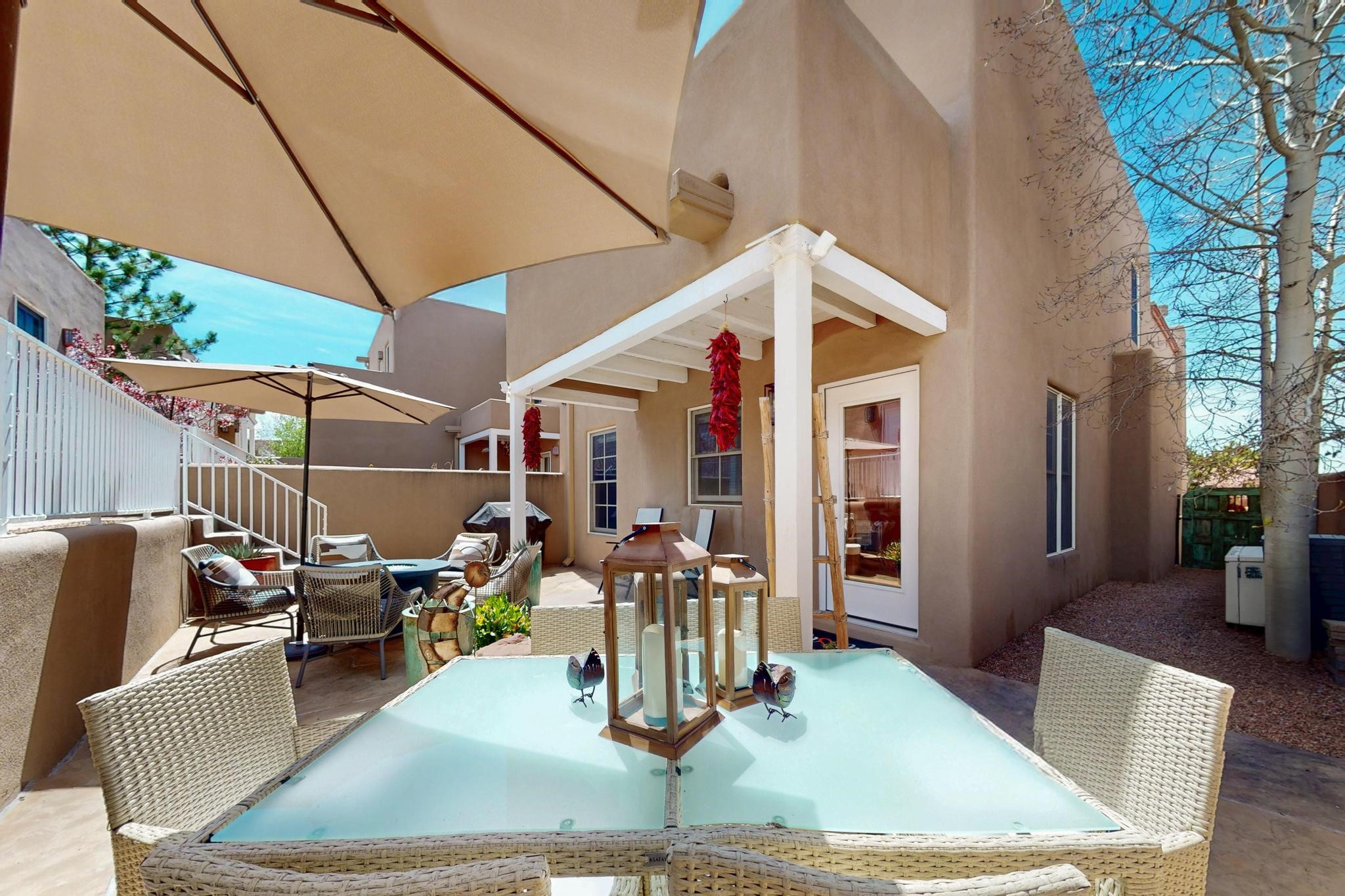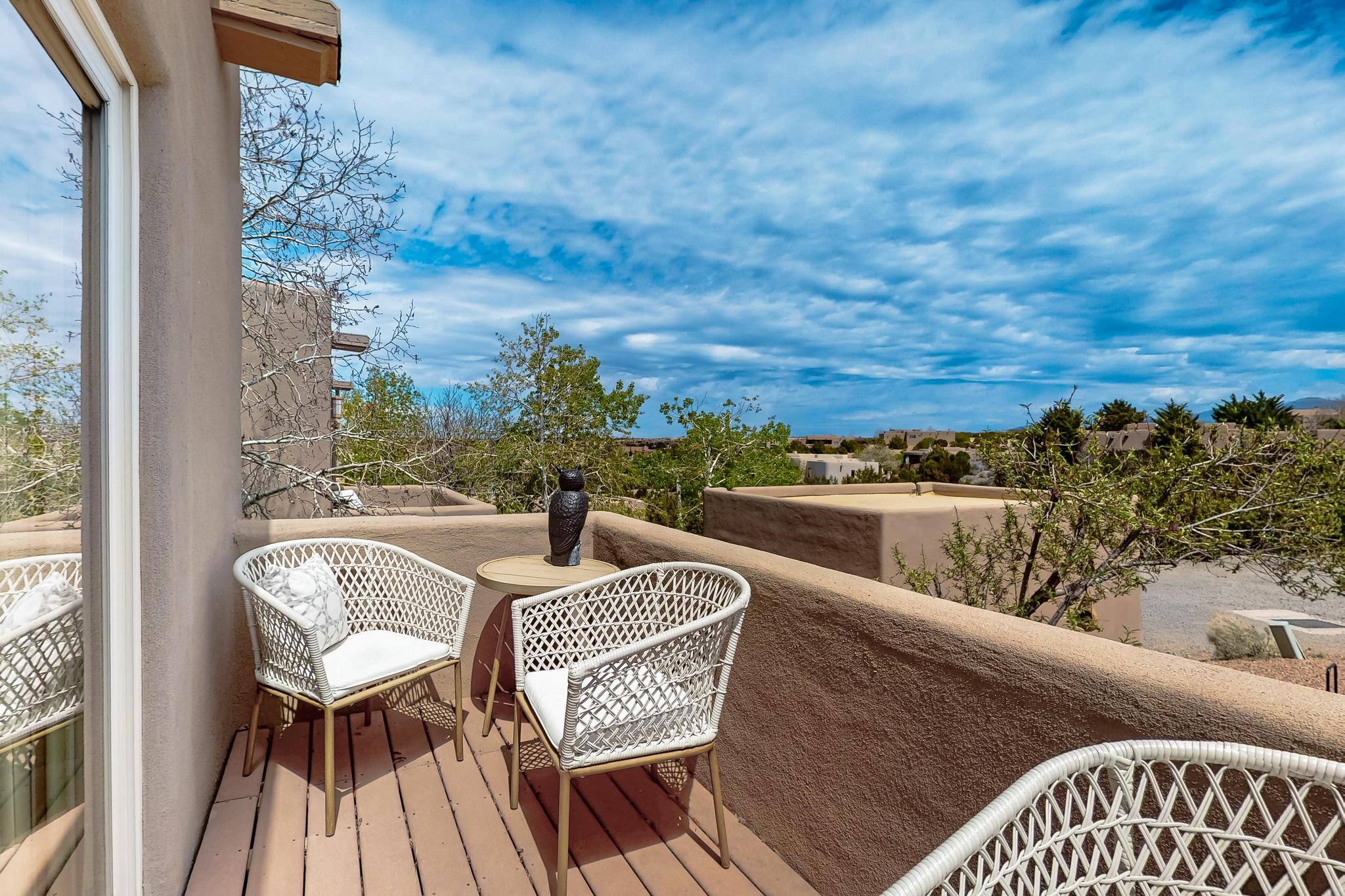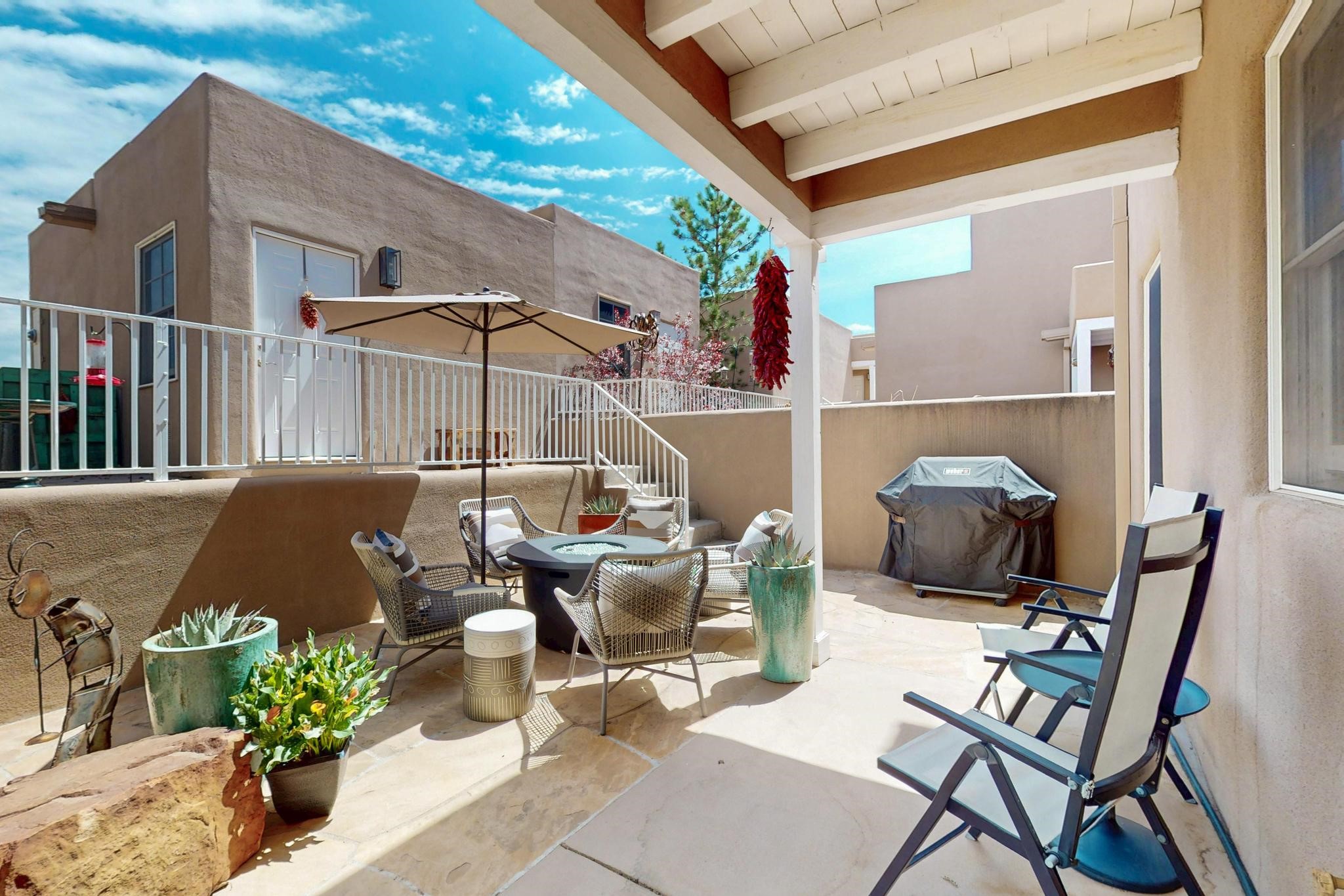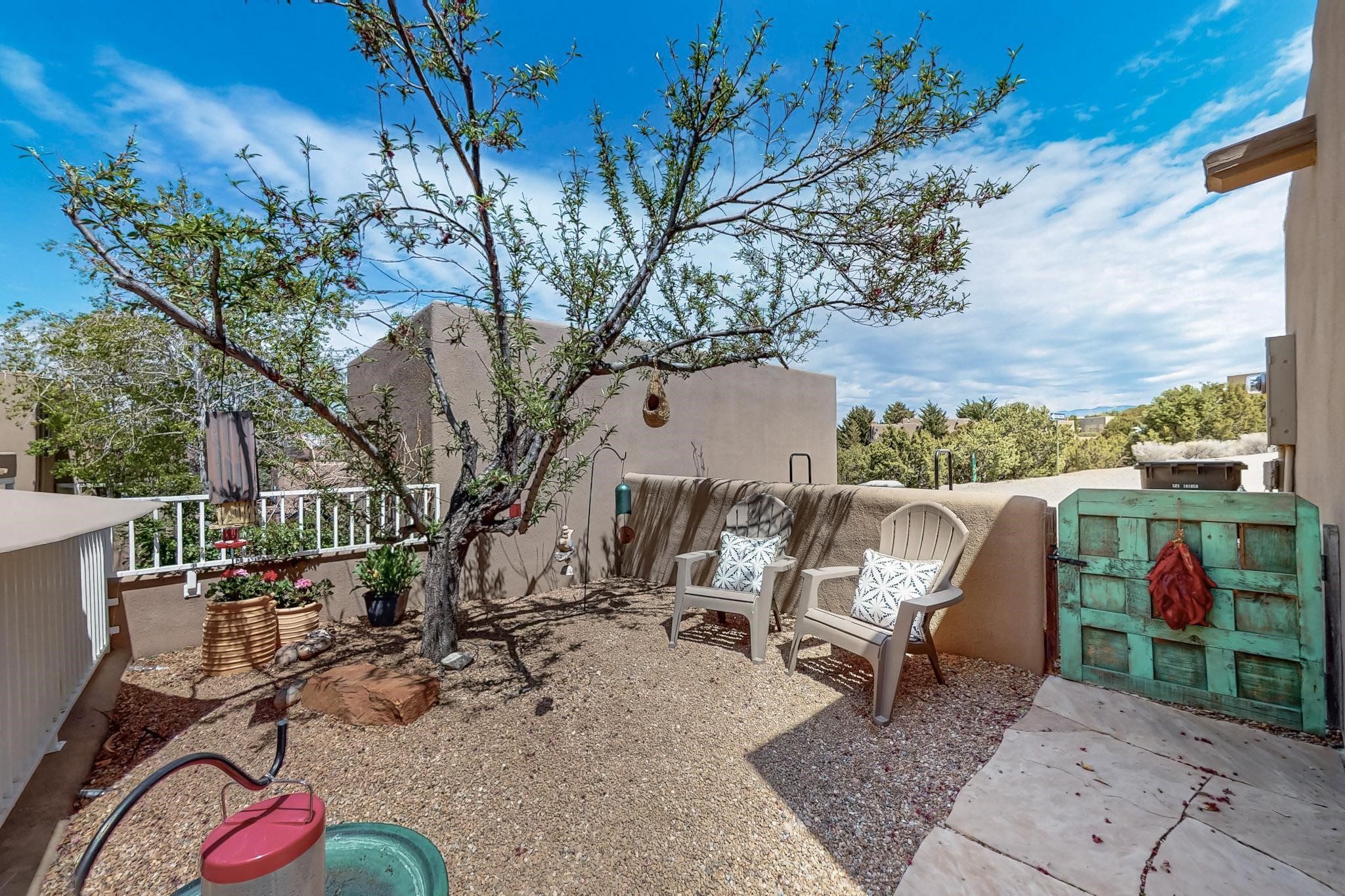 This beautiful and meticulously cared for townhome, located in the popular and sought-after Aldea de Santa Fe, is just what you've been looking for. With tons of natural light and fantastic stylish touches lovingly added to provide both beauty and convenience, there is nothing you need to do here other than relax and enjoy. The list of improvements (attached in documents) is long, including the backyard flagstone patio, a complete redo of the kiva fireplace, an incredible display nicho, and much more. Minutes from historic downtown Santa Fe, and with breathtaking views of the Sangre De Cristo Mountains from the deck just off the primary bedroom, every inch of this home exudes comfort and joy. And don't forget all the amenities available in Aldea: miles of walking trails and open space, tennis and basketball courts, as well as a community center and private parks! Schedule your private tour today!