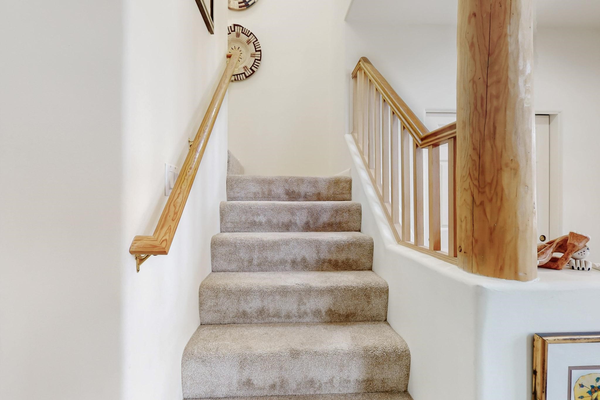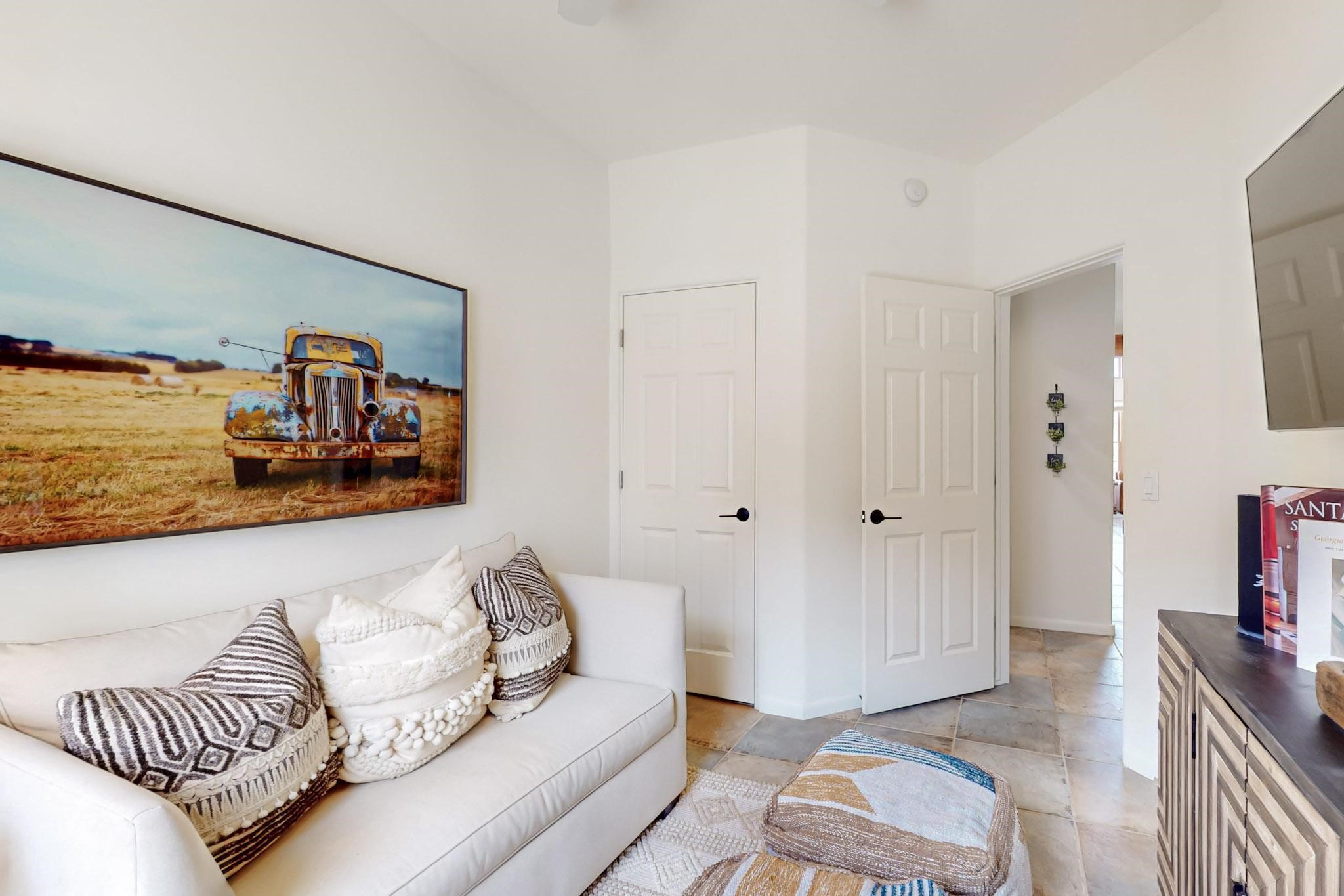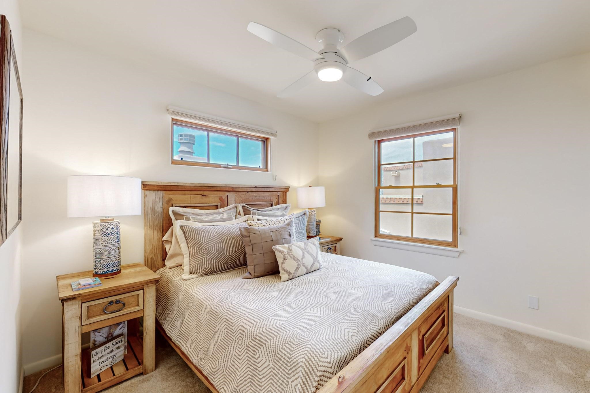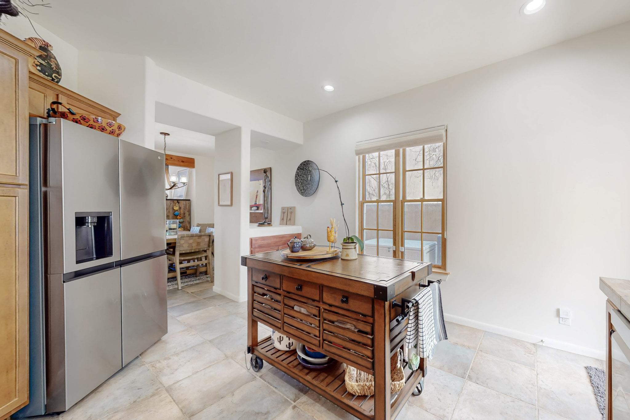 This beautiful and meticulously cared for townhome, located in the popular and sought-after Aldea de Santa Fe, is just what you've been looking for. With tons of natural light and fantastic stylish touches lovingly added to provide both beauty and convenience, there is nothing you need to do here other than relax and enjoy. The list of improvements (attached in documents) is long, including the backyard flagstone patio, a complete redo of the kiva fireplace, an incredible display nicho, and much more. Minutes from historic downtown Santa Fe, and with breathtaking views of the Sangre De Cristo Mountains from the deck just off the primary bedroom, every inch of this home exudes comfort and joy. And don't forget all the amenities available in Aldea: miles of walking trails and open space, tennis and basketball courts, as well as a community center and private parks! Schedule your private tour today!
