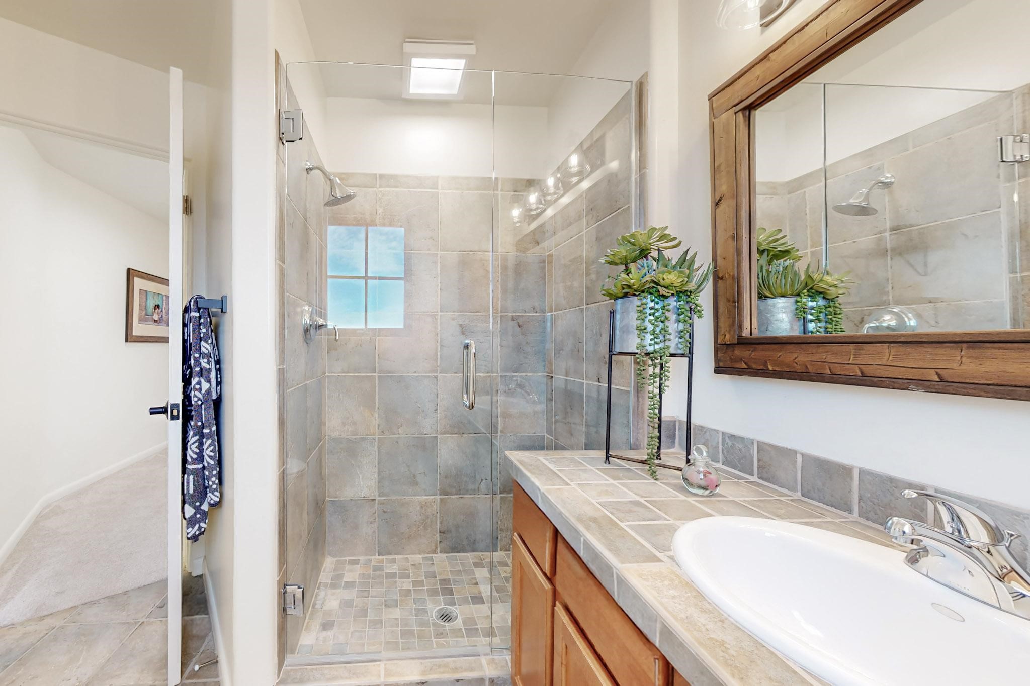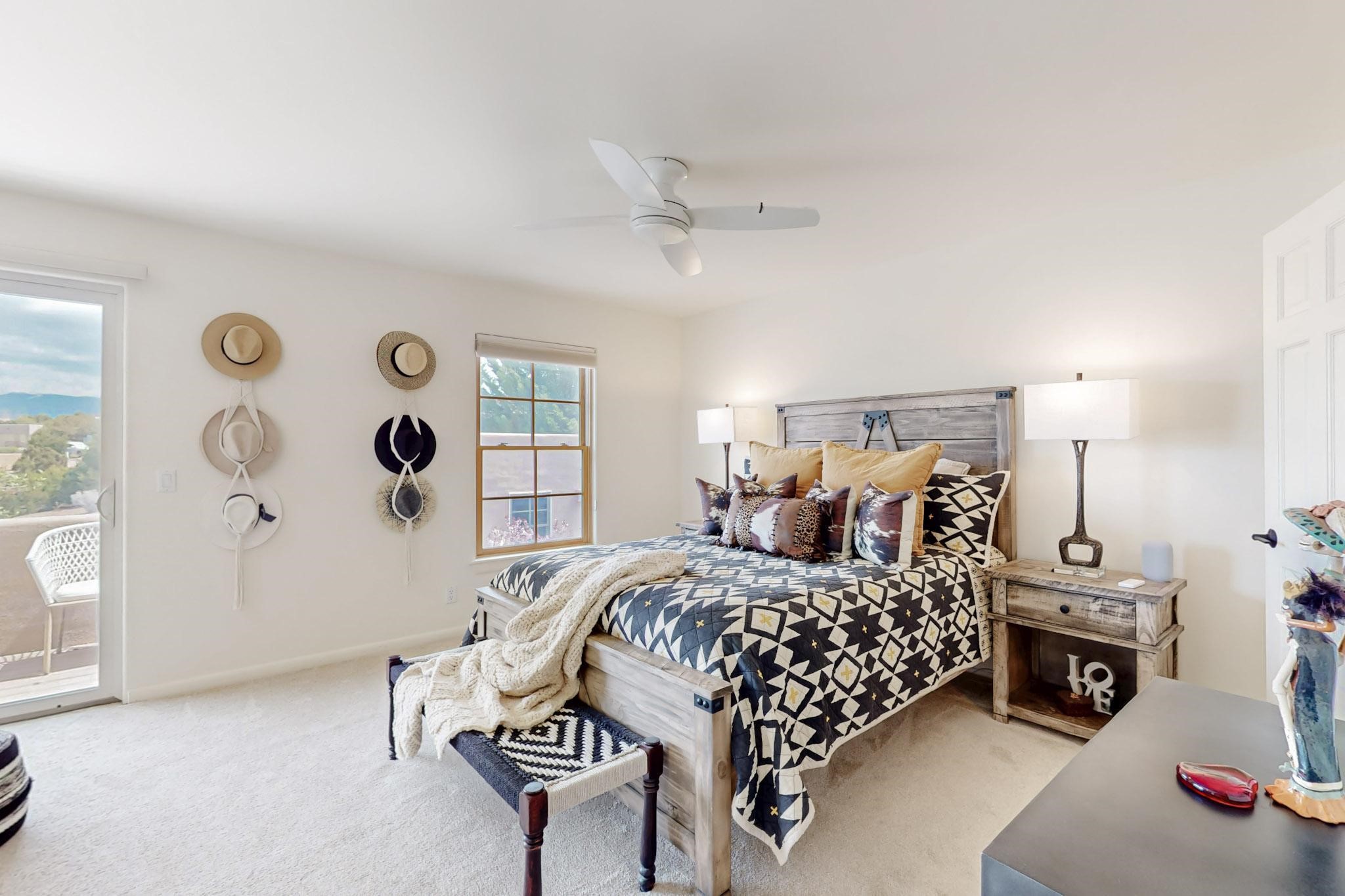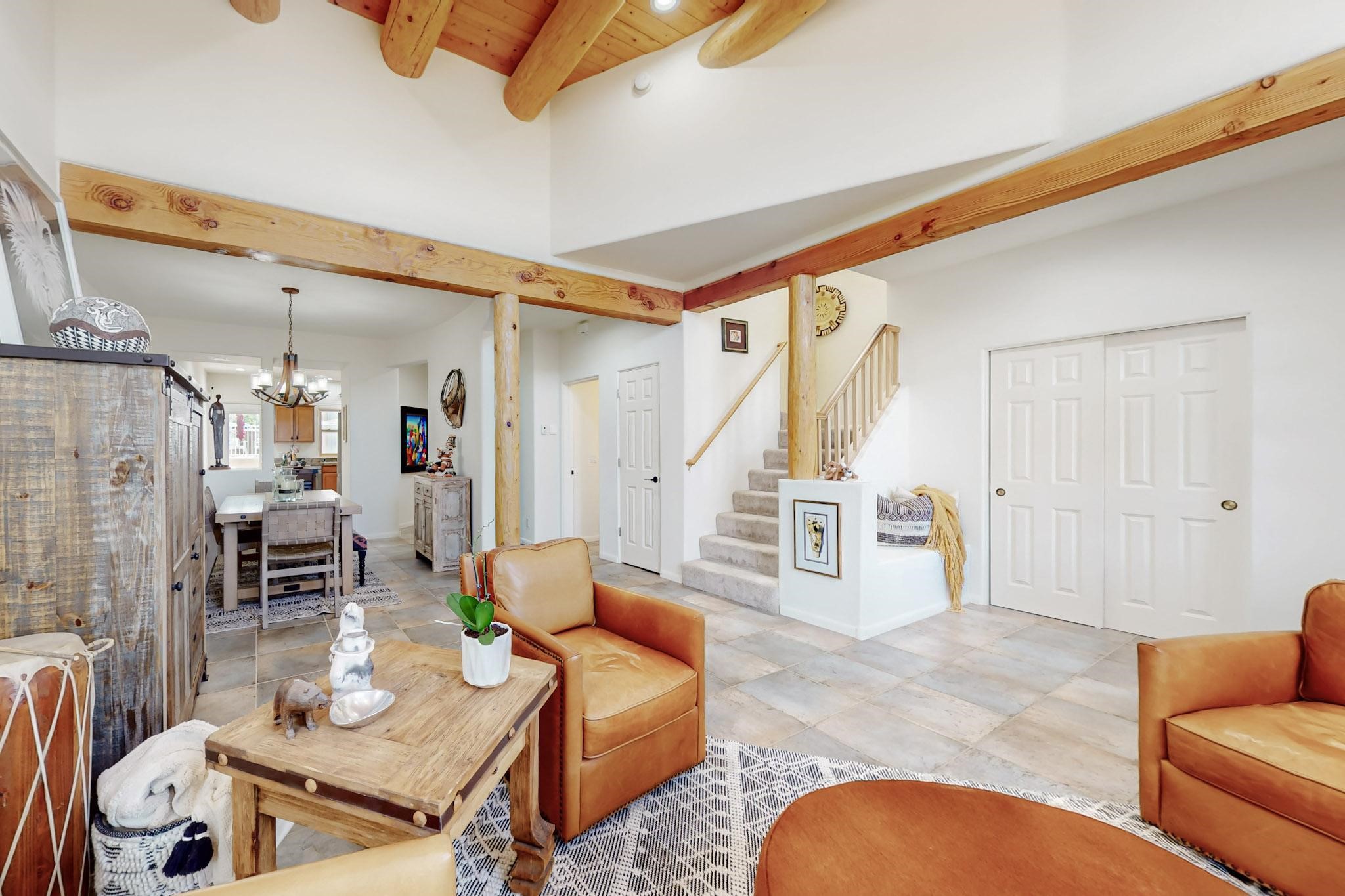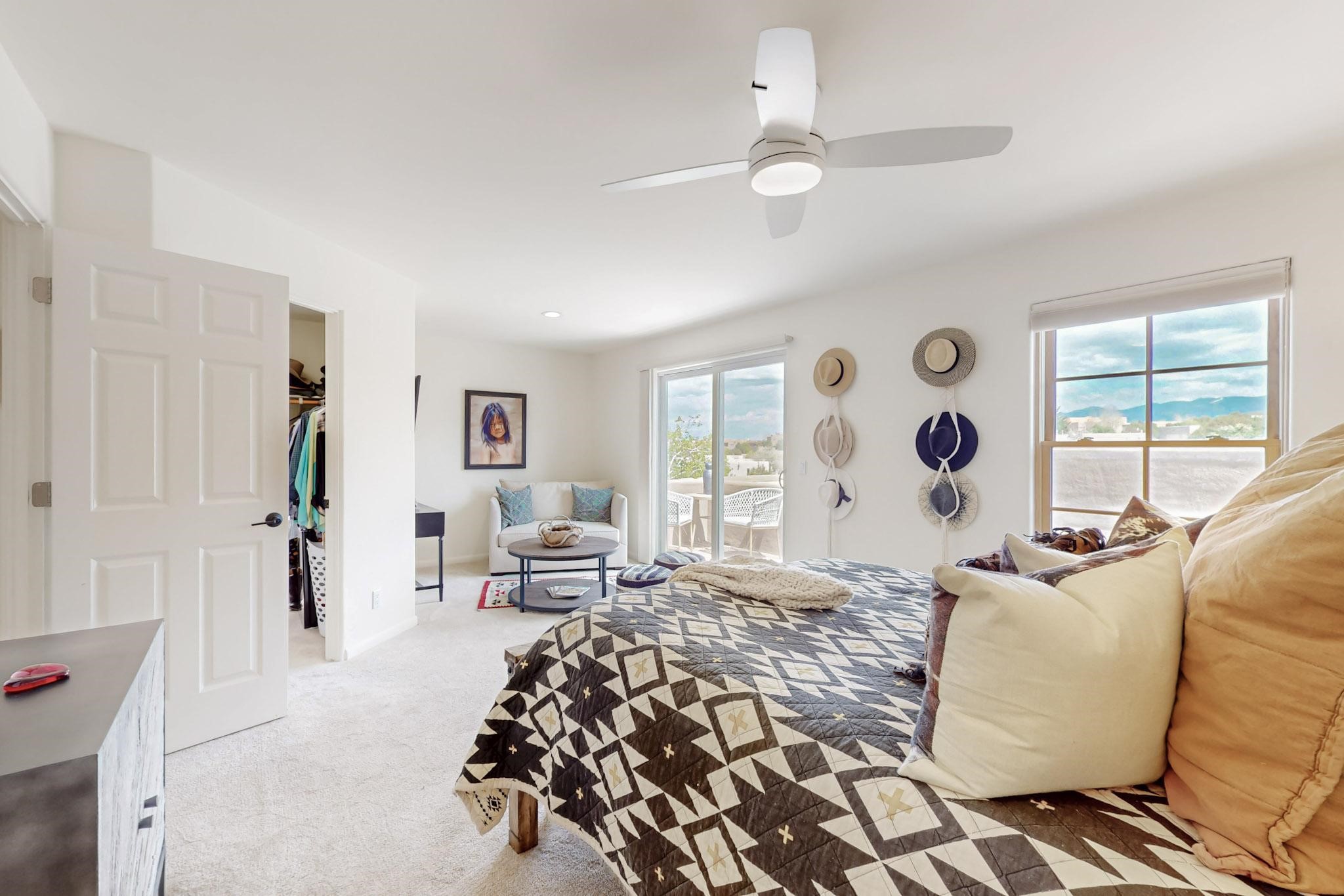 This beautiful and meticulously cared for townhome, located in the popular and sought-after Aldea de Santa Fe, is just what you've been looking for. With tons of natural light and fantastic stylish touches lovingly added to provide both beauty and convenience, there is nothing you need to do here other than relax and enjoy. The list of improvements (attached in documents) is long, including the backyard flagstone patio, a complete redo of the kiva fireplace, an incredible display nicho, and much more. Minutes from historic downtown Santa Fe, and with breathtaking views of the Sangre De Cristo Mountains from the deck just off the primary bedroom, every inch of this home exudes comfort and joy. And don't forget all the amenities available in Aldea: miles of walking trails and open space, tennis and basketball courts, as well as a community center and private parks! Schedule your private tour today!