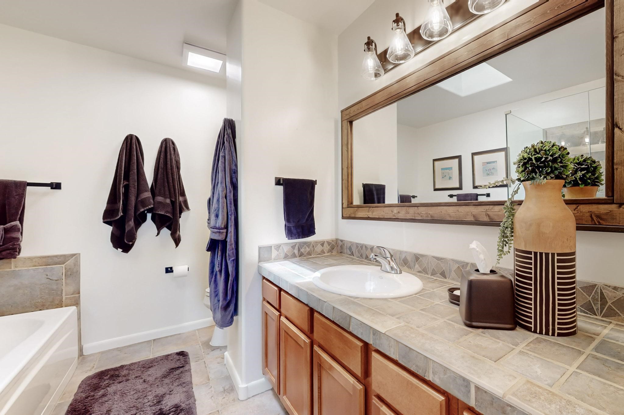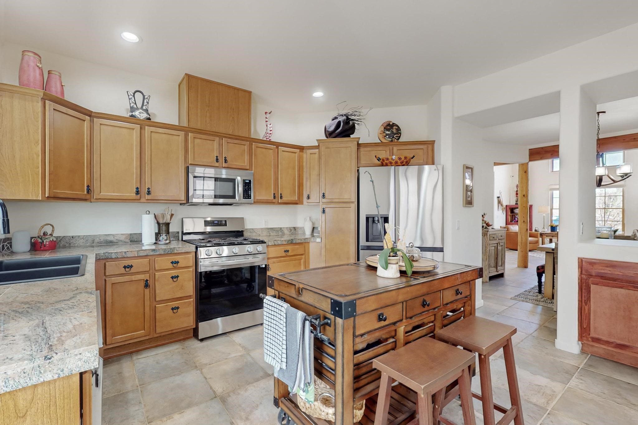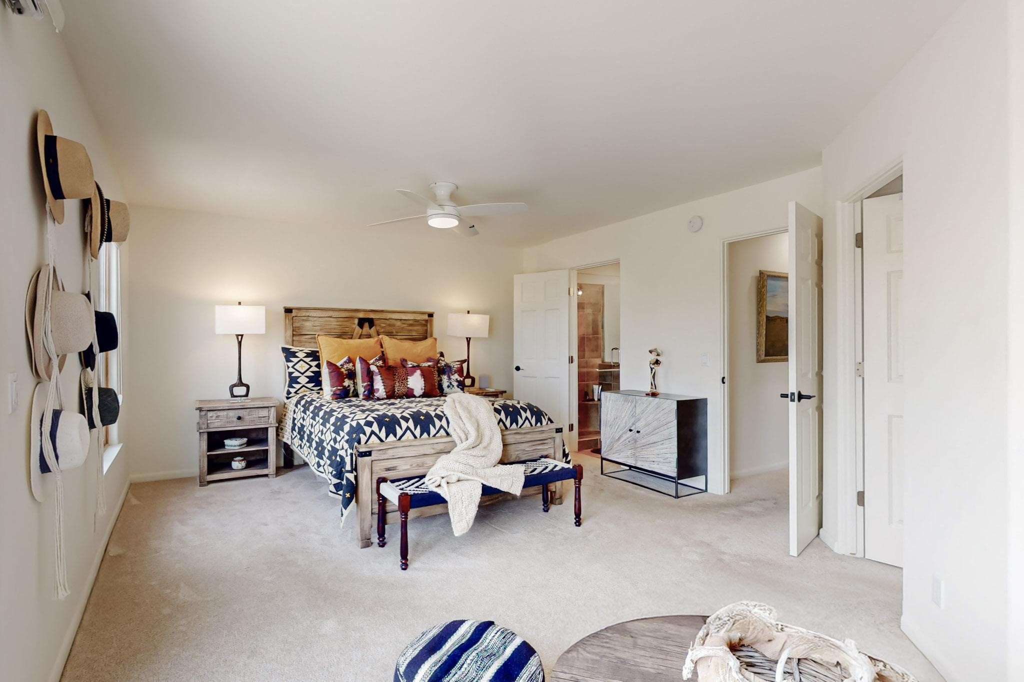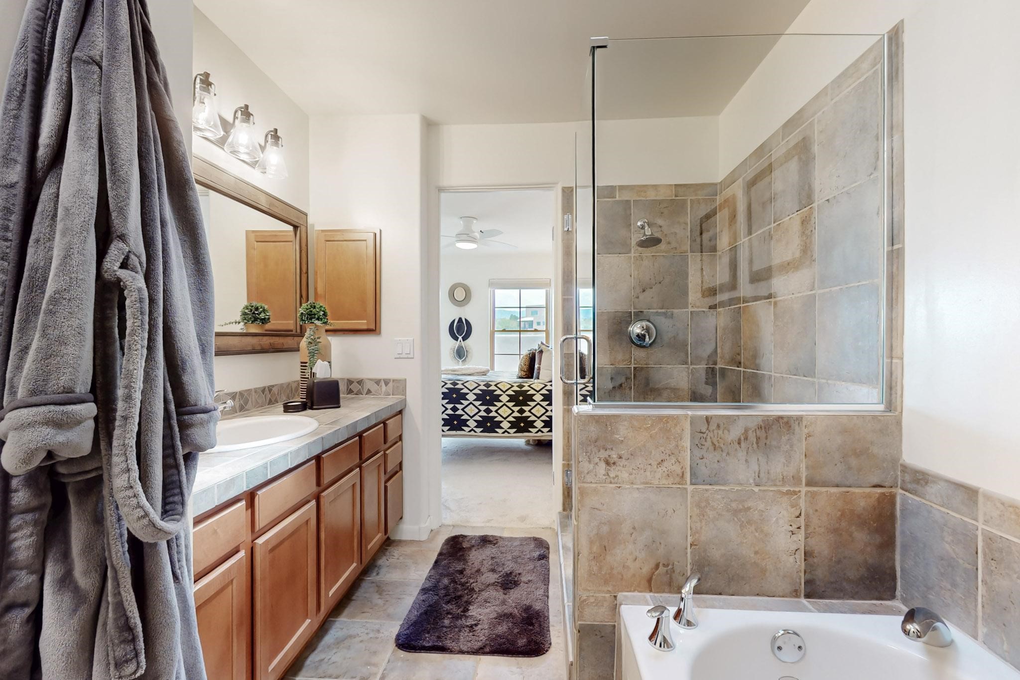 This beautiful and meticulously cared for townhome, located in the popular and sought-after Aldea de Santa Fe, is just what you've been looking for. With tons of natural light and fantastic stylish touches lovingly added to provide both beauty and convenience, there is nothing you need to do here other than relax and enjoy. The list of improvements (attached in documents) is long, including the backyard flagstone patio, a complete redo of the kiva fireplace, an incredible display nicho, and much more. Minutes from historic downtown Santa Fe, and with breathtaking views of the Sangre De Cristo Mountains from the deck just off the primary bedroom, every inch of this home exudes comfort and joy. And don't forget all the amenities available in Aldea: miles of walking trails and open space, tennis and basketball courts, as well as a community center and private parks! Schedule your private tour today!