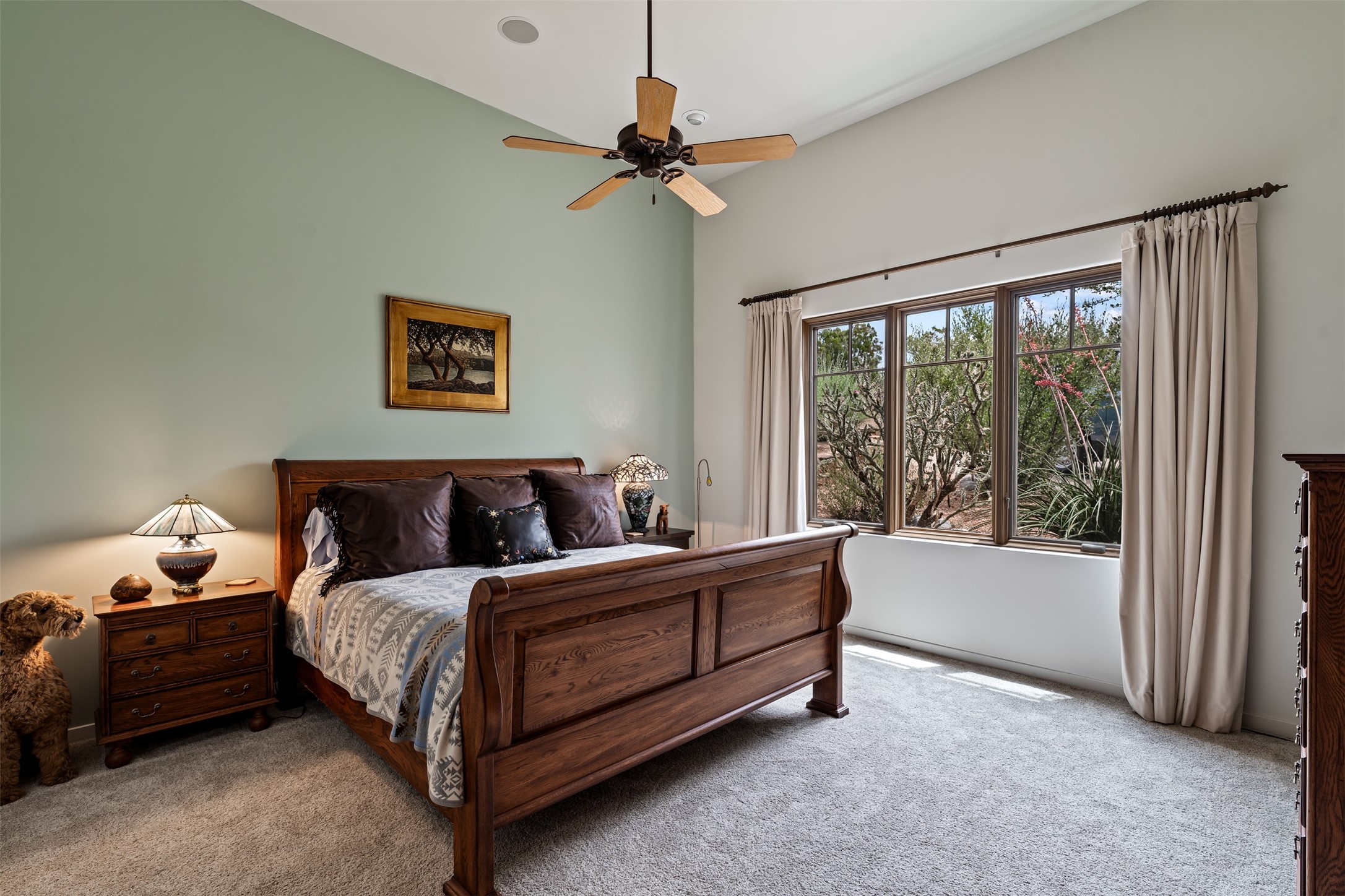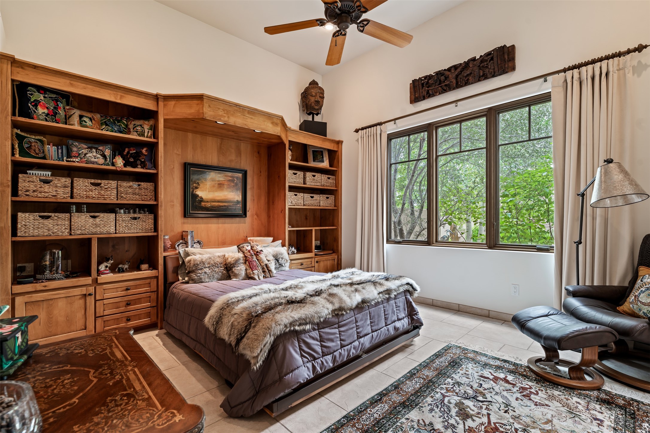 This stunning Sundance Estates home provides tranquility and boasts breathtaking views overlooking the neighborhood from the top of an exclusive cul-de-sac. This meticulously maintained residence was crafted by renowned builder Jay Parks with high-end finishes throughout. With soaring ceilings and exquisite custom cabinetry, the home's attention to detail is evident. The spacious layout features multiple built-in areas for storage, and numerous niches perfect for showcasing your favorite art pieces, while the expansive gourmet kitchen invites culinary exploration and gatherings. The thoughtfully designed principal bedroom suite is located separately from the guest rooms, ensuring privacy and comfort for all.Take advantage of the expansive portal, ideal for al fresco dining and entertaining against the backdrop of the stunning landscape. For a touch of whimsy, an attached owl house provides nightly entertainment from its two charming feathered residents. The home also boasts a new roof complete with an extended transferable warranty (20 years parts/10 years labor), adding peace of mind to your investment. Additionally, the water-saving landscaping is facilitated by a convenient cistern, promoting sustainability while enhancing the home's appeal. Don't miss the opportunity to make this extraordinary property your own.