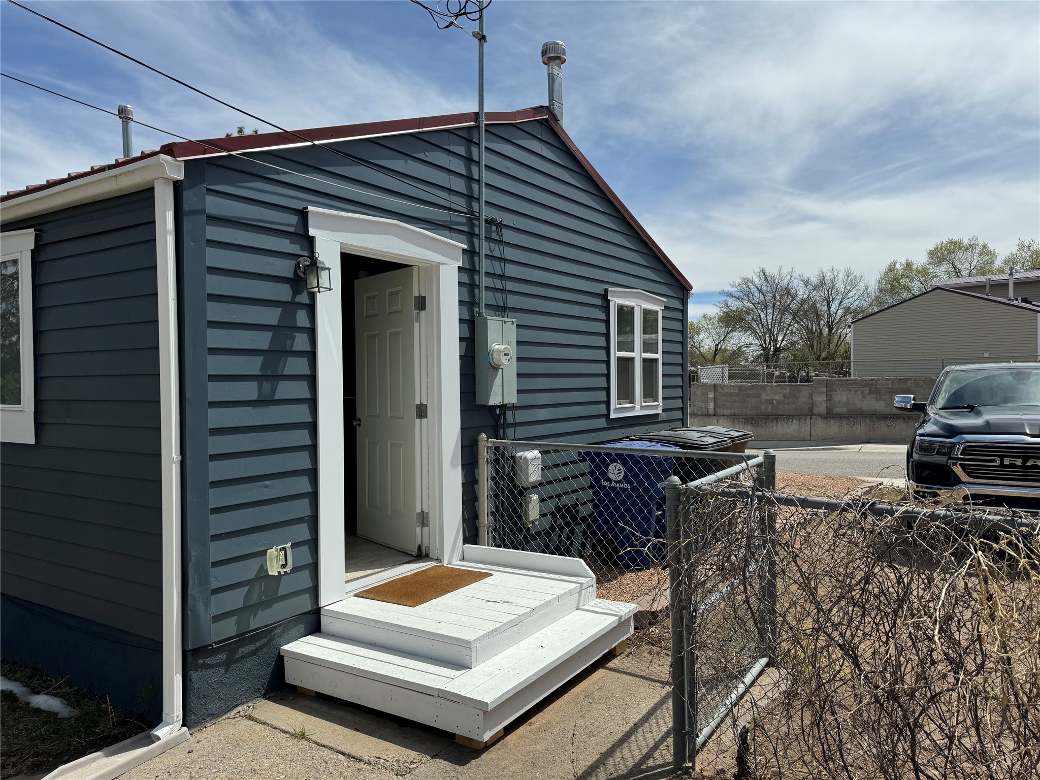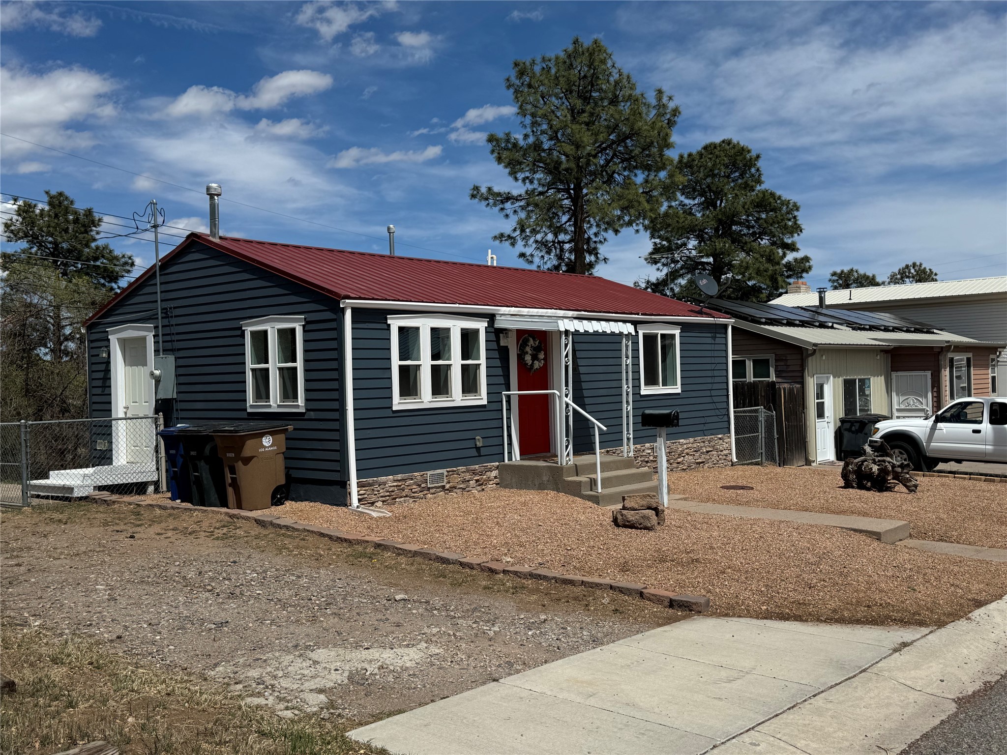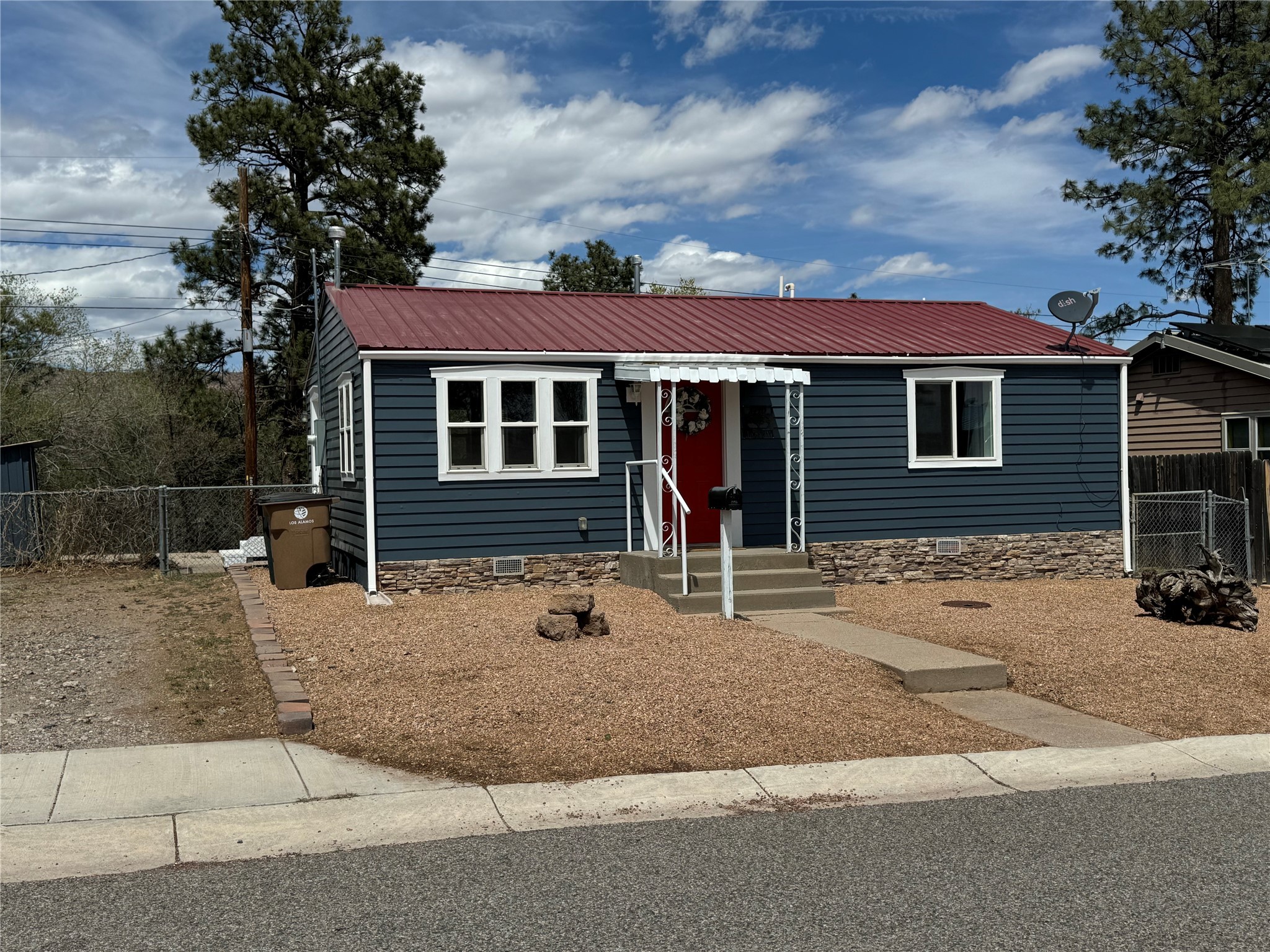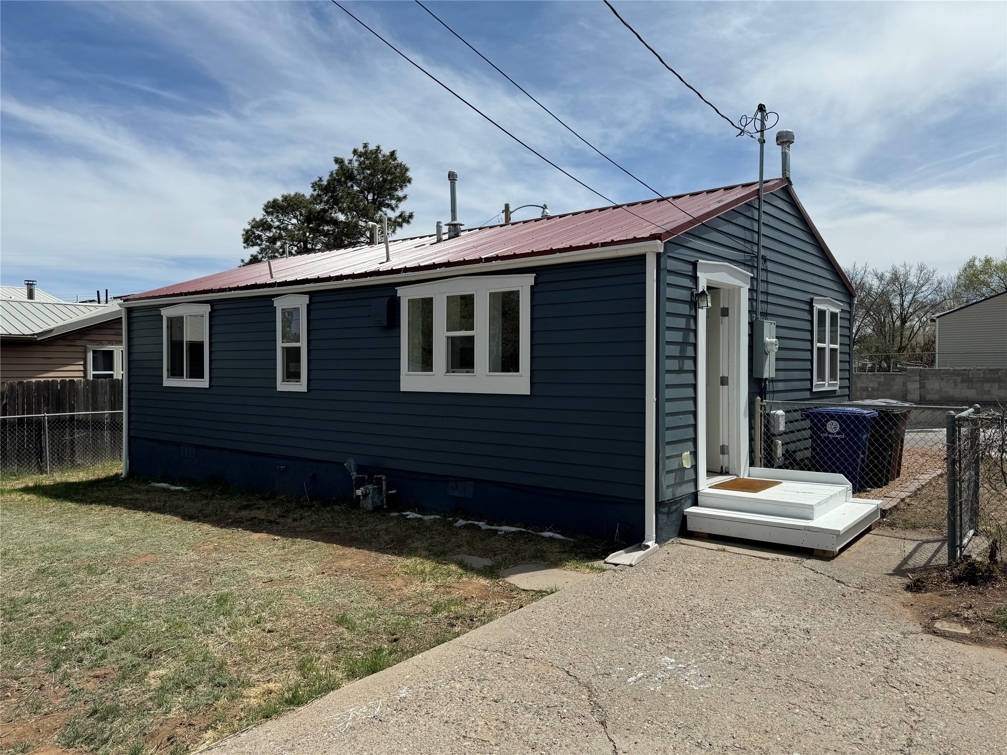 Charming and thoughtfully updated, this unique Los Alamos home at 3720 Ridgeway offers a flexible floorplan and excellent privacy. The front bedroom has been converted to additional living space, creating an open and inviting layout. Enjoy an updated kitchen with a bar that seamlessly connects to the living area--perfect for entertaining or relaxing at home. With 1 bedroom, 1 full bath, central heat and air conditioning, and great curb appeal, this home is move-in ready. Situated on a perimeter lot with county land behind, you'll appreciate the peace, quiet, and beautiful natural surroundings.
