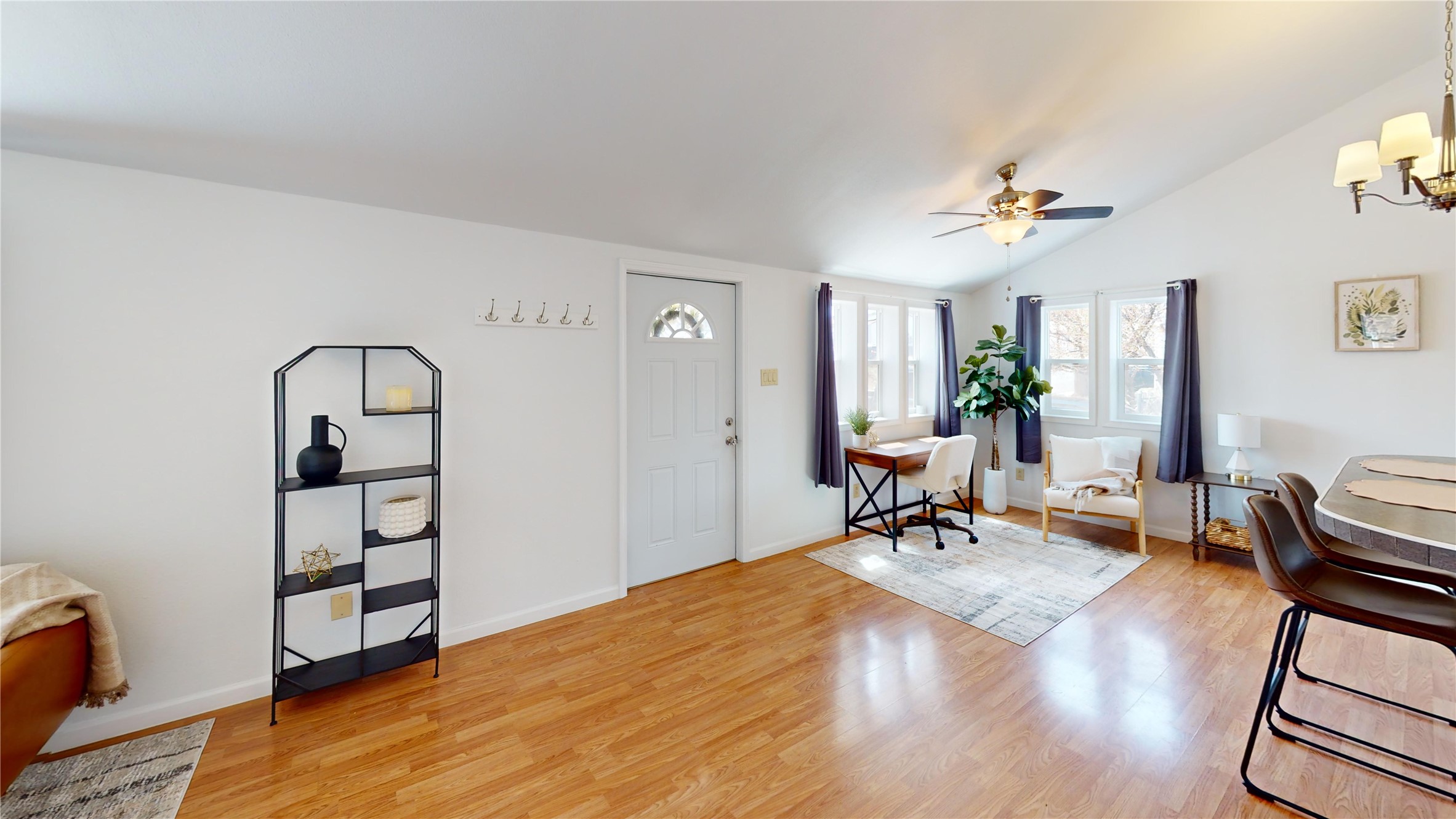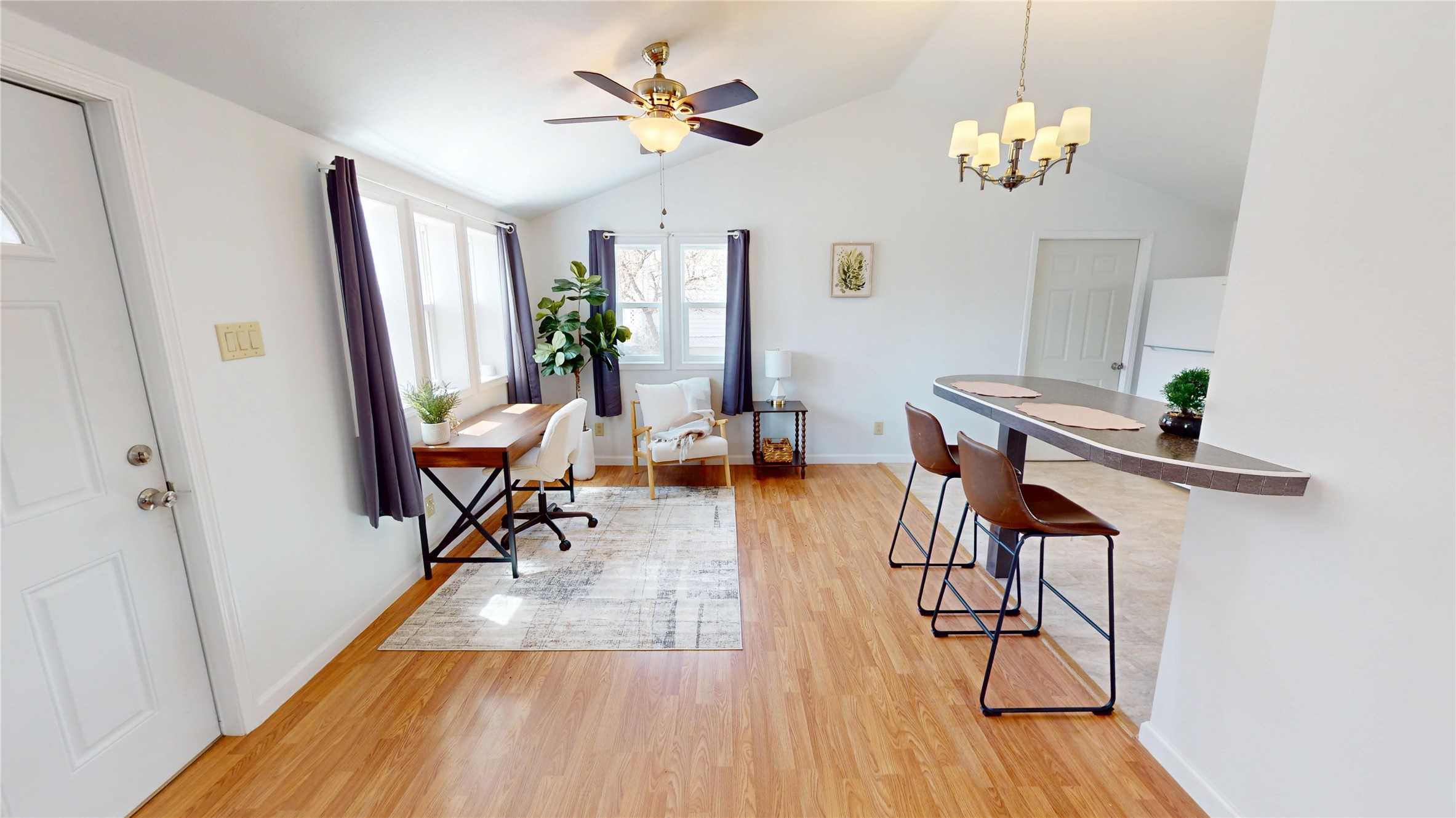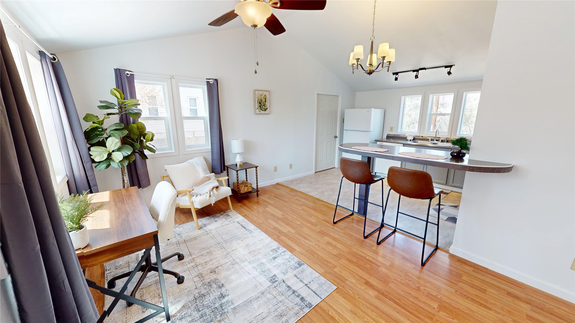 Charming and thoughtfully updated, this unique Los Alamos home at 3720 Ridgeway offers a flexible floorplan and excellent privacy. The front bedroom has been converted to additional living space, creating an open and inviting layout. Enjoy an updated kitchen with a bar that seamlessly connects to the living area--perfect for entertaining or relaxing at home. With 1 bedroom, 1 full bath, central heat and air conditioning, and great curb appeal, this home is move-in ready. Situated on a perimeter lot with county land behind, you'll appreciate the peace, quiet, and beautiful natural surroundings.