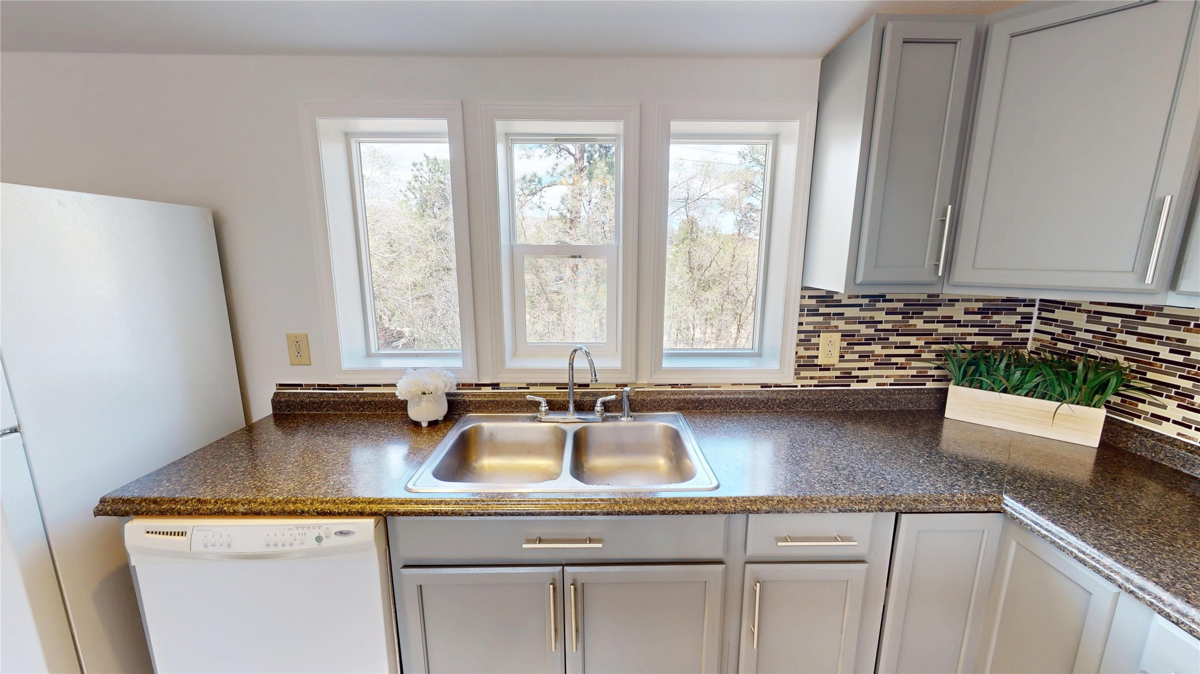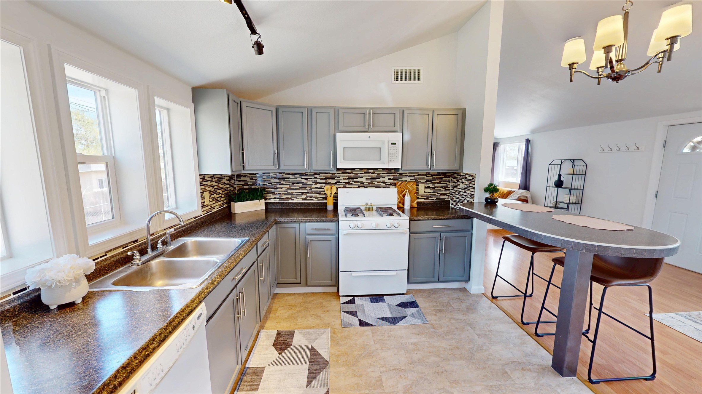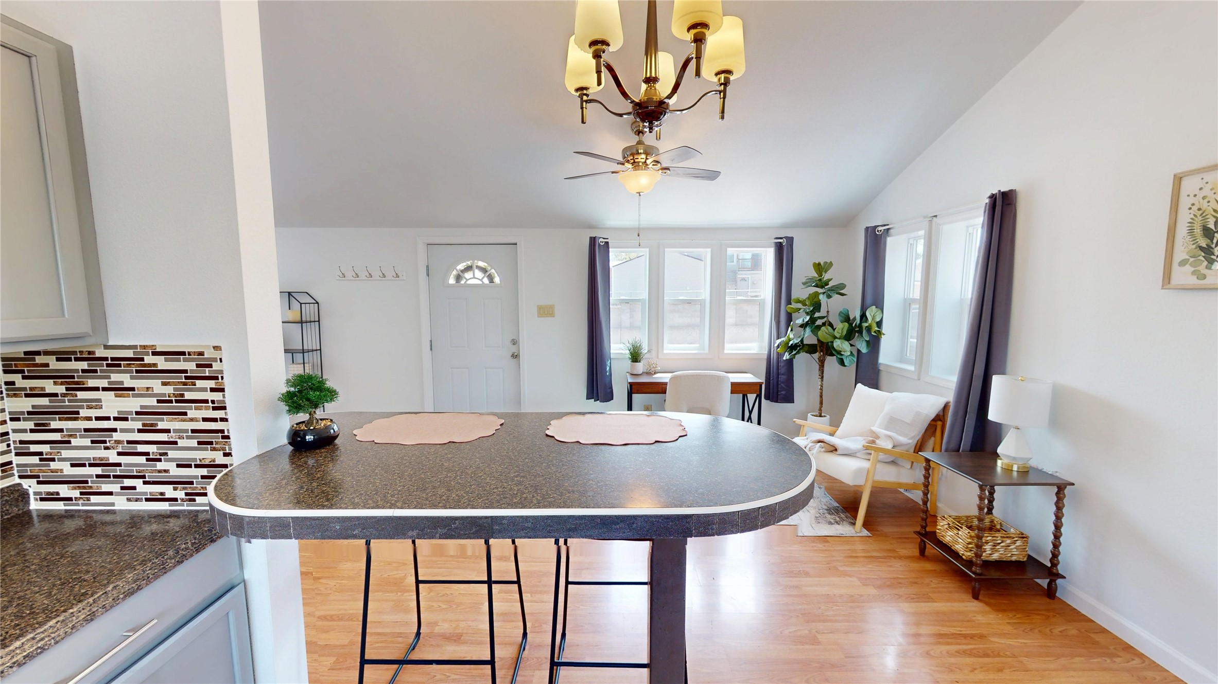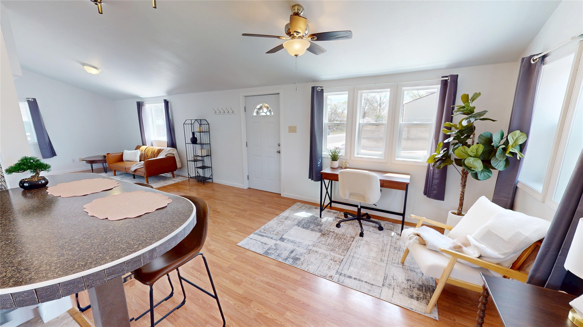 Charming and thoughtfully updated, this unique Los Alamos home at 3720 Ridgeway offers a flexible floorplan and excellent privacy. The front bedroom has been converted to additional living space, creating an open and inviting layout. Enjoy an updated kitchen with a bar that seamlessly connects to the living area--perfect for entertaining or relaxing at home. With 1 bedroom, 1 full bath, central heat and air conditioning, and great curb appeal, this home is move-in ready. Situated on a perimeter lot with county land behind, you'll appreciate the peace, quiet, and beautiful natural surroundings.