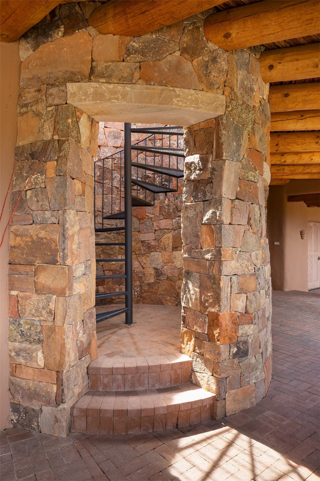 One of the most captivating estates in the famed community Las Campanas and throughout Santa Fe, this exceptional 4-bedroom home, plus office, with a guest house, excites with expansive Jemez and Sangre de Cristo Mountain views and impressive architecture. Privately sited on a rare, 5.25-acre view lot, in resort-like setting, this fabulous adobe-constructed home offers the ultimate Santa Fe lifestyle. Upon entering the 4,430 square foot main house with 2 bedrooms, plus an office, the exceptional experience begins with a welcoming front entrance courtyard, complete with vibrant landscape and a tranquil water feature. Ideal for entertaining, the main house delights with a stunning formal living room and dining room, with majestic Jemez and Sangre Mountain views, fireplace, wet bar and portal access, all of which opens to the well-appointed kitchen with large pantry and spacious casual living room with a fireplace and breakfast dining area. The primary suite impresses with views, fireplace, seating area, outdoor access, a spa-like bath with soft natural light and a large walk-in closet. Additional design features include a grand office with a fireplace and a private guest bedroom ensuite with views and outdoor access. Ideal for guests, the fully independent 1,688 square foot guest house offers 2 bedrooms, 2 baths, a full kitchen, and a great room living area, complete with a washer/dryer and a 1-car garage. The superior outdoor living experience is enhanced with lush, surround landscape, an in-ground spa, an outdoor kitchen, fully enclosed courtyards with gardens and surround covered portals, a fireplace and a substantial roof deck with surround views. Extraordinary finishes include an iconic Hogan front entrance ceiling, creamy plaster walls, flagstone flooring and the highest level of timeless craftsmanship. Less than 15 minutes to the Plaza, and within close proximity to the Club at Las Campanas, this exquisite estate is move-in ready and not to be missed.