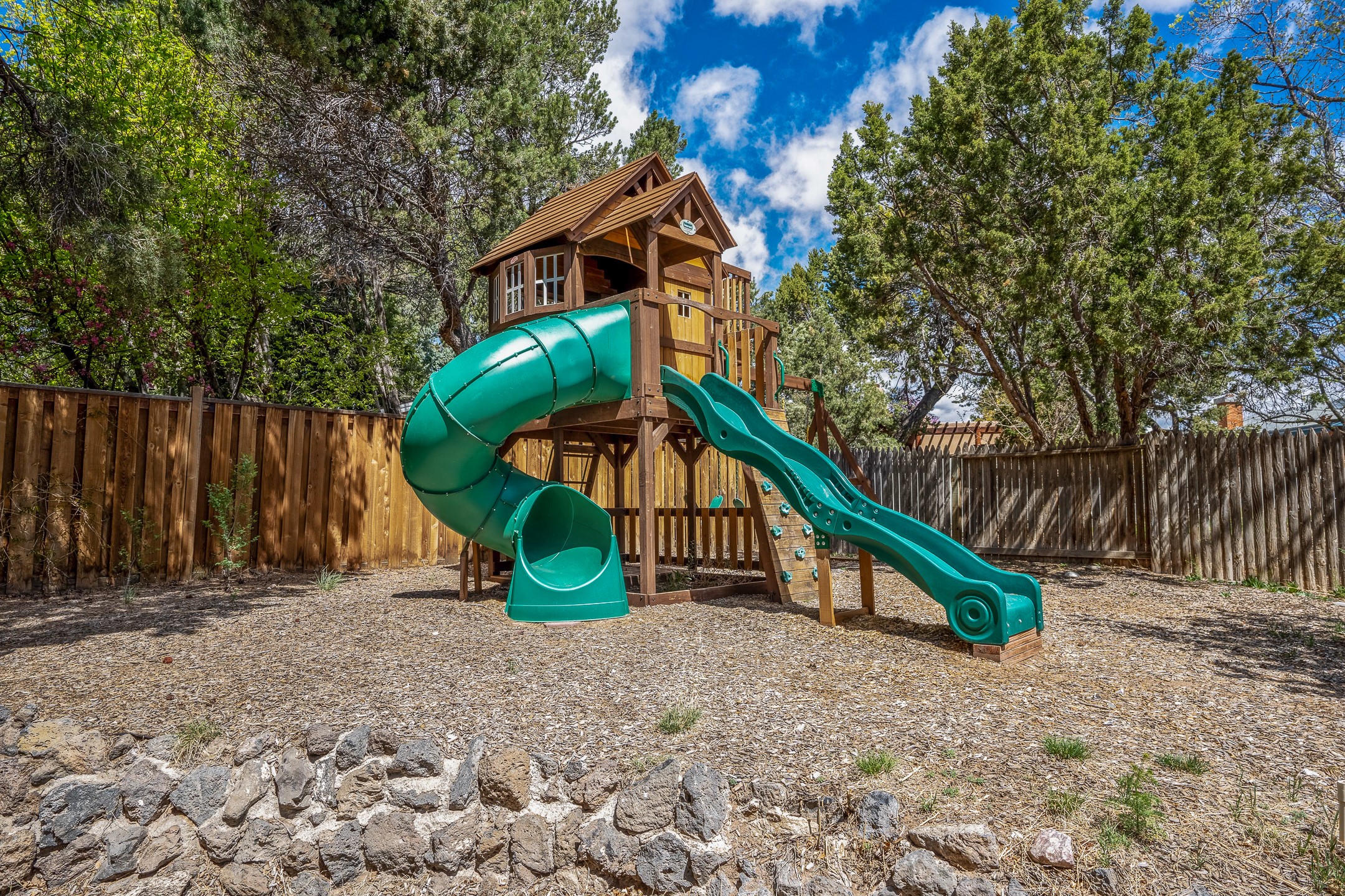 2922 sq ft Home, 4 Bed / 3 Bath, Air Conditioning, Large Family Room, Grid-Tied Photovoltaic Solar Panels with Net Metering, Pet-Friendly Fenced Backyard with Play Structure and Fruit Trees, New Paint and Carpet, 2 Car Garage, and More! Welcome to 550 Bryce! This large, four-bedroom White Rock home has space for all your guests, including a pet-friendly fully-fenced back yard! The showcase feature of the home is the large (20' x 35') family room on the second floor, accessed by a stylish spiral staircase. Here, you can host large game night gatherings, create a home movie theater, or otherwise entertain your guests!In the downstairs living area, you'll find a formal dining room, living room with a wood-burning fireplace, a breakfast nook that opens to the outdoor patio, and kitchen with barstool seating, gas cooking, stainless steel appliances, and granite countertops. The primary bedroom includes an en suite bathroom, and three additional generously-sized bedrooms and two full bathrooms are available for guests. You'll find new carpet in all the bedrooms, plenty of closet and storage space throughout the house, as well as fresh paint throughout to welcome you into your new home. Central air conditioning will keep you cool in the summer, and an eco-friendly, grid-tied photovoltaic solar panel system is included with net metering to keep your electric bills low. The back yard features a covered patio, mature fruit trees (including cherry and apple!), and a play structure. It is fully-fenced and ready for your pets!A two-car garage will protect your vehicles, and the large driveway will accommodate additional vehicles if desired. A second driveway is also available for a camper or RV. Schedule your showing today so you don't miss your opportunity to call this great house your home!