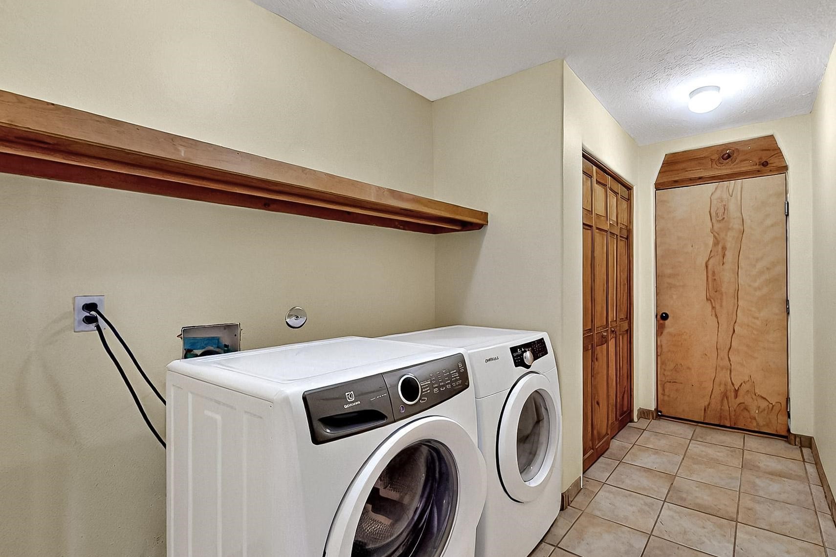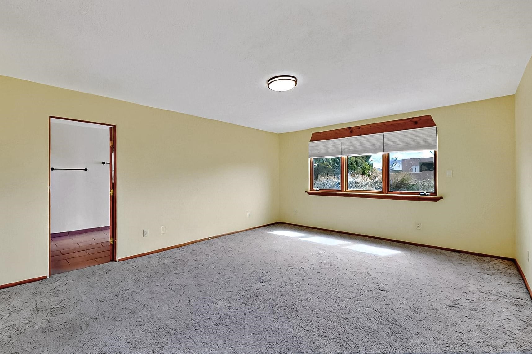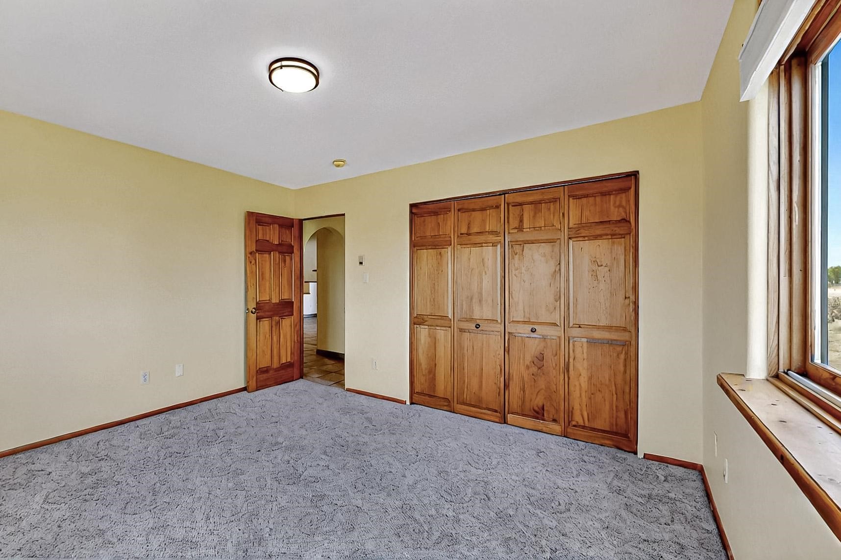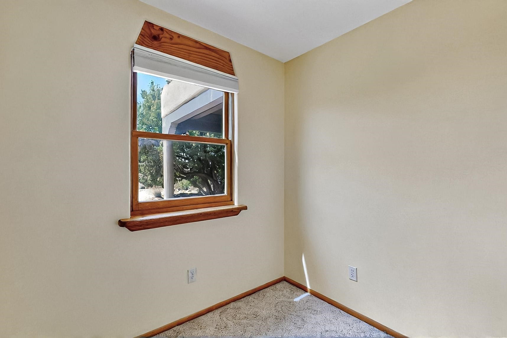 Contemporary pueblo custom built home in move in condition, extremely well maintained. High ceilings create a spaciousness in this 2115 sq.ft, split 3 bedroom plus small office, 2 full bath home. A new silicone roofing system was installed in 2019, new radiant boiler, new zones and new hot water heater in 2017, windows and stucco maintained, garden wall was re stuccoed in 2023, the private well was inspected and electrical upgraded in 2017. Both front and rear portal support beams and some woodwork have been replaced, and the front paved area replaced. Located on a large 1.8acre corner lot, there is a 2 car garage accessed by a circular driveway with plenty of parking, and big privately walled rear garden and portal for entertaining sunsets and the night sky. Just off a paved road, it is within easy reach of all Eldorado amenities, local shopping, schools, library, senior center and minutes into Santa Fe.