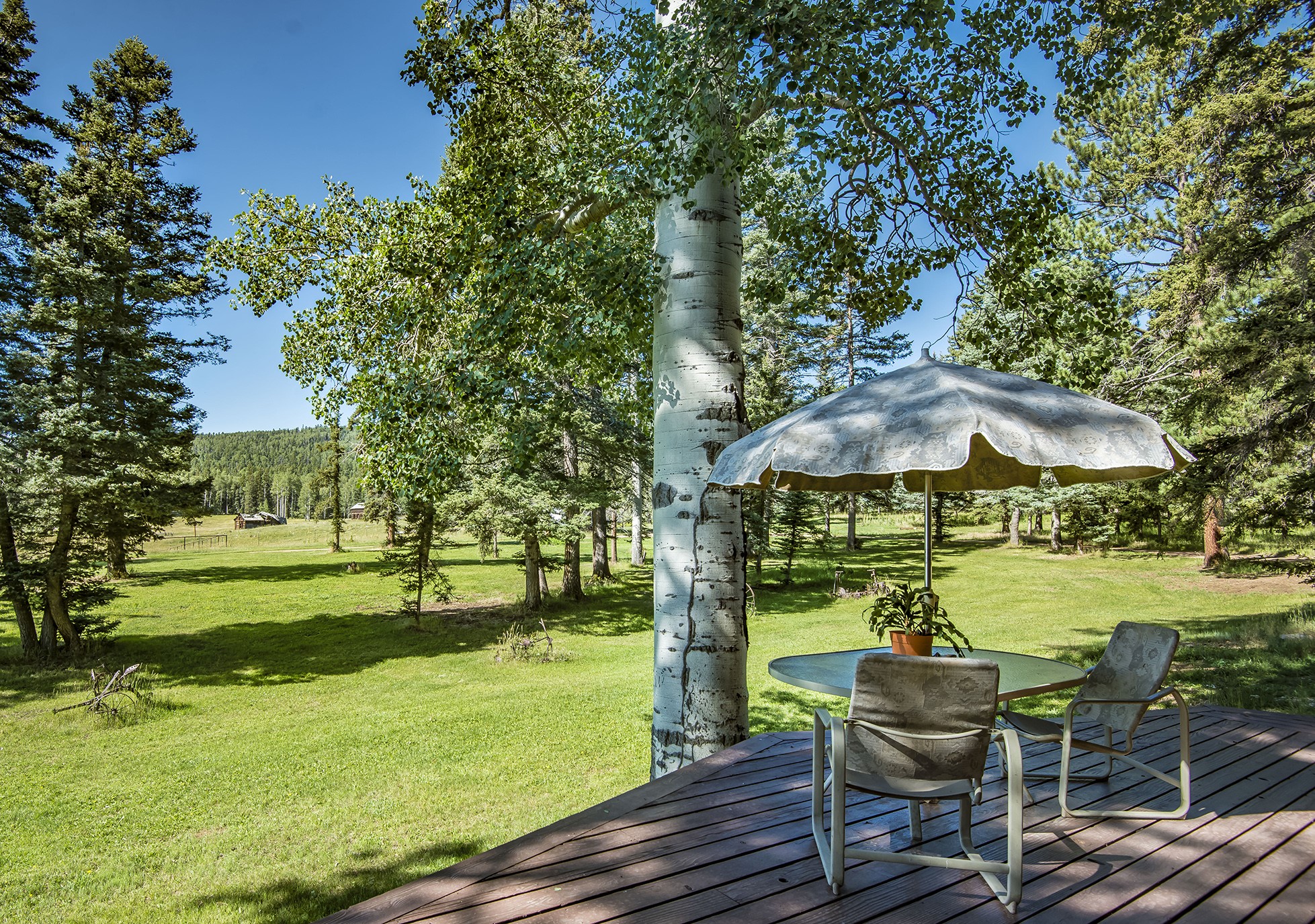 A rare opportunity to own a legacy estate steps from Carson National Forest, this exceptional property spans up to 80 acres of private alpine woods and open meadows-a true retreat in Northern New Mexico. The handcrafted log home is ideally positioned to capture sweeping views, total serenity, and the adventurous spirit of the region.Inside, rustic elegance shines with soaring tongue-and-groove ceilings, a striking rock fireplace, and open living spaces designed for comfort. The country-style kitchen features custom cabinetry, rich countertops, and ample storage. Outside, covered porches and wraparound decks offer year-round enjoyment of the mountain setting. Wildlife is part of daily life-watch elk and deer from your porch. Whether riding side-by-sides in summer, snowmobiling in winter, or enjoying the seasons, this property invites full immersion in nature. The lower level includes a large family room for guests or recreation. Amenities: game-processing room, 50x100 barn with horse stalls, pond, RV hook-up, oversized 1-car garage, and an owned vendor-flexible propane tank. The 80 acres have qualified for NM Game & Fish elk tags (Secondary Management Zone) for the past eight years. Forest Rd 76 lies in GMU 48, on the boundary of GMUs 48 and 49. Located on a quiet Forest Service road, the estate is a gateway to Carson National Forest-perfect for hiking, horseback riding, and exploring. Despite the seclusion, it's only 7 minutes to Angel Fire Resort and 10 minutes to the jet-capable Angel Fire Airport. Flexible acreage options available. More than a home-it's a generational sanctuary and smart investment in Northern New Mexico living.