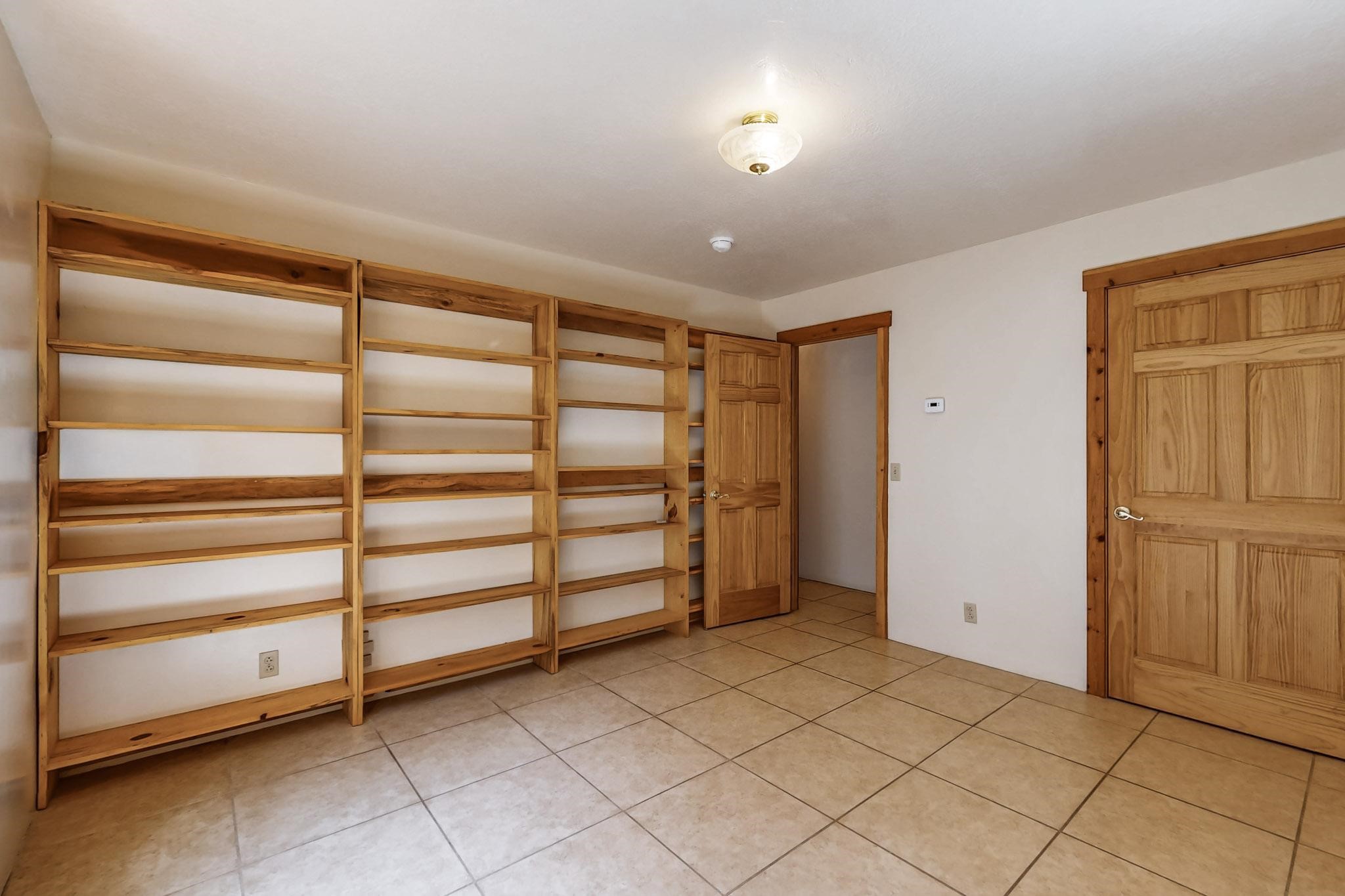 Beautiful custom built log cabin for sale on 5 gorgeous tree covered acres. The home features 5 bedrooms, 4 1/2 baths, chef's kitchen, expansive floor plan, a recently built workshop/studio, and expansive deck great for entertaining. The home is constructed using builder chosen 6-18 inch logs and features two in-home sprinkler systems. The property contains incredible landscaping and has potential for horses with ample storage and barns. There are two legal lots of record, a private well with water rights, chicken coop, greenhouse, fruit trees, sophisticated playground equipment, healthy Pion, Juniper trees, custom rock retaining walls, and graveled driveway. Conveniently located 30 minutes from downtown Santa Fe, this incredible property combines the best of rural living with easy access to amenities. Set up a showing today!