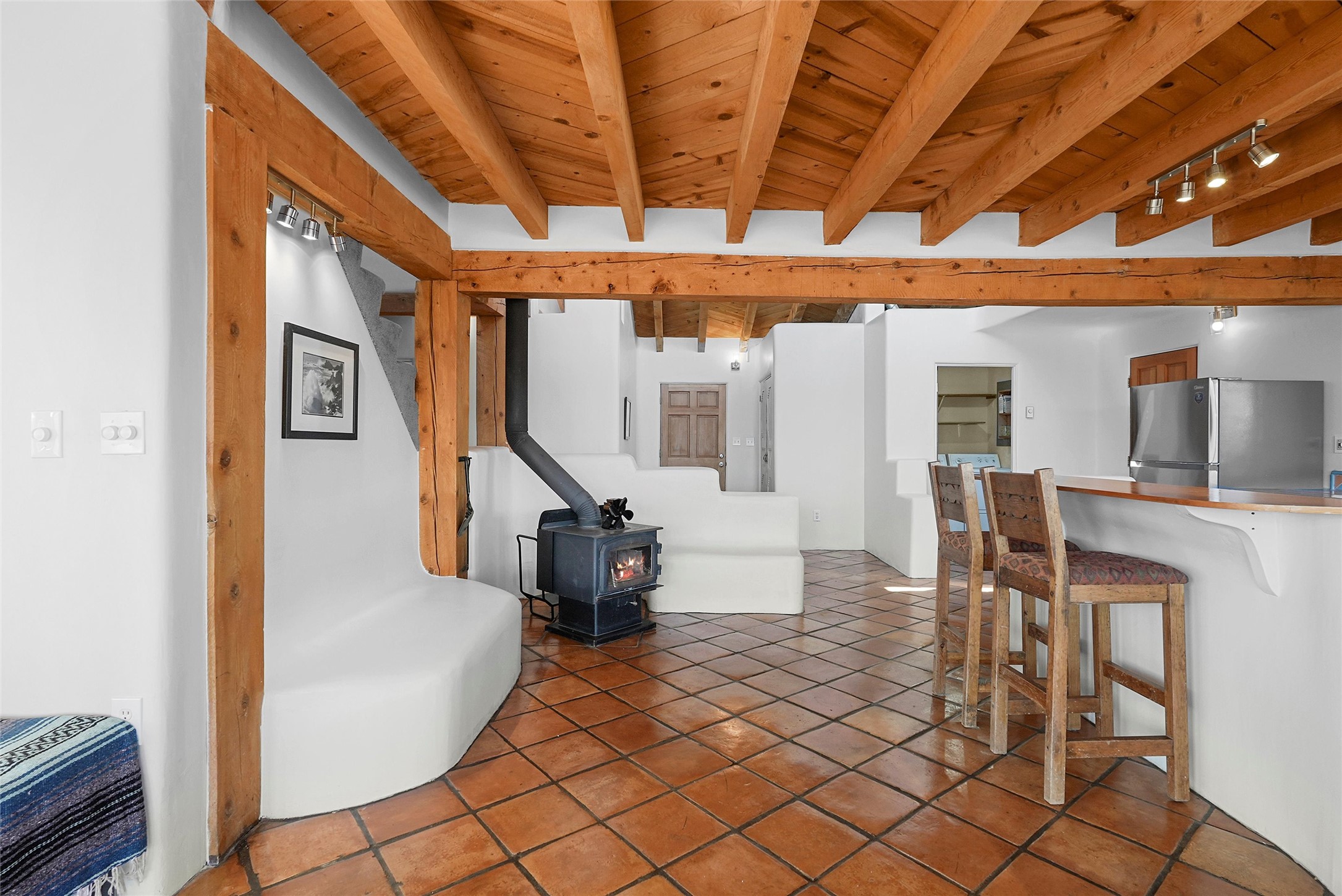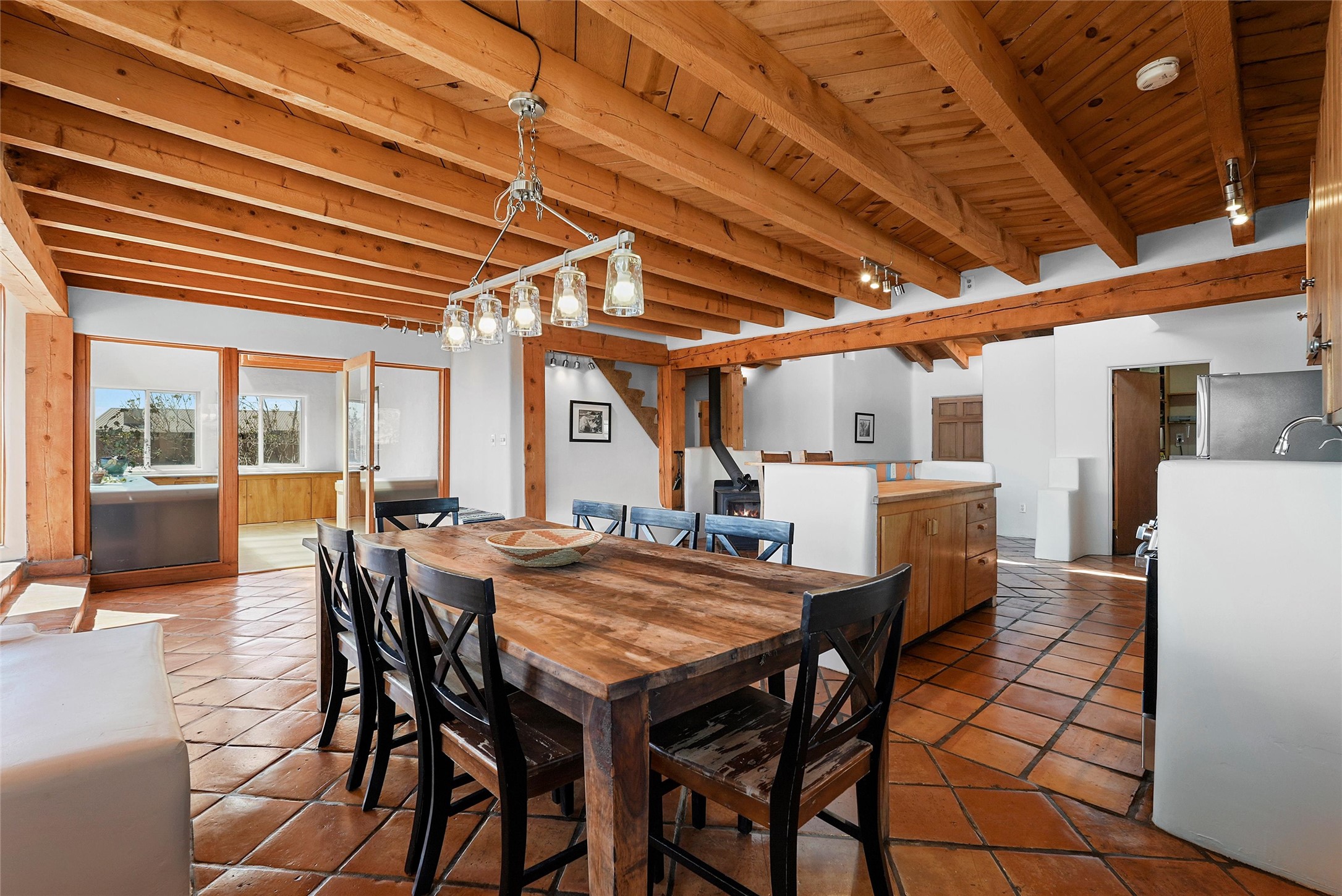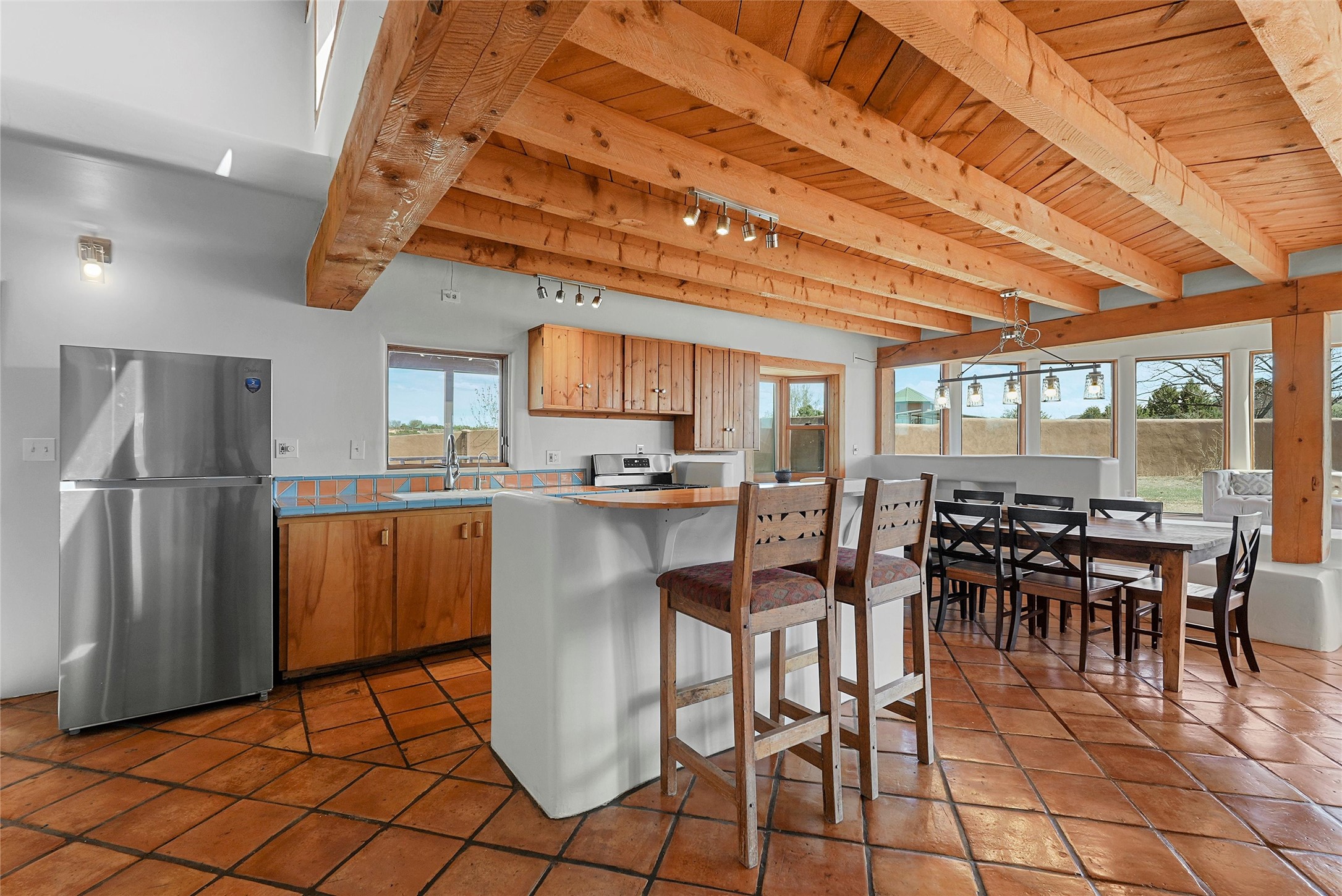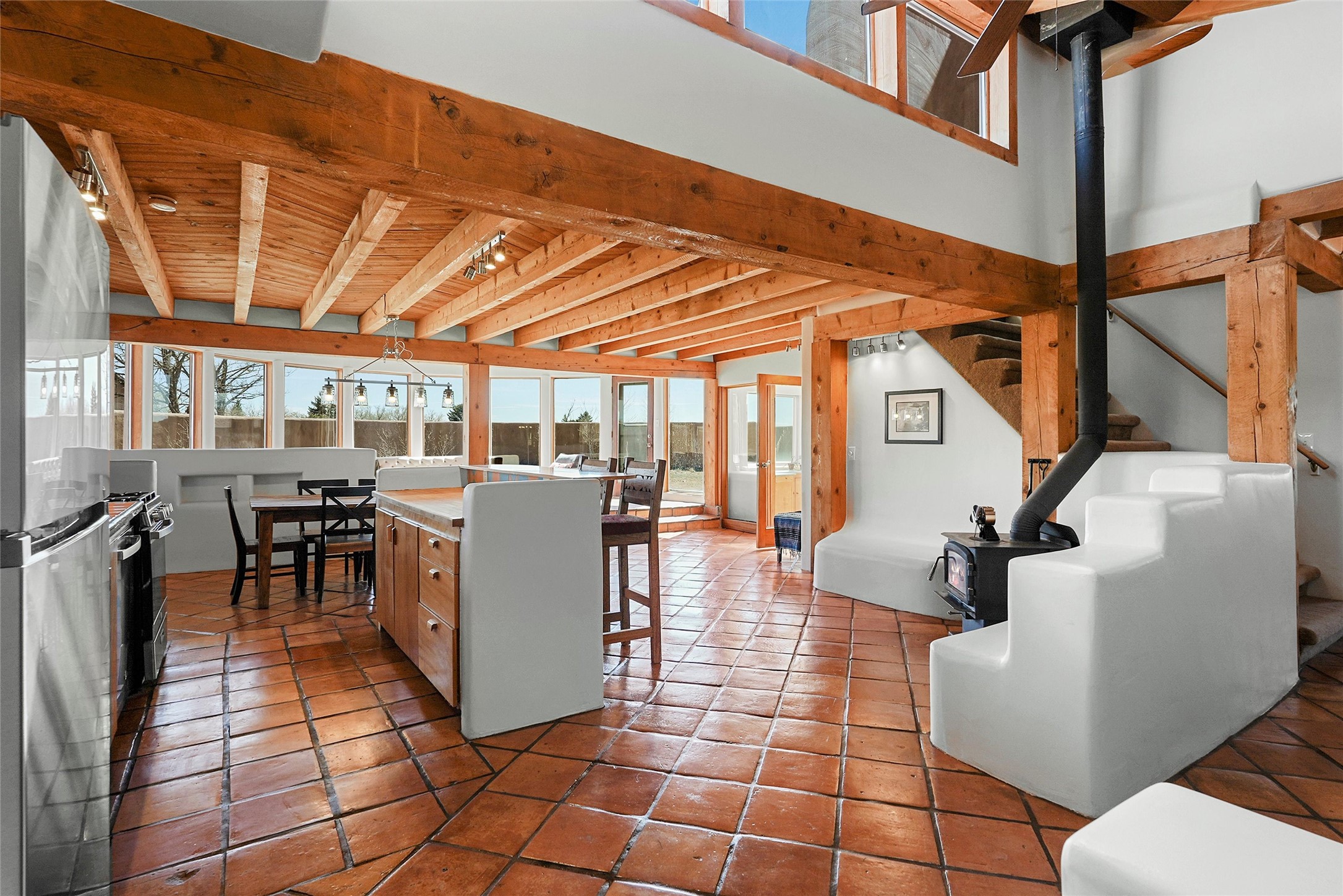 Welcome to this serene La Cieneguilla sanctuary featuring the perfect blend of Southwest charm and modern updates on 2.7 acres. Step inside a light filled home with large windows, beautiful wood beams and herringbone ceilings. The home features new stucco, freshly resealed Saltillo floors, fresh paint, and updated lighting throughout. This spacious 2,113 sq ft home is complemented by a bright sunroom capable of heating the entire home. The open kitchen is equipped with all new appliances (less than a year old) and built-in benches throughout make for effortless entertaining. There are endless possibilities with 360 linear feet of enclosed courtyard. For hobbyists or those who need extra workspace, the property features a 400 sq ft workshop with electricity and 220V access, Horses allowed.