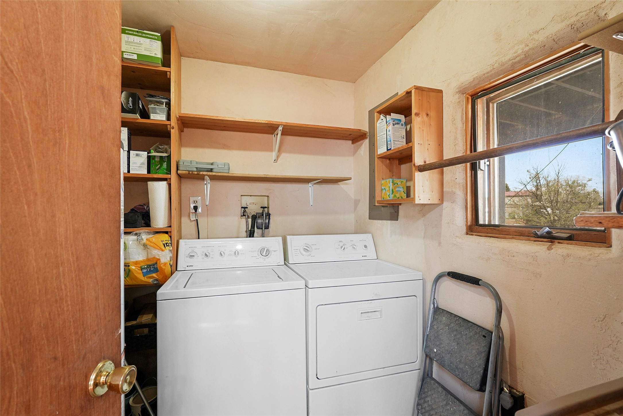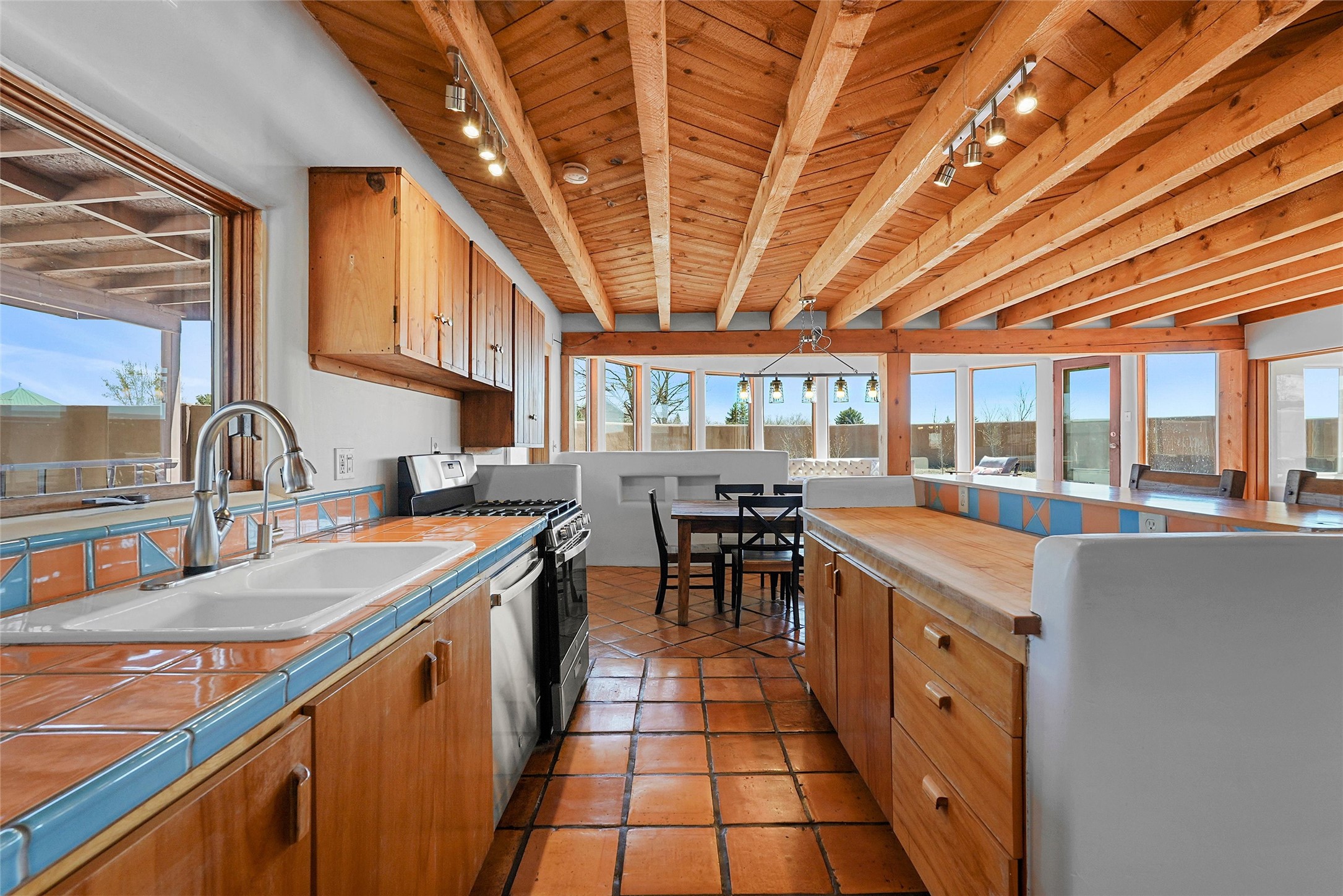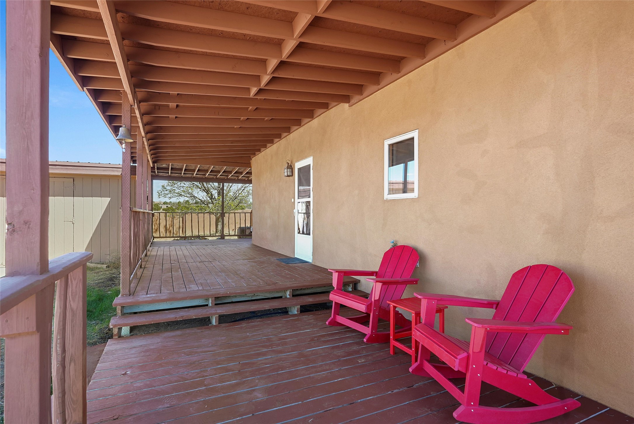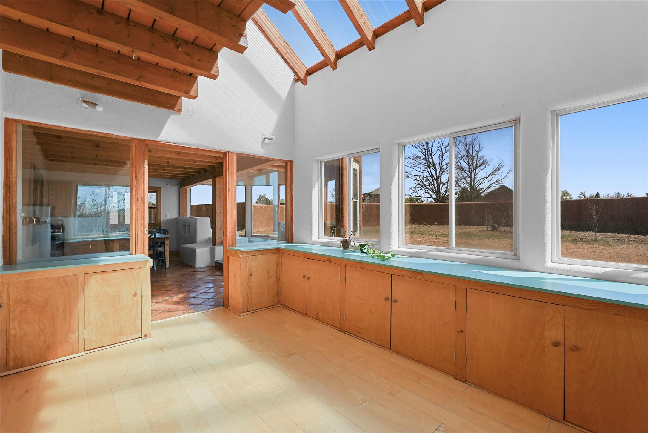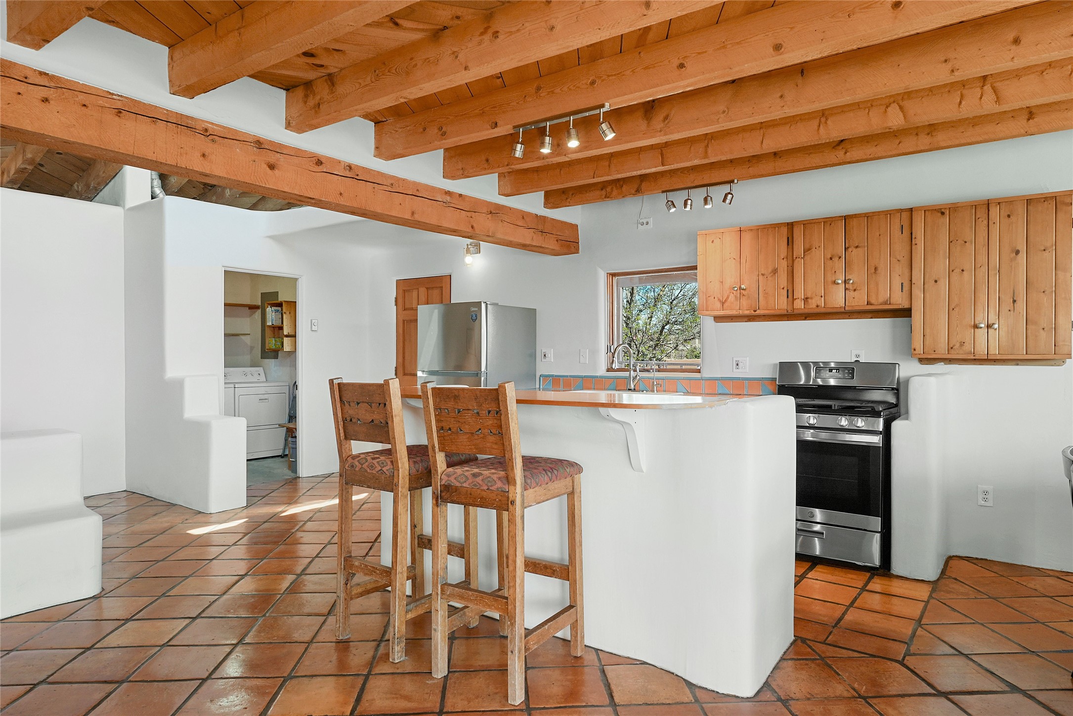 Welcome to this serene La Cieneguilla sanctuary featuring the perfect blend of Southwest charm and modern updates on 2.7 acres. Step inside a light filled home with large windows, beautiful wood beams and herringbone ceilings. The home features new stucco, freshly resealed Saltillo floors, fresh paint, and updated lighting throughout. This spacious 2,113 sq ft home is complemented by a bright sunroom capable of heating the entire home. The open kitchen is equipped with all new appliances (less than a year old) and built-in benches throughout make for effortless entertaining. There are endless possibilities with 360 linear feet of enclosed courtyard. For hobbyists or those who need extra workspace, the property features a 400 sq ft workshop with electricity and 220V access, Horses allowed.