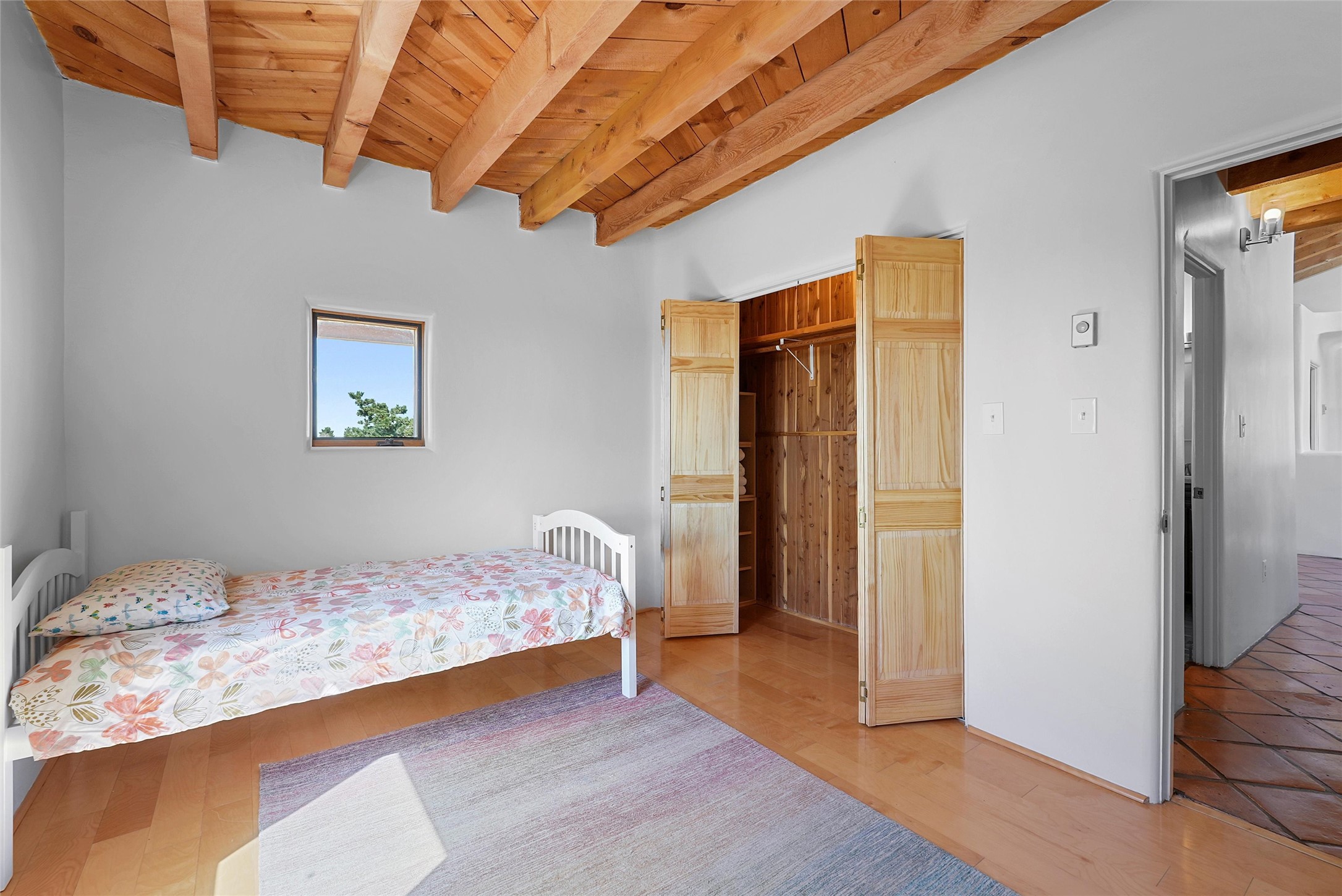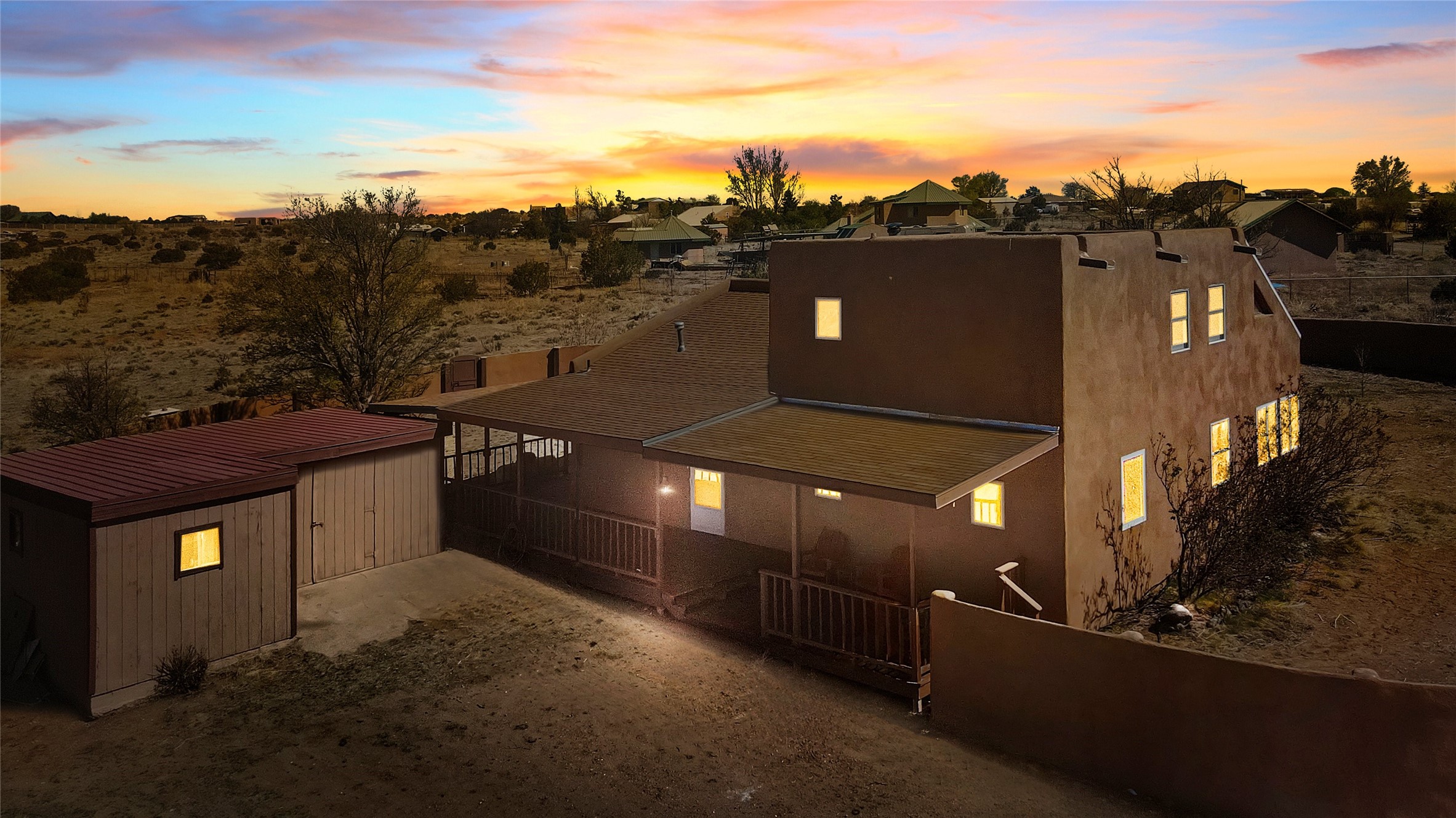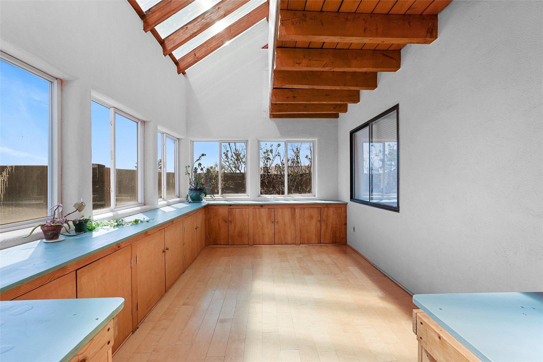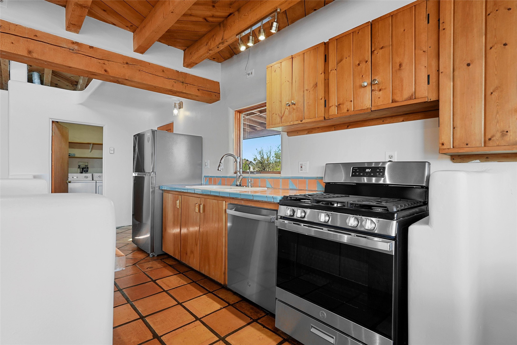 Welcome to this serene La Cieneguilla sanctuary featuring the perfect blend of Southwest charm and modern updates on 2.7 acres. Step inside a light filled home with large windows, beautiful wood beams and herringbone ceilings. The home features new stucco, freshly resealed Saltillo floors, fresh paint, and updated lighting throughout. This spacious 2,113 sq ft home is complemented by a bright sunroom capable of heating the entire home. The open kitchen is equipped with all new appliances (less than a year old) and built-in benches throughout make for effortless entertaining. There are endless possibilities with 360 linear feet of enclosed courtyard. For hobbyists or those who need extra workspace, the property features a 400 sq ft workshop with electricity and 220V access, Horses allowed.