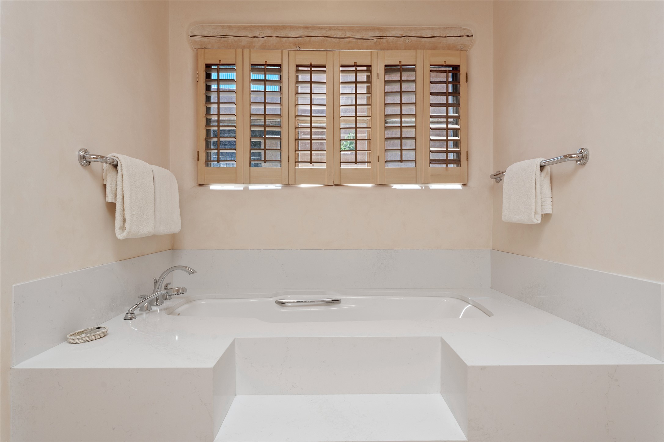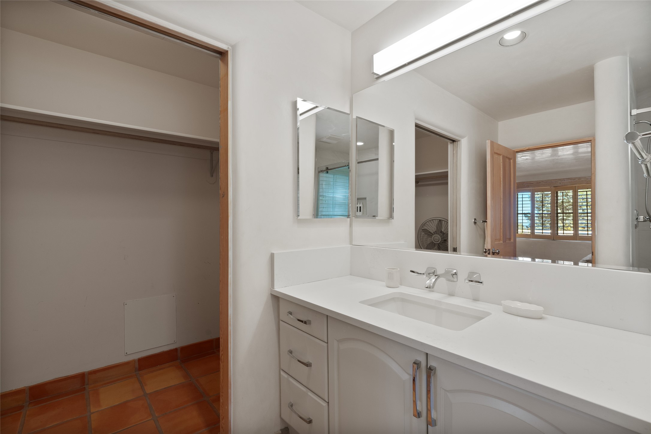 Welcome to abundant light and superb accommodation. This four bedroom 4 1/2 bathroom condo is ideally designed to meet all your living and entertaining needs with the lower level showcasing elegant tall ceilings, a spacious eat in kitchen that has been tastefully updated, a grand primary bedroom with ample bathroom, an en suite guest bedroom and alluring dining and living areas. The second level continues to impress with a large den featuring two separate terraces highlighting our famous western skies and two large bedrooms and bathrooms sure to assist with all your lifestyle desires. Quality updates and finishes throughout and located on the fourth fairway with a peaceful back portal to take in serene morning sunrises and satisfying golf course and nature views. This grand detached condo is situated at the end of a cul de sac providing plenty of quiet while in the midst of Santa Fe's premier condominium community. Home ownership comes with all of Quail Run's amenities including multiple fitness classes, engaging 9 hole golf course complete with golf pro shop, beautiful indoor pool with hot tub and full locker rooms, plenty of pickleball and tennis, state of the art workout areas, all with 24 hour hosted security and delightful grounds. Come and see!