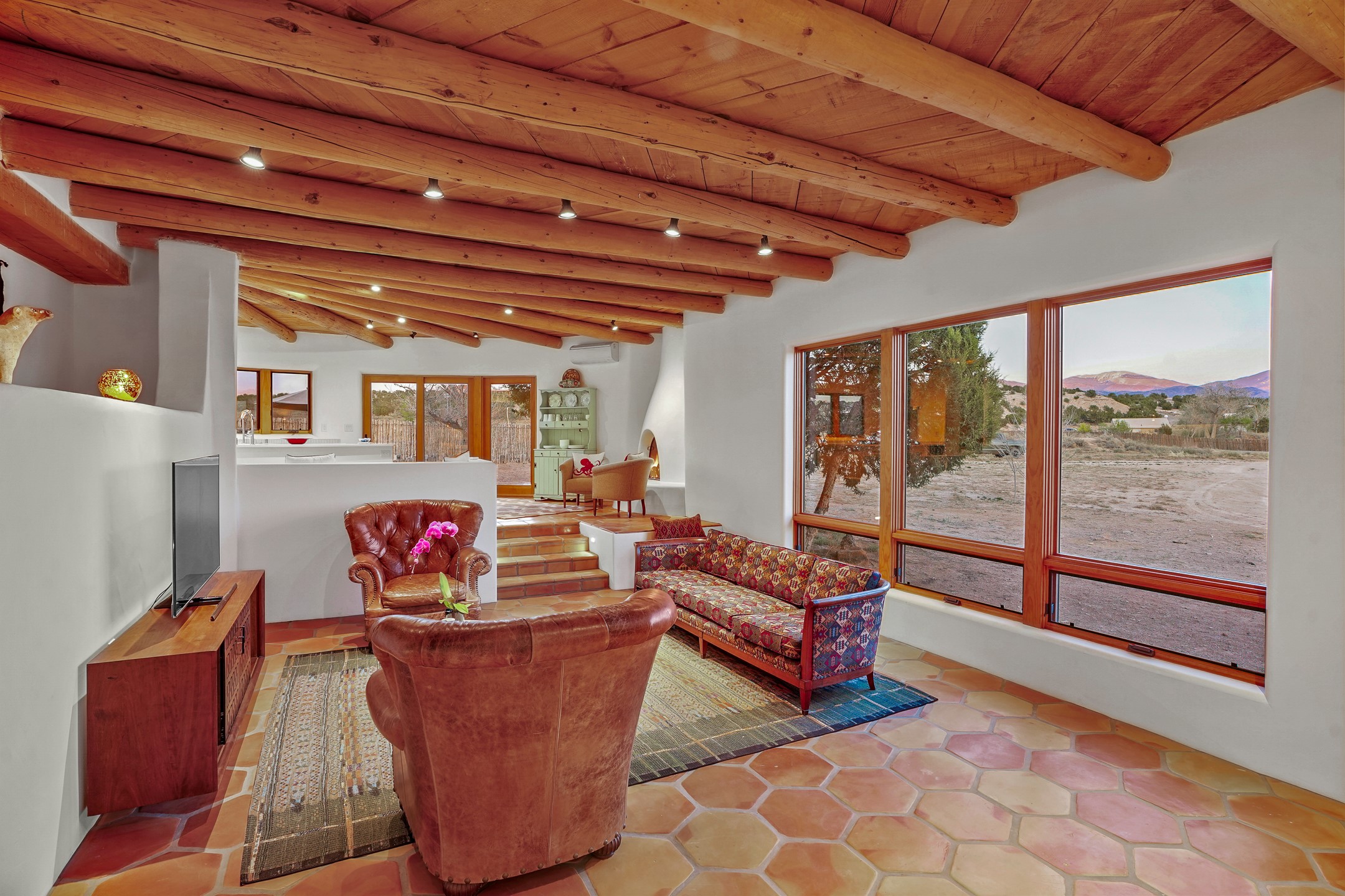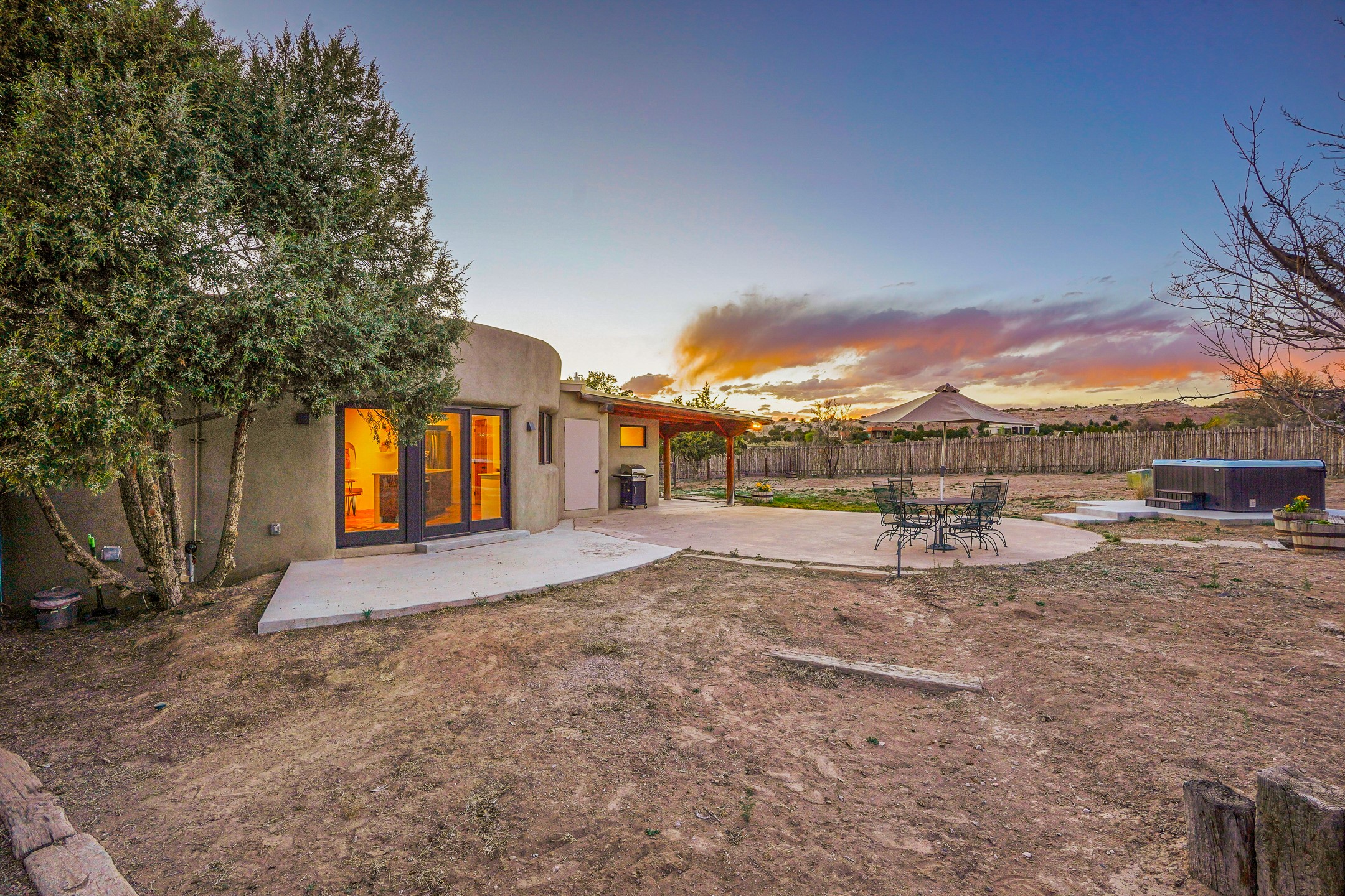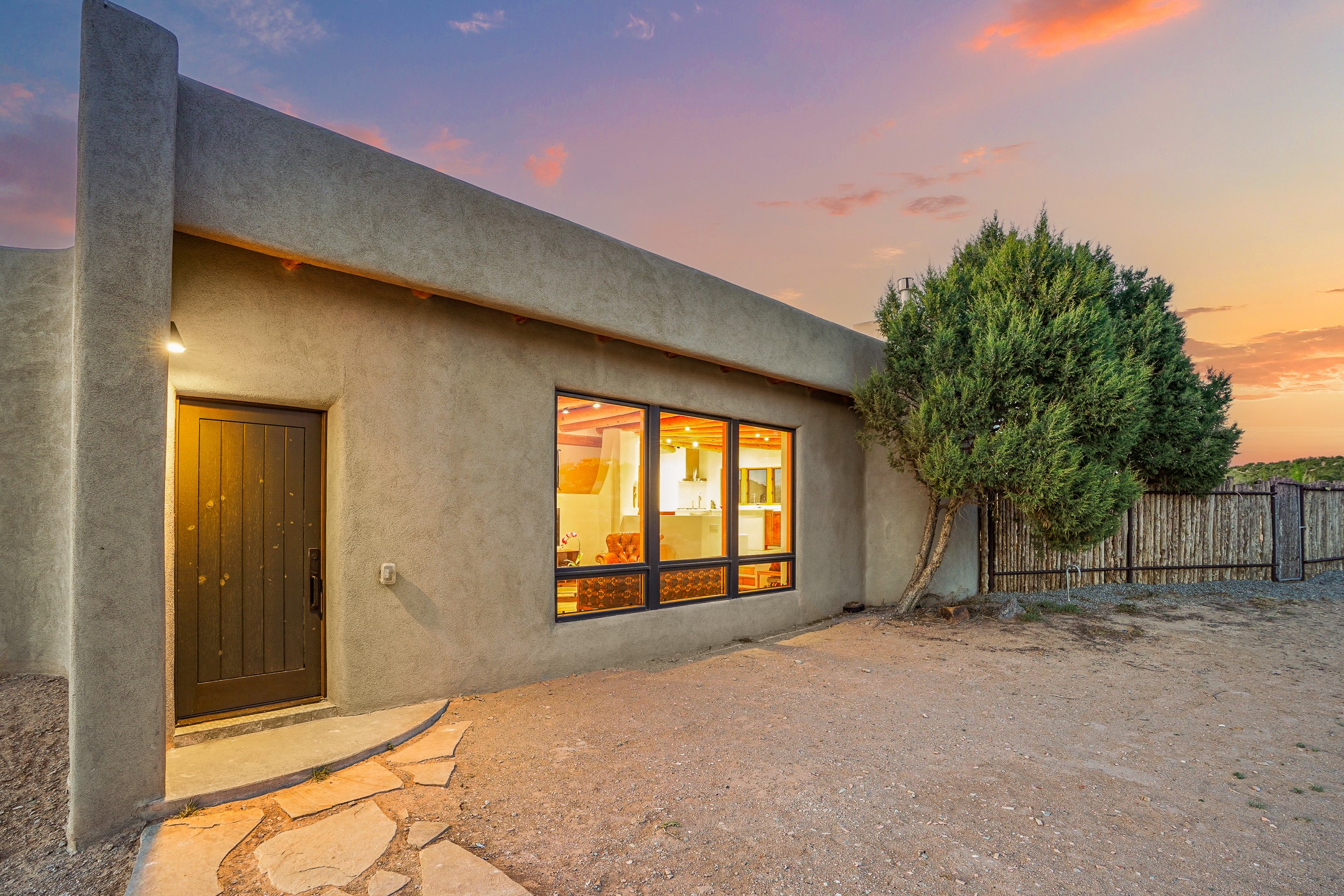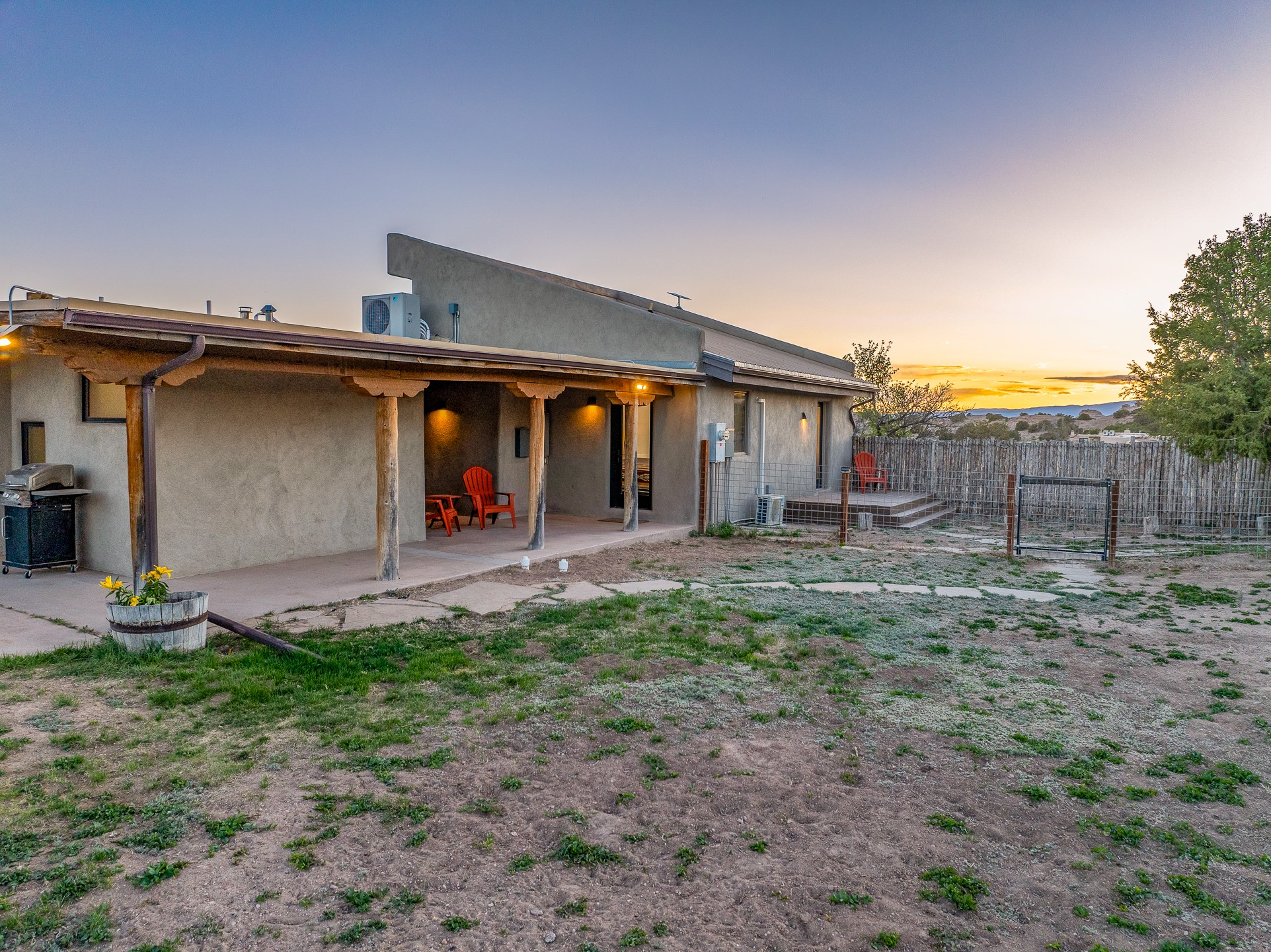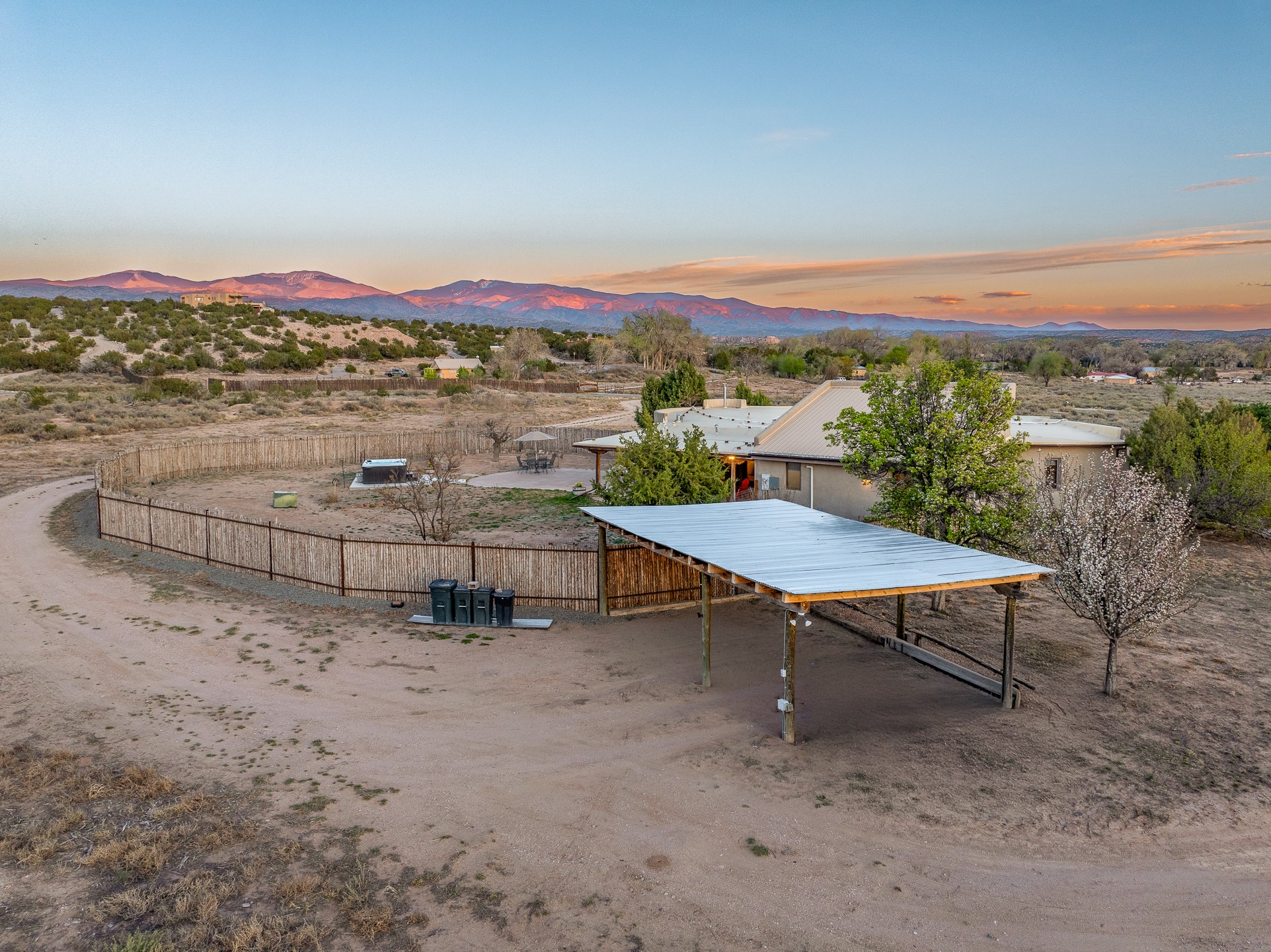 Tucked into the tranquil landscape of Namb and only a short drive from the heart of Santa Fe, 27 Loma Blanca is a beautifully renovated 3-bedroom, 3-bath home that seamlessly blends modern comforts with the natural beauty of northern New Mexico. Set on just over 5 acres with breathtaking views of the Sangre de Cristo Mountains to the east and Pojoaque Pueblo Badlands to the west, this property offers space, privacy, and the peace of the high desert. An extensive renovation has transformed this home from the ground up, including the addition of a new primary suite complete with a spacious ensuite bathroom. The reimagined kitchen is both functional and elegant, designed for modern living and entertaining. Additional updates include a brand-new TPO roofing system with transferable warranty, stucco siding, mini split heating and cooling and all new windows and doors--enhancing both curb appeal and year-round comfort. Designed with sustainability in mind, the home features a passive solar design that furthers its energy efficiency. Inside, tasteful updates extend throughout generous living areas and into the rare, expansive basement--ideal for storage, a studio, or a creative workspace. Outdoors, enjoy the fully enclosed yard surrounded by traditional latilla fencing, perfect for pets or peaceful evenings under the stars. For the adventurer or hobbyist, the property includes two RV hookups with all required connections directly adjacent to a three-bay carport. The property boasts a private well with attached irrigation rights, a rare and valuable asset in this region. Whether you're looking for a full-time residence, a weekend retreat, or a unique investment opportunity, 27 Loma Blanca offers the perfect blend of rural charm and modern living, all framed by some of the most iconic views in the Southwest.