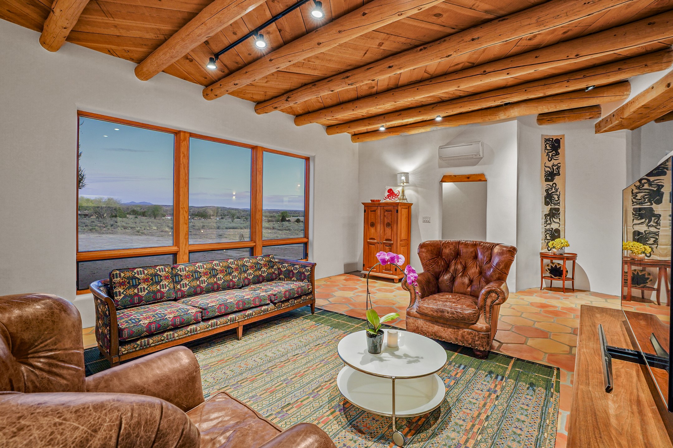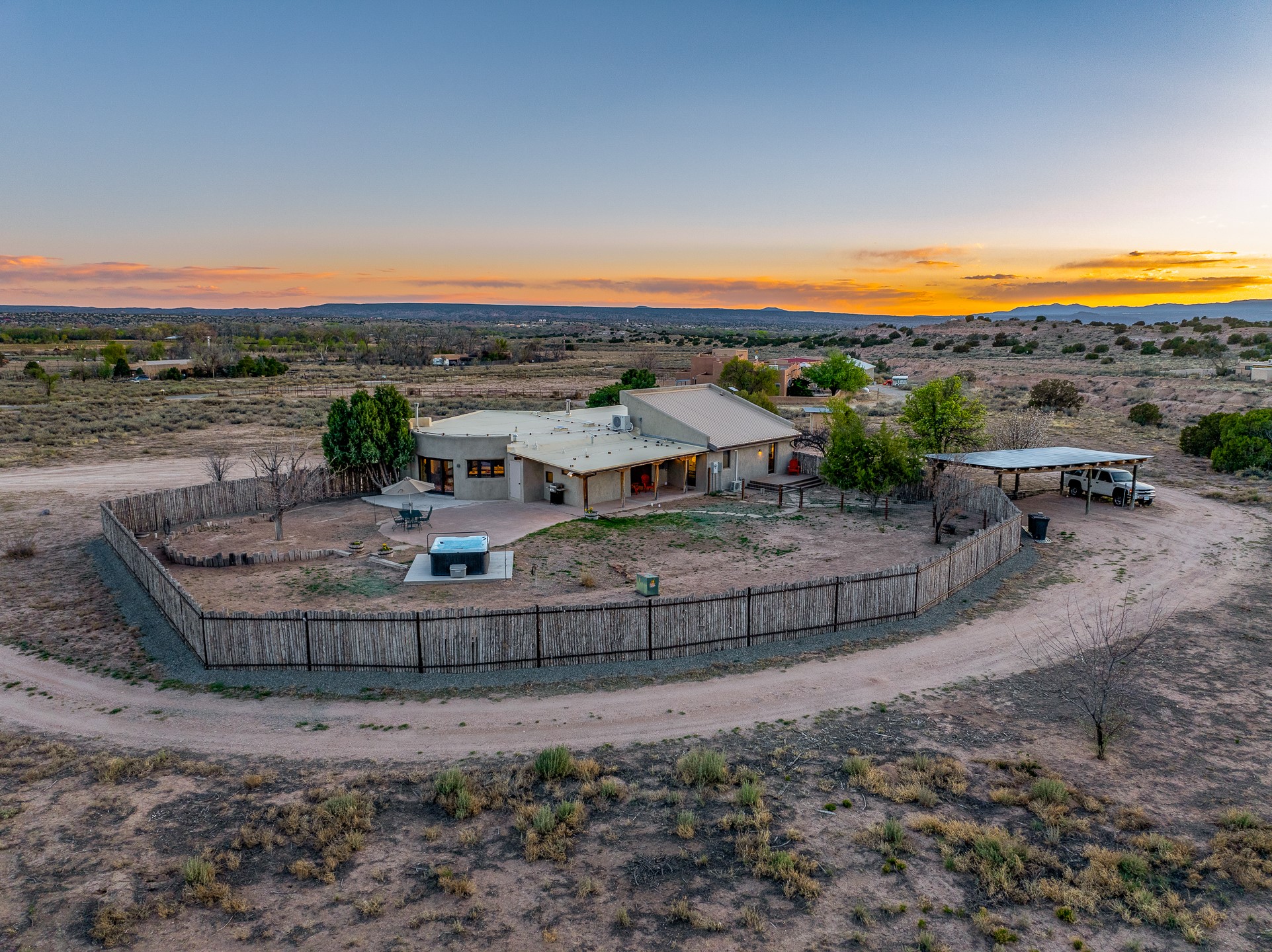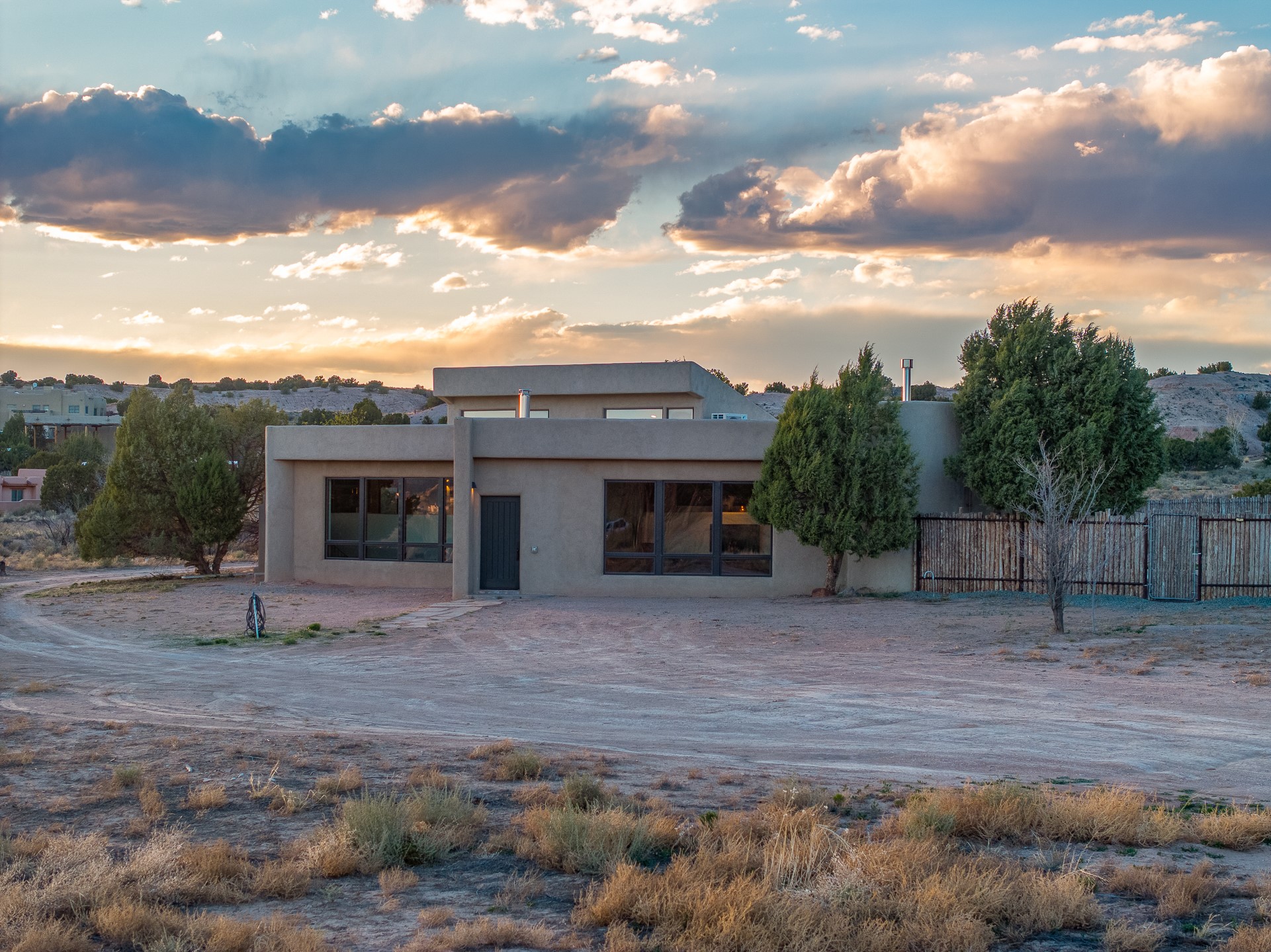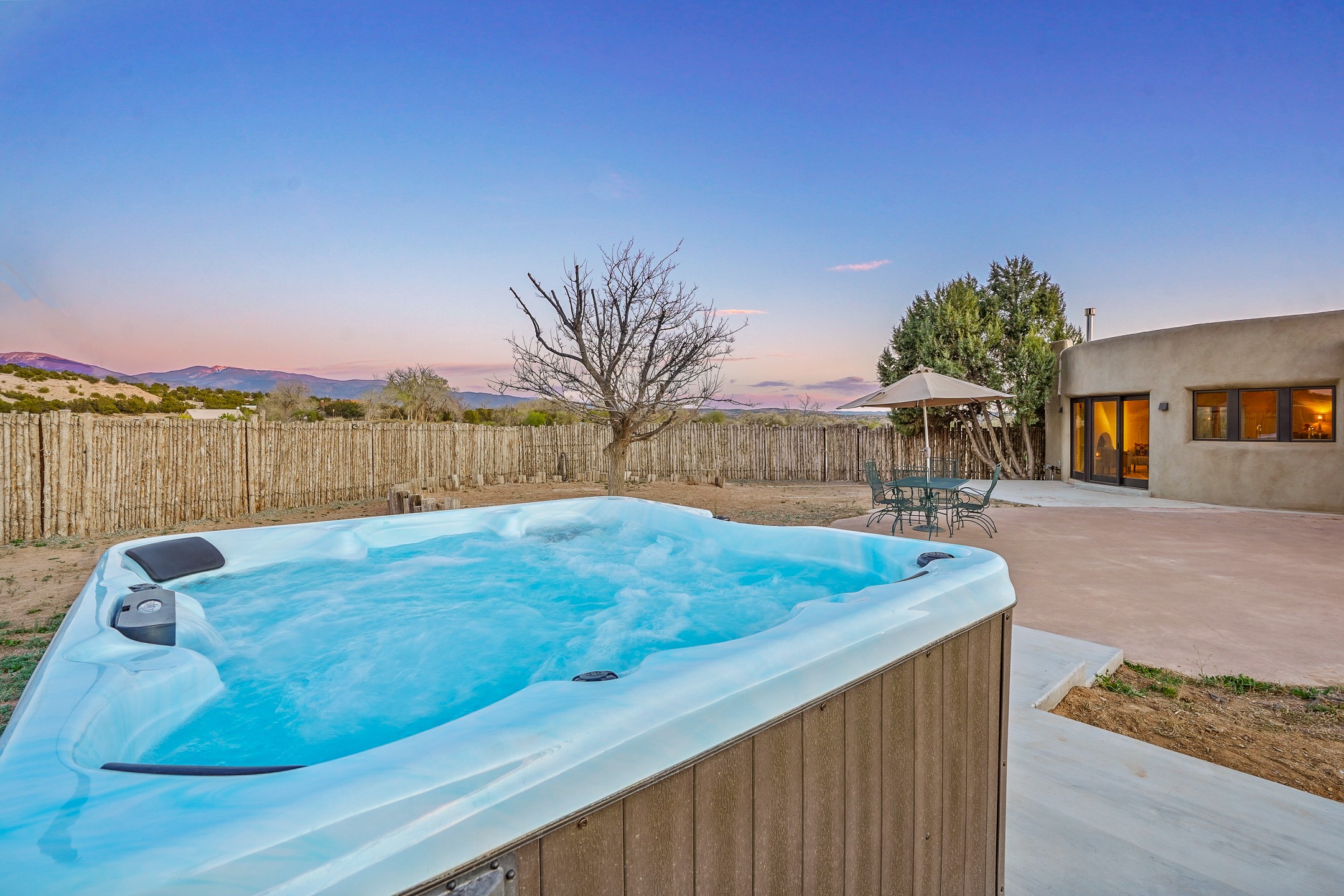 Tucked into the tranquil landscape of Namb and only a short drive from the heart of Santa Fe, 27 Loma Blanca is a beautifully renovated 3-bedroom, 3-bath home that seamlessly blends modern comforts with the natural beauty of northern New Mexico. Set on just over 5 acres with breathtaking views of the Sangre de Cristo Mountains to the east and Pojoaque Pueblo Badlands to the west, this property offers space, privacy, and the peace of the high desert. An extensive renovation has transformed this home from the ground up, including the addition of a new primary suite complete with a spacious ensuite bathroom. The reimagined kitchen is both functional and elegant, designed for modern living and entertaining. Additional updates include a brand-new TPO roofing system with transferable warranty, stucco siding, mini split heating and cooling and all new windows and doors--enhancing both curb appeal and year-round comfort. Designed with sustainability in mind, the home features a passive solar design that furthers its energy efficiency. Inside, tasteful updates extend throughout generous living areas and into the rare, expansive basement--ideal for storage, a studio, or a creative workspace. Outdoors, enjoy the fully enclosed yard surrounded by traditional latilla fencing, perfect for pets or peaceful evenings under the stars. For the adventurer or hobbyist, the property includes two RV hookups with all required connections directly adjacent to a three-bay carport. The property boasts a private well with attached irrigation rights, a rare and valuable asset in this region. Whether you're looking for a full-time residence, a weekend retreat, or a unique investment opportunity, 27 Loma Blanca offers the perfect blend of rural charm and modern living, all framed by some of the most iconic views in the Southwest.