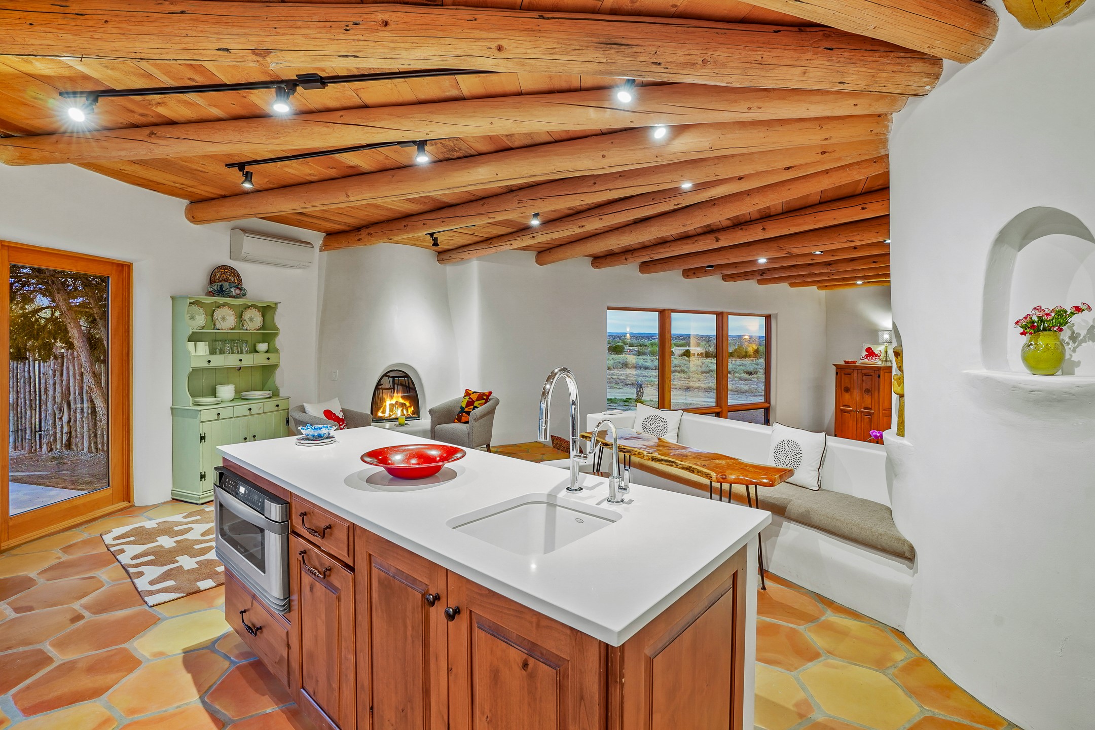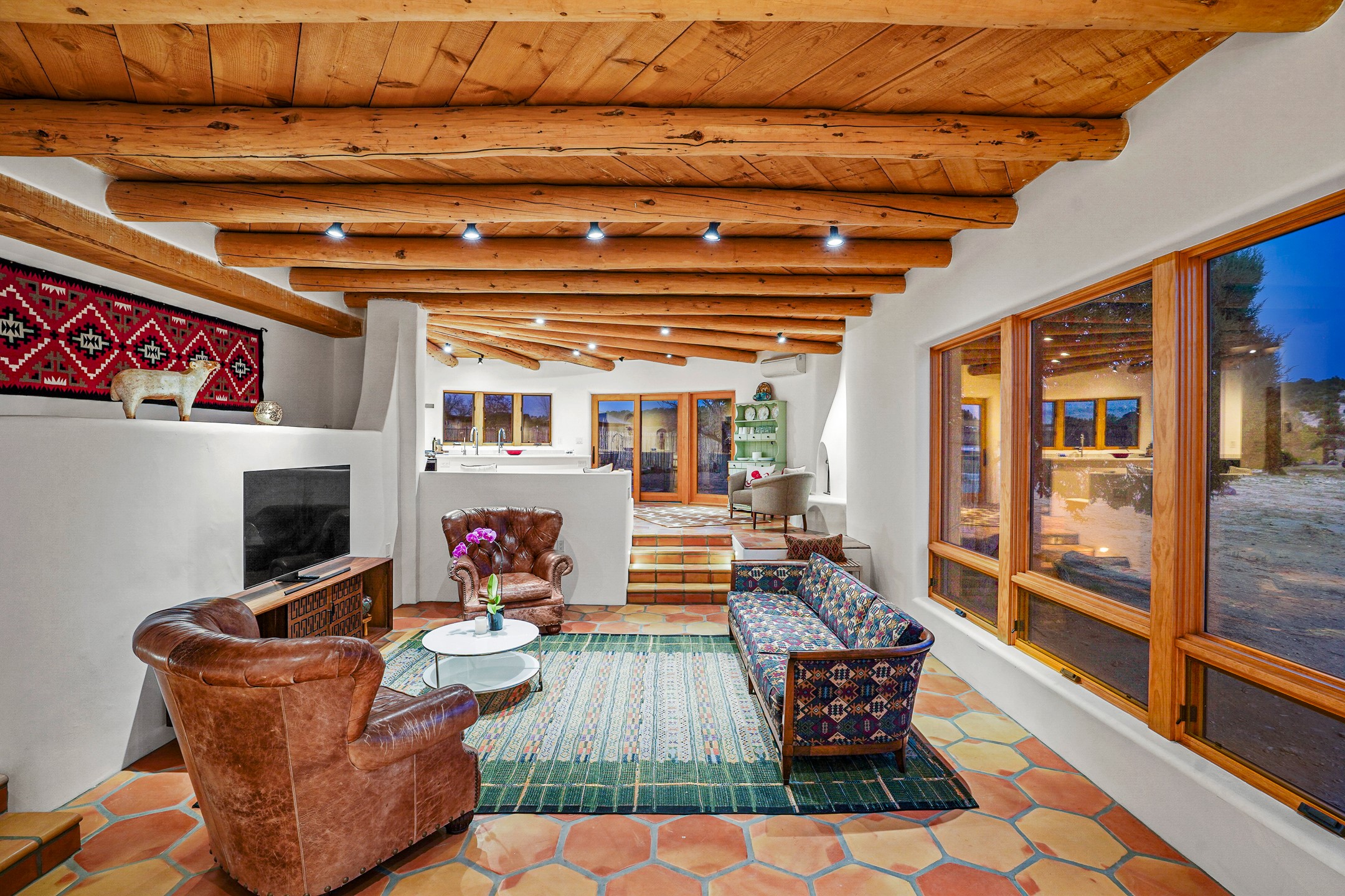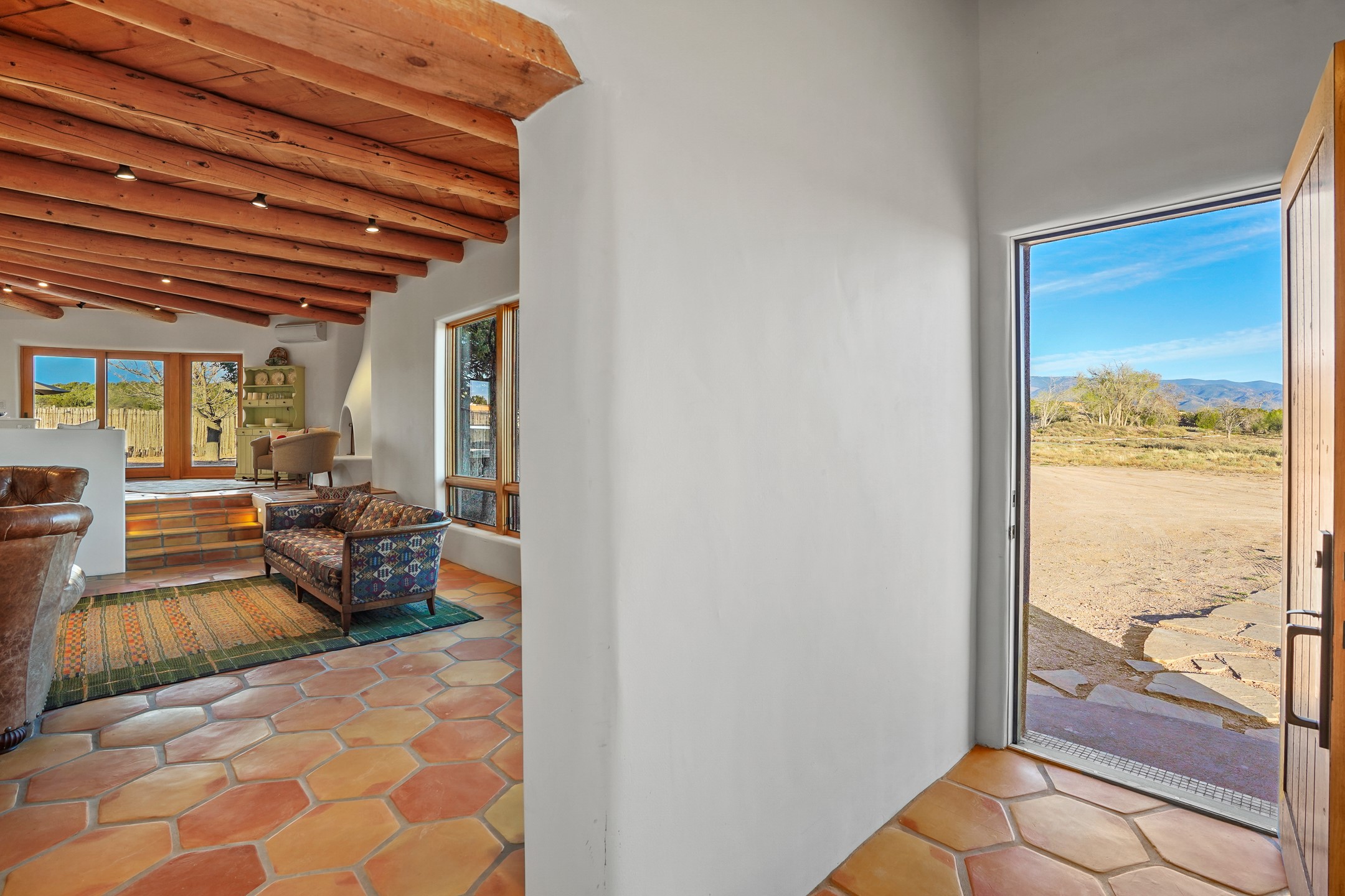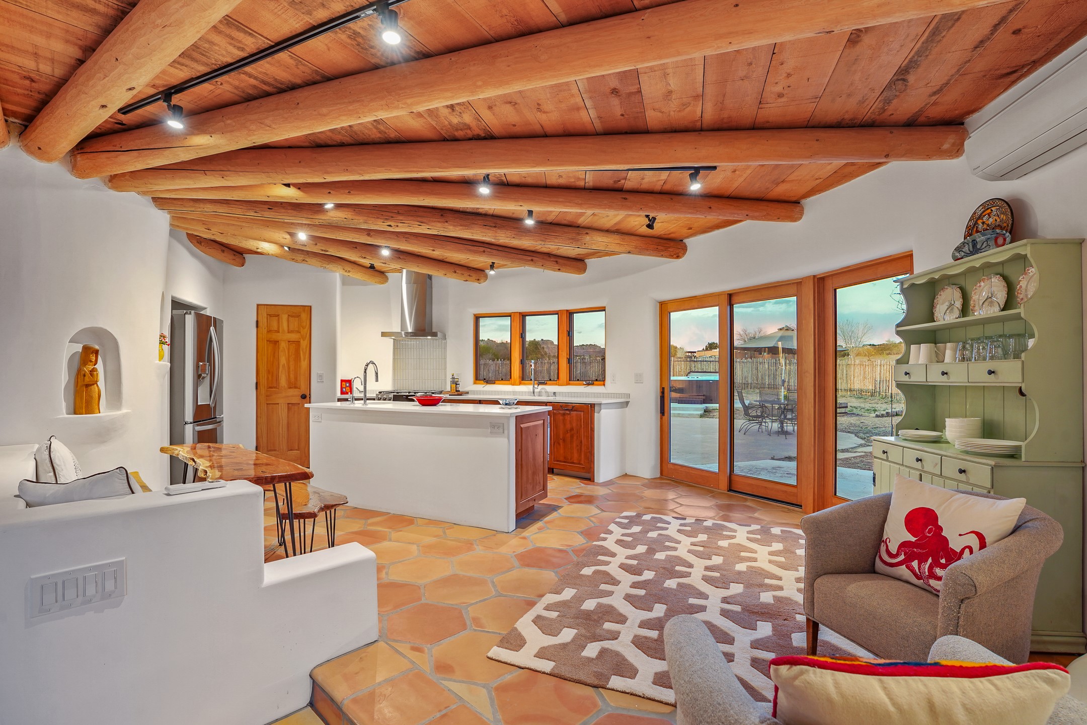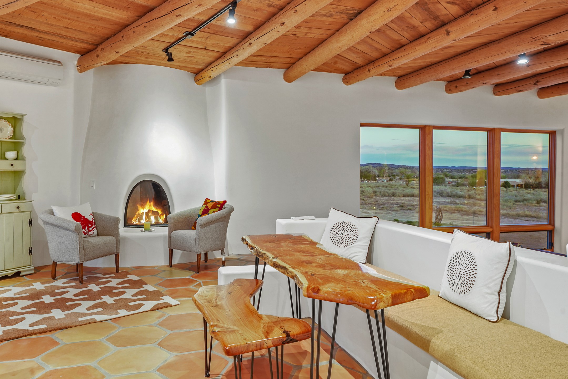 Tucked into the tranquil landscape of Namb and only a short drive from the heart of Santa Fe, 27 Loma Blanca is a beautifully renovated 3-bedroom, 3-bath home that seamlessly blends modern comforts with the natural beauty of northern New Mexico. Set on just over 5 acres with breathtaking views of the Sangre de Cristo Mountains to the east and Pojoaque Pueblo Badlands to the west, this property offers space, privacy, and the peace of the high desert. An extensive renovation has transformed this home from the ground up, including the addition of a new primary suite complete with a spacious ensuite bathroom. The reimagined kitchen is both functional and elegant, designed for modern living and entertaining. Additional updates include a brand-new TPO roofing system with transferable warranty, stucco siding, mini split heating and cooling and all new windows and doors--enhancing both curb appeal and year-round comfort. Designed with sustainability in mind, the home features a passive solar design that furthers its energy efficiency. Inside, tasteful updates extend throughout generous living areas and into the rare, expansive basement--ideal for storage, a studio, or a creative workspace. Outdoors, enjoy the fully enclosed yard surrounded by traditional latilla fencing, perfect for pets or peaceful evenings under the stars. For the adventurer or hobbyist, the property includes two RV hookups with all required connections directly adjacent to a three-bay carport. The property boasts a private well with attached irrigation rights, a rare and valuable asset in this region. Whether you're looking for a full-time residence, a weekend retreat, or a unique investment opportunity, 27 Loma Blanca offers the perfect blend of rural charm and modern living, all framed by some of the most iconic views in the Southwest.