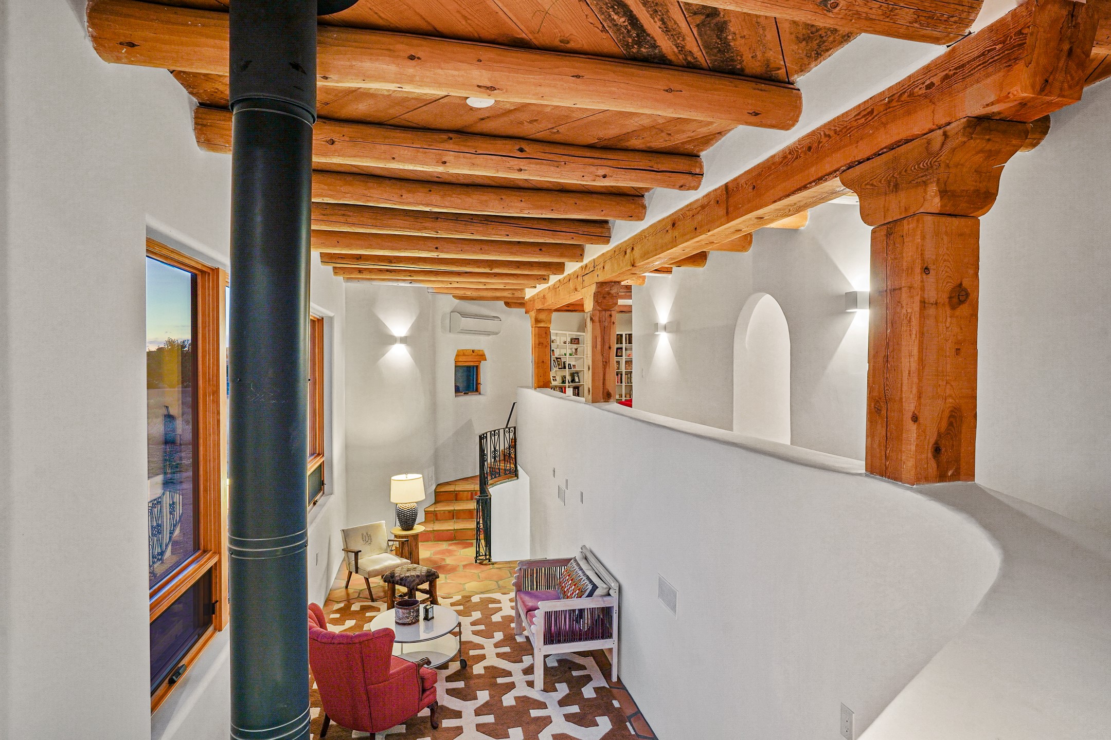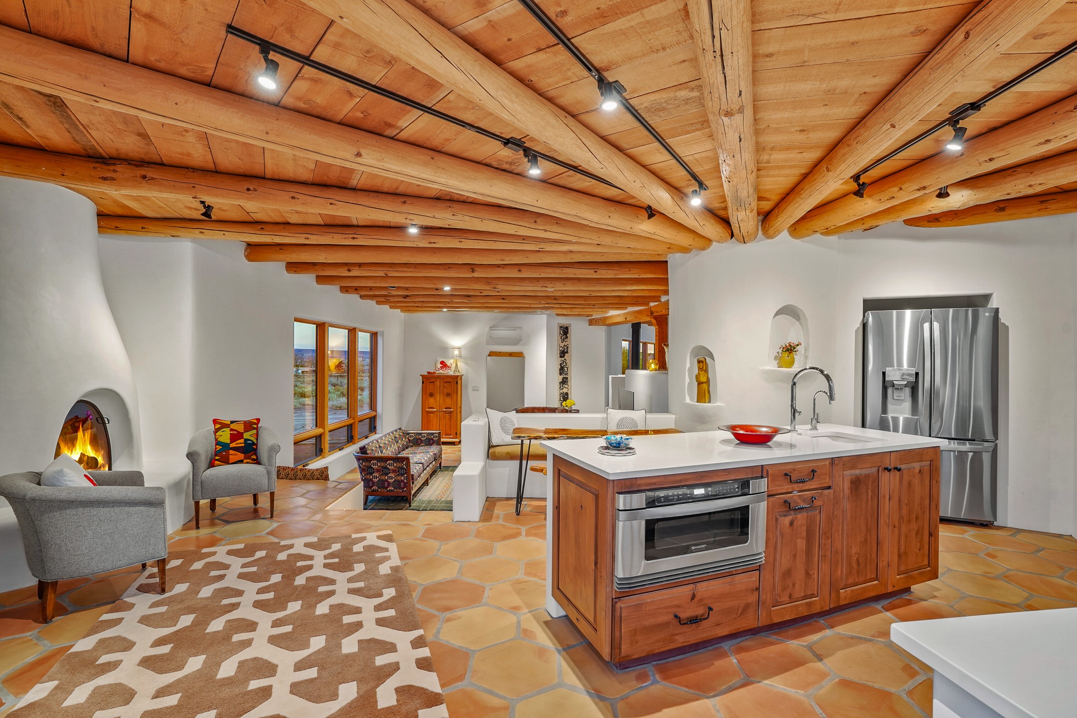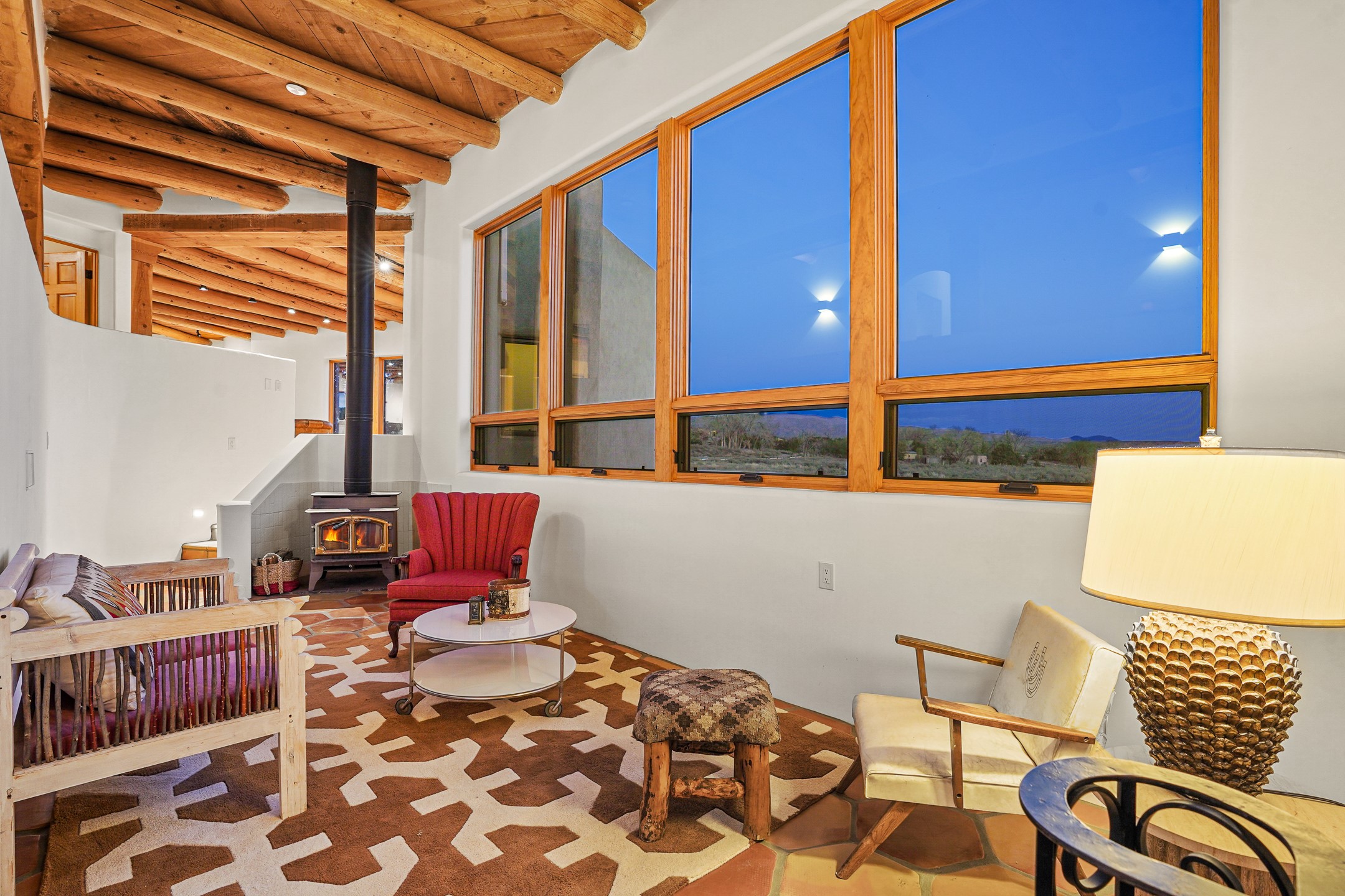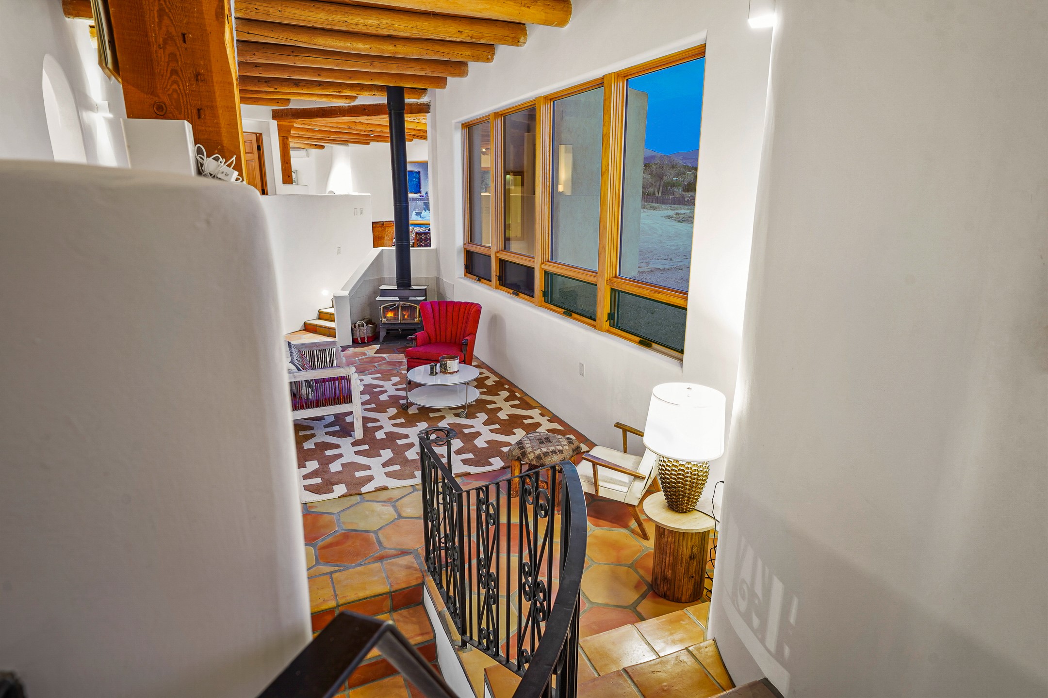 Tucked into the tranquil landscape of Namb and only a short drive from the heart of Santa Fe, 27 Loma Blanca is a beautifully renovated 3-bedroom, 3-bath home that seamlessly blends modern comforts with the natural beauty of northern New Mexico. Set on just over 5 acres with breathtaking views of the Sangre de Cristo Mountains to the east and Pojoaque Pueblo Badlands to the west, this property offers space, privacy, and the peace of the high desert. An extensive renovation has transformed this home from the ground up, including the addition of a new primary suite complete with a spacious ensuite bathroom. The reimagined kitchen is both functional and elegant, designed for modern living and entertaining. Additional updates include a brand-new TPO roofing system with transferable warranty, stucco siding, mini split heating and cooling and all new windows and doors--enhancing both curb appeal and year-round comfort. Designed with sustainability in mind, the home features a passive solar design that furthers its energy efficiency. Inside, tasteful updates extend throughout generous living areas and into the rare, expansive basement--ideal for storage, a studio, or a creative workspace. Outdoors, enjoy the fully enclosed yard surrounded by traditional latilla fencing, perfect for pets or peaceful evenings under the stars. For the adventurer or hobbyist, the property includes two RV hookups with all required connections directly adjacent to a three-bay carport. The property boasts a private well with attached irrigation rights, a rare and valuable asset in this region. Whether you're looking for a full-time residence, a weekend retreat, or a unique investment opportunity, 27 Loma Blanca offers the perfect blend of rural charm and modern living, all framed by some of the most iconic views in the Southwest.