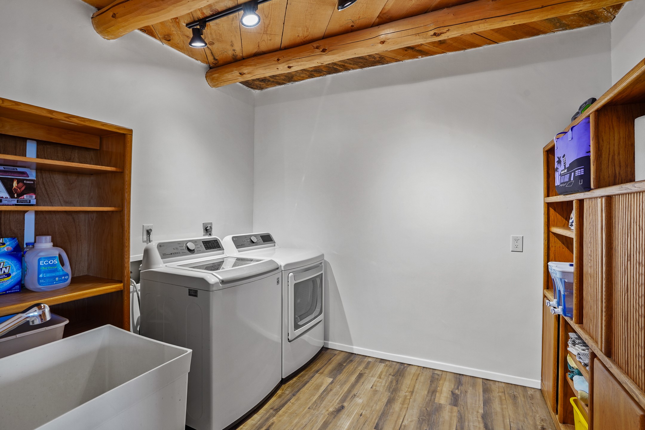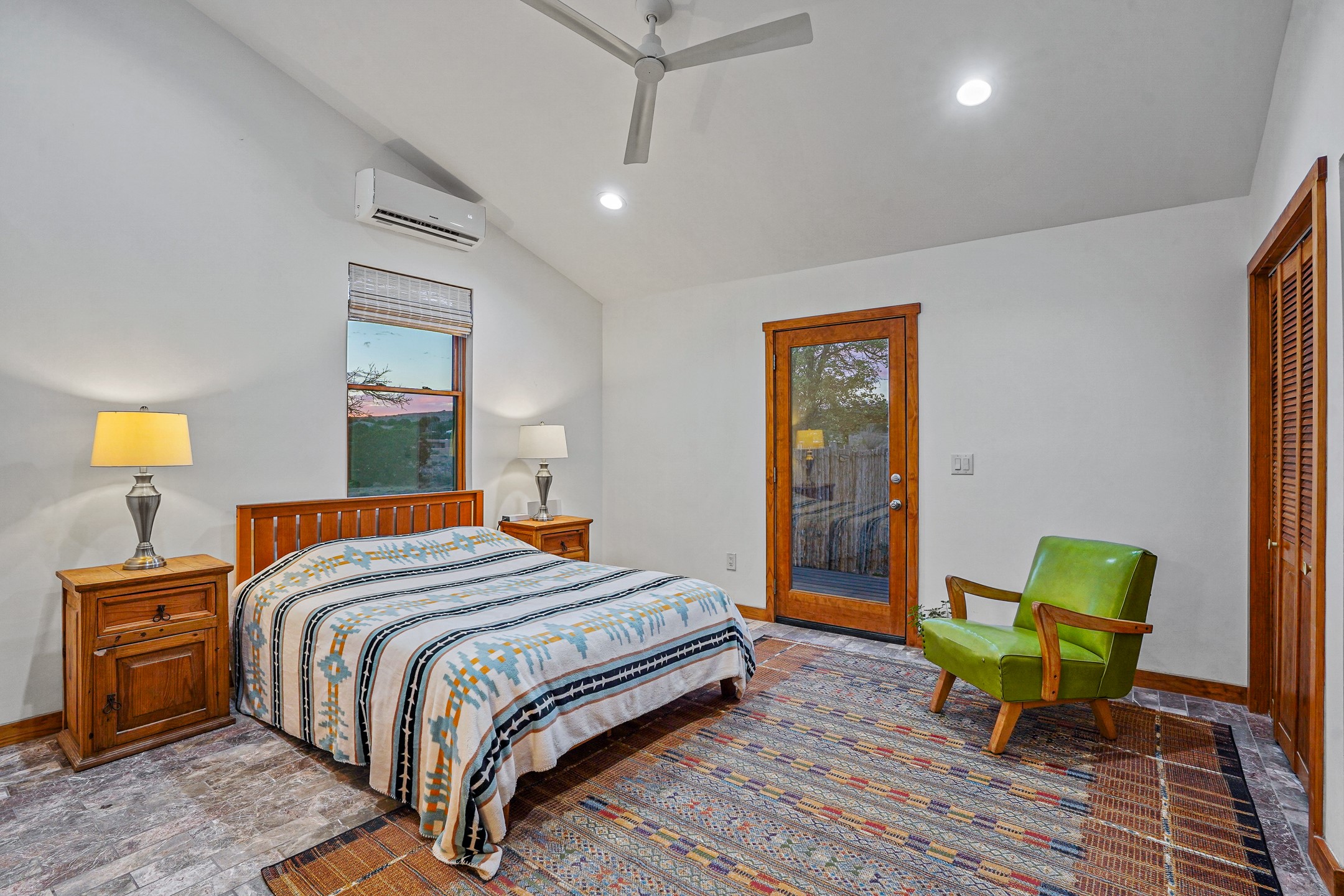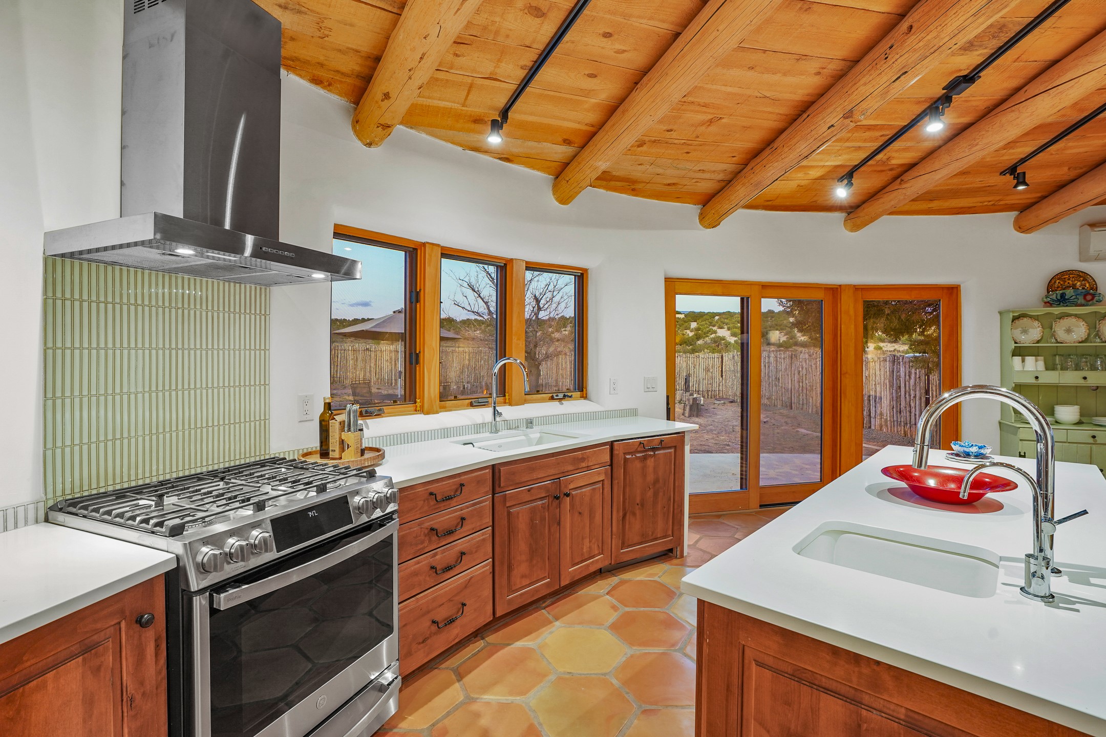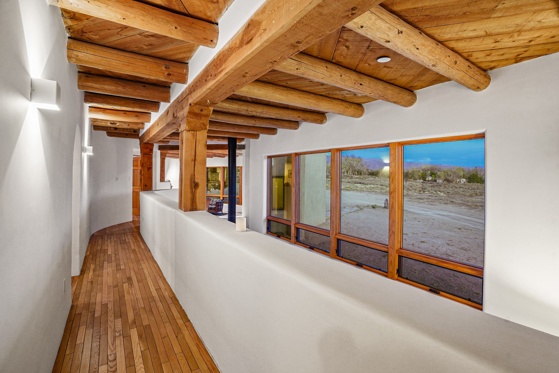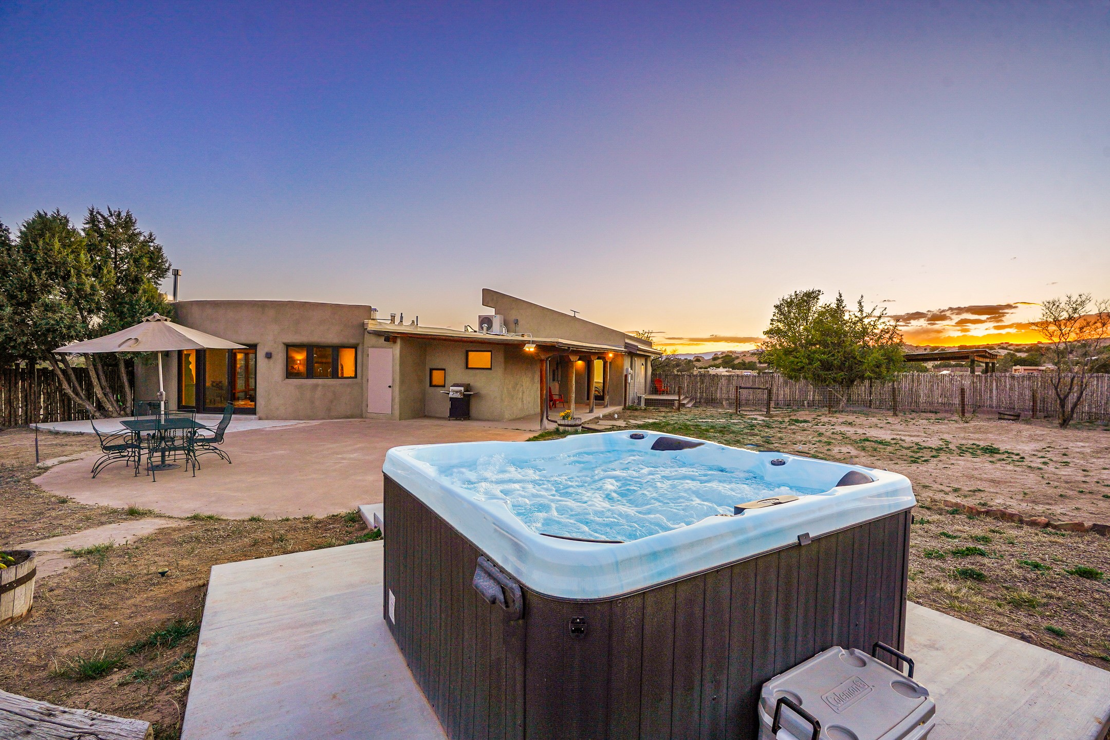 Tucked into the tranquil landscape of Namb and only a short drive from the heart of Santa Fe, 27 Loma Blanca is a beautifully renovated 3-bedroom, 3-bath home that seamlessly blends modern comforts with the natural beauty of northern New Mexico. Set on just over 5 acres with breathtaking views of the Sangre de Cristo Mountains to the east and Pojoaque Pueblo Badlands to the west, this property offers space, privacy, and the peace of the high desert. An extensive renovation has transformed this home from the ground up, including the addition of a new primary suite complete with a spacious ensuite bathroom. The reimagined kitchen is both functional and elegant, designed for modern living and entertaining. Additional updates include a brand-new TPO roofing system with transferable warranty, stucco siding, mini split heating and cooling and all new windows and doors--enhancing both curb appeal and year-round comfort. Designed with sustainability in mind, the home features a passive solar design that furthers its energy efficiency. Inside, tasteful updates extend throughout generous living areas and into the rare, expansive basement--ideal for storage, a studio, or a creative workspace. Outdoors, enjoy the fully enclosed yard surrounded by traditional latilla fencing, perfect for pets or peaceful evenings under the stars. For the adventurer or hobbyist, the property includes two RV hookups with all required connections directly adjacent to a three-bay carport. The property boasts a private well with attached irrigation rights, a rare and valuable asset in this region. Whether you're looking for a full-time residence, a weekend retreat, or a unique investment opportunity, 27 Loma Blanca offers the perfect blend of rural charm and modern living, all framed by some of the most iconic views in the Southwest.