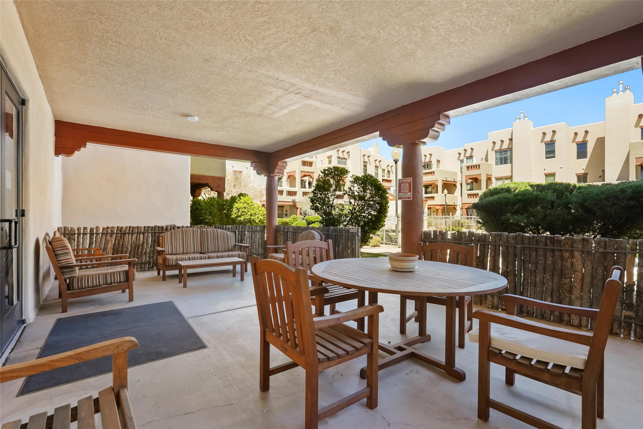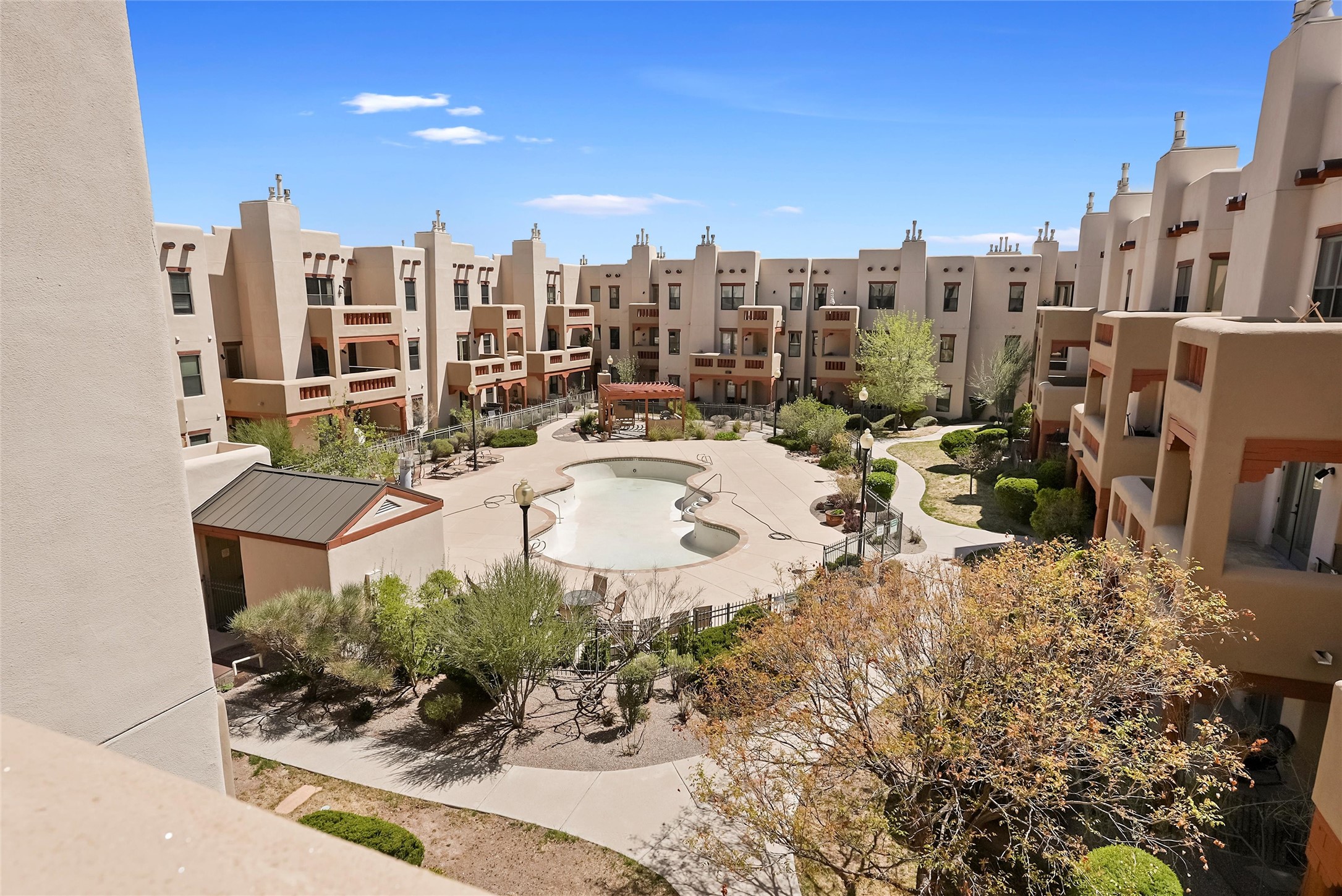 Welcome to 1405 Vegas Verdes #341! Experience easy living in this beautifully maintained 1-bedroom, 1-bathroom condo located in the desirable Alameda Condominium Complex. This bright and inviting third-floor unit features a private balcony perfect for enjoying Santa Fe's stunning sunsets. In the living room you'll find a beautiful kiva fireplace that will keep you warm during cooler evenings. Inside, you'll appreciate the convenience of an in-unit laundry, ample closet space, and a thoughtfully designed open floor plan. An additional private 10' x 12' storage unit offers plenty of space for all your extras -- a rare find! The Alameda community offers fantastic amenities including a sparkling outdoor pool, BBQ area, fitness center, and a shared room for private gatherings. With secure access, elevators, and a prime location close to shopping, dining, and entertainment, this is an ideal place to call home! Don't miss your chance to own a piece of Santa Fe's vibrant lifestyle -- schedule your showing today!
