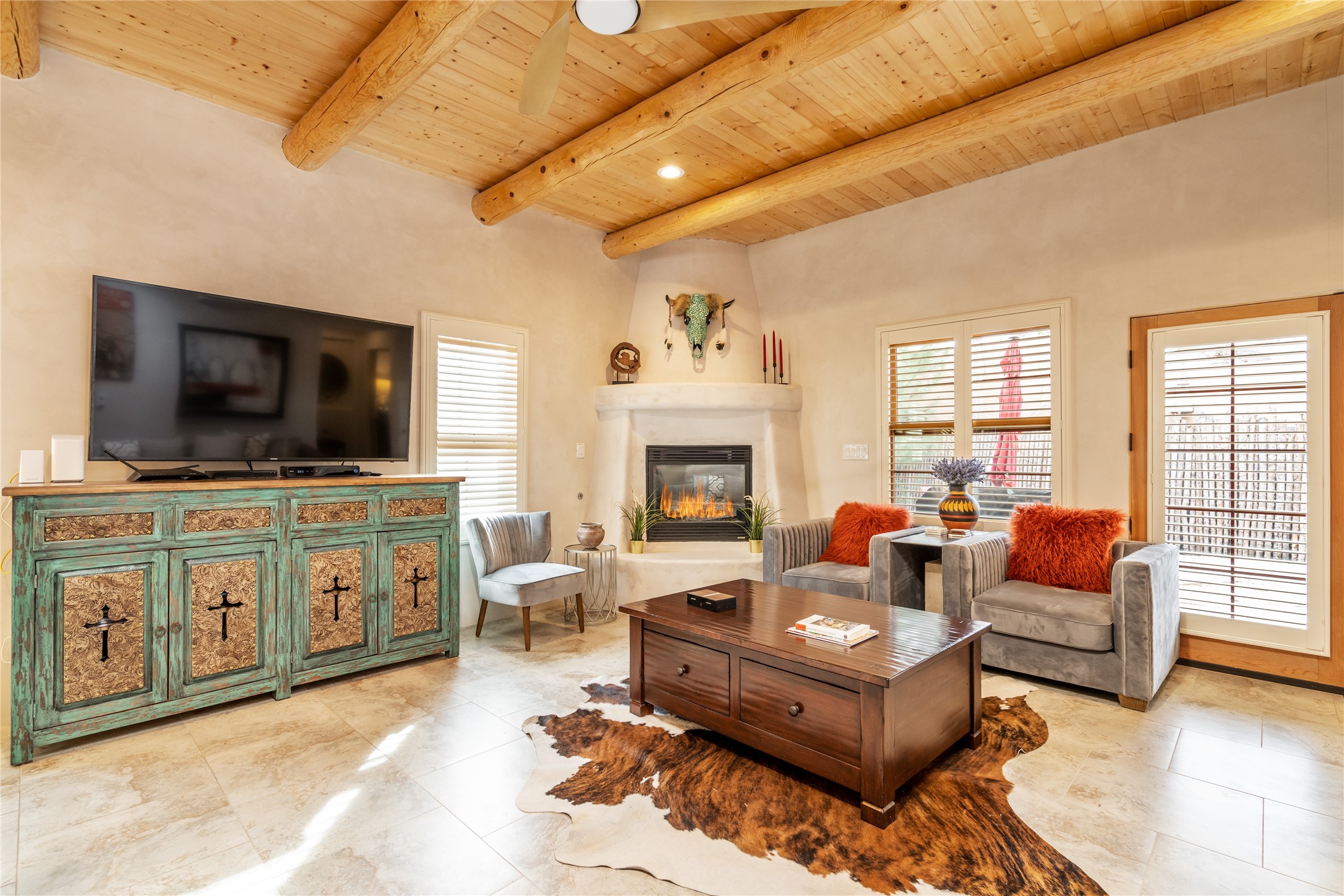 Welcome to your oasis in the heart of SantaFe. Convenient downtown location that is steps from Canyon Road and Plaza. Gated compound with main house and casita, beautifully designed landscaping and grounds. Diamond plaster walls, high ceiling and skylights help to fill the home with bright lofty light. Custom windows and door shutters throughout both homes, radiant in floor heating, mini splits for AC, and a 1 car garage. Grand entertaining courtyard and portals for enjoying the beautiful Santa Fe weather. Both units currently are permitted as short term rentals with long term proven rental income. Plenty of off street parking and the city has also designated 2 additional spaces for this property. Raised garden bed and multiple lock off gates for dogs runs and privacy! Owners have meticulously maintained the space with a team of housekeepers and gardeners for year round maintenance. Proven rental income with 5 star reviews. Extensive landscaping and upgrades over the years. Sold fully furnished (exception of some art and select decor). TURN KEY INVESTMENT OPPORTUNITY!