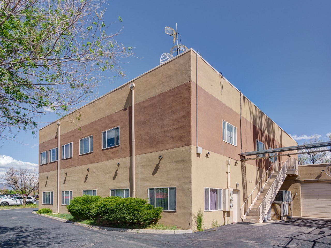 2502 Camino Entrada presents a compelling investment opportunity for any investor. Situated on a substantial 0.75-acre parcel in a strategic Santa Fe location, this well-maintained 9,500+ square foot building benefits from high visibility and convenient accessibility, complemented by a versatile floor plan that currently supports full occupancy with a diverse tenant mix. Zoned for light industrial use in a desirable area, this asset represents a sound addition to any investment portfolio. The ground level comprises two expansive units, each featuring a kitchenette, tandem restrooms, and dedicated office space. The upper level offers a well-appointed office suite, including a reception area, conference room, kitchenette, and multiple offices with notable mountain views. Unit A is leased for $2800 per month. Unit B is rented for $2884 per month. Unit C will enter a 4 year lease for $6,000 per month with two 4 year options. Cal for more info!