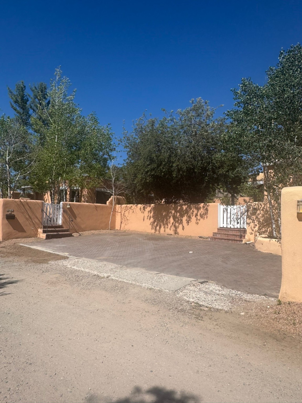 Charming Historic Adobe Home in Santa Fe's East SideNestled in the heart of Santa Fe's coveted historic Eastside, this classic territorial style, all-adobe home, built in the 1900s, offers timeless character and exceptional location. Just a short stroll from iconic Canyon Road, this unique property includes a beautifully maintained main residence and a detached casita, large basement with bathroom and 5 parking spaces. Main house is two bedrooms, 2 baths with kiva fireplace, original wood floors, plaster walls and traditional viga ceilings that exudes Santa Fe style. The brick-floored portal and multiple patios with adobe walls offer lovely options for outdoor living areas. Main house also features an 885 sq ft basement with separate exterior entrance, bathroom and multiple rooms for added possibilities for studio, office or remodel into living space.Property also includes a detached two-bedroom, one-bath casita--perfect for guests or as a proven income-producing rental - with a remodeled contemporary kitchen and utilities separately metered.This rare find blends convenience with traditional Southwestern charm and is a truly special opportunity to own a piece of Santa Fe history with strong rental potential and unbeatable walkability.Price subject to existing lienholder for short sale.