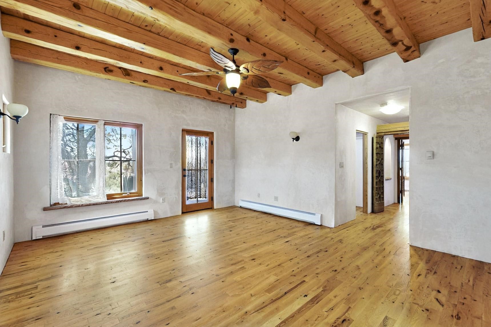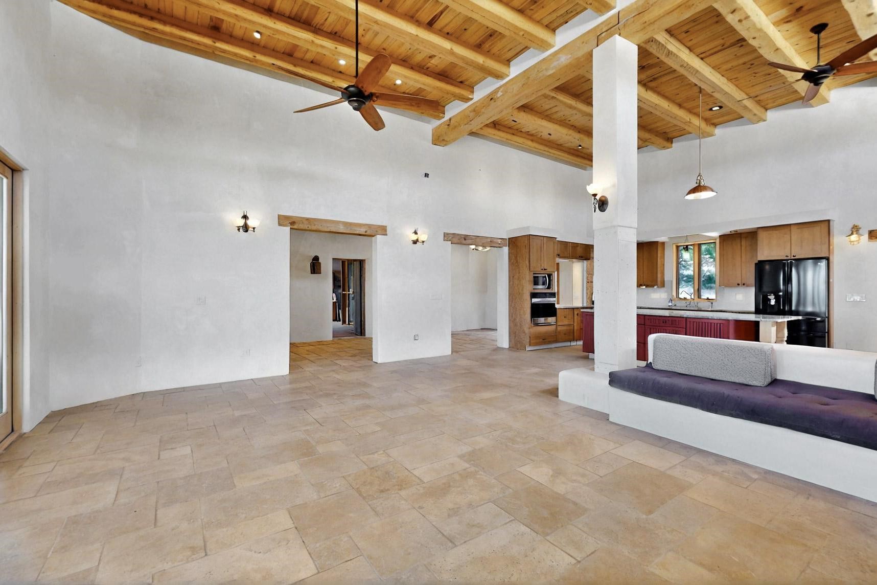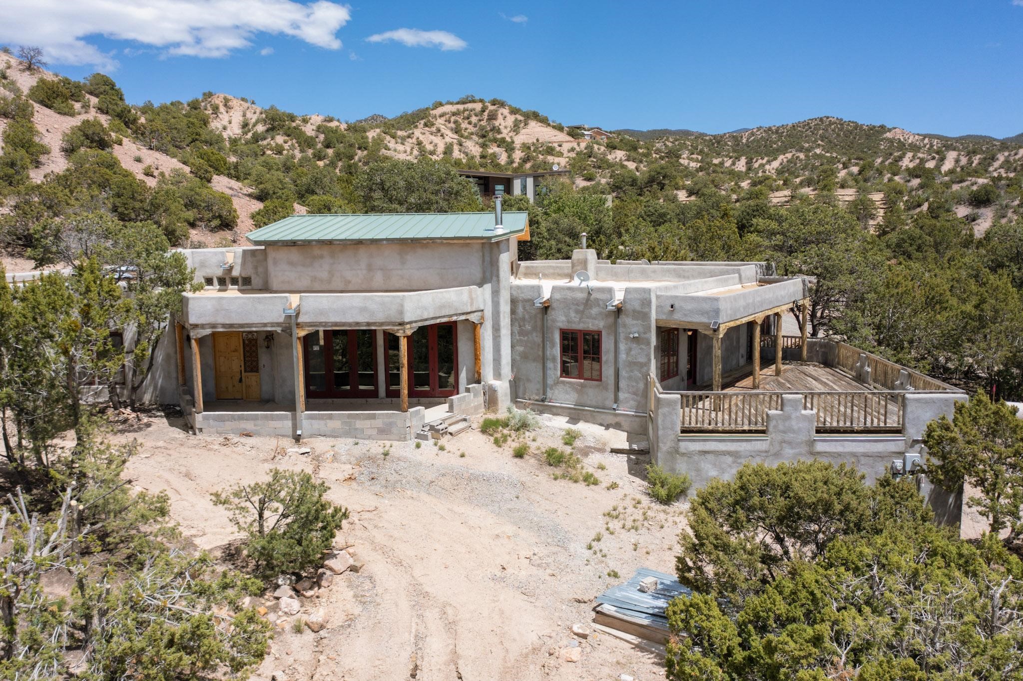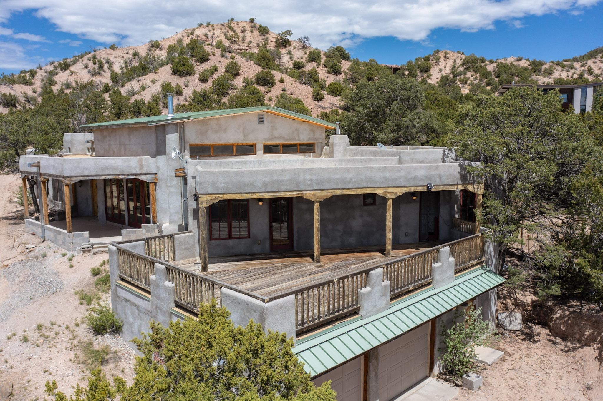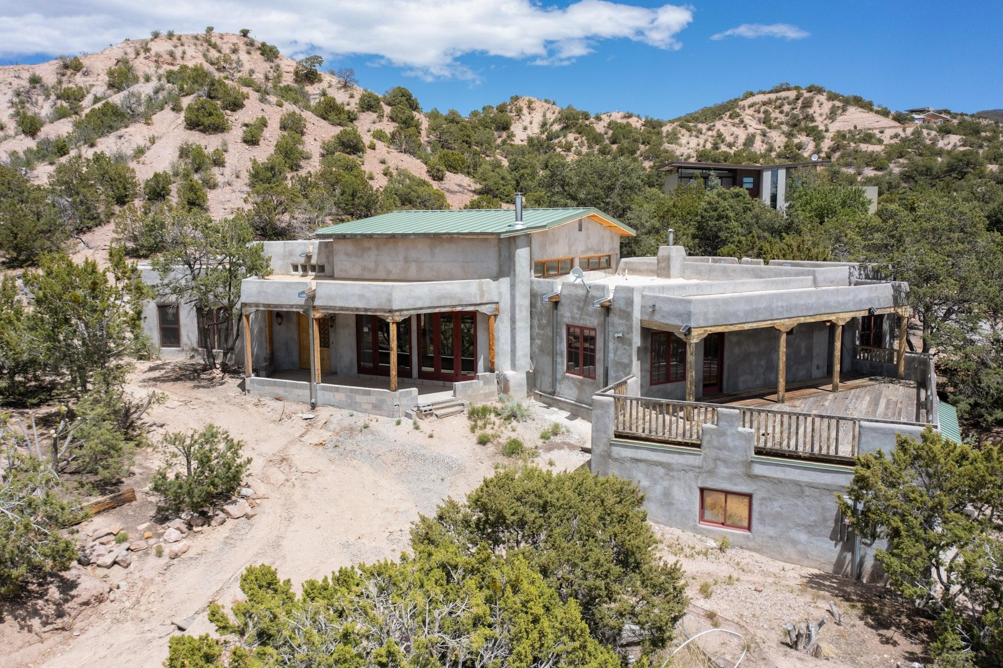 Contractors and Investors - Exceptional Opportunity. Discover endless potential at 5 Camino Sin Ganas, a unique and spacious property nestled in the peaceful and picturesque community of Tesuque. Situated on a 1.91-acre lot, this residence offers 4,522 square feet of living space--an ideal canvas for investors, contractors, or anyone looking to renovate or customize a home to their vision. The heart of the home is the expansive great room, showcasing soaring 16-foot ceilings, clerestory windows, and elegant French doors that flood the space with natural light. From here, take in stunning mountain and high-desert views, perfectly framed by the home's elevated position and carried through to the side view deck, ideal for outdoor relaxation or entertaining. Interior highlights include in-floor radiant heating, a mix of wood and tile flooring, and plastered walls throughout. Additional features include a two-car garage and a side viewing deck off both the primary suite and a secondary bedroom. This is a rare opportunity to invest in one of Tesuque's most sought-after areas. Whether you're restoring, remodeling, or reimagining, 5 Camino Sin Ganas is ready for your vision.