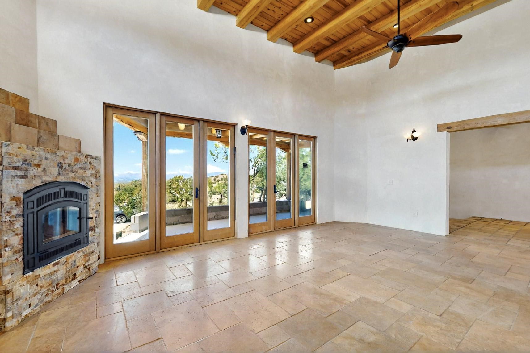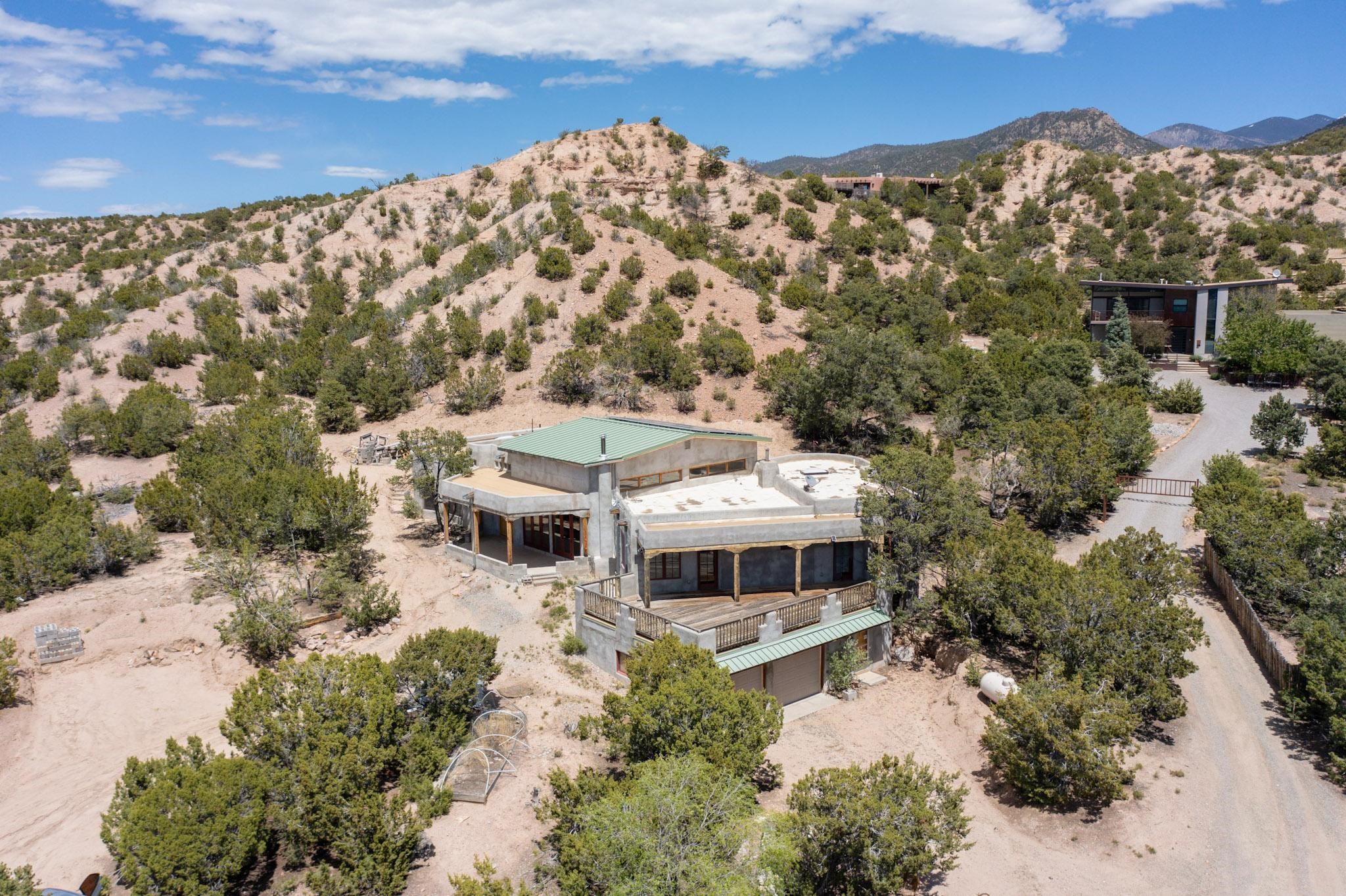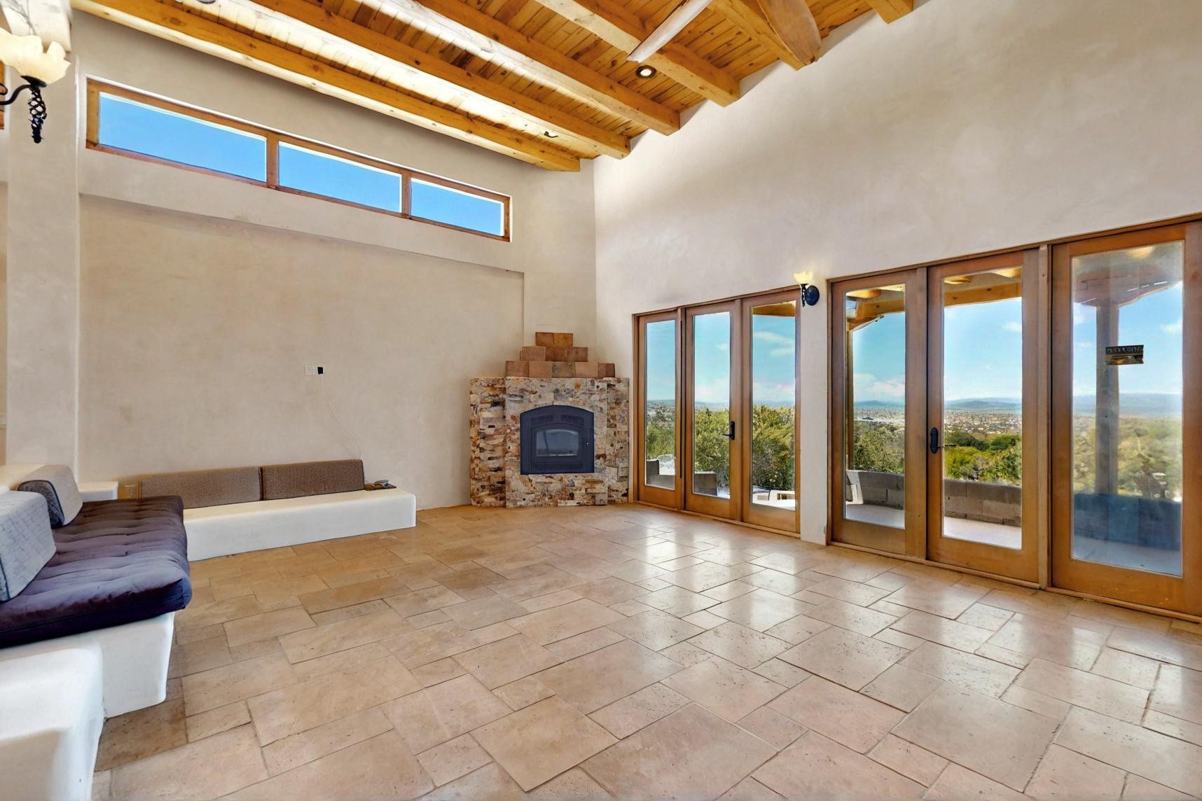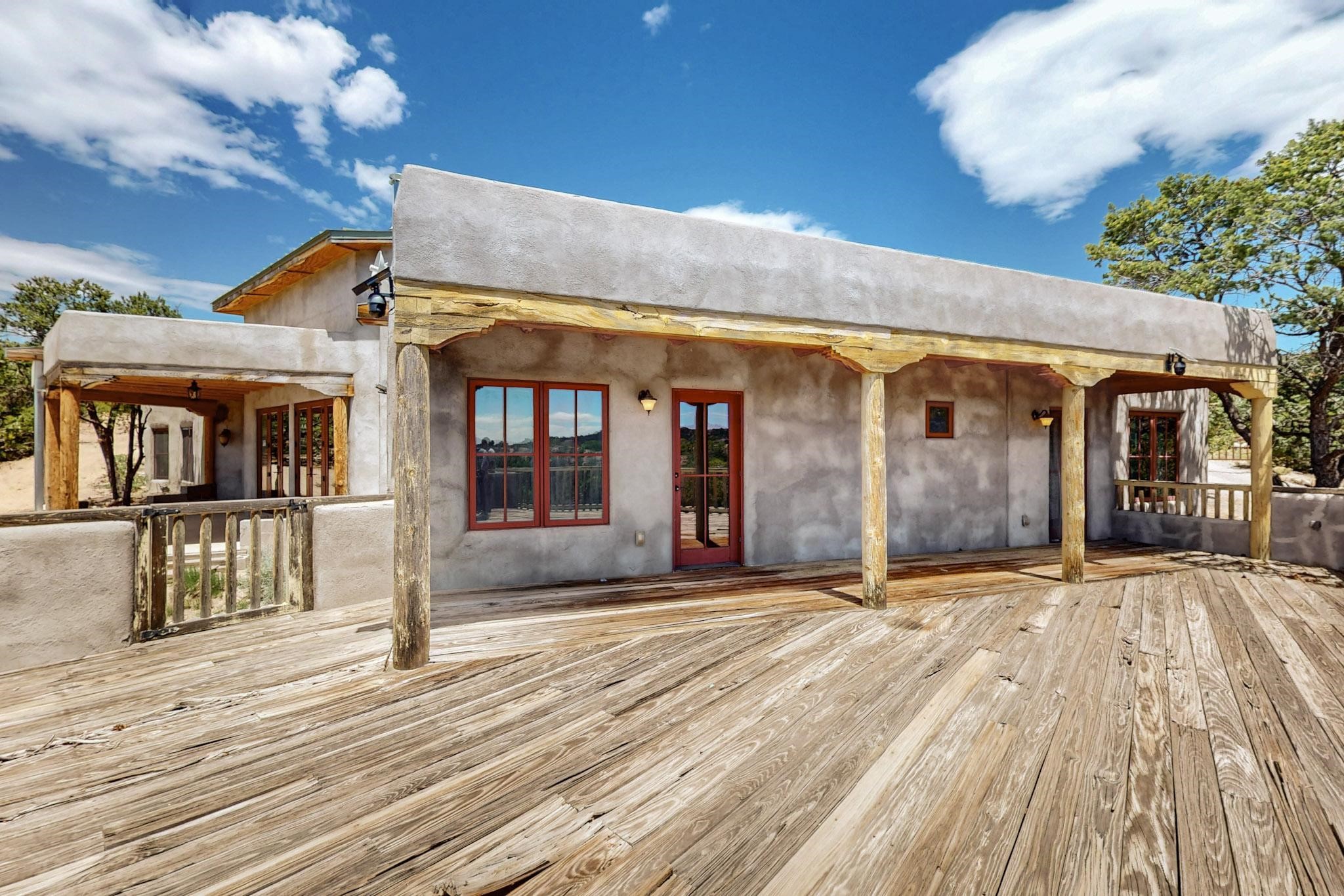 Contractors and Investors - Exceptional Opportunity. Discover endless potential at 5 Camino Sin Ganas, a unique and spacious property nestled in the peaceful and picturesque community of Tesuque. Situated on a 1.91-acre lot, this residence offers 4,522 square feet of living space--an ideal canvas for investors, contractors, or anyone looking to renovate or customize a home to their vision. The heart of the home is the expansive great room, showcasing soaring 16-foot ceilings, clerestory windows, and elegant French doors that flood the space with natural light. From here, take in stunning mountain and high-desert views, perfectly framed by the home's elevated position and carried through to the side view deck, ideal for outdoor relaxation or entertaining. Interior highlights include in-floor radiant heating, a mix of wood and tile flooring, and plastered walls throughout. Additional features include a two-car garage and a side viewing deck off both the primary suite and a secondary bedroom. This is a rare opportunity to invest in one of Tesuque's most sought-after areas. Whether you're restoring, remodeling, or reimagining, 5 Camino Sin Ganas is ready for your vision.