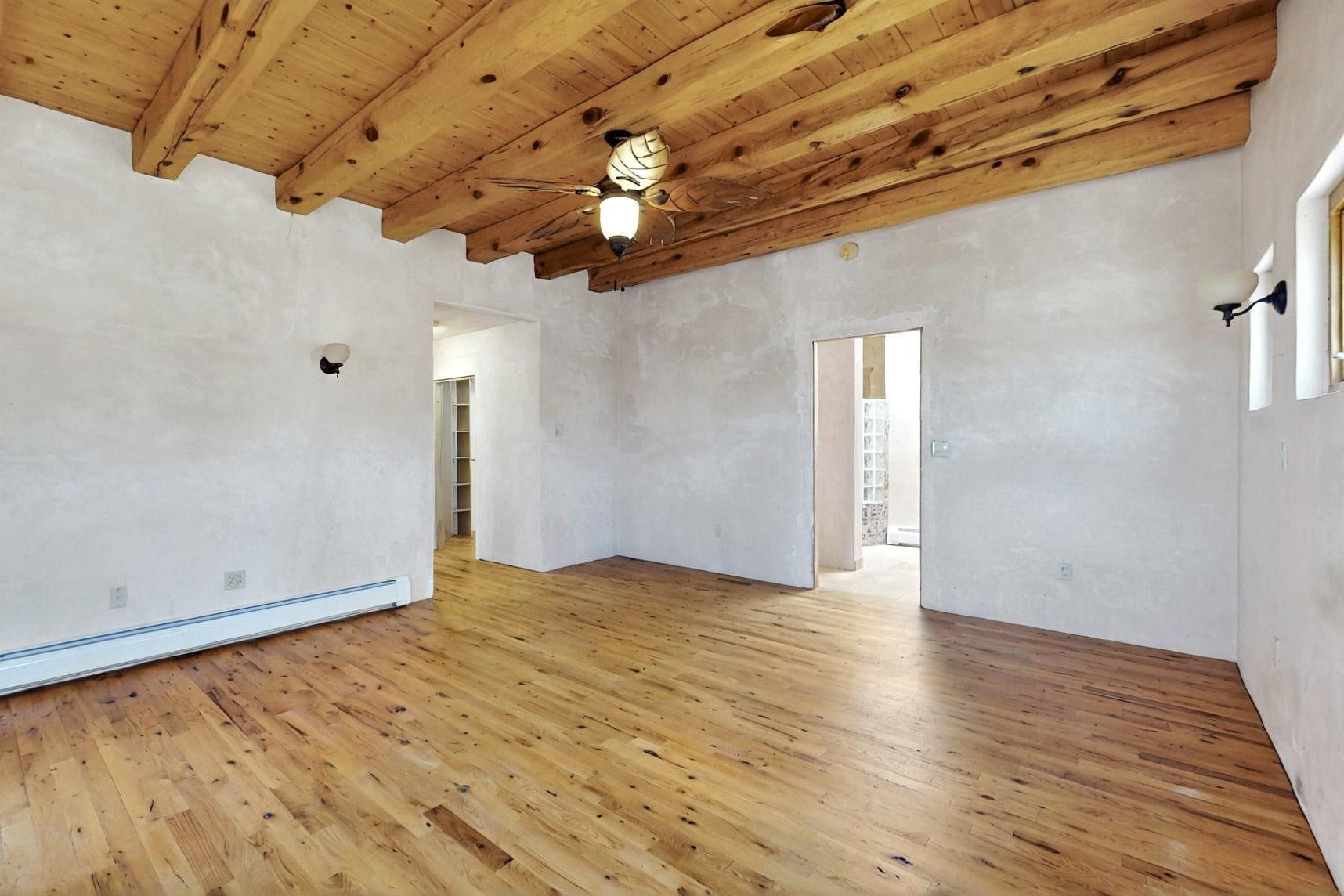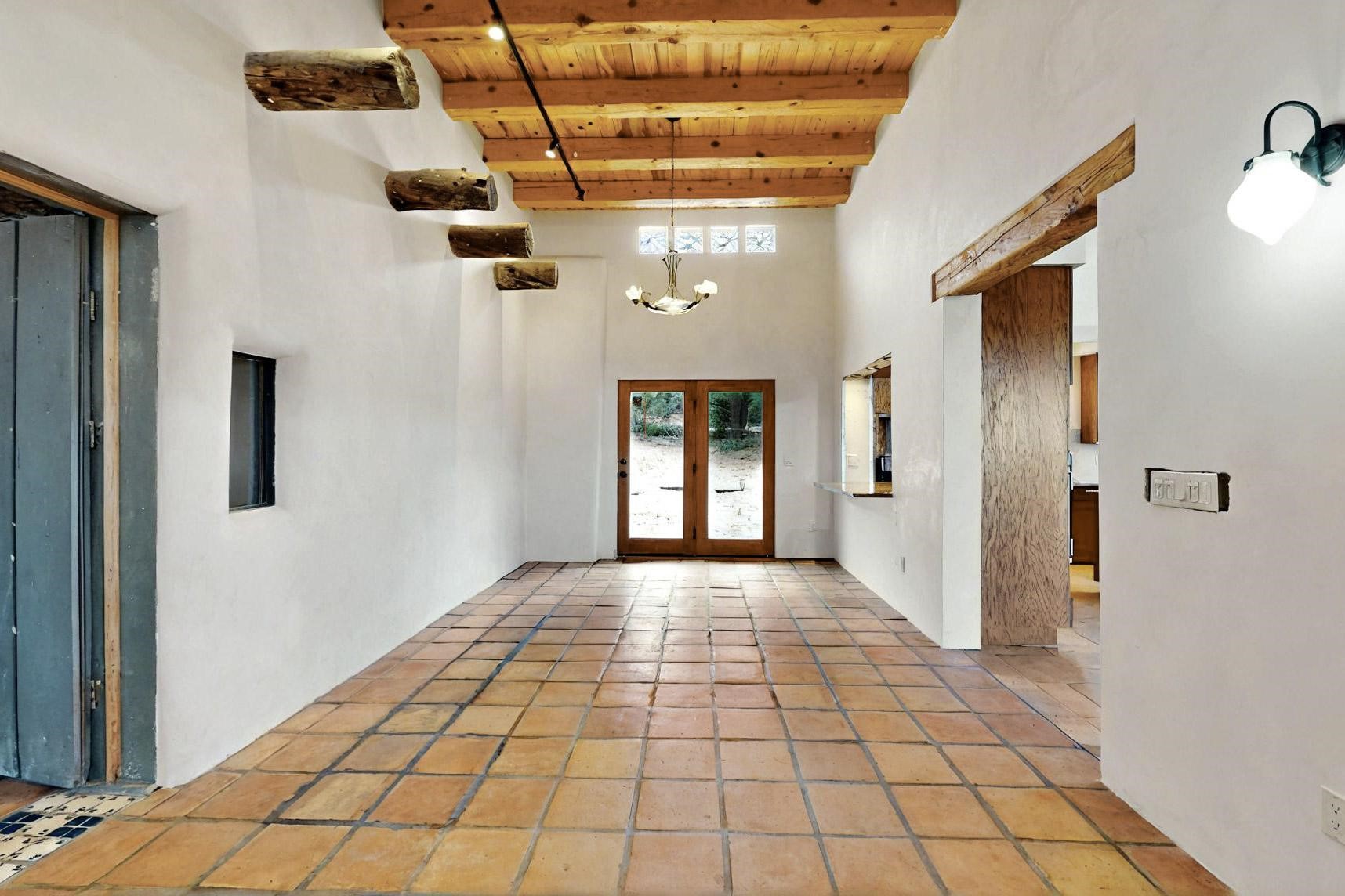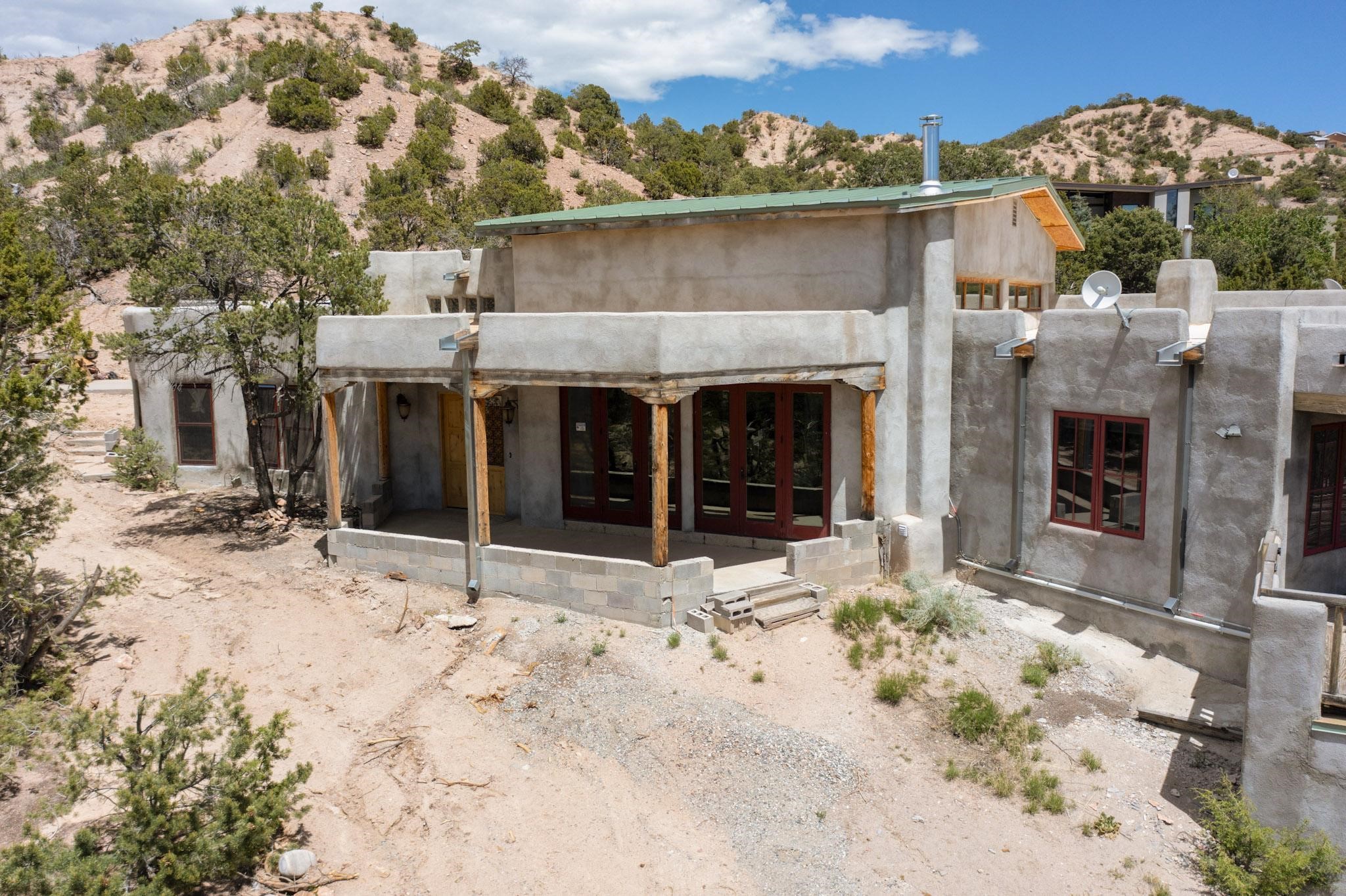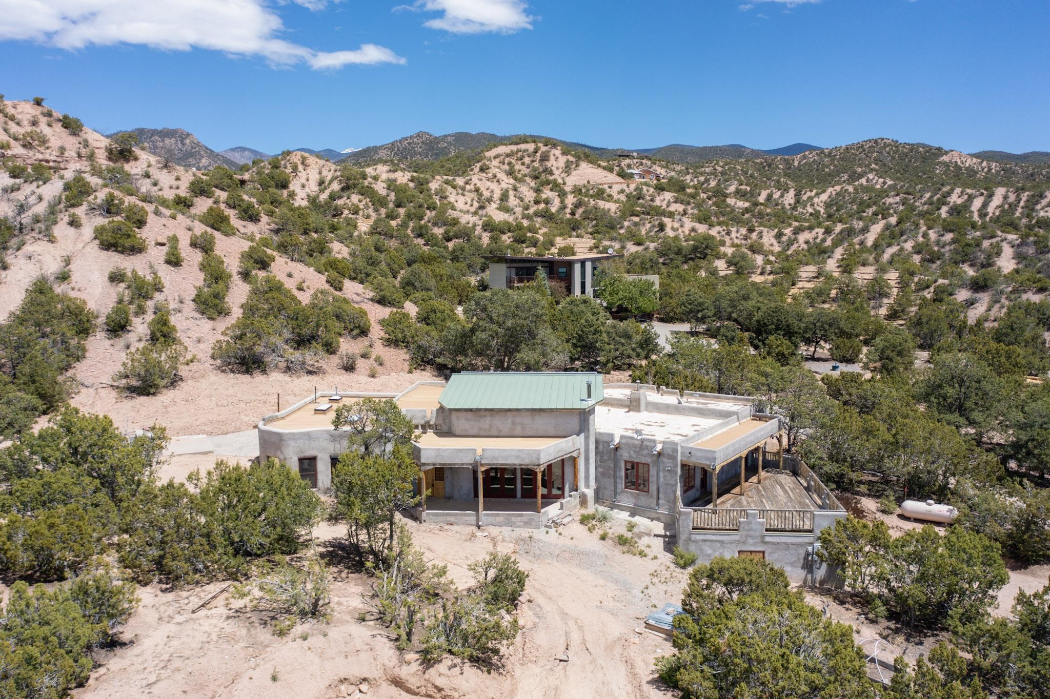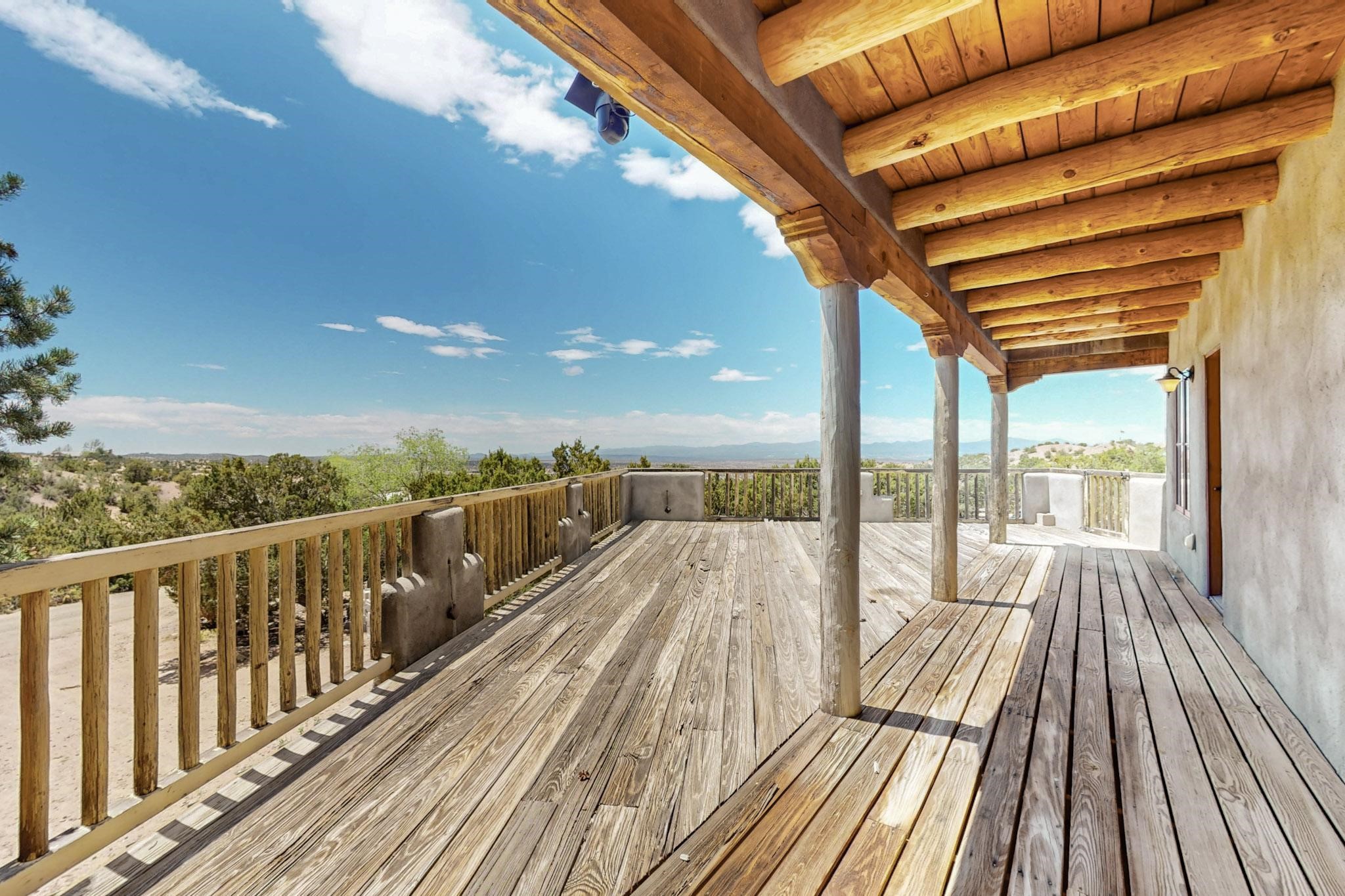 Contractors and Investors - Exceptional Opportunity. Discover endless potential at 5 Camino Sin Ganas, a unique and spacious property nestled in the peaceful and picturesque community of Tesuque. Situated on a 1.91-acre lot, this residence offers 4,522 square feet of living space--an ideal canvas for investors, contractors, or anyone looking to renovate or customize a home to their vision. The heart of the home is the expansive great room, showcasing soaring 16-foot ceilings, clerestory windows, and elegant French doors that flood the space with natural light. From here, take in stunning mountain and high-desert views, perfectly framed by the home's elevated position and carried through to the side view deck, ideal for outdoor relaxation or entertaining. Interior highlights include in-floor radiant heating, a mix of wood and tile flooring, and plastered walls throughout. Additional features include a two-car garage and a side viewing deck off both the primary suite and a secondary bedroom. This is a rare opportunity to invest in one of Tesuque's most sought-after areas. Whether you're restoring, remodeling, or reimagining, 5 Camino Sin Ganas is ready for your vision.