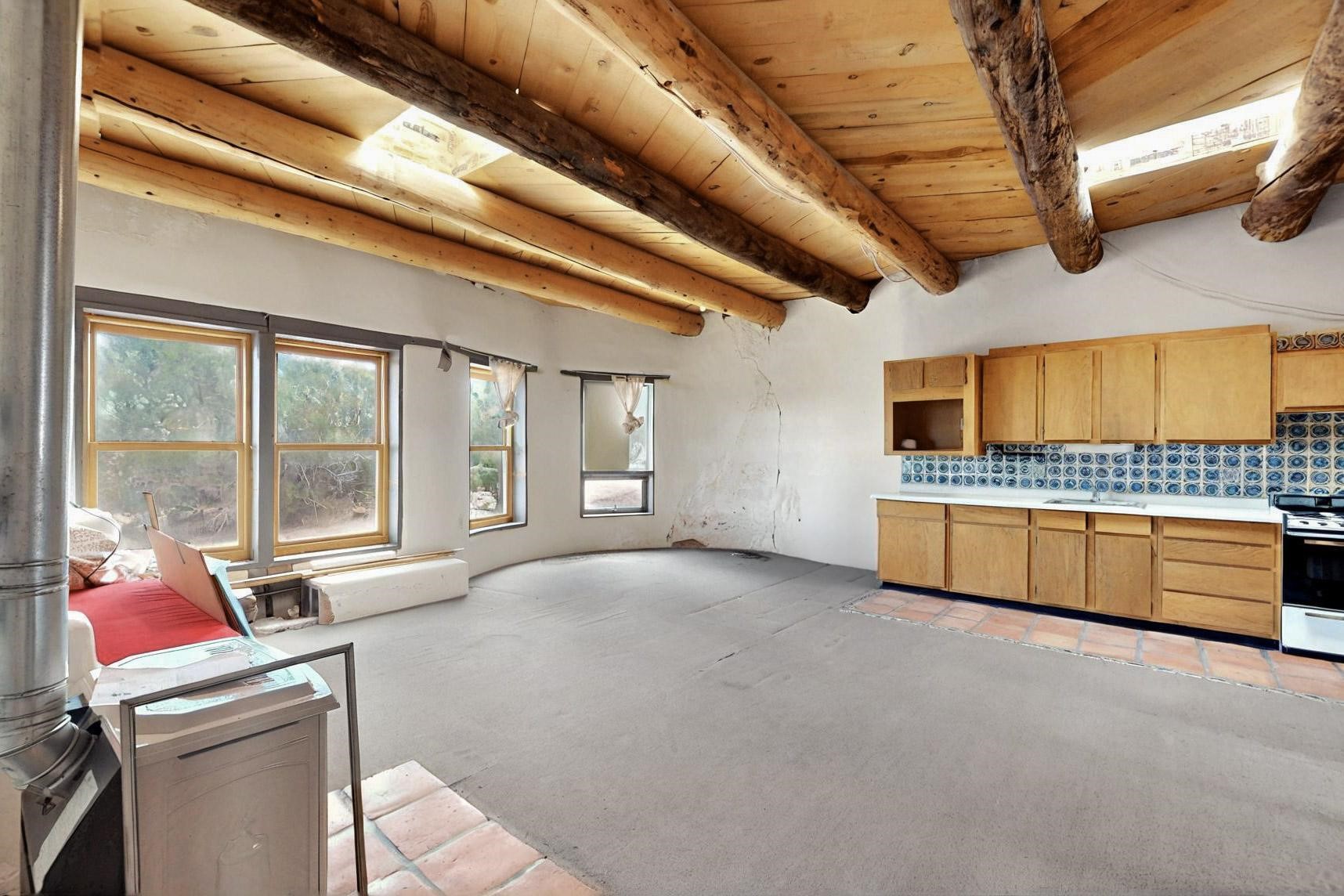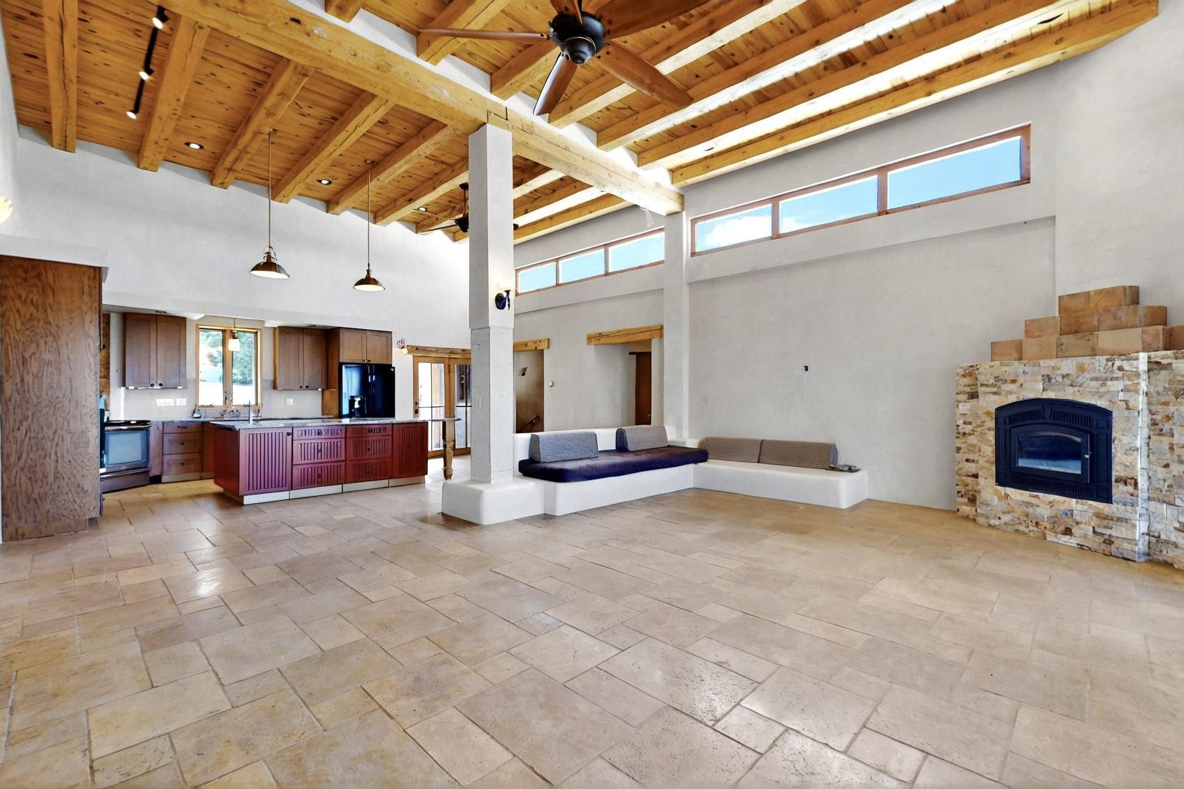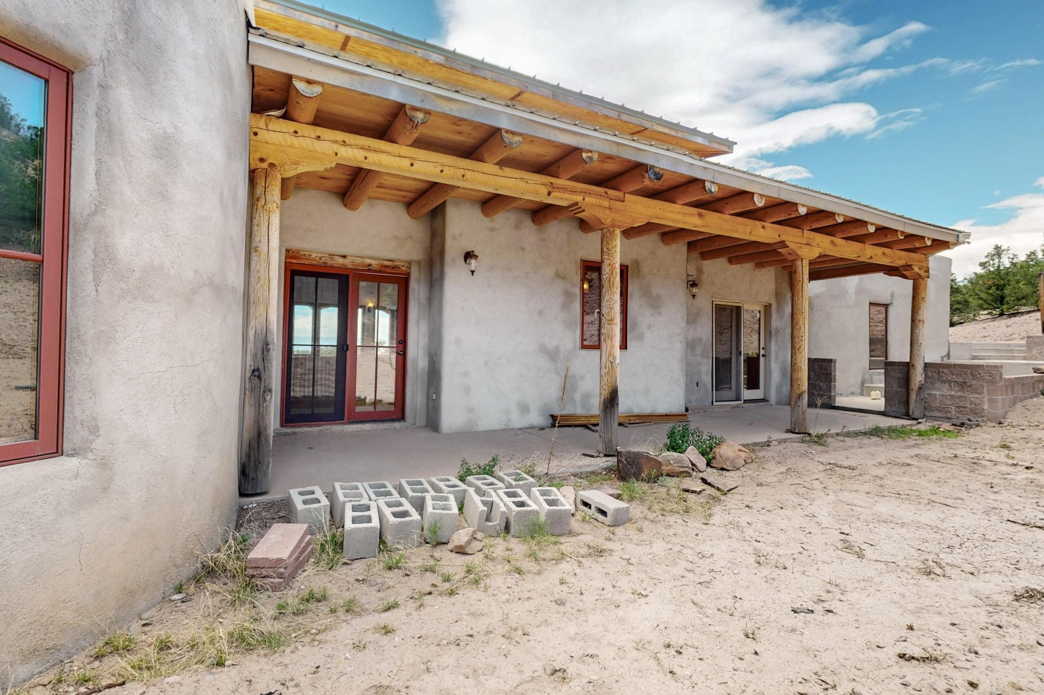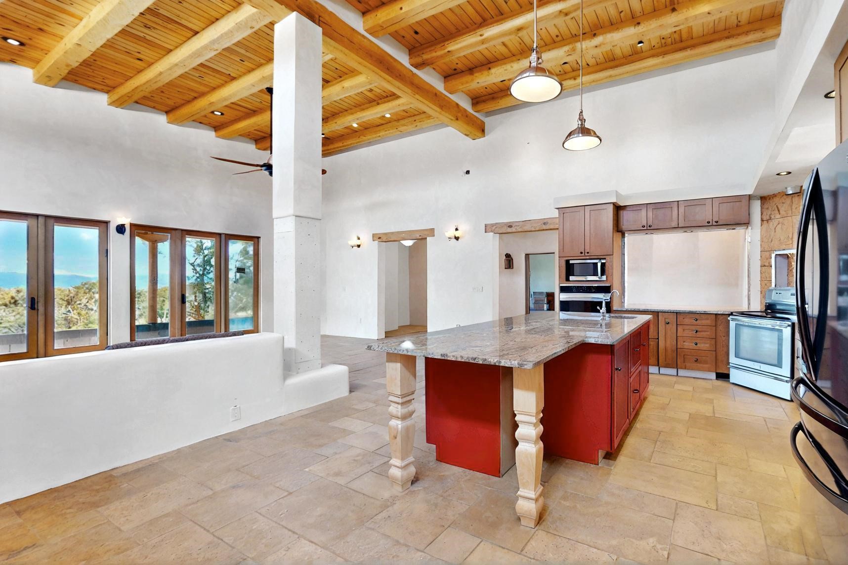 Contractors and Investors - Exceptional Opportunity. Discover endless potential at 5 Camino Sin Ganas, a unique and spacious property nestled in the peaceful and picturesque community of Tesuque. Situated on a 1.91-acre lot, this residence offers 4,522 square feet of living space--an ideal canvas for investors, contractors, or anyone looking to renovate or customize a home to their vision. The heart of the home is the expansive great room, showcasing soaring 16-foot ceilings, clerestory windows, and elegant French doors that flood the space with natural light. From here, take in stunning mountain and high-desert views, perfectly framed by the home's elevated position and carried through to the side view deck, ideal for outdoor relaxation or entertaining. Interior highlights include in-floor radiant heating, a mix of wood and tile flooring, and plastered walls throughout. Additional features include a two-car garage and a side viewing deck off both the primary suite and a secondary bedroom. This is a rare opportunity to invest in one of Tesuque's most sought-after areas. Whether you're restoring, remodeling, or reimagining, 5 Camino Sin Ganas is ready for your vision.
