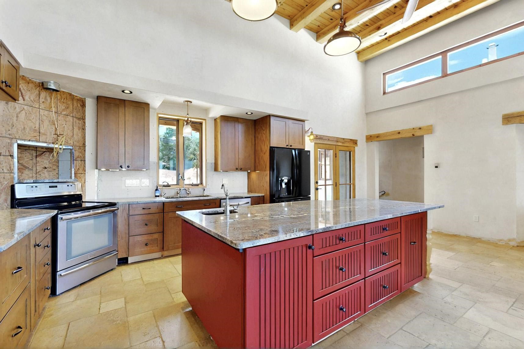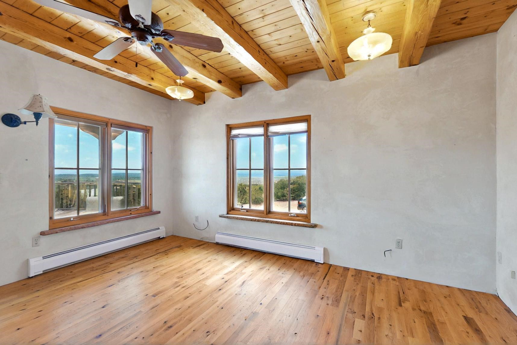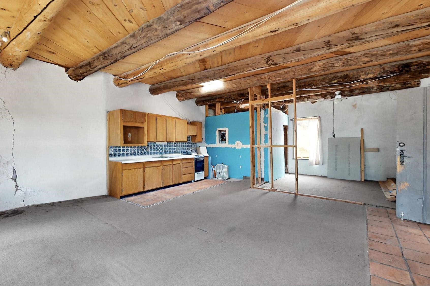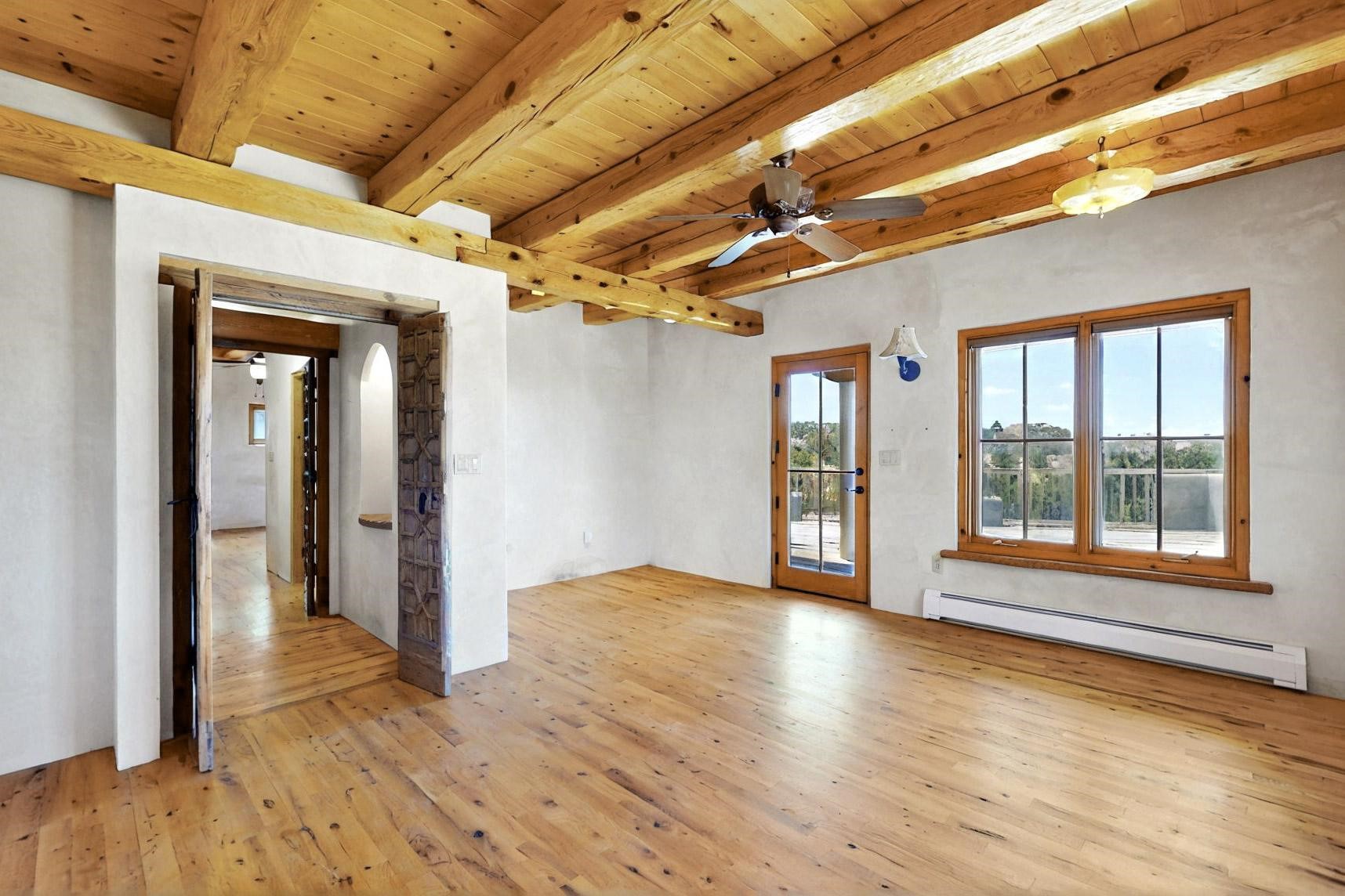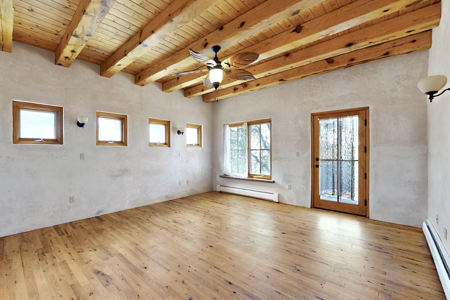 Contractors and Investors - Exceptional Opportunity. Discover endless potential at 5 Camino Sin Ganas, a unique and spacious property nestled in the peaceful and picturesque community of Tesuque. Situated on a 1.91-acre lot, this residence offers 4,522 square feet of living space--an ideal canvas for investors, contractors, or anyone looking to renovate or customize a home to their vision. The heart of the home is the expansive great room, showcasing soaring 16-foot ceilings, clerestory windows, and elegant French doors that flood the space with natural light. From here, take in stunning mountain and high-desert views, perfectly framed by the home's elevated position and carried through to the side view deck, ideal for outdoor relaxation or entertaining. Interior highlights include in-floor radiant heating, a mix of wood and tile flooring, and plastered walls throughout. Additional features include a two-car garage and a side viewing deck off both the primary suite and a secondary bedroom. This is a rare opportunity to invest in one of Tesuque's most sought-after areas. Whether you're restoring, remodeling, or reimagining, 5 Camino Sin Ganas is ready for your vision.