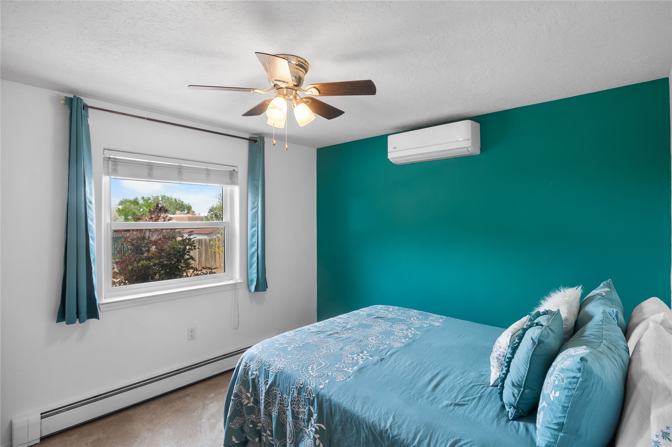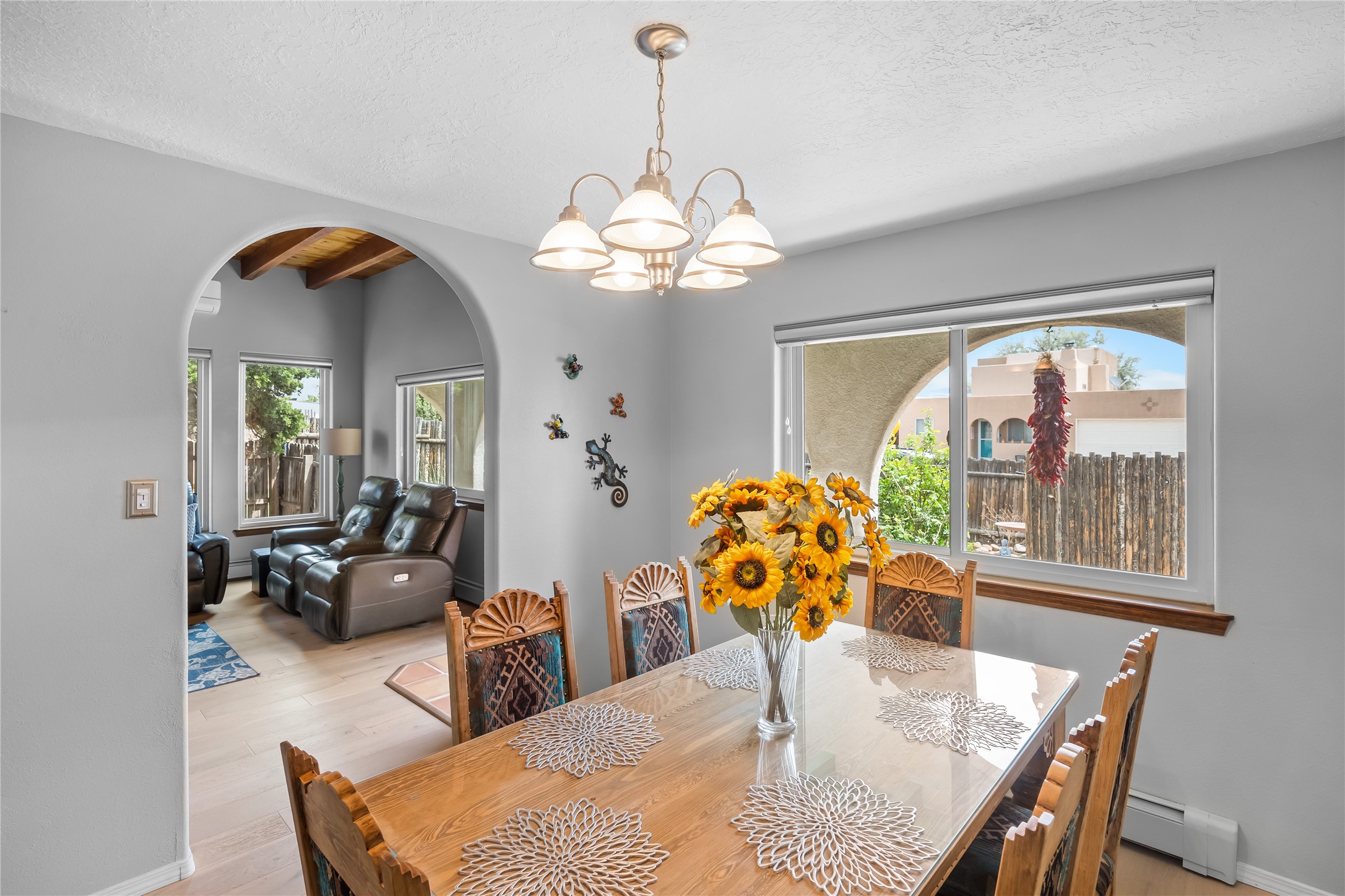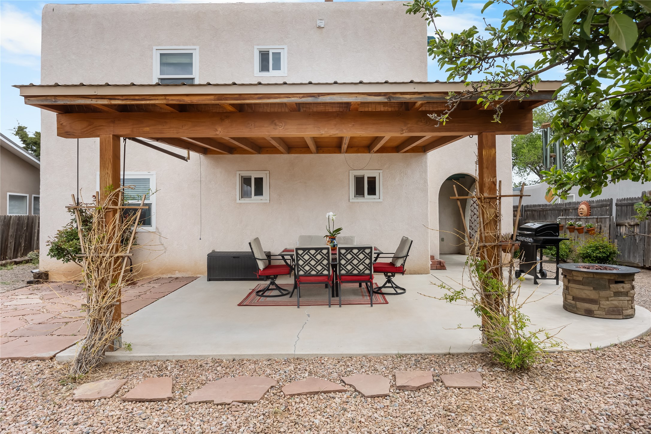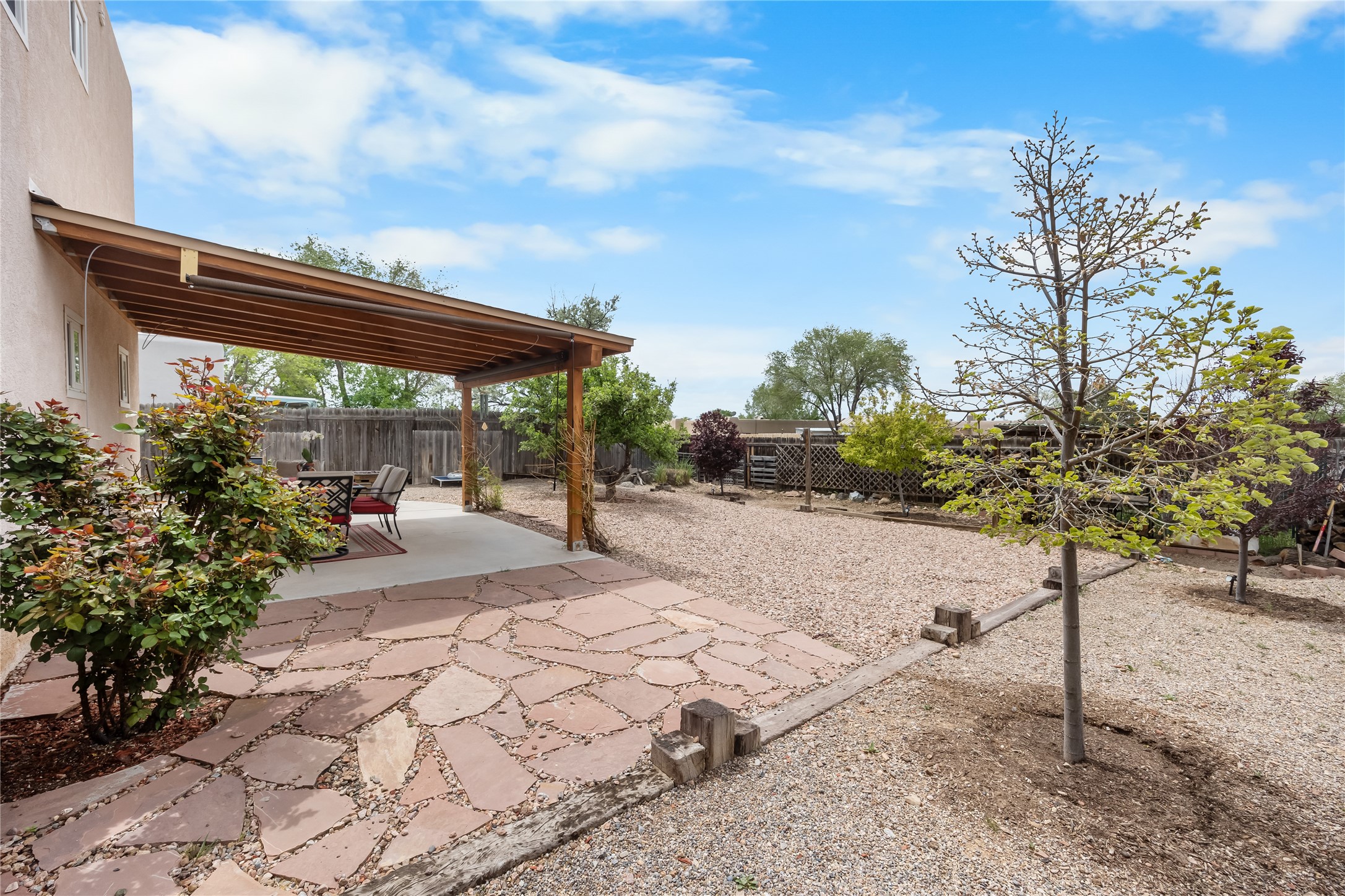 Home Sweet Home! Enter the thoughtfully landscaped, fenced, large front courtyard through a coyote fenced gate. The home's first level is graced with owner installed wooden flooring, high beamed ceilings, Anderson windows, custom blinds and has a wonderful flow from its spacious Living Room to its Dining Room, Kitchen, laundry room, hall bathroom (with Dream Style shower) and guest bedroom. A brand-new stainless dishwasher plus newer range & fridge enhance a highly functional, comfortably sized kitchen. Enjoy a welcoming, extensive rear yard which includes an owner added roomy portal, great for entertaining, plus a variety of mature fruit trees & lots of space for pets to roam. The second level features the primary bedroom with a deck and Dream Style shower, as well as a second guest bedroom. Rest cool and easy with the addition of 4 mini-splits and a well-maintained roof over your head, in this well maintained property in an established, friendly neighborhood.