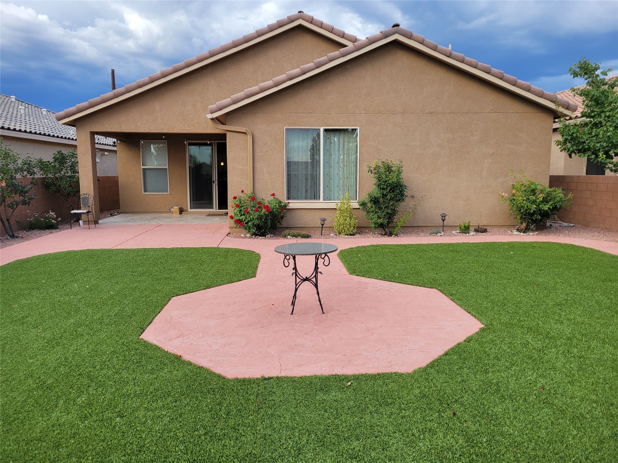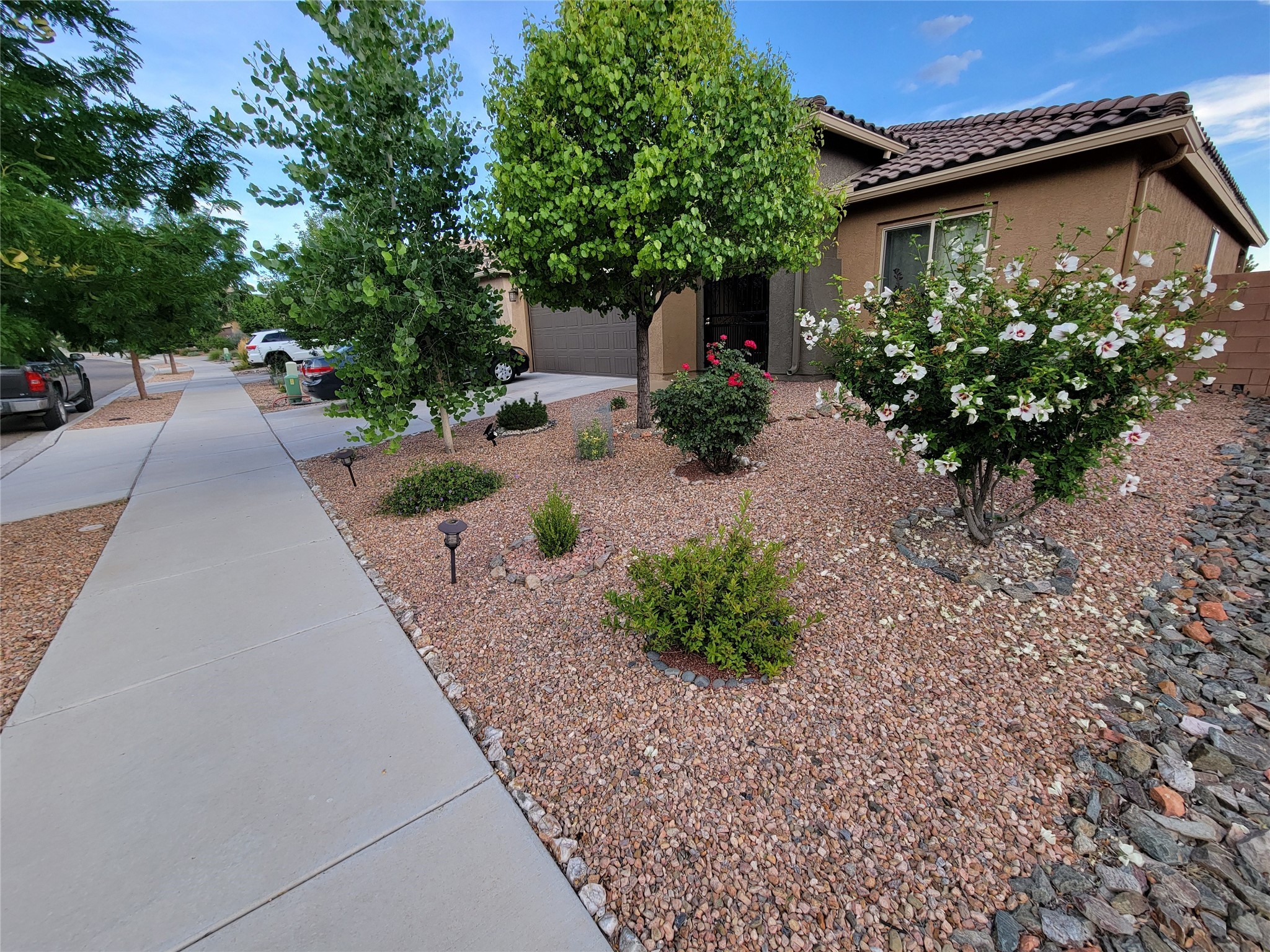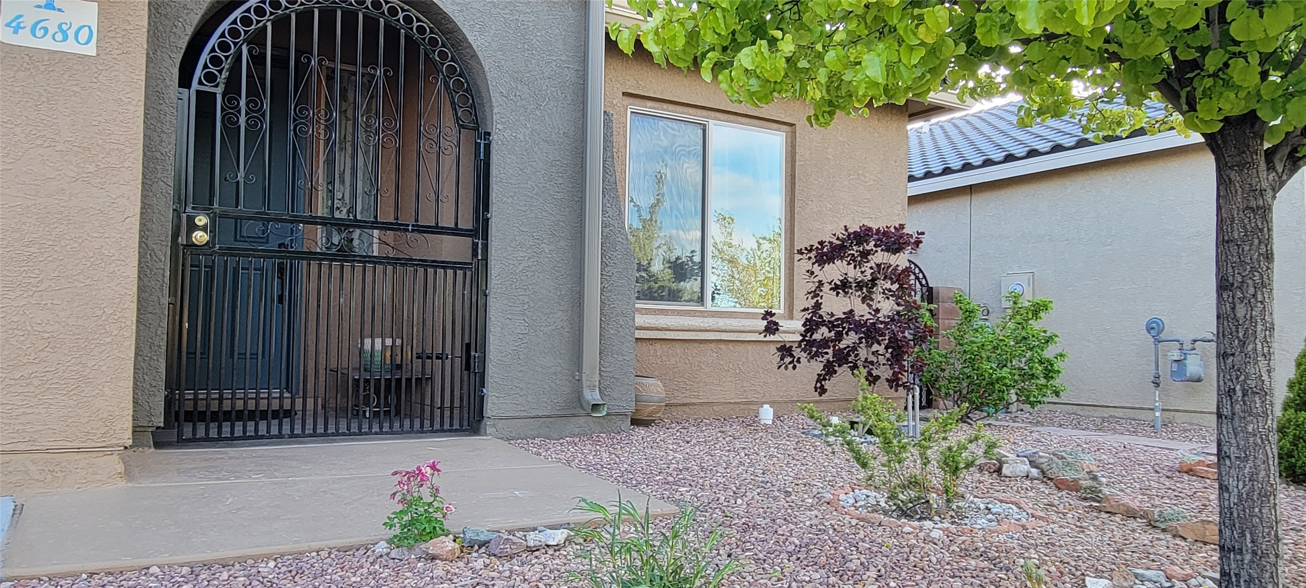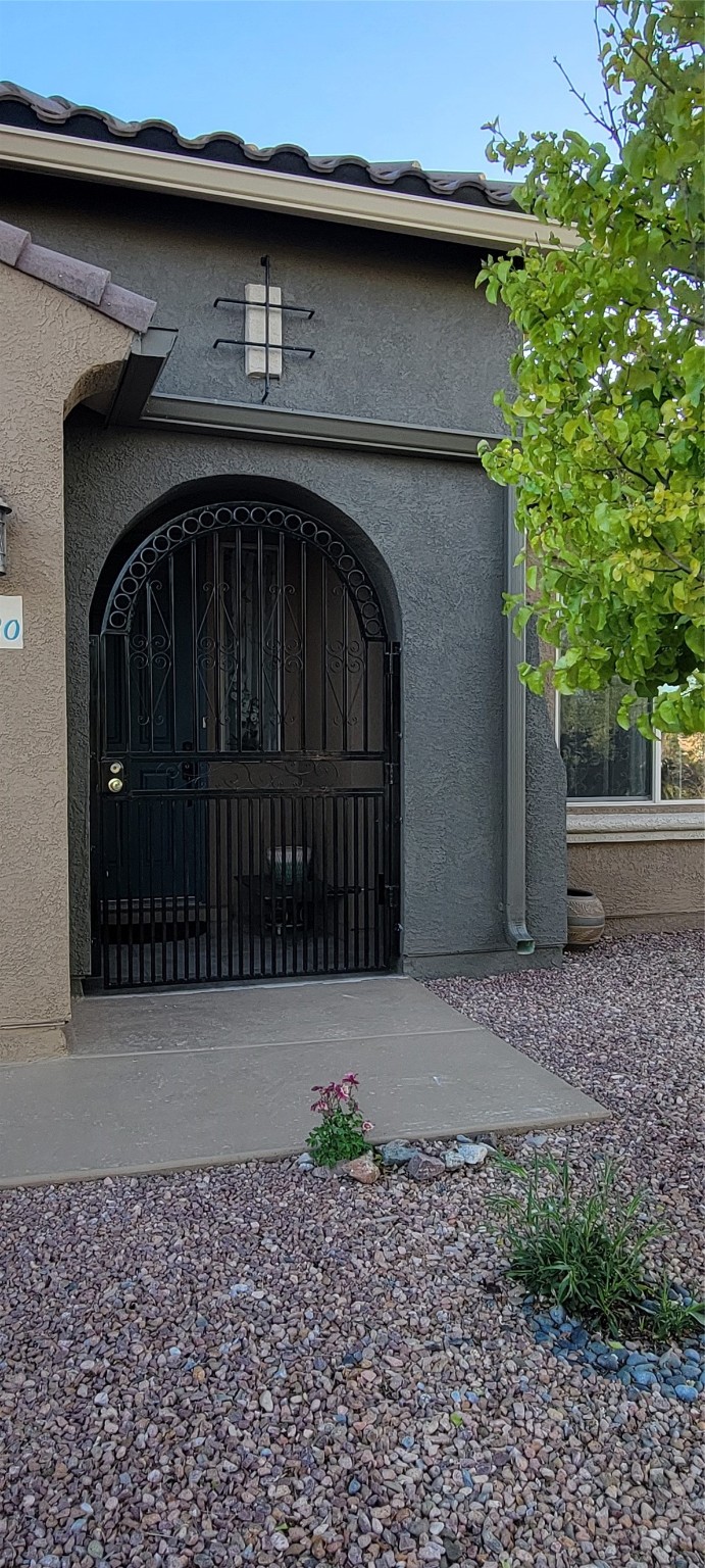 Do Not Miss this Newly Repriced Vistas De Las Soleras Gem located on a Gorgeous Tree-Lined Quiet and Serene Street. This Absolutely Beautiful and Immaculately maintained 2150 Square Foot Home features the Popular Single-Level Manzanita Floorplan and includes the Optional the Fourth Bedroom for increased Space and Flexibility. Your Exceptional Living Experience starts with The Custom Gated and Tiled Entry and Continues with Numerous Upgrades both Inside and Out that are Showcased "Everywhere You Look". The Gourmet Kitchen is Accented by the Tasteful and Dramatic Granite Countertops, a Newly Upgraded "Country Kitchen" Sink and Modern Faucet, Nice Stainless Steel Appliances and features a Huge Breakfast Bar offering Very Ample Space and Seating. There is True Open Concept Living as this Flows Seamlessly into The Generous Dining Area and Great Room offering a Fantastic Place for Relaxation and Entertaining with a Charming Gas Fireplace for Warmth and Atmosphere. As Many Buyers prefer, there is only Tile and Wood Flooring throughout the Home for Beauty, Ease of Care and Cleanliness. The Nice-Sized Master Suite looks out to the exquisitely Landscaped Backyard and the three Guest Rooms, Guest Bath, Front Office/Study and Laundry Room plus a fully Finished Two-Car Garage complete this Spacious and Turn Key Property Ready for Easy-Living! The Eye Pleasing Plantings throughout the Grounds were Each Chosen Specially for their Beauty and Uniqueness and there is an Irrigation System with Timer for Easy Maintenance. The Tranquil Backyard is an Oasis for Entertaining and Relaxation and is the Perfect Spot to Take In the Amazing Santa Fe Sunsets. If You are Looking for that Very Special Home Expressing Pride of Ownership and Created with Loving and Impeccable Care, This is Your Choice!!