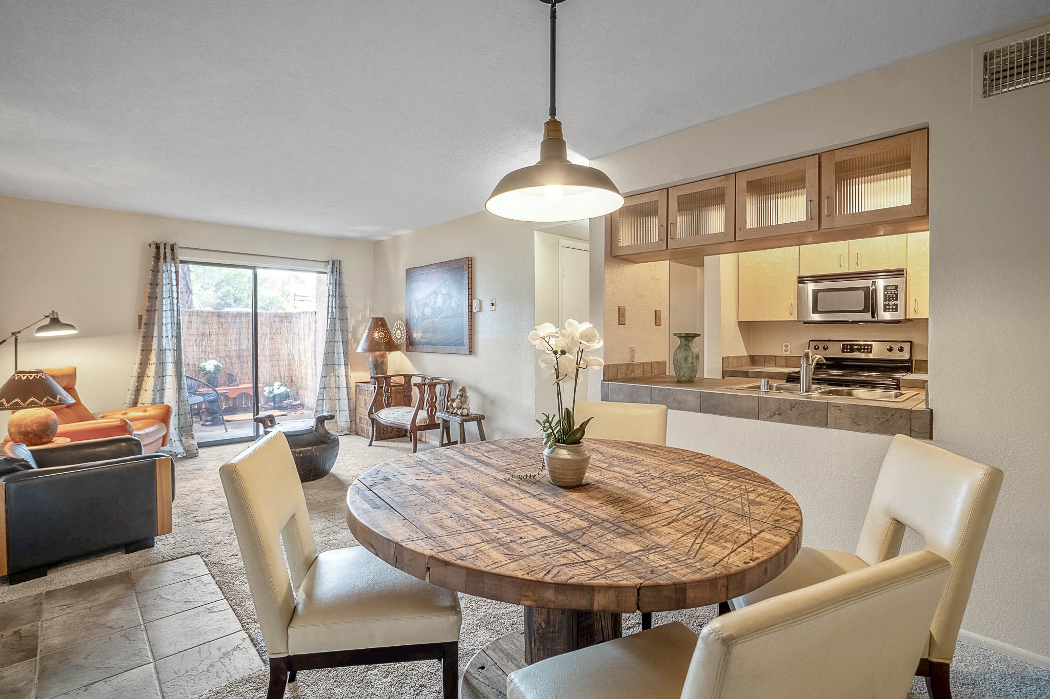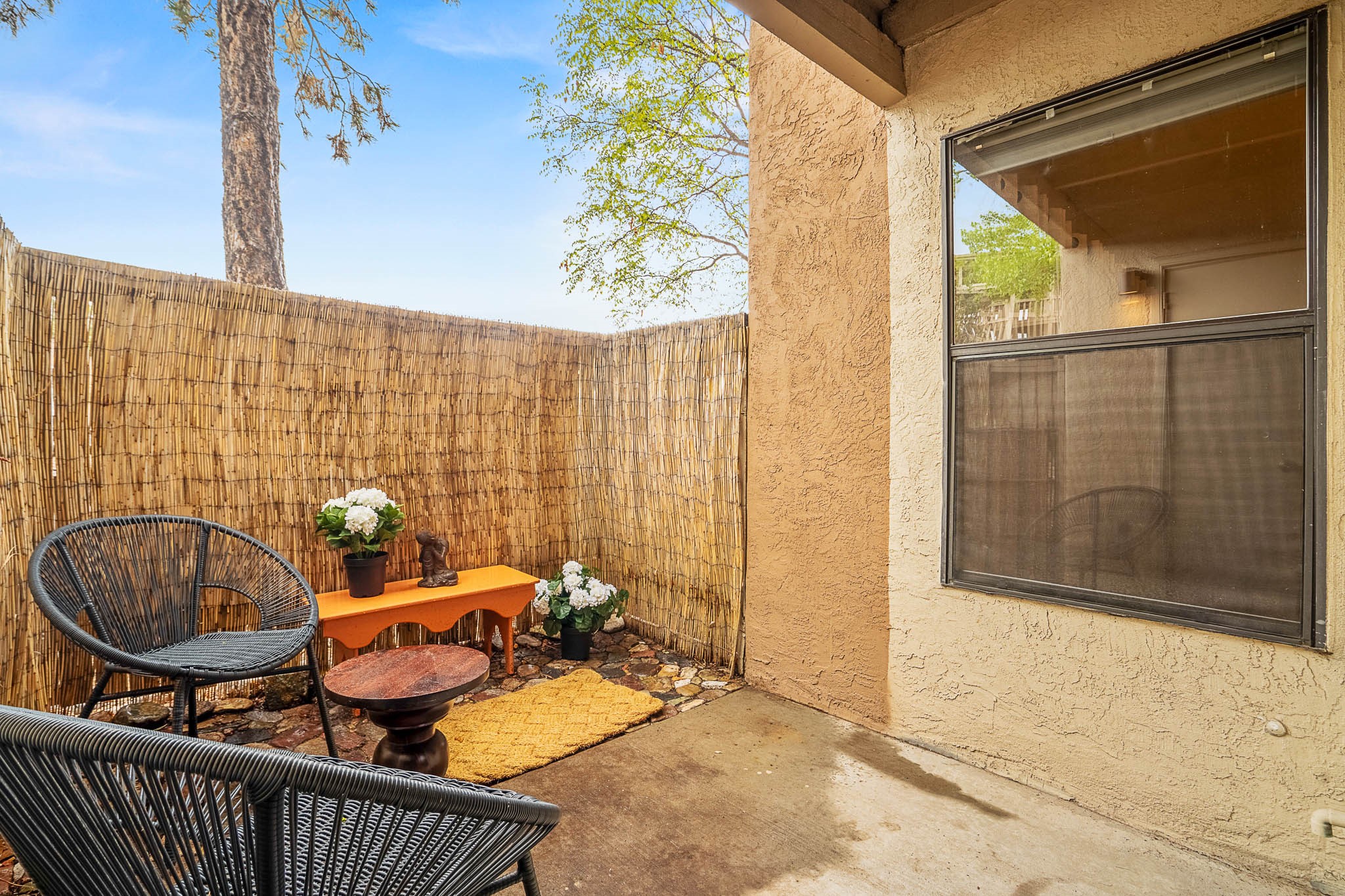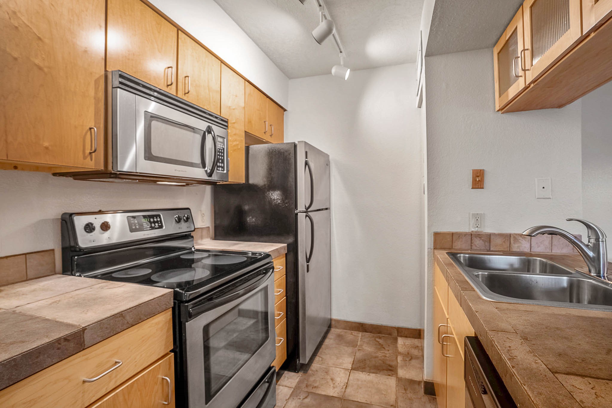 Charming, Ground-Level One-Bedroom Condo. This beautifully maintained ground-level condo offers the perfect blend of privacy and convenience. With no stairs to navigate and parking just steps from the front door, daily living is a breeze. Inside, you'll find soft grey carpeting and attractive tile countertops in both the kitchen and bathroom. Nestled in a quiet, tucked-away spot within a gated community, this unit enjoys serene views of treetops and open skies--without any neighboring buildings in sight. The private patio is a peaceful retreat, complete with blooming potted flowers and a cozy bistro set--ideal for enjoying your morning coffee or relaxing with a glass of wine in the early evening. When you're ready to head out and enjoy the perks of community living, The Reserve has you covered! Take a dip in the sparkling outdoor pool, unwind in the relaxing spa, or get your heart pumping in the fabulous fitness center. There's also a convenient laundry facility and scenic walking trails just steps from your door. Comfortable, quiet, and move-in ready--this condo feels like home the moment you walk in!