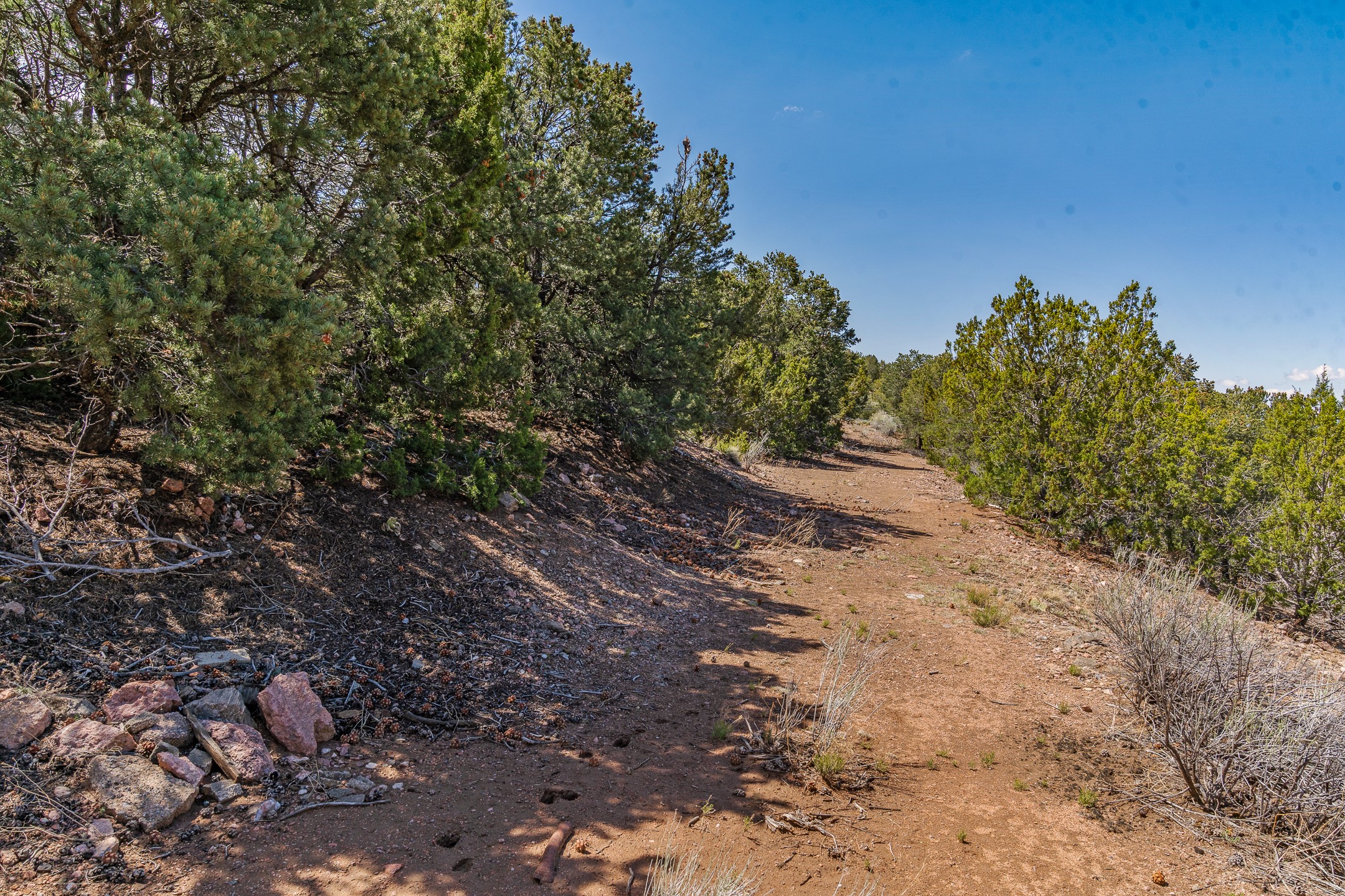 Fantastic development opportunity in the exclusive and conveniently located Canada Ancha Subdivision. With excellent views to the Sandia, Ortiz and Jemez Mountains, this lot has a relatively flat buildable area and gas, electric/transformer, sewer, city water/sewer all on site for added value and development ease. The Seller is also offering a nearly complete, excellent set of plans for a 2900 +/- sq/ft house created by notable local architect Sophia Marquez. The property has direct access to the abundant Dale Ball Trail System with super convenient access to Santa Fe National Forest and Santa Fe Ski Basin yet only a few minutes drive to Downtown Santa Fe.