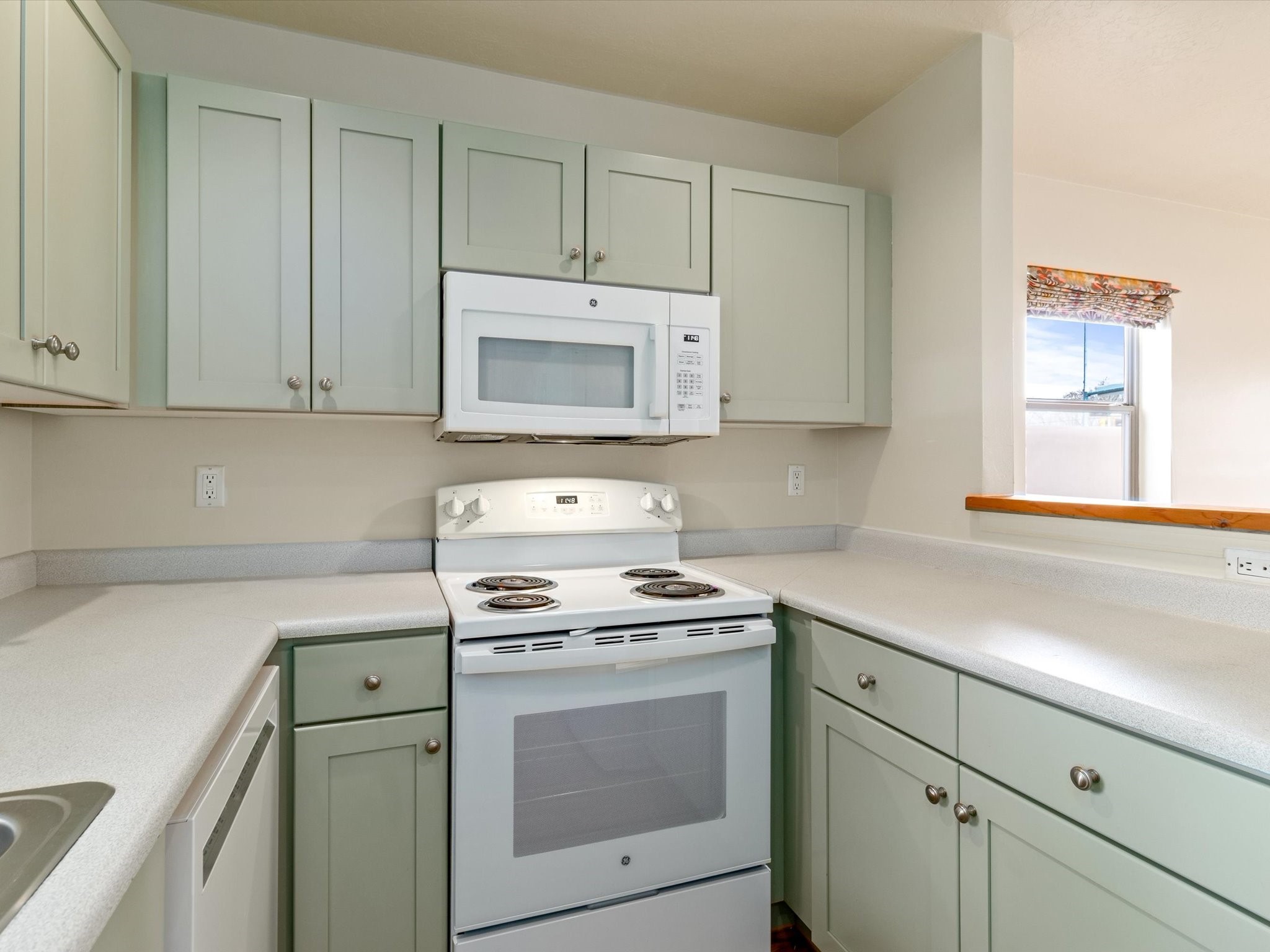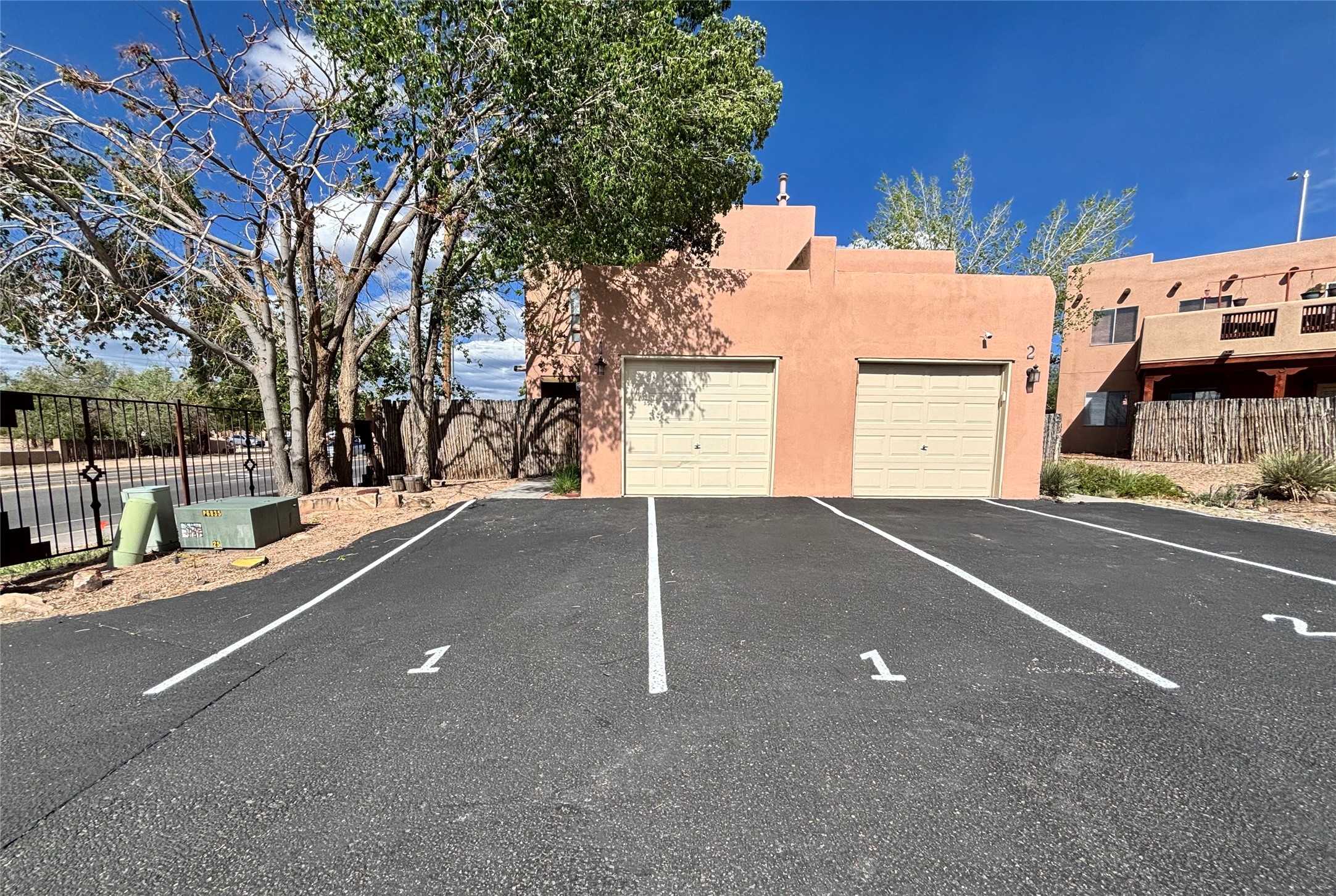 Welcome home! Located in the gated community of Plaza Encantada, this lovely two-bedroom, two-bathroom home is move-in-ready! The living/dining/kitchen is open and airy; the natural light is abundant throughout the unit. New paint, new flooring, new kitchen appliances, new stucco, roof maintained in 2023, refurbished kitchen cabinets, updated bathrooms, and newer water heater. There is one garage space and two dedicated parking places per condo, plus guest parking in the main parking lot. Enjoy the outdoors on the gated, beautifully landscaped patio. The Condo Association maintains stucco, roof, and gate. Conveniently located near all your big box stores, grocery stores, restaurants, and hospitals, and easy access to I-25 and 599 Santa Fe's North and South Routes. HOA dues paid through the end of 2025! Take advantage of this great opportunity!