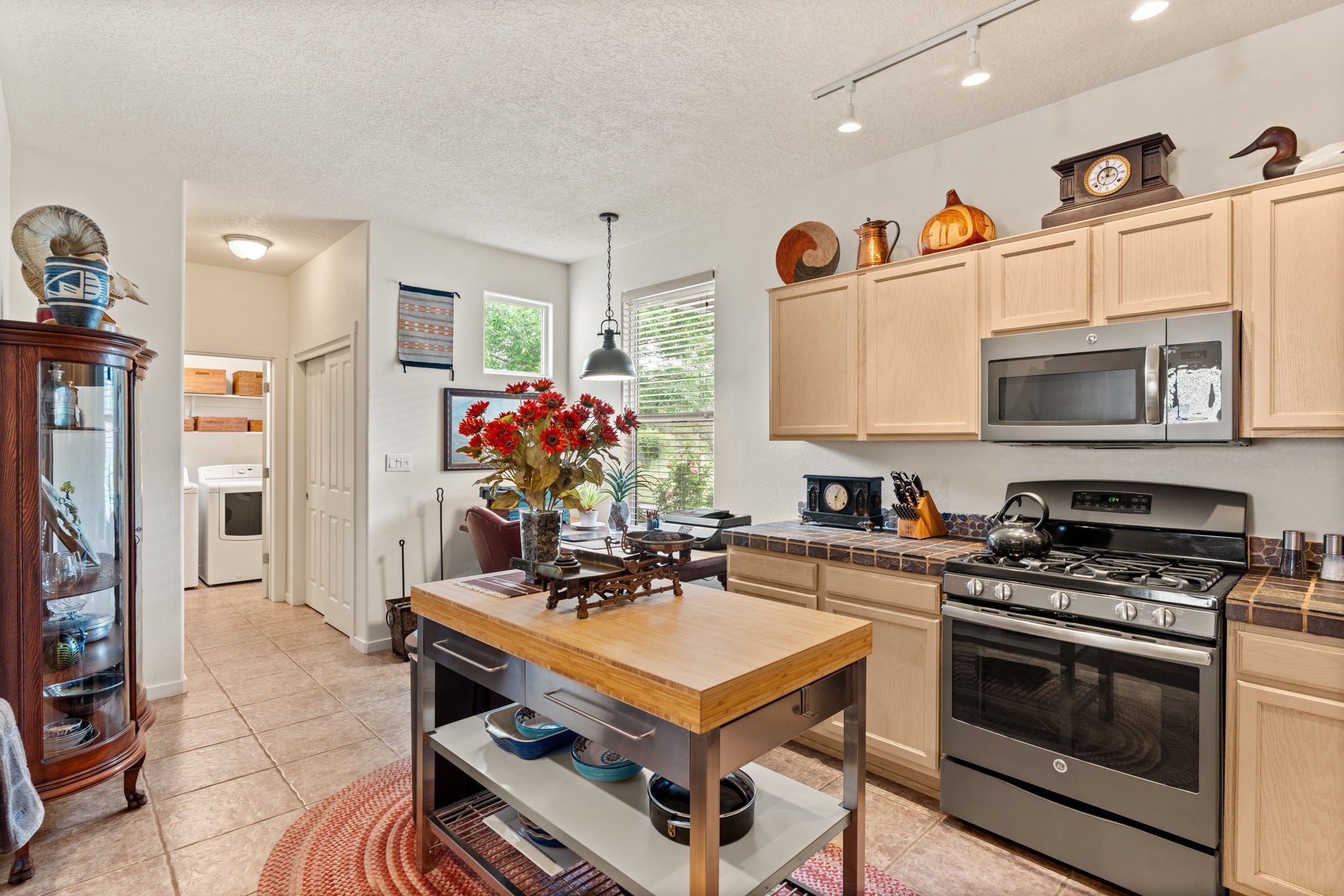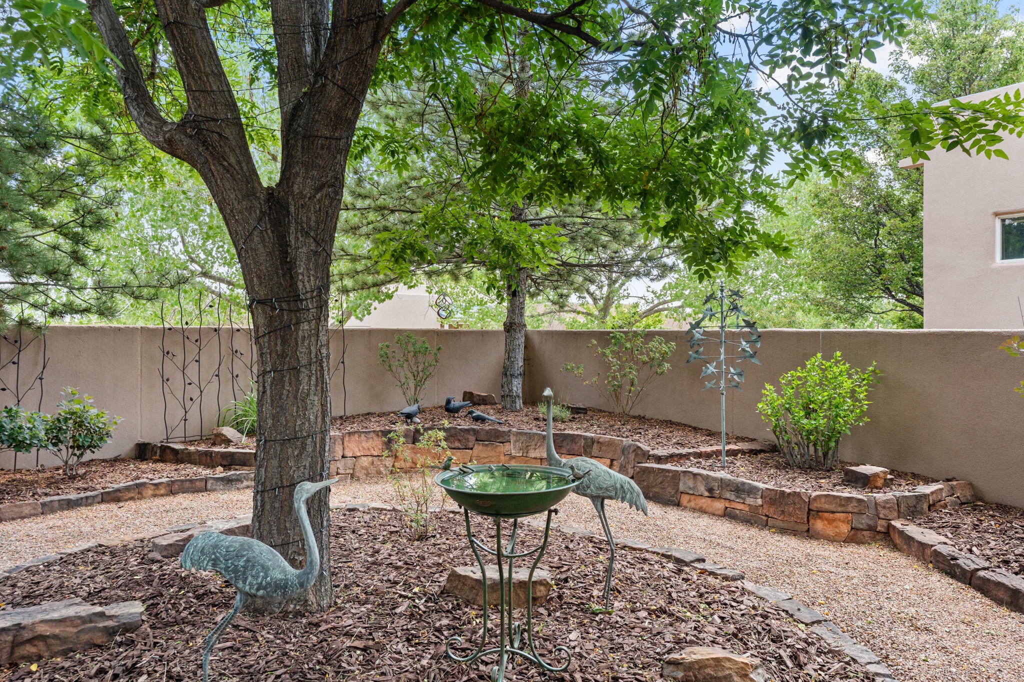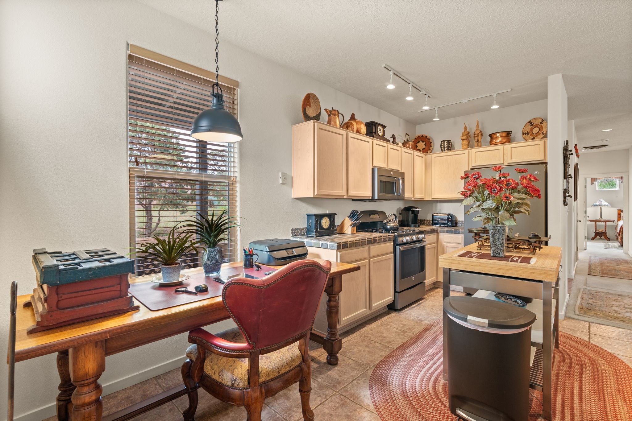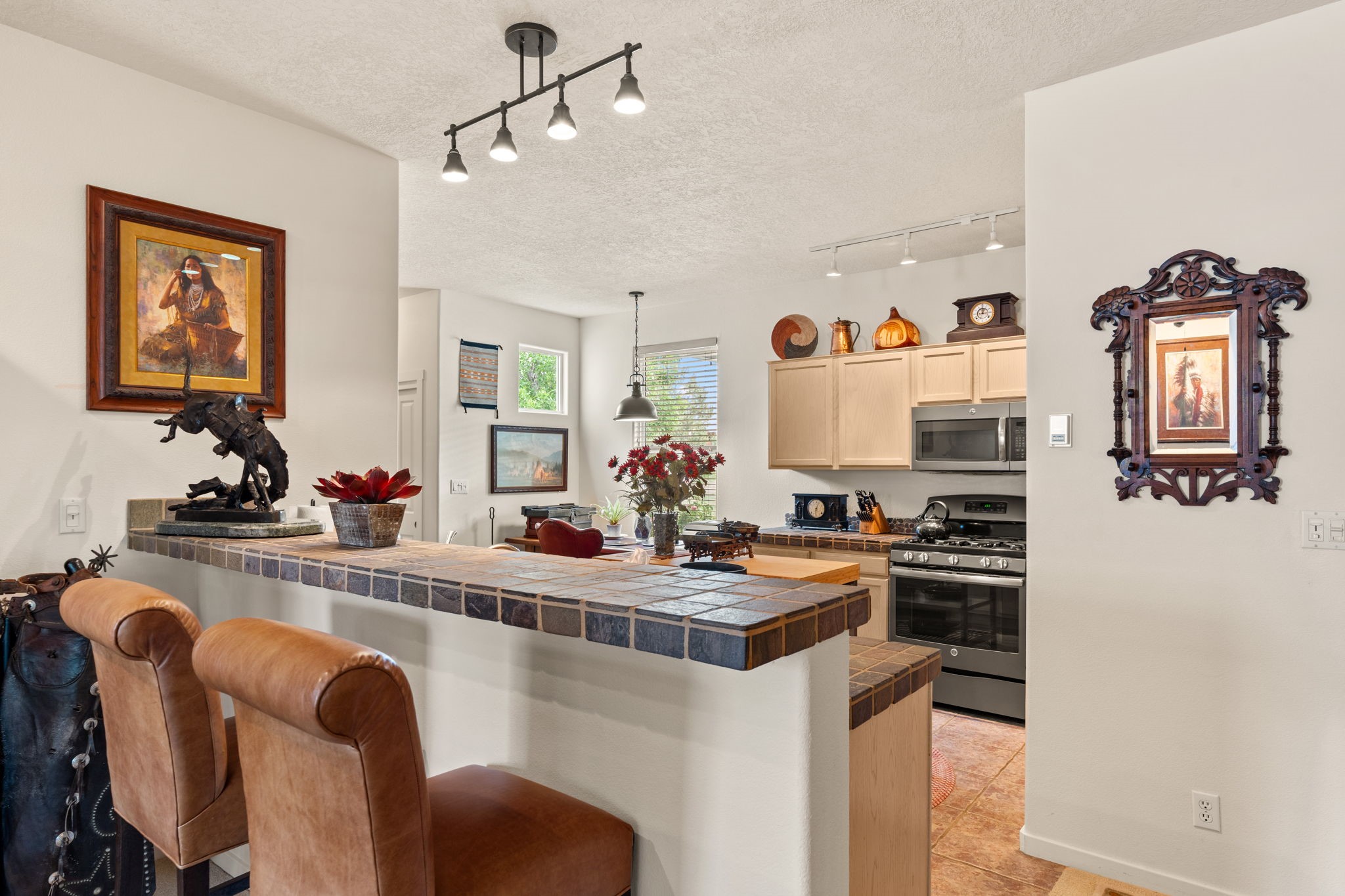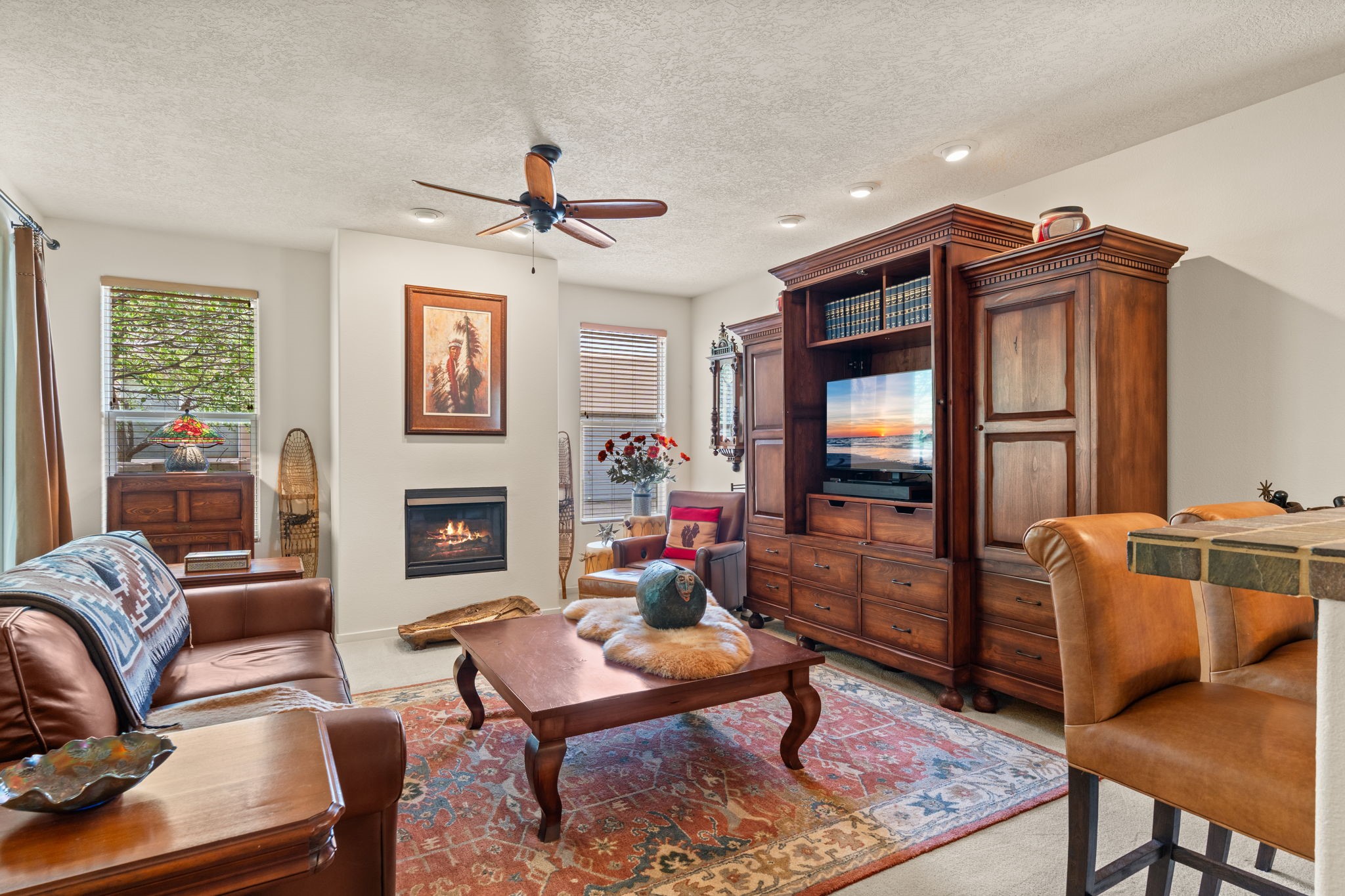 Nestled in the serene beauty of Rancho Viejo, this pristine 2-bedroom, 2-bath home is a rare find--graced with lush grassy promenades on two sides, offering both privacy and charm. The welcoming covered front portal overlooks the tranquil south promenade, a perfect spot to enjoy morning coffee or evening breezes.Step inside to a tiled entryway that opens into a bright and airy living room, featuring high ceilings, a cozy gas fireplace, and a large sliding glass door that leads to a covered rear portal--ideal for al fresco dining or relaxing with friends. The fenced backyard is a private sanctuary, meticulously landscaped and designed for peace and quiet.The thoughtfully appointed kitchen boasts tiled countertops, newer slate appliances, abundant cabinetry, and ample counter space, complemented by a generous pantry for all your culinary needs.The front bedroom enjoys views of the green south promenade, while the primary suite offers a quiet retreat overlooking the beautifully manicured backyard. On the west side, a circular brick patio opens to the expansive west promenade, a serene and spacious setting perfect for unwinding or entertaining.This home radiates a sense of care and tranquility throughout--immaculately maintained and move-in ready. With its exceptional setting and timeless appeal, this Rancho Viejo treasure won't last long. Don't miss the opportunity to make it yours!