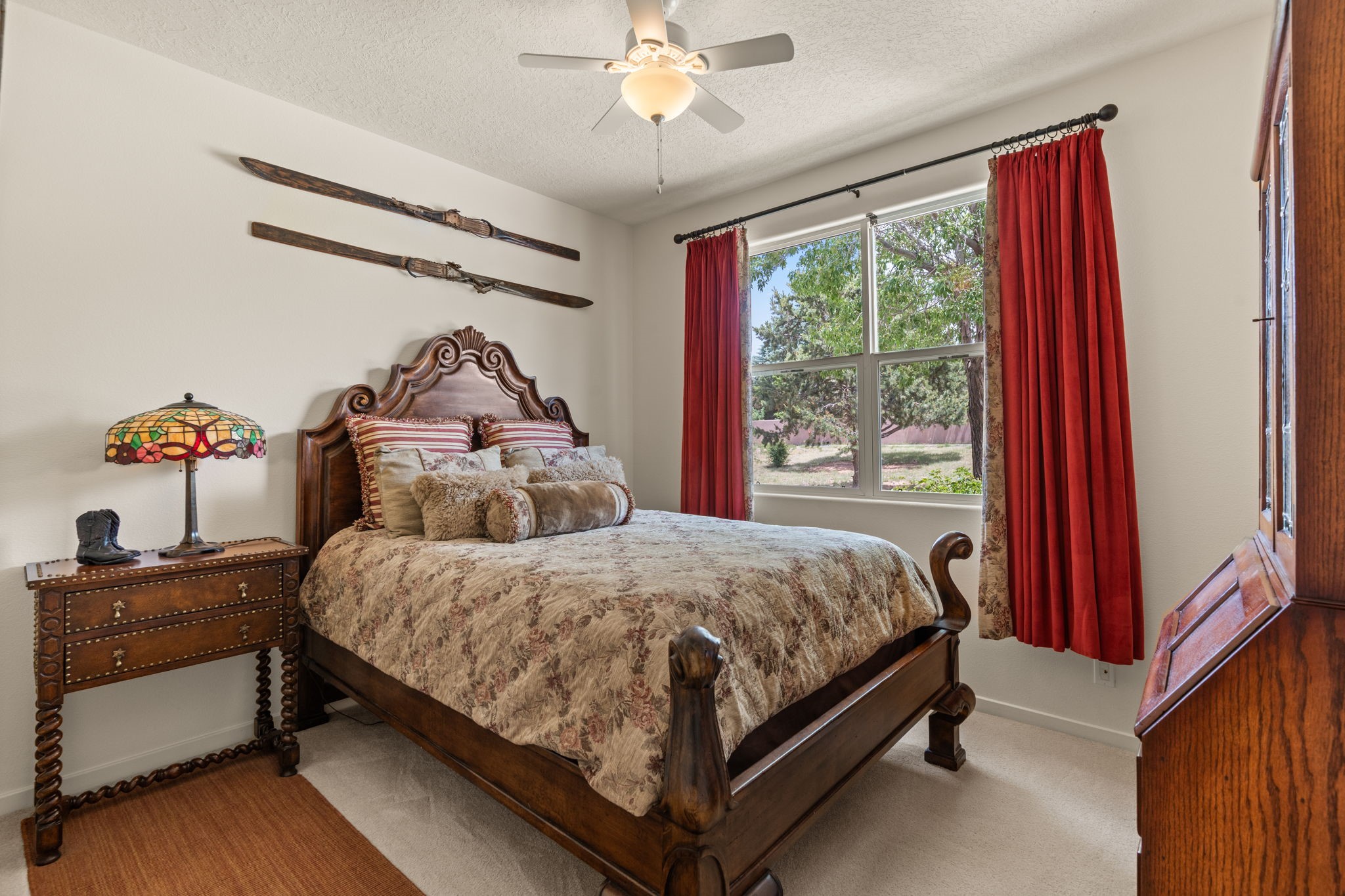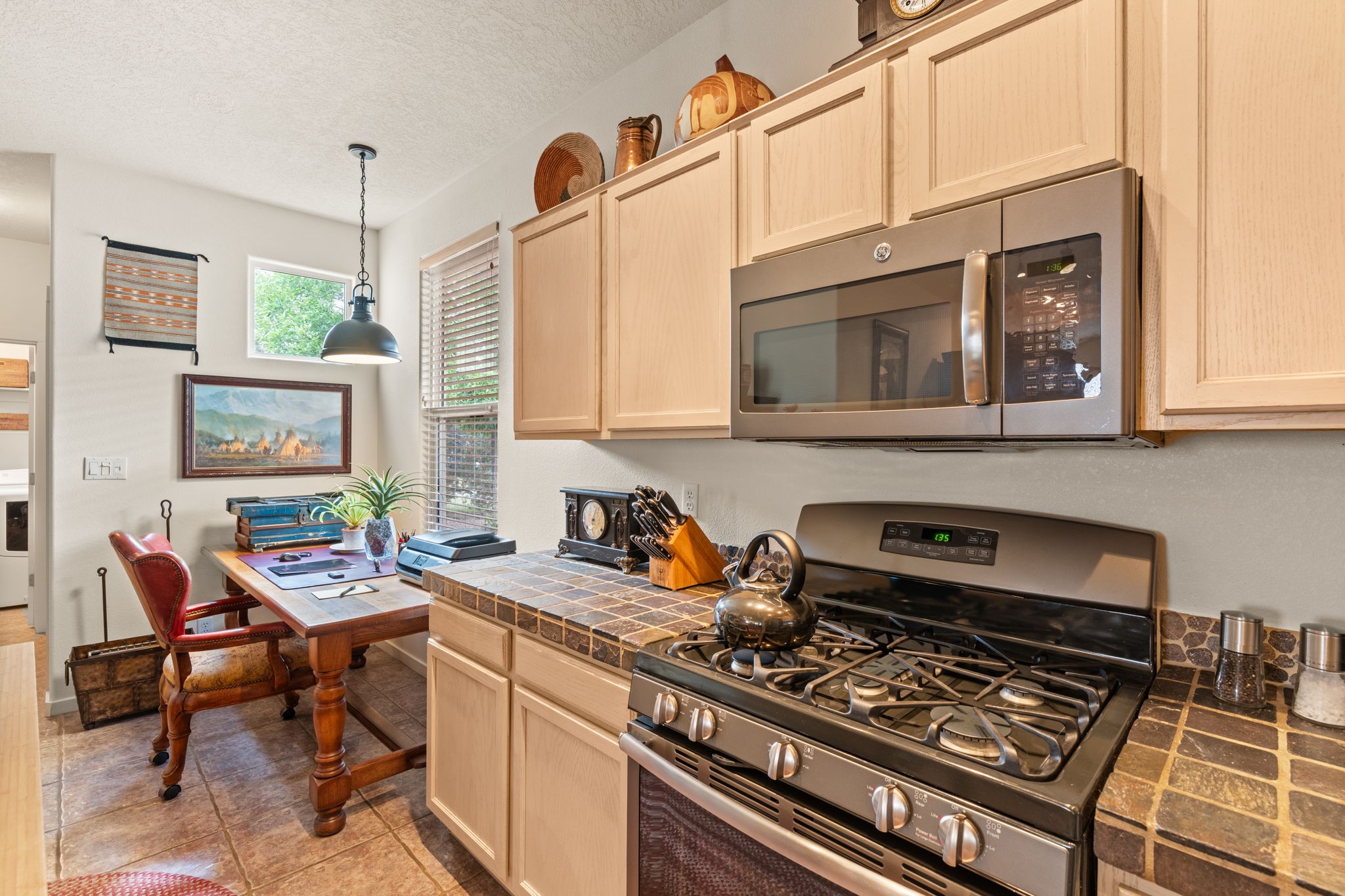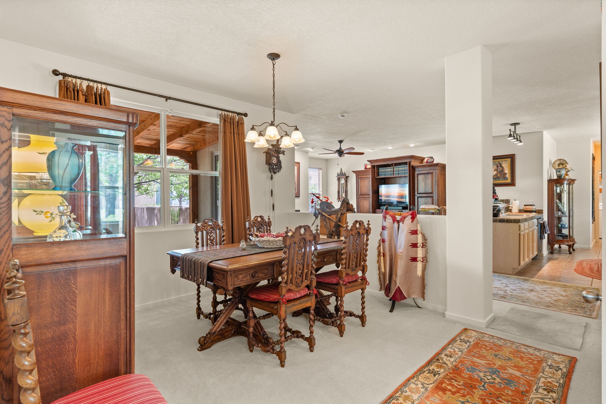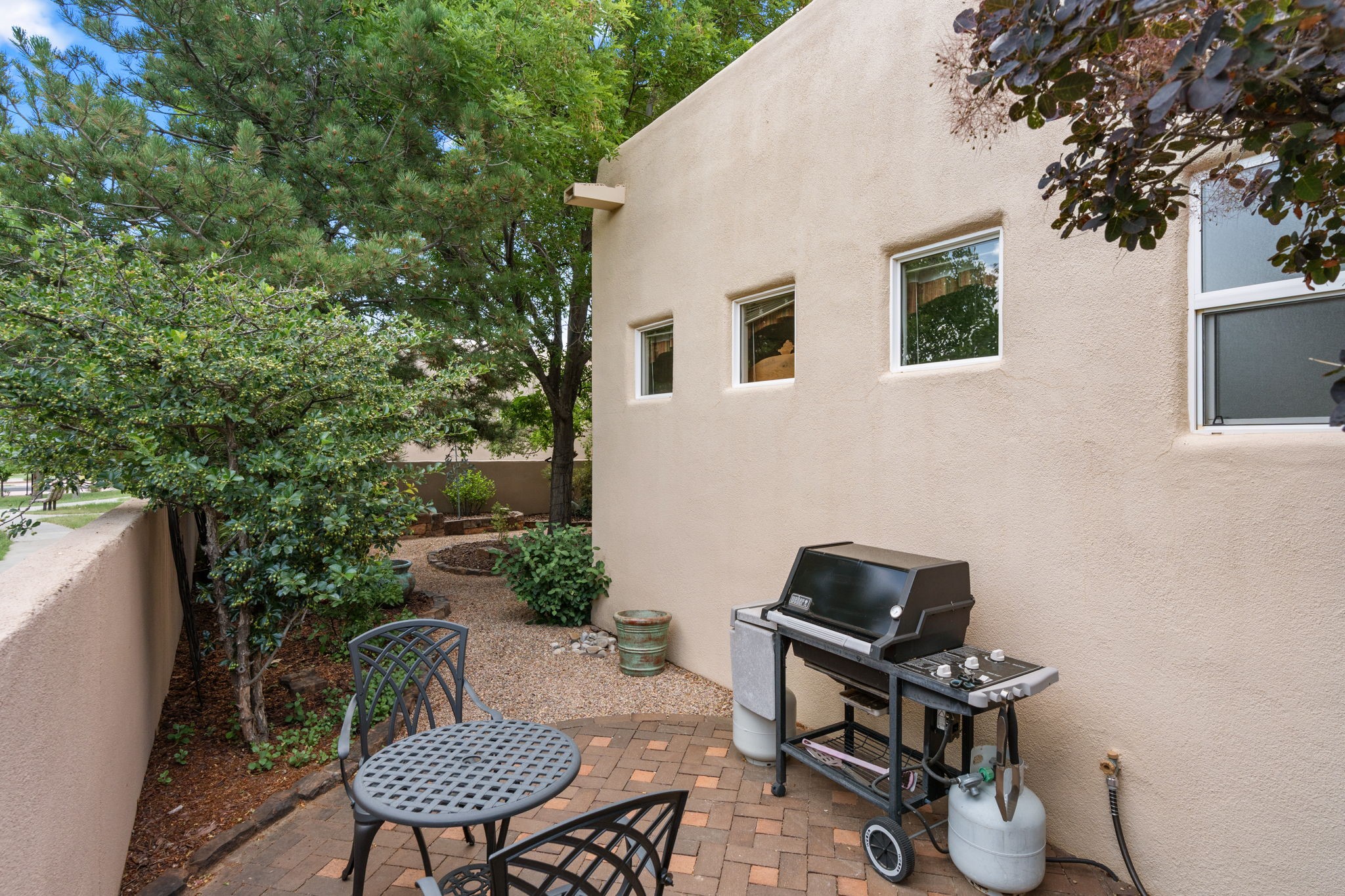 Nestled in the serene beauty of Rancho Viejo, this pristine 2-bedroom, 2-bath home is a rare find--graced with lush grassy promenades on two sides, offering both privacy and charm. The welcoming covered front portal overlooks the tranquil south promenade, a perfect spot to enjoy morning coffee or evening breezes.Step inside to a tiled entryway that opens into a bright and airy living room, featuring high ceilings, a cozy gas fireplace, and a large sliding glass door that leads to a covered rear portal--ideal for al fresco dining or relaxing with friends. The fenced backyard is a private sanctuary, meticulously landscaped and designed for peace and quiet.The thoughtfully appointed kitchen boasts tiled countertops, newer slate appliances, abundant cabinetry, and ample counter space, complemented by a generous pantry for all your culinary needs.The front bedroom enjoys views of the green south promenade, while the primary suite offers a quiet retreat overlooking the beautifully manicured backyard. On the west side, a circular brick patio opens to the expansive west promenade, a serene and spacious setting perfect for unwinding or entertaining.This home radiates a sense of care and tranquility throughout--immaculately maintained and move-in ready. With its exceptional setting and timeless appeal, this Rancho Viejo treasure won't last long. Don't miss the opportunity to make it yours!