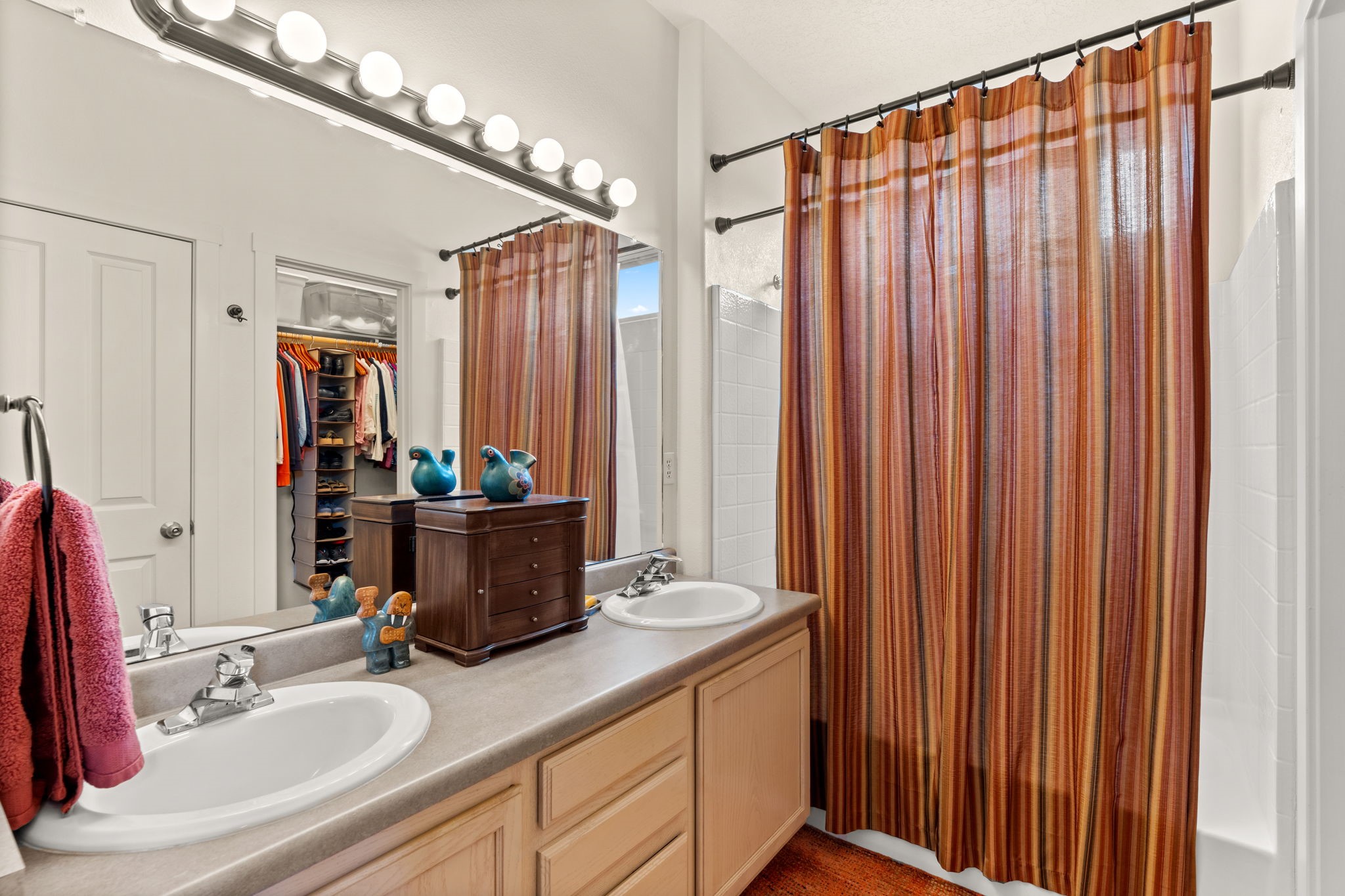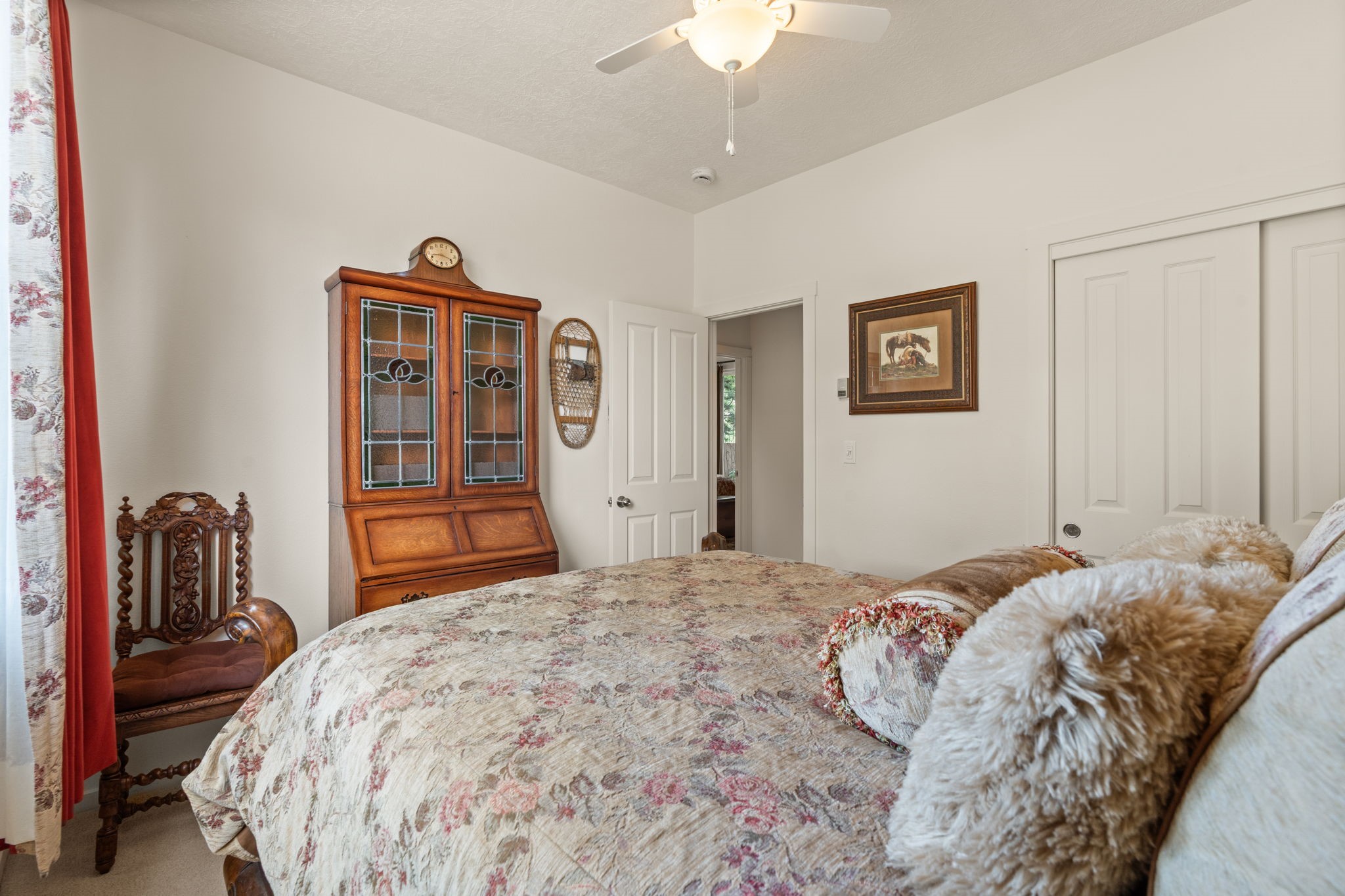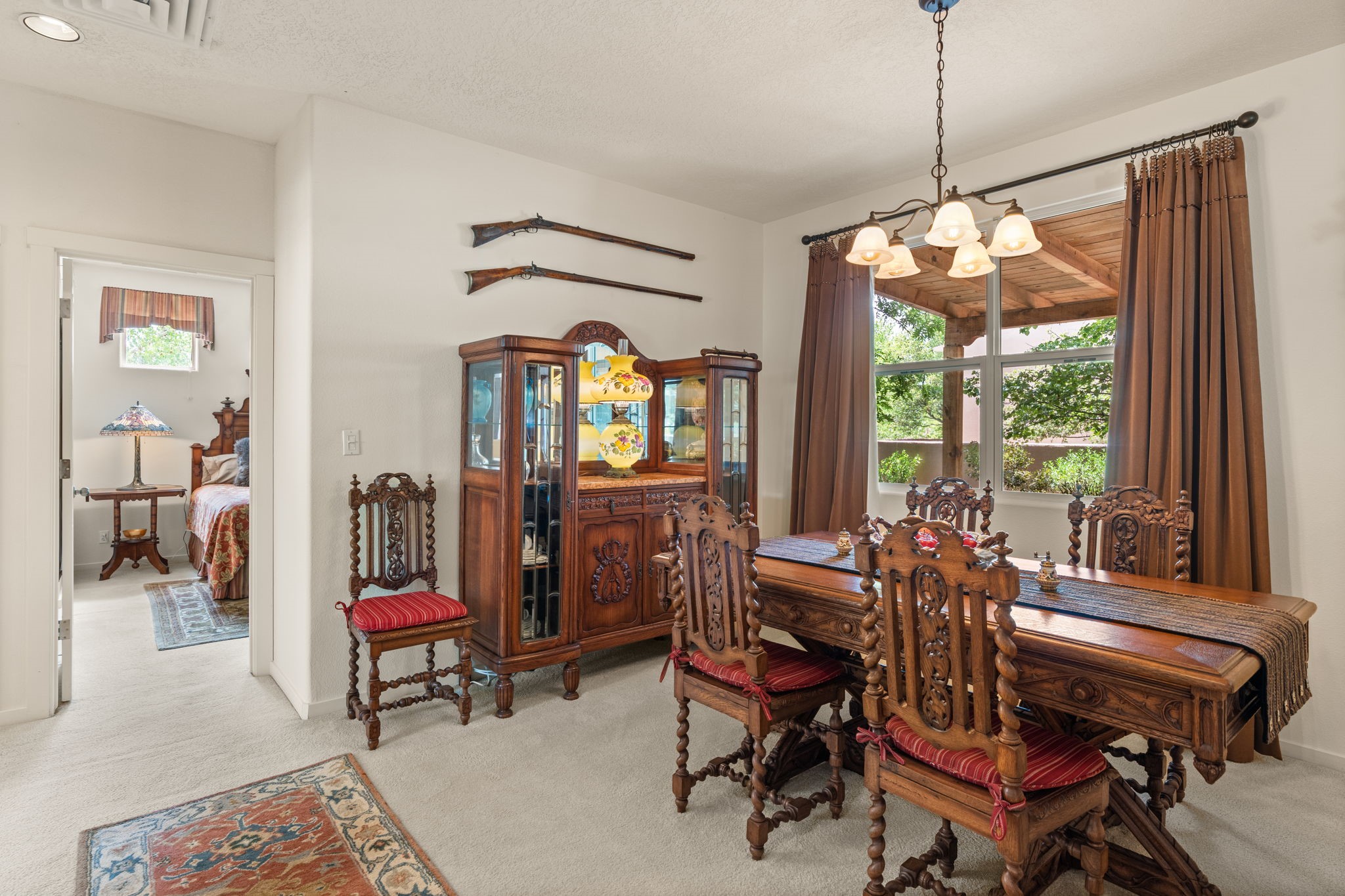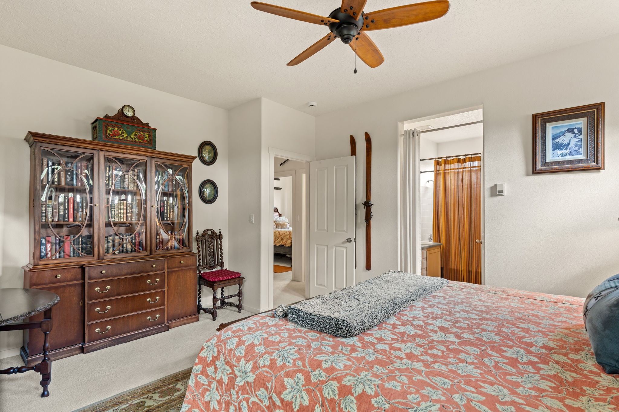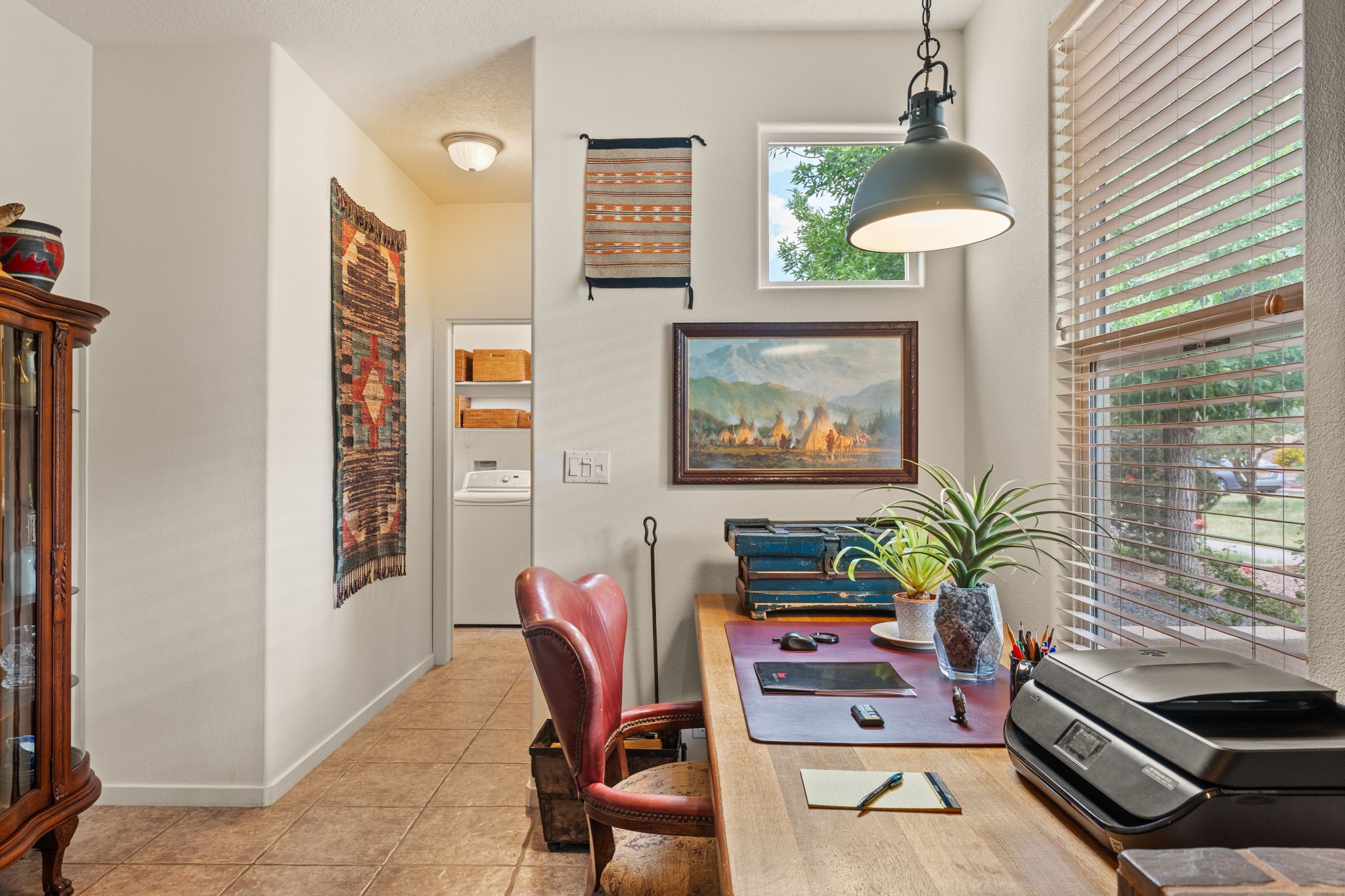 Nestled in the serene beauty of Rancho Viejo, this pristine 2-bedroom, 2-bath home is a rare find--graced with lush grassy promenades on two sides, offering both privacy and charm. The welcoming covered front portal overlooks the tranquil south promenade, a perfect spot to enjoy morning coffee or evening breezes.Step inside to a tiled entryway that opens into a bright and airy living room, featuring high ceilings, a cozy gas fireplace, and a large sliding glass door that leads to a covered rear portal--ideal for al fresco dining or relaxing with friends. The fenced backyard is a private sanctuary, meticulously landscaped and designed for peace and quiet.The thoughtfully appointed kitchen boasts tiled countertops, newer slate appliances, abundant cabinetry, and ample counter space, complemented by a generous pantry for all your culinary needs.The front bedroom enjoys views of the green south promenade, while the primary suite offers a quiet retreat overlooking the beautifully manicured backyard. On the west side, a circular brick patio opens to the expansive west promenade, a serene and spacious setting perfect for unwinding or entertaining.This home radiates a sense of care and tranquility throughout--immaculately maintained and move-in ready. With its exceptional setting and timeless appeal, this Rancho Viejo treasure won't last long. Don't miss the opportunity to make it yours!