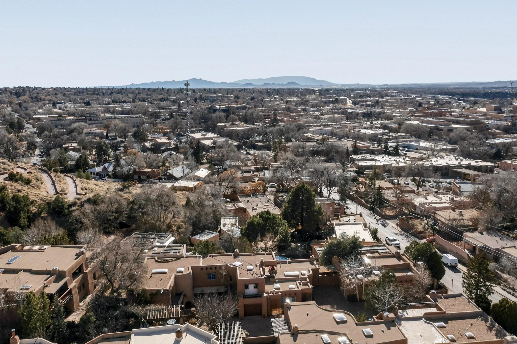 Santa Fe’s Historic Plaza resides on the NE side of Santa Fe. This area runs east from St. Francis Drive, north of East Alameda to Hyde Park and the climb to Ski Santa Fe and the Sangre de Cristos. Deemed as highly desirable both in price and design, Santa Fe’s Northeast area, while conveniently located, provides close-in quiet living.